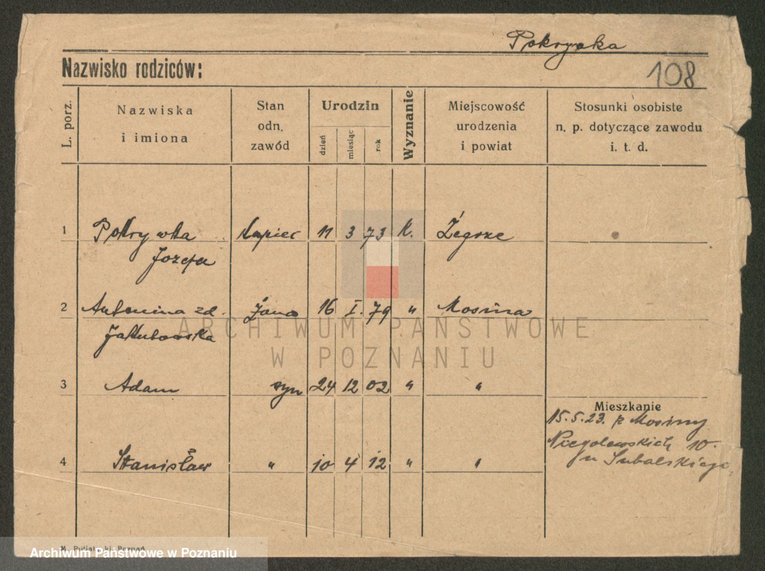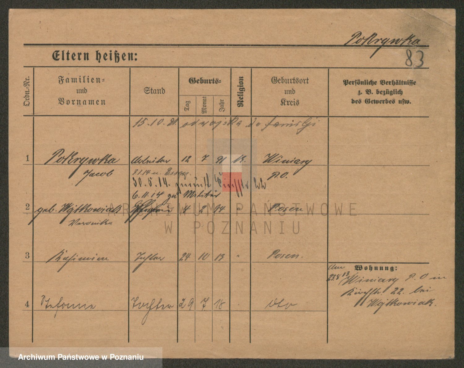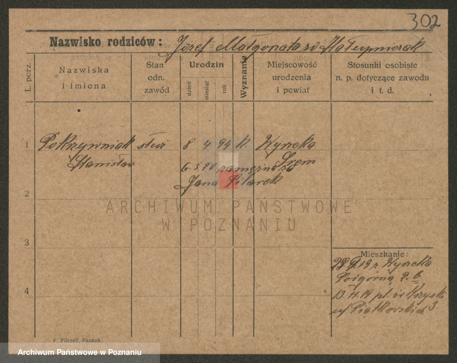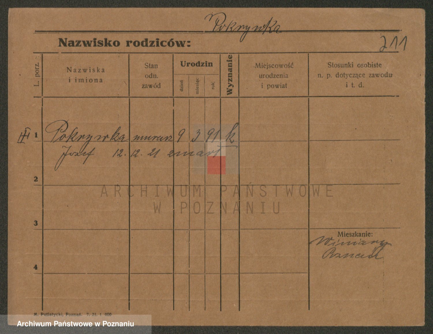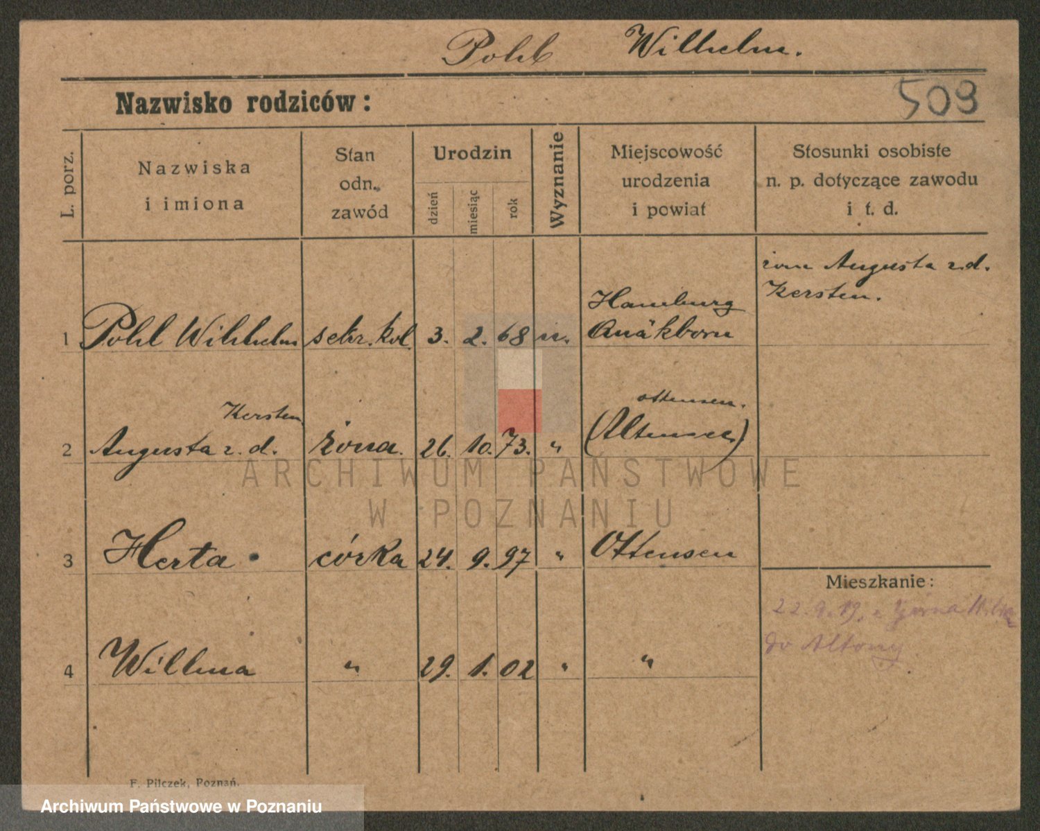Podgląd karty osobowej dostępny jest po kliknięciu na nazwisko lub ikonkę karty. Można dokonywać powiększenia (ikony na górze) lub przechodzić między kolejnymi skanami (strzałki po bokach).