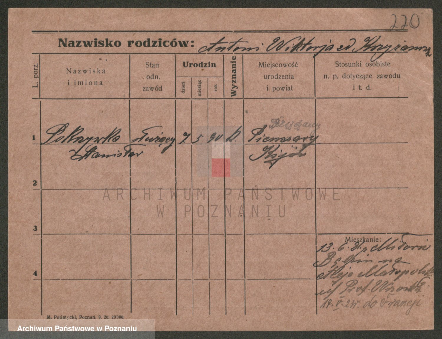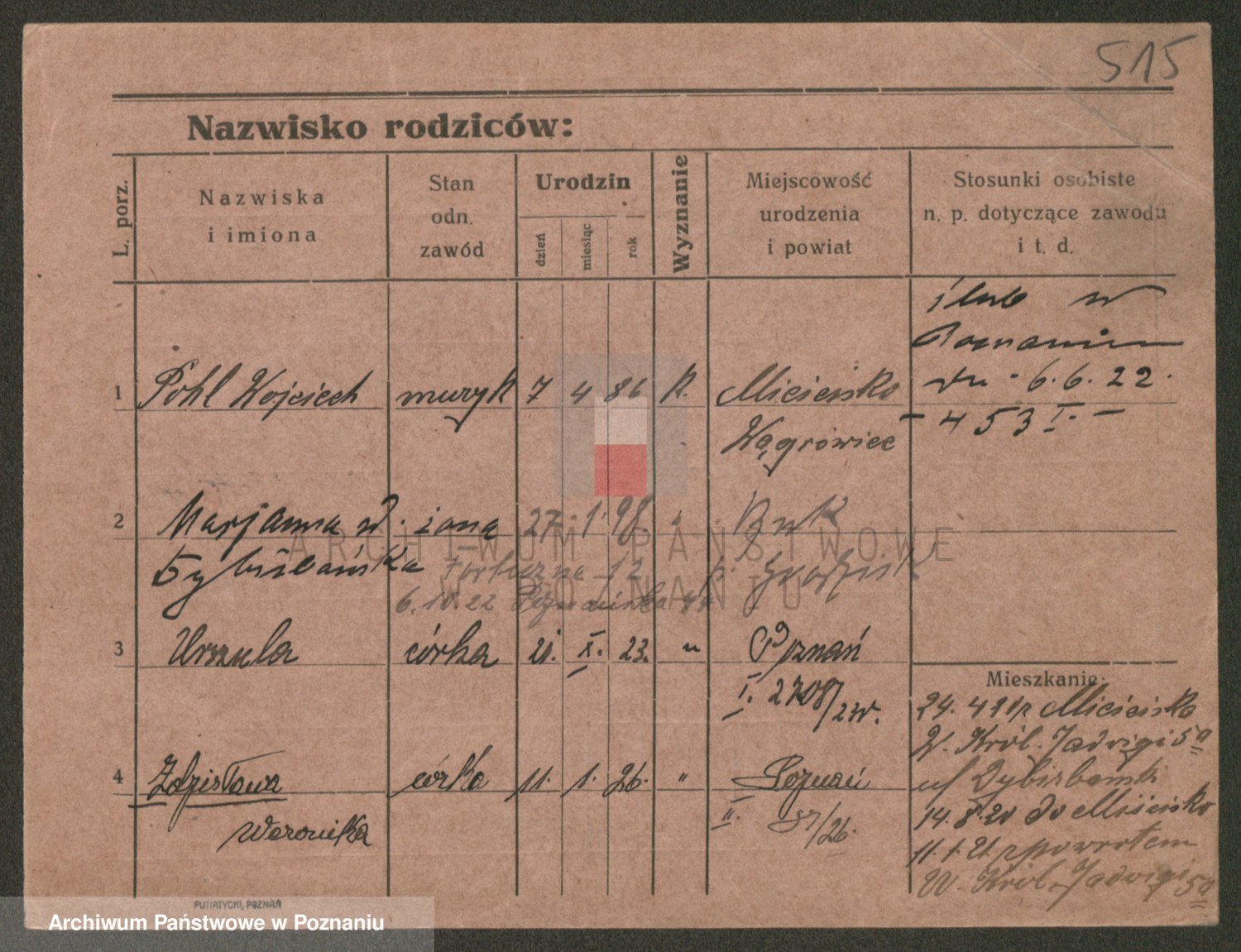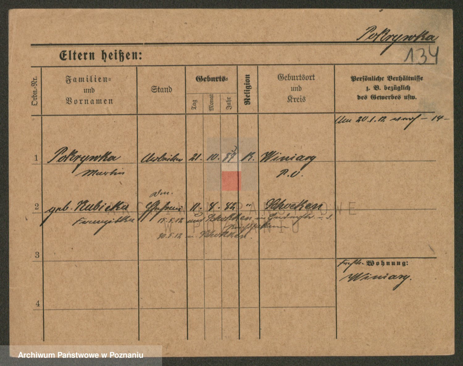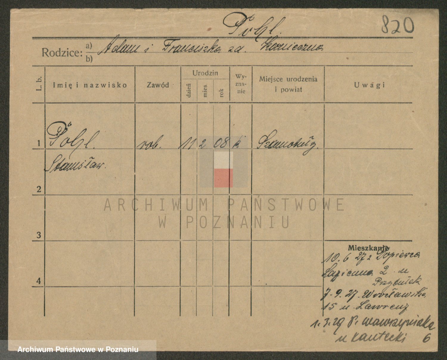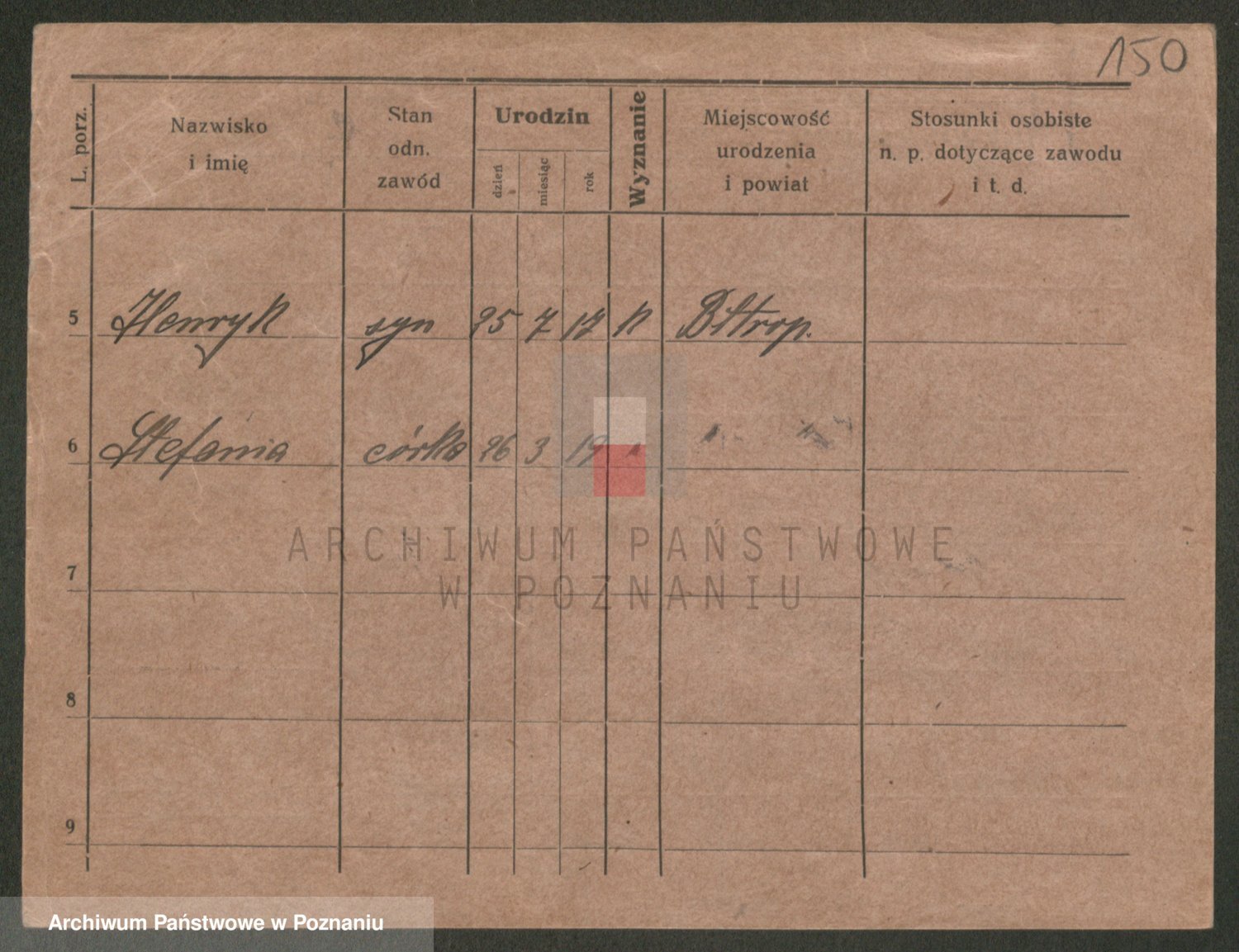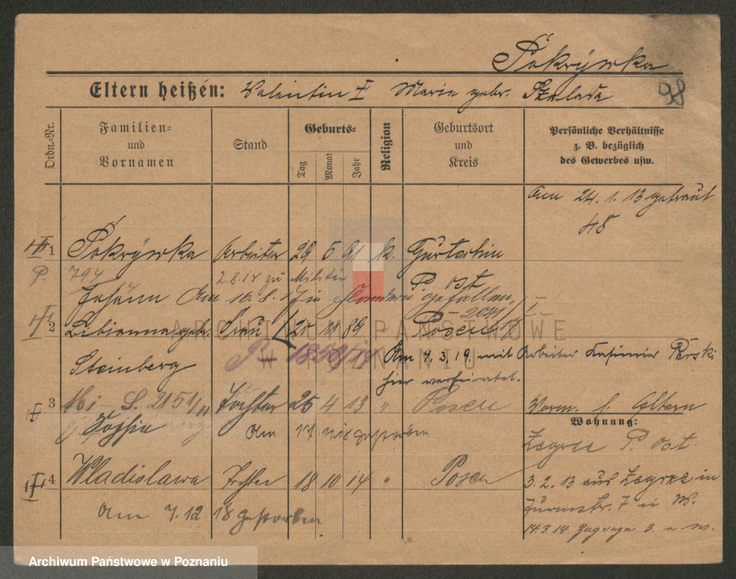 Podgląd karty osobowej dostępny jest po kliknięciu na nazwisko lub ikonkę karty. Można dokonywać powiększenia (ikony na górze) lub przechodzić między kolejnymi skanami (strzałki po bokach).