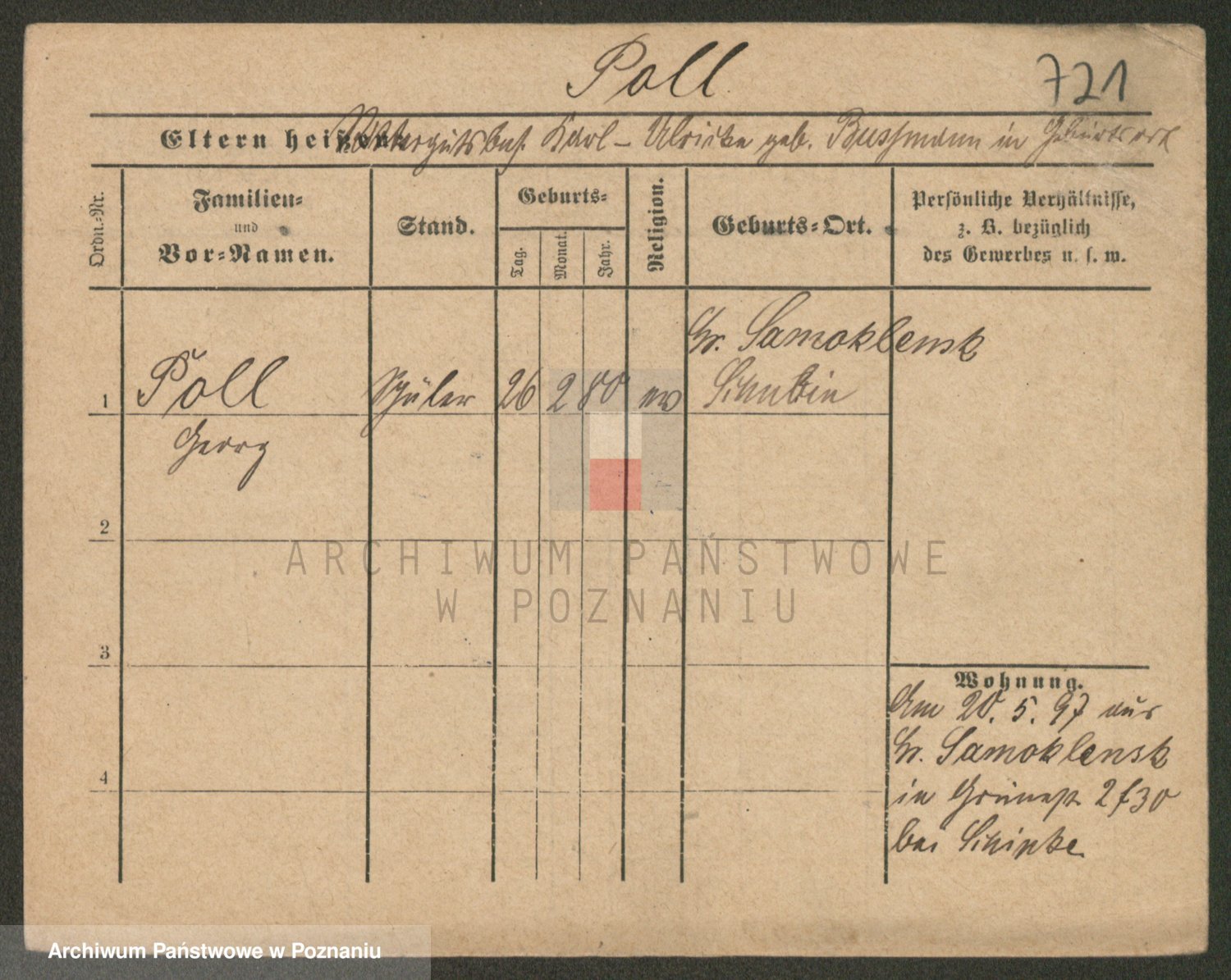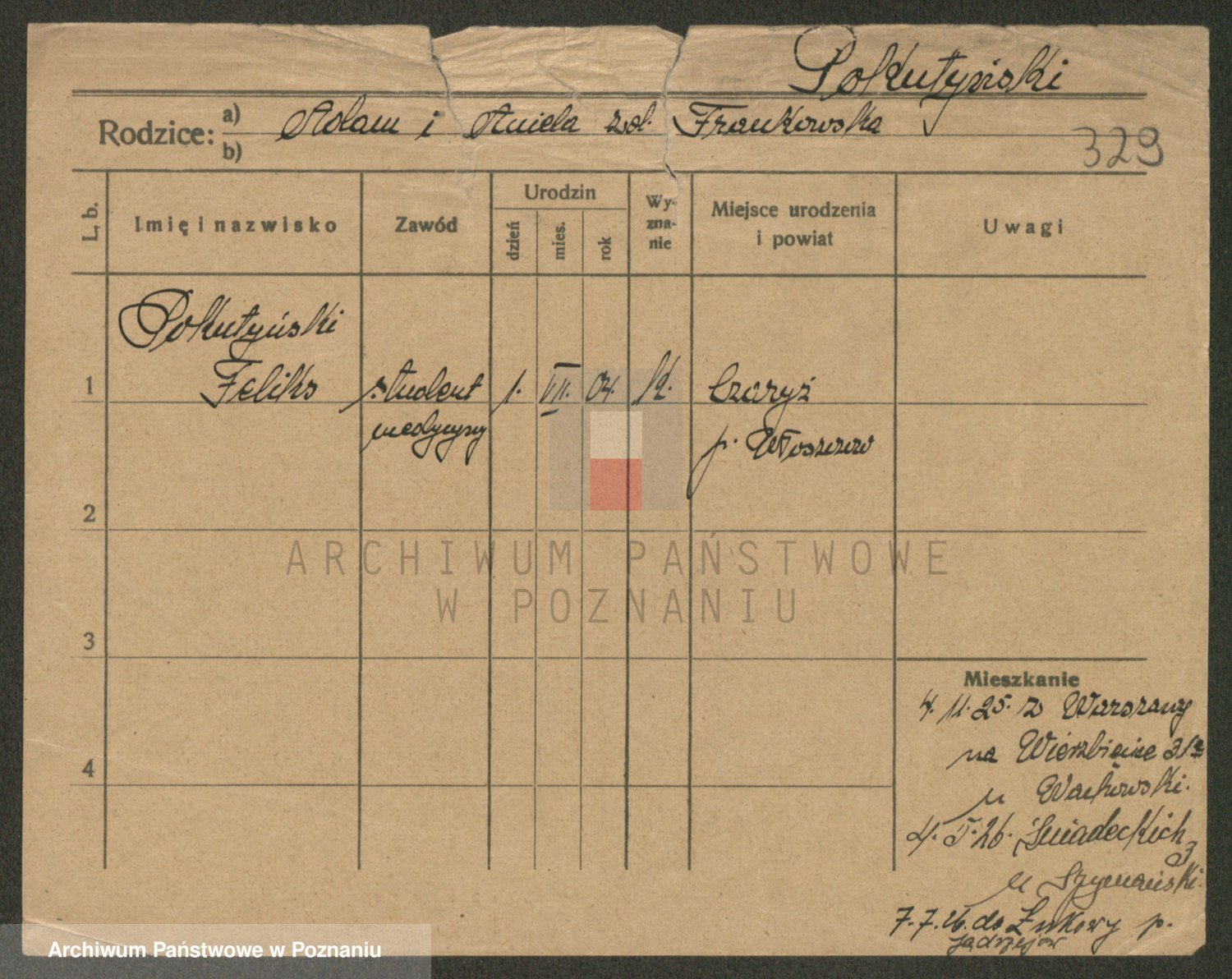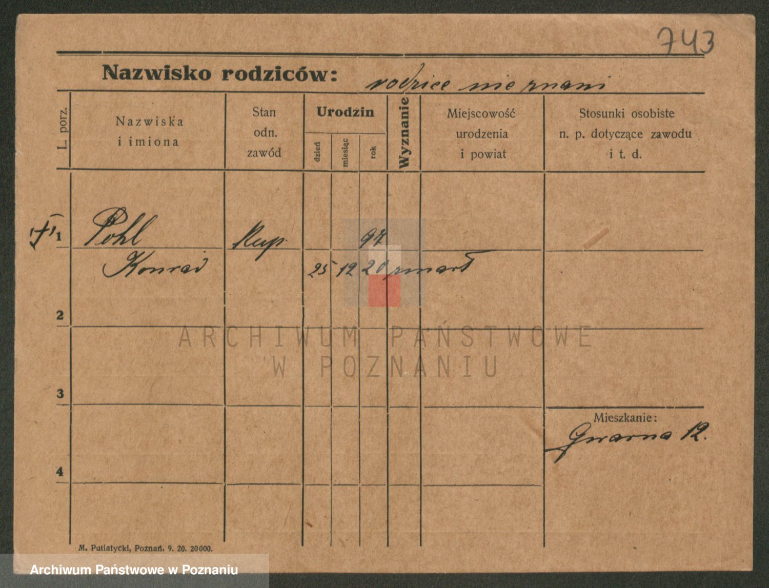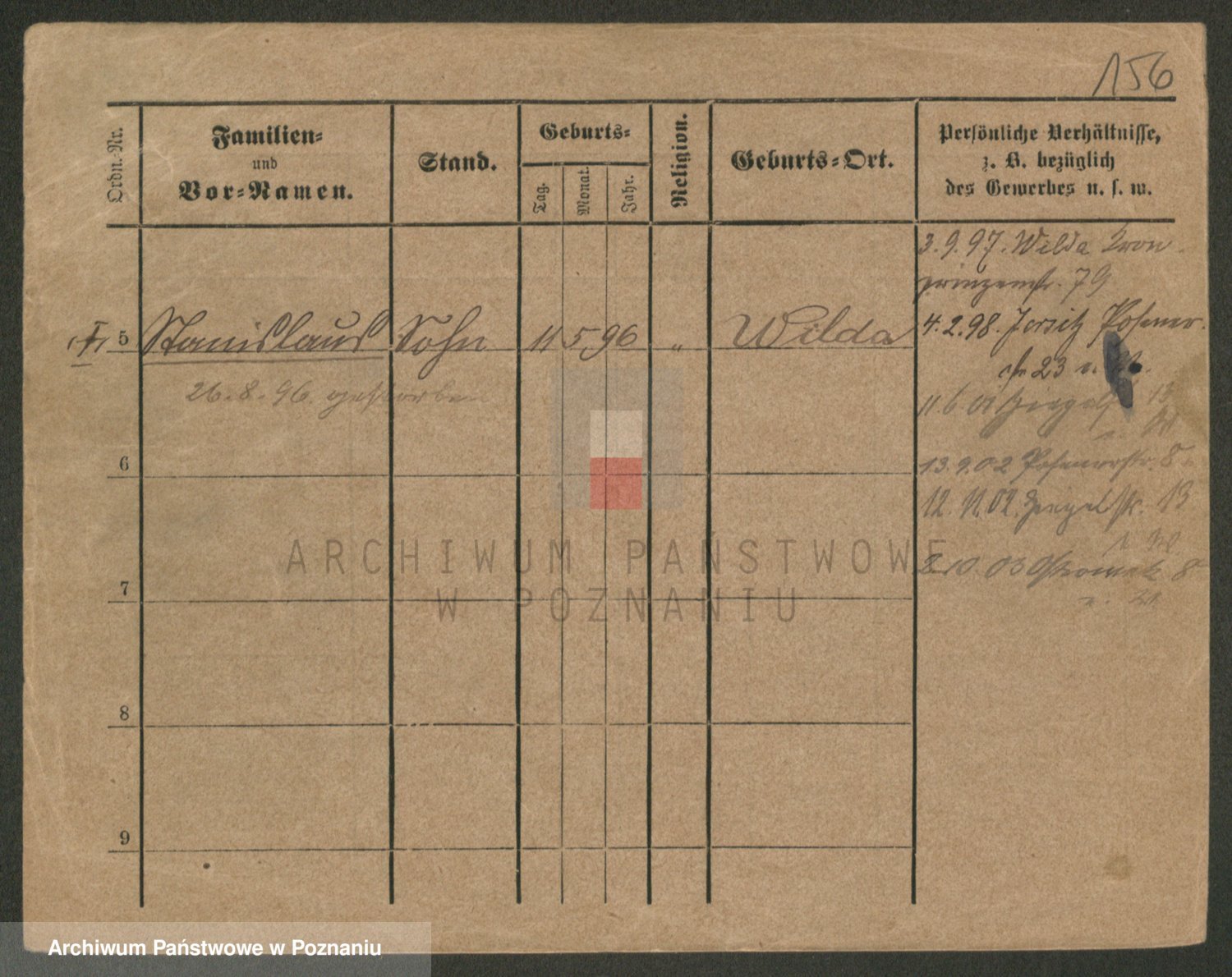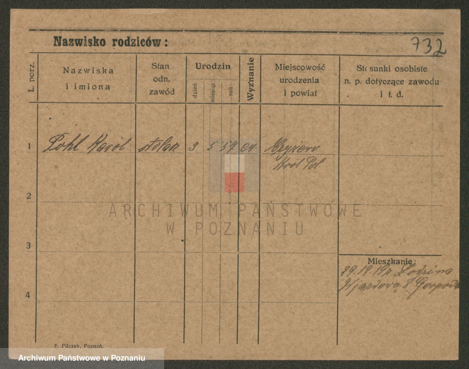 Podgląd karty osobowej dostępny jest po kliknięciu na nazwisko lub ikonkę karty. Można dokonywać powiększenia (ikony na górze) lub przechodzić między kolejnymi skanami (strzałki po bokach).