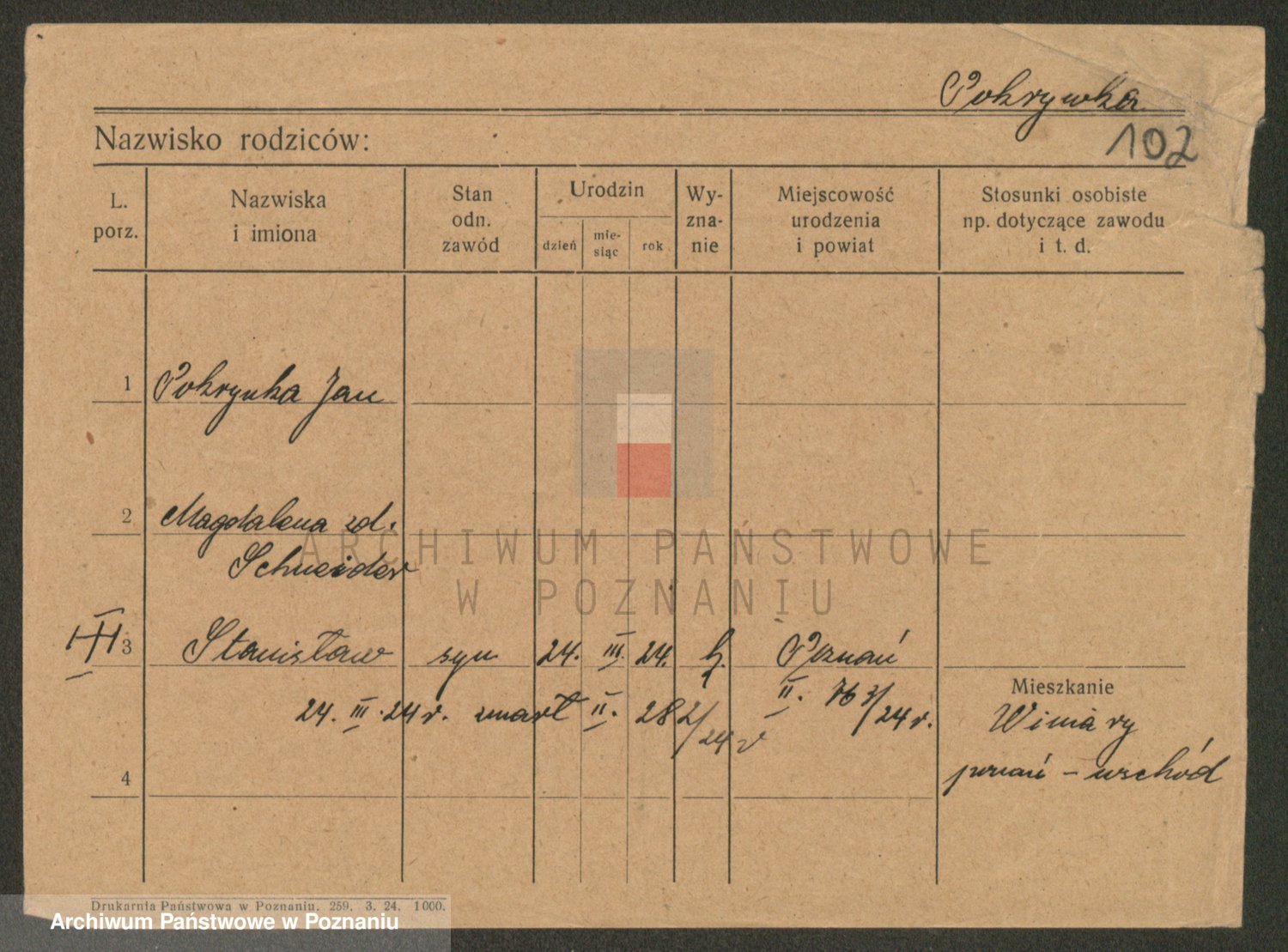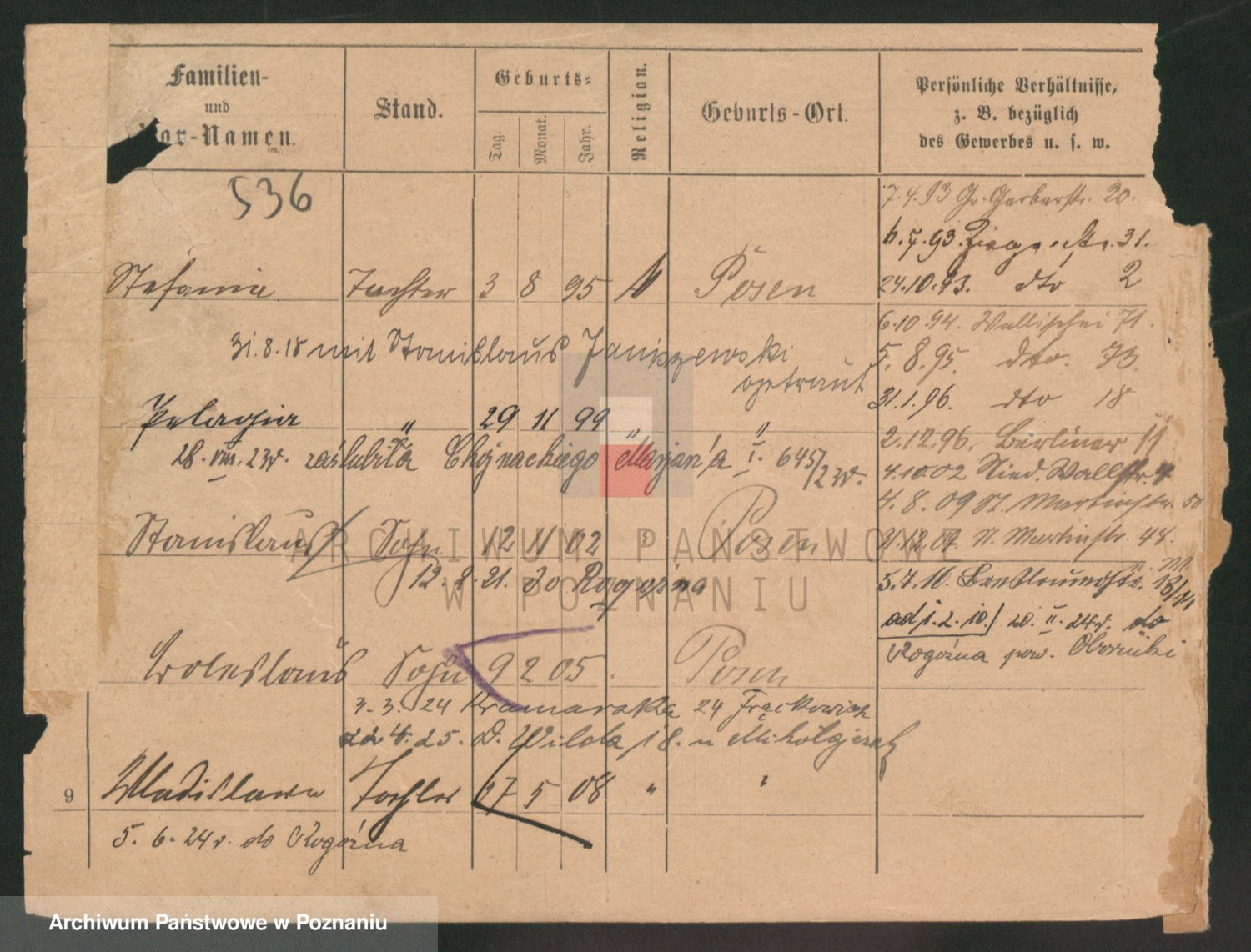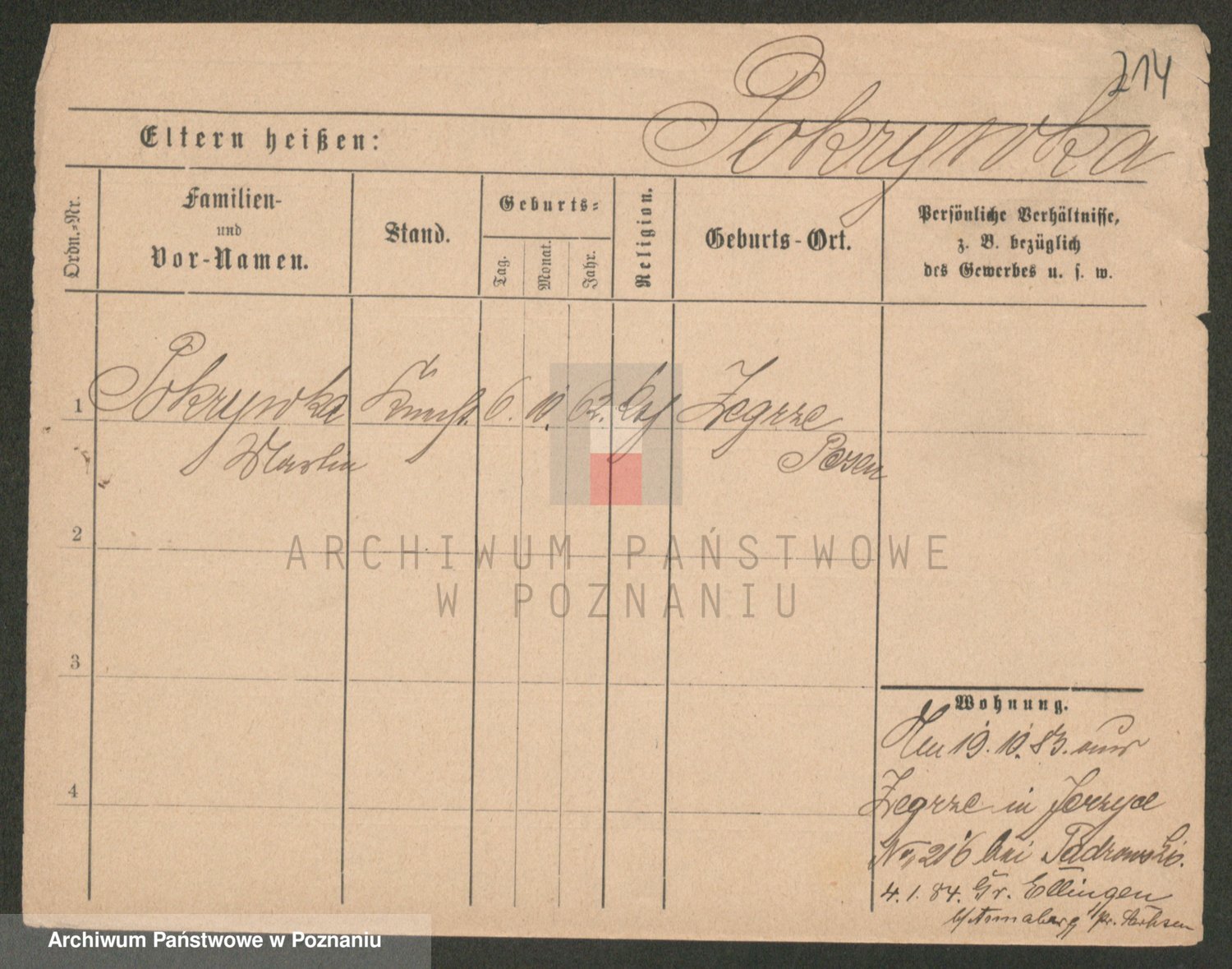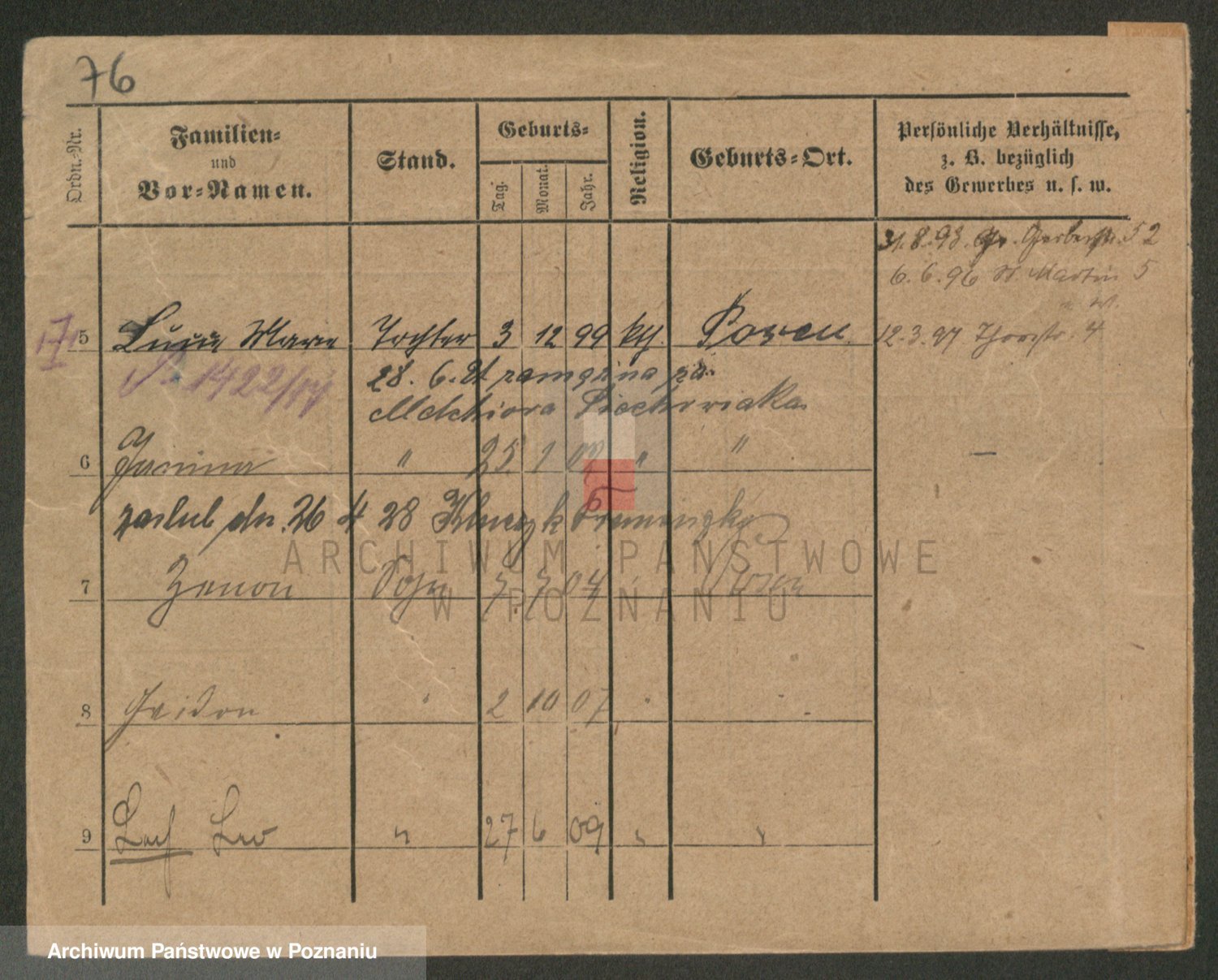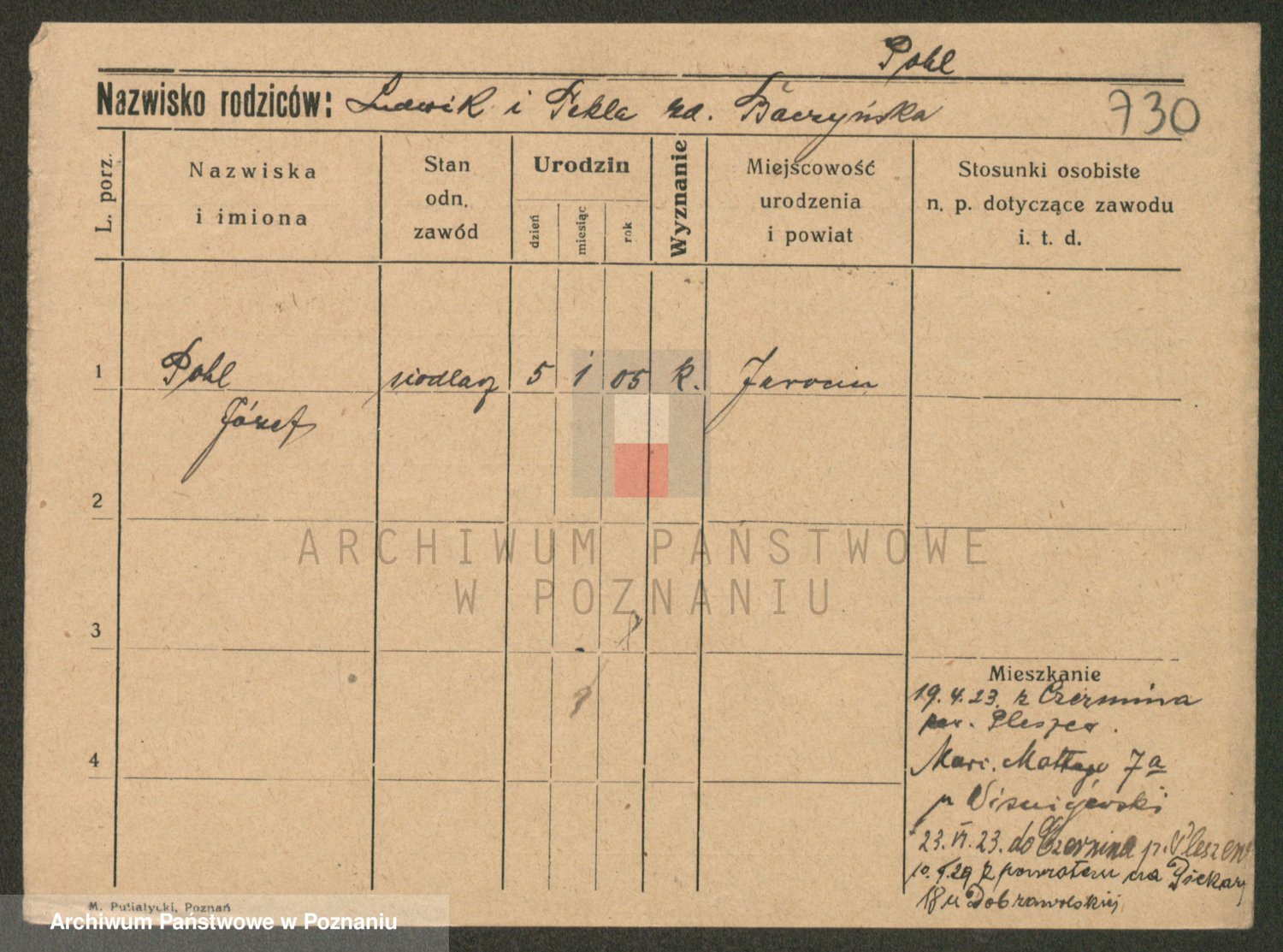 Podgląd karty osobowej dostępny jest po kliknięciu na nazwisko lub ikonkę karty. Można dokonywać powiększenia (ikony na górze) lub przechodzić między kolejnymi skanami (strzałki po bokach).