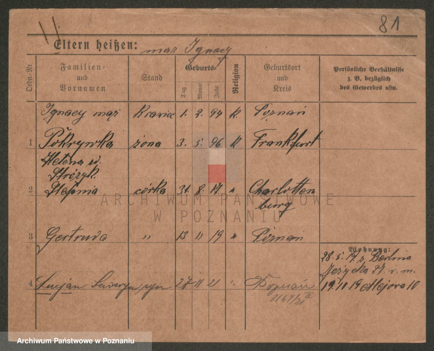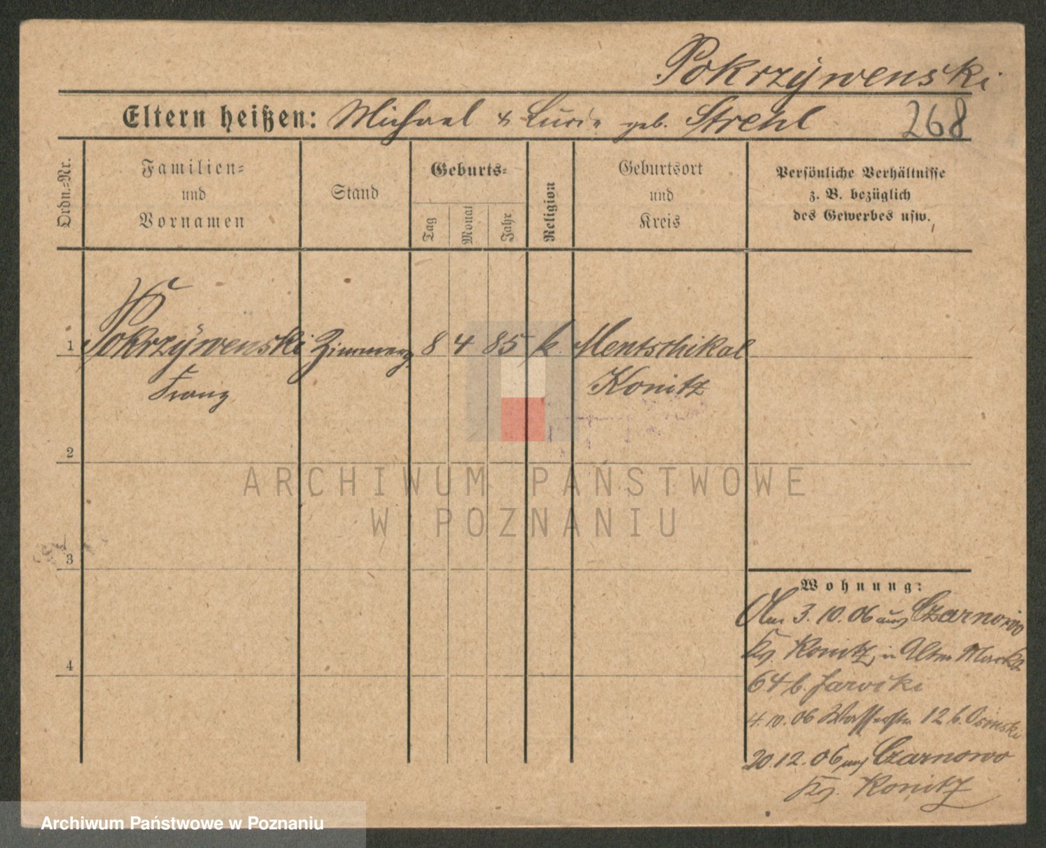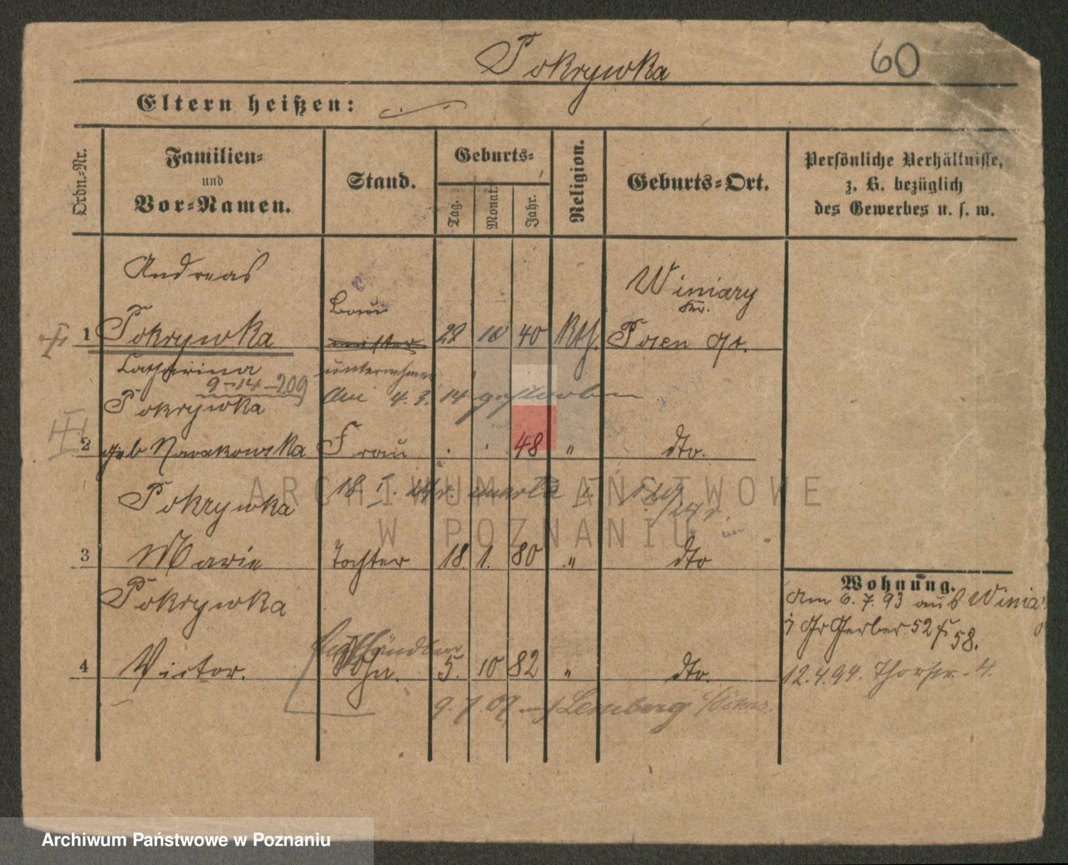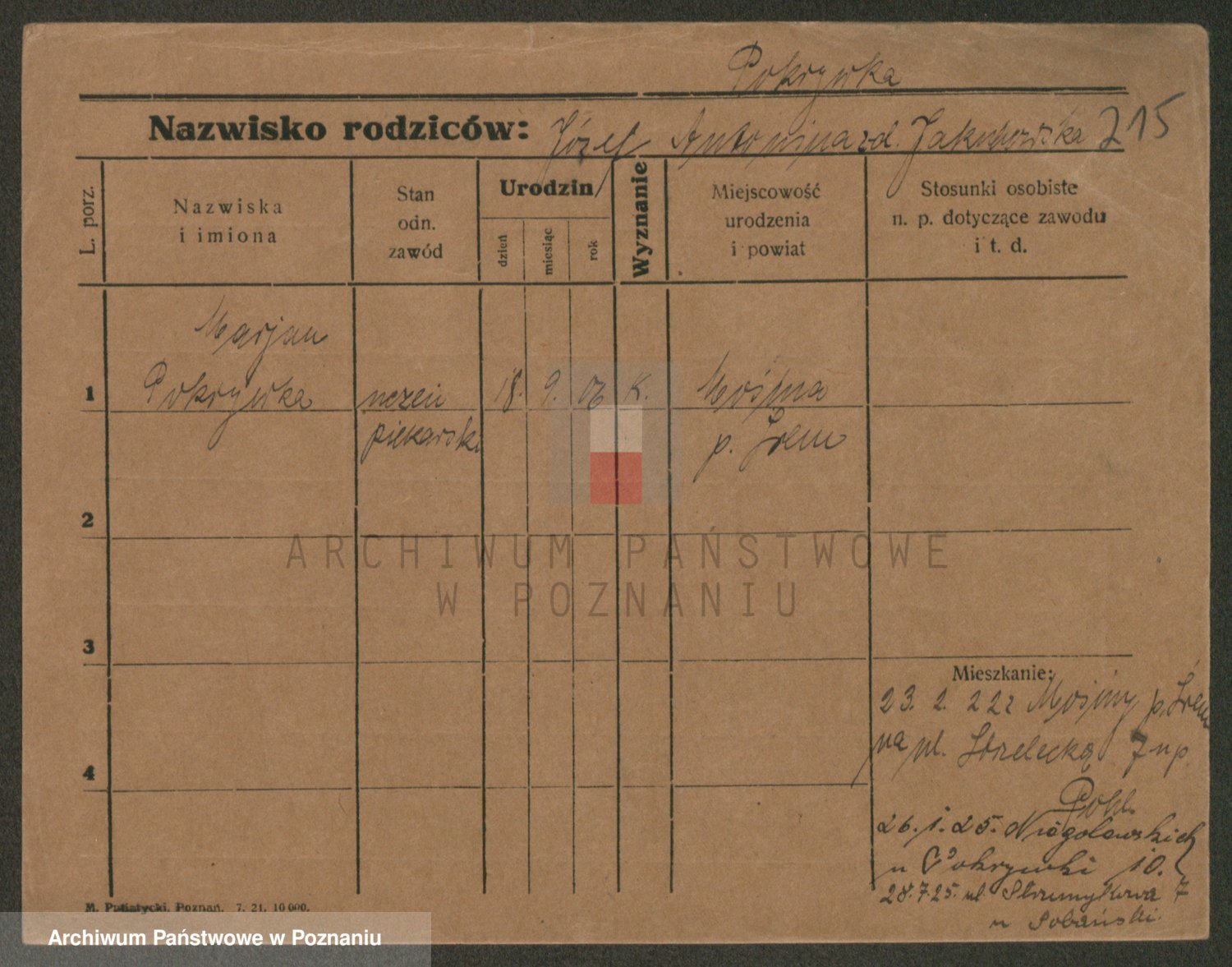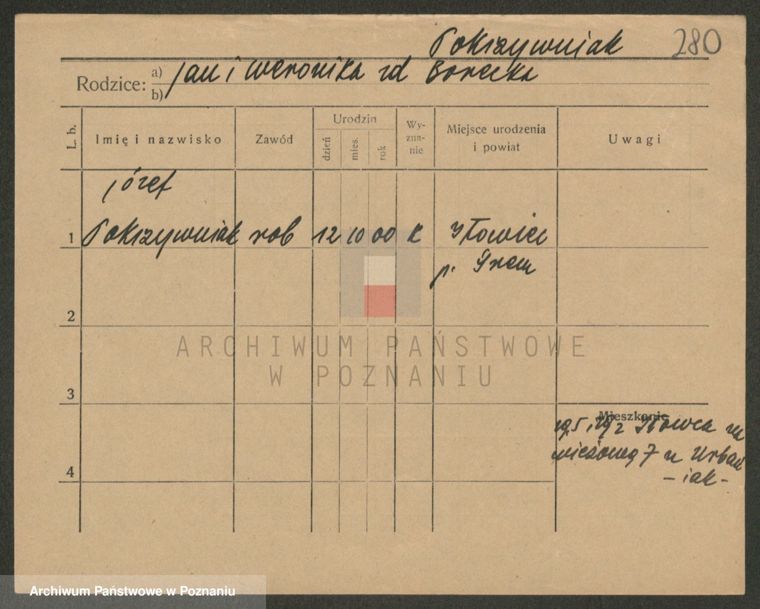 Podgląd karty osobowej dostępny jest po kliknięciu na nazwisko lub ikonkę karty. Można dokonywać powiększenia (ikony na górze) lub przechodzić między kolejnymi skanami (strzałki po bokach).