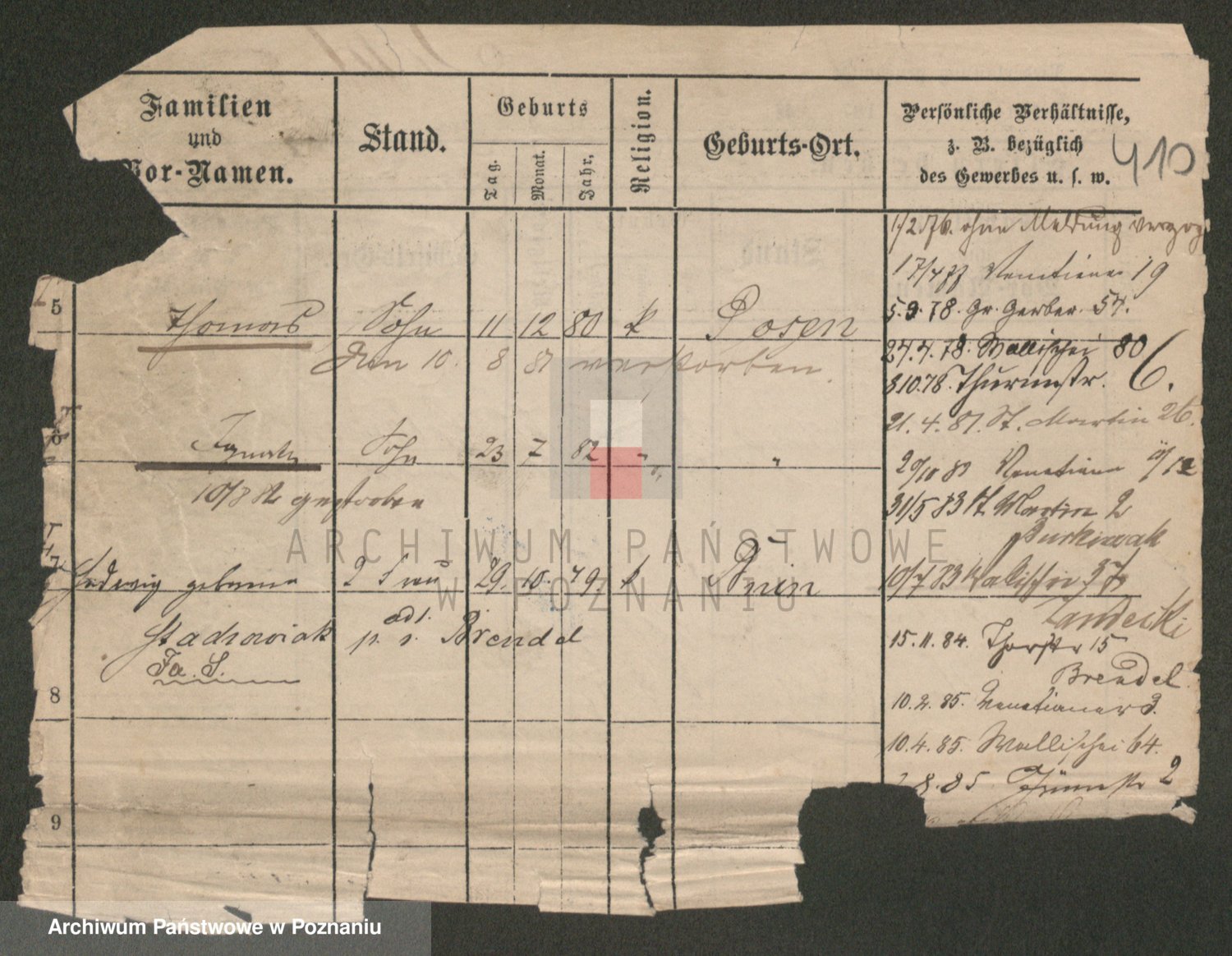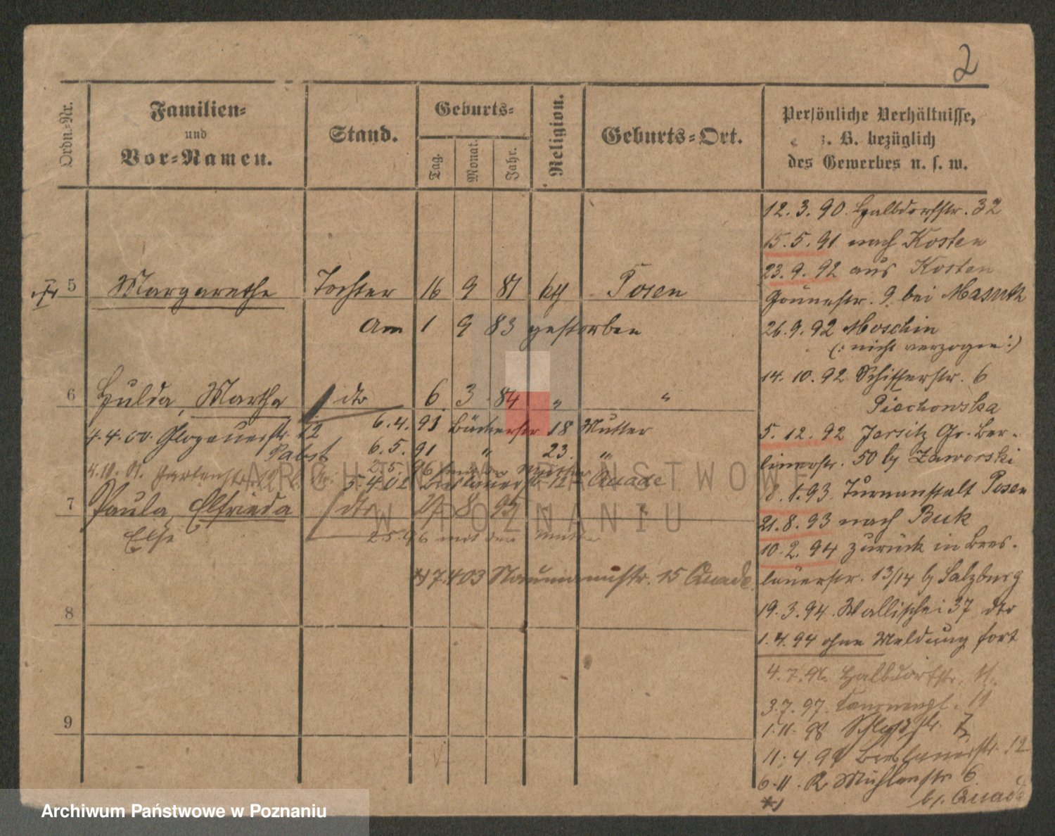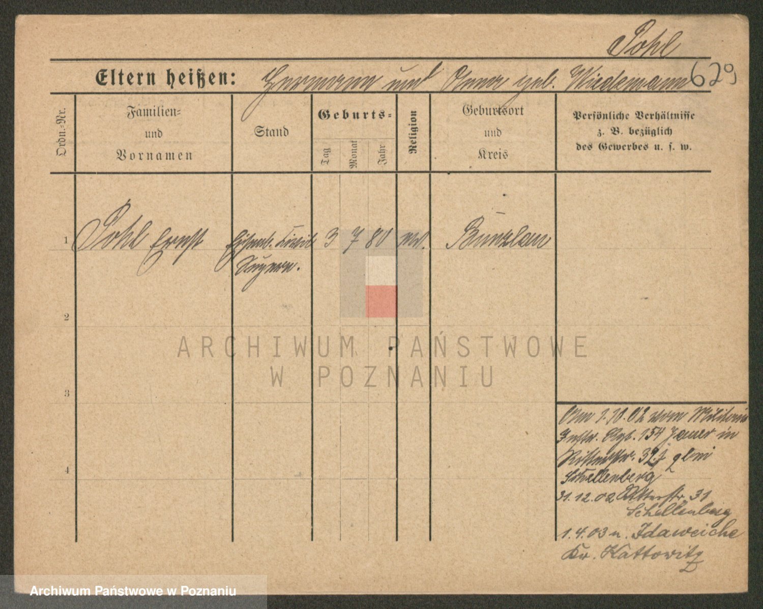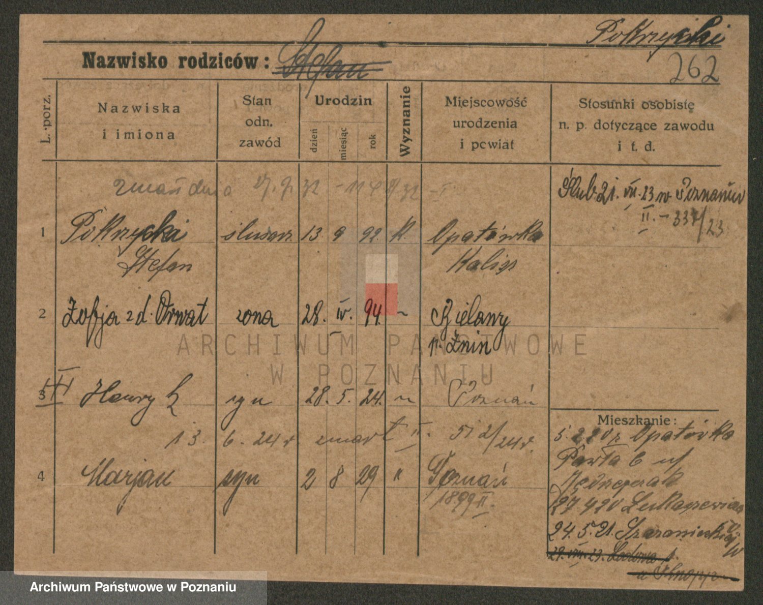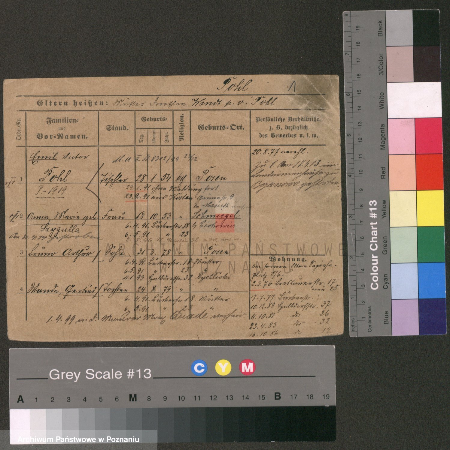Podgląd karty osobowej dostępny jest po kliknięciu na nazwisko lub ikonkę karty. Można dokonywać powiększenia (ikony na górze) lub przechodzić między kolejnymi skanami (strzałki po bokach).