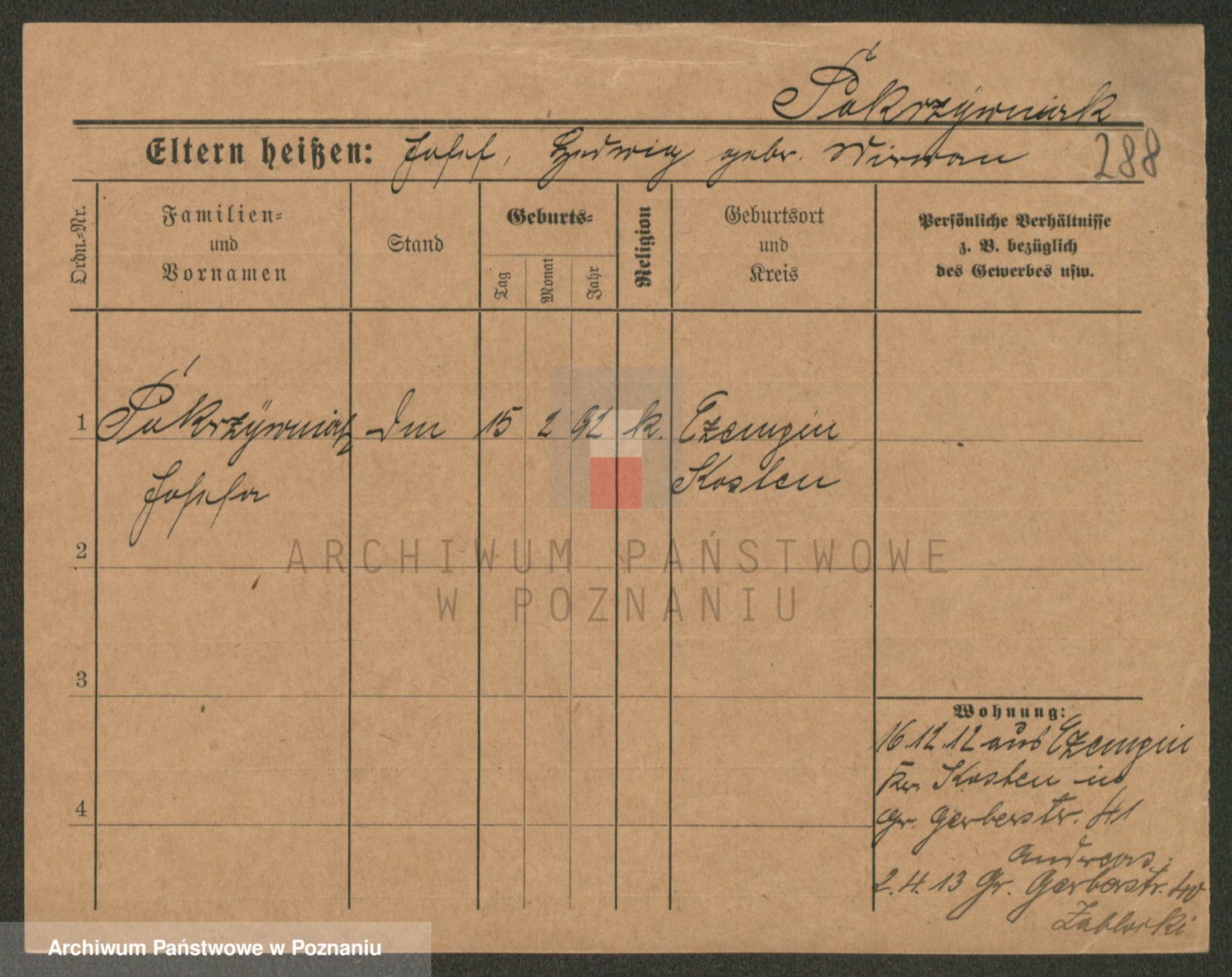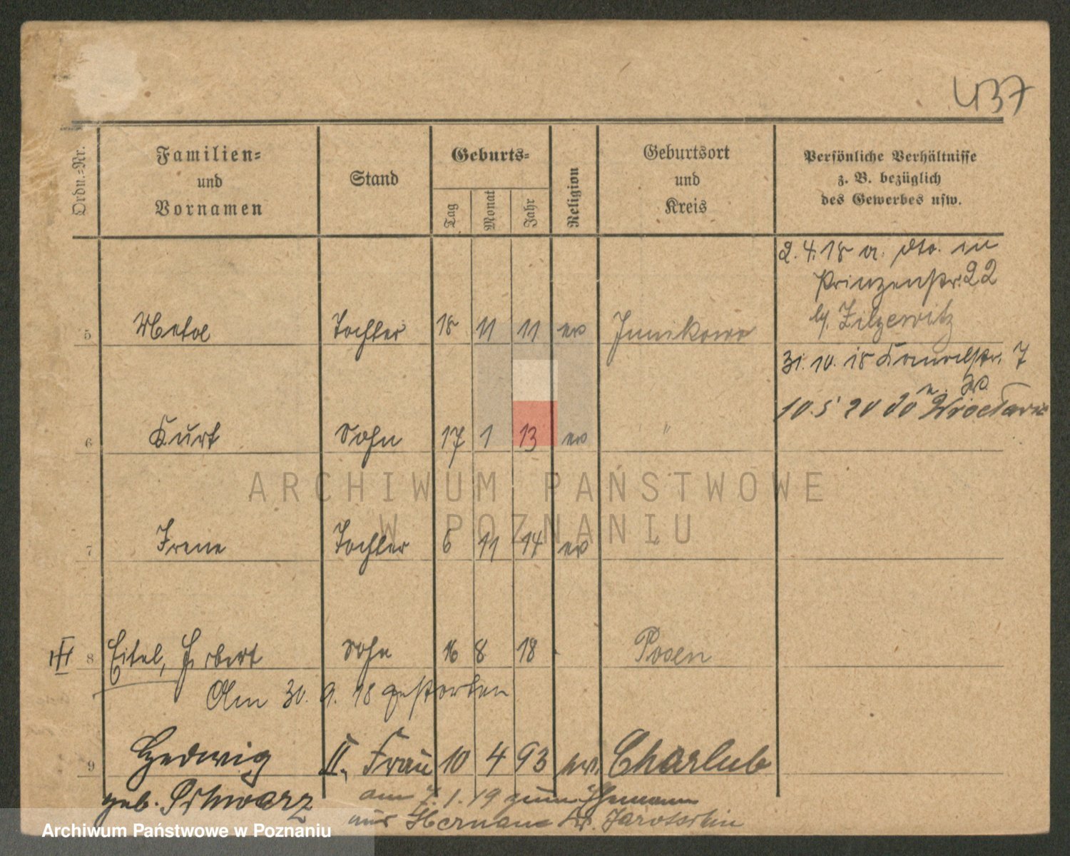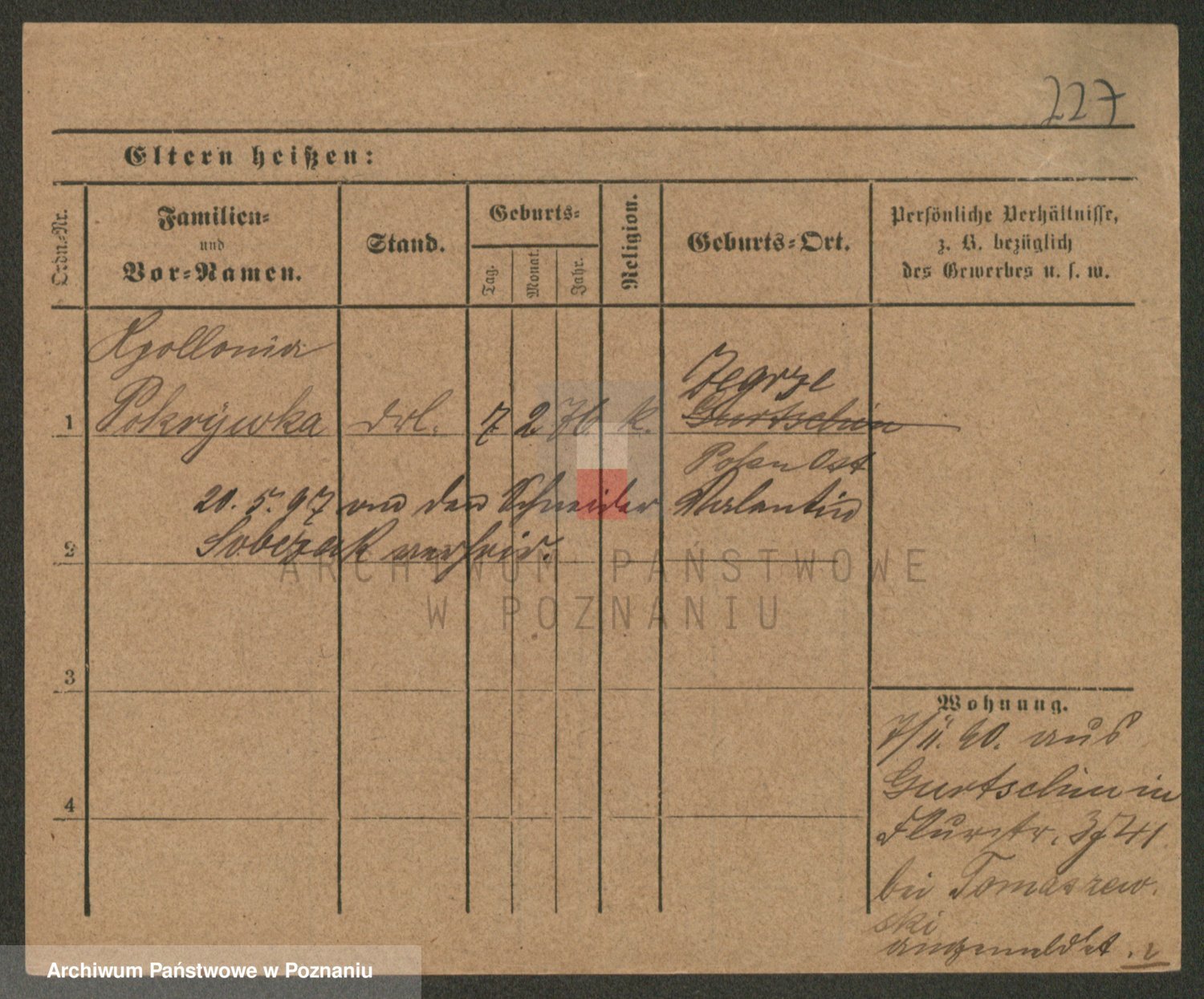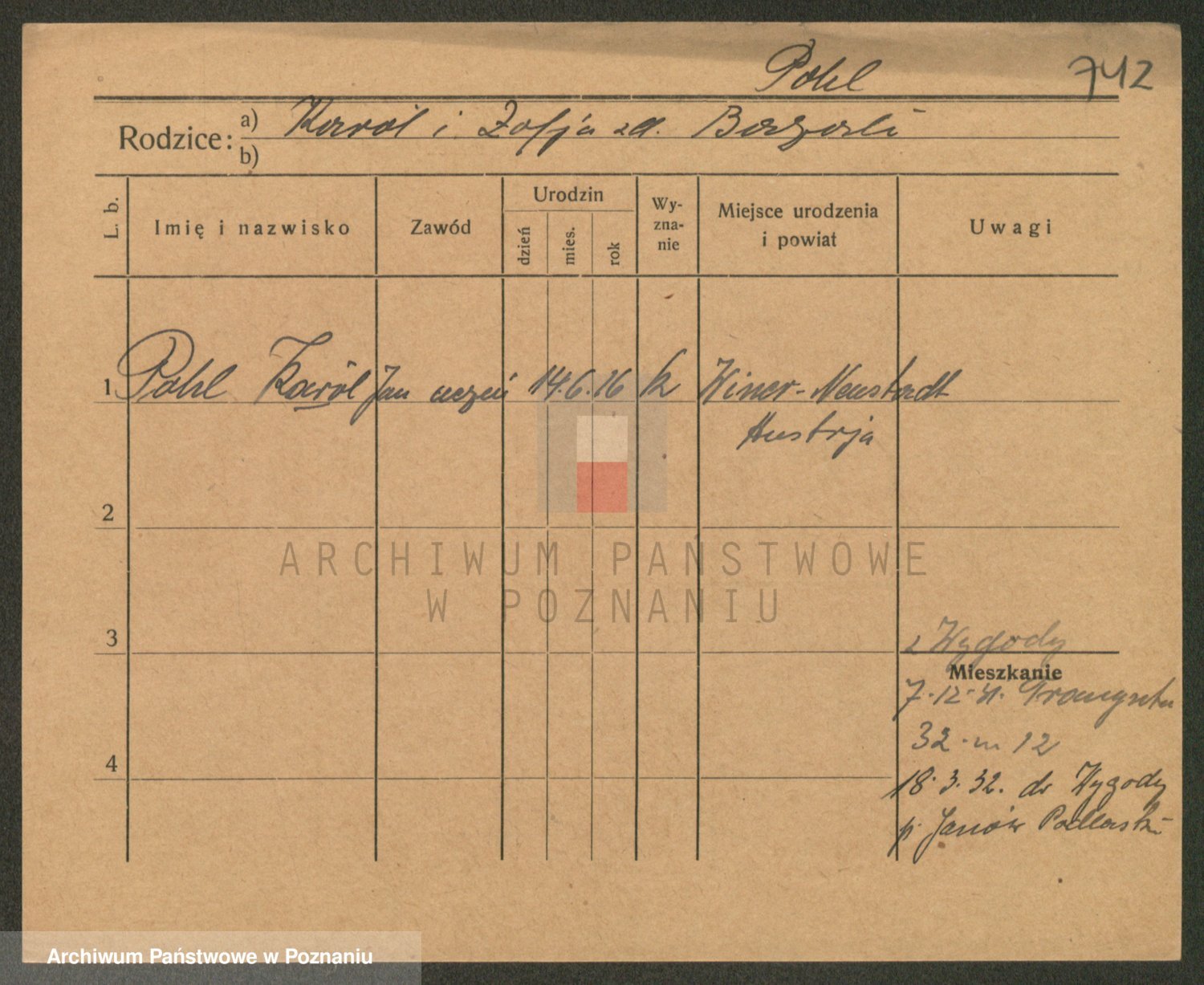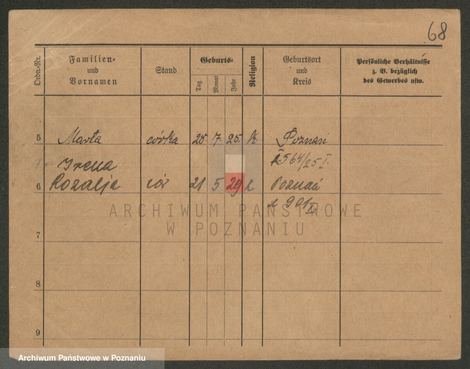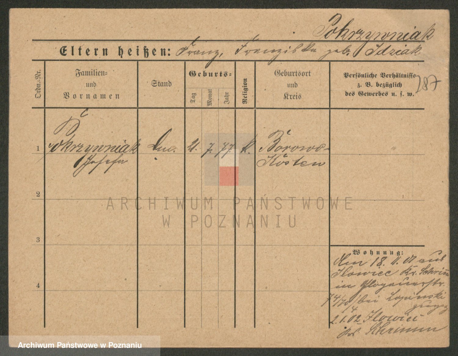 Podgląd karty osobowej dostępny jest po kliknięciu na nazwisko lub ikonkę karty. Można dokonywać powiększenia (ikony na górze) lub przechodzić między kolejnymi skanami (strzałki po bokach).