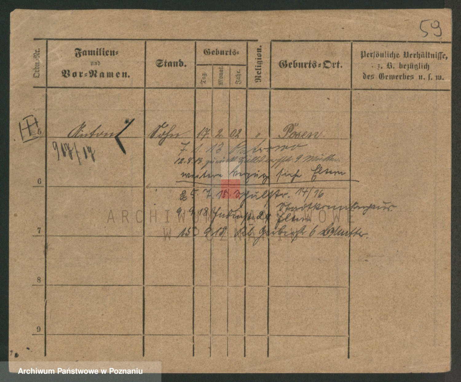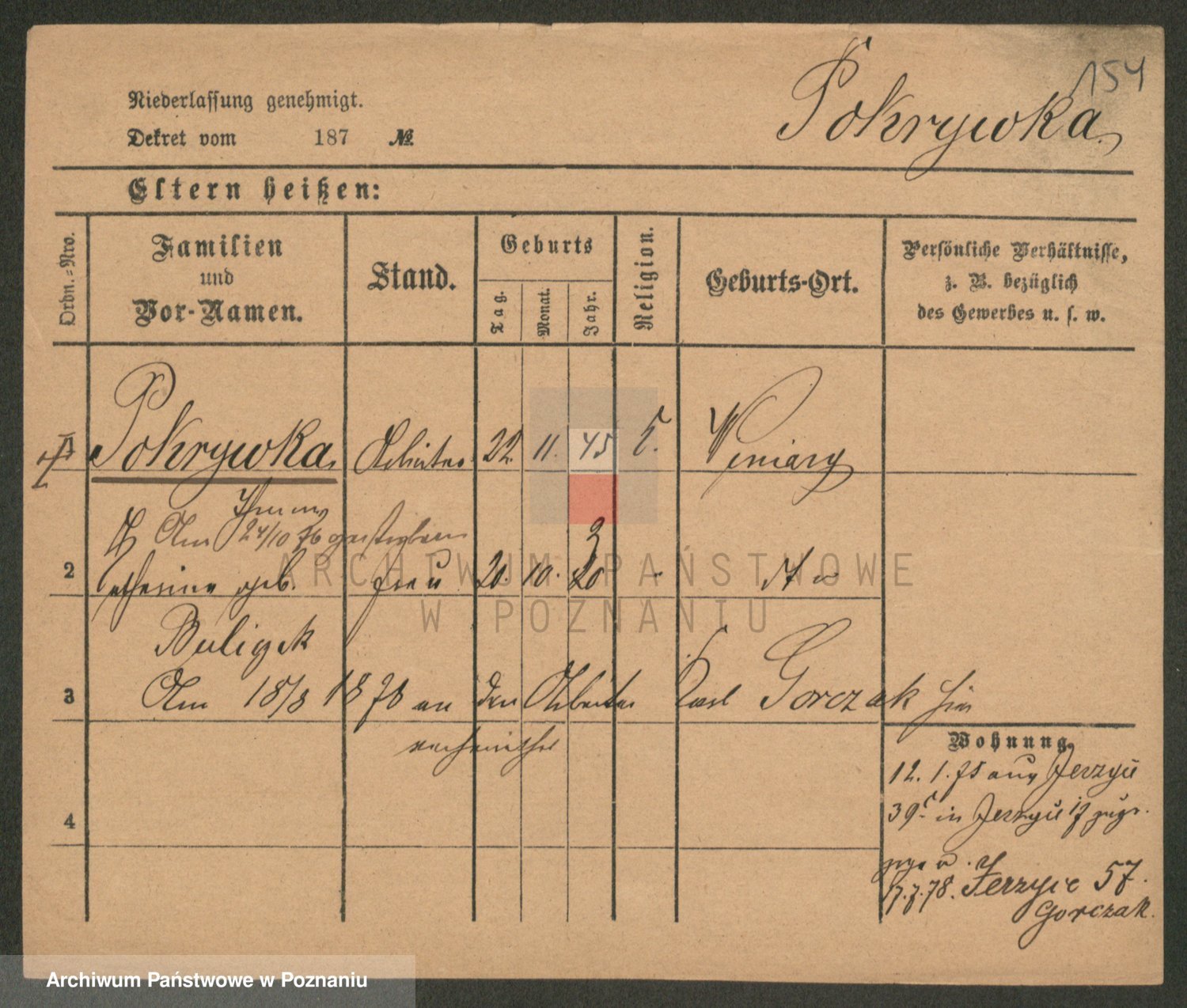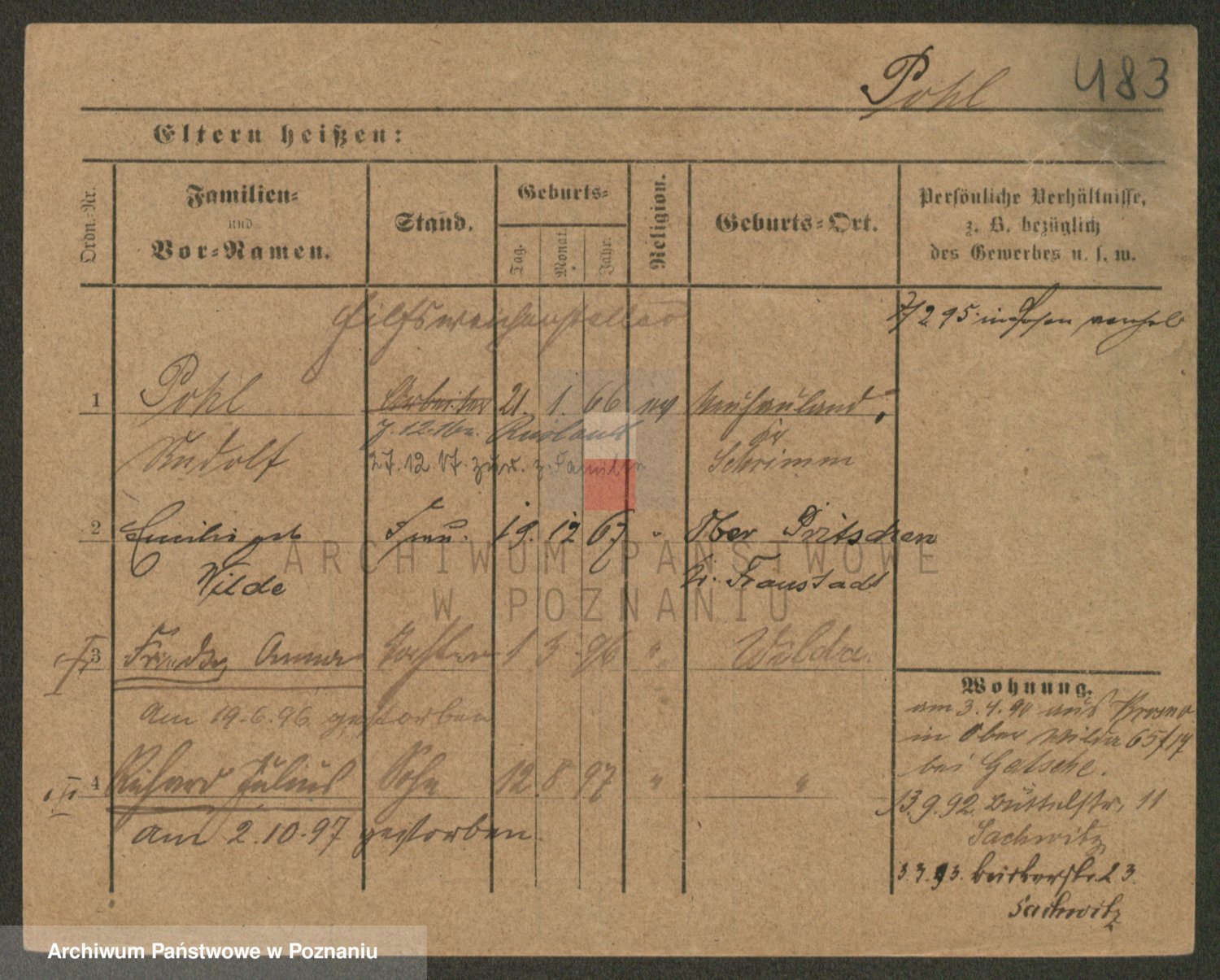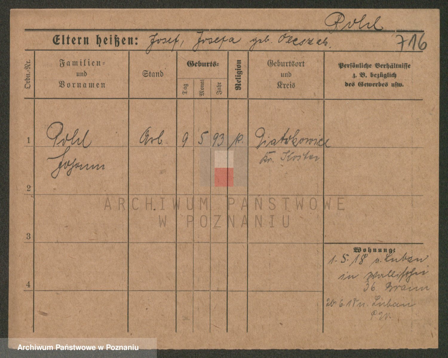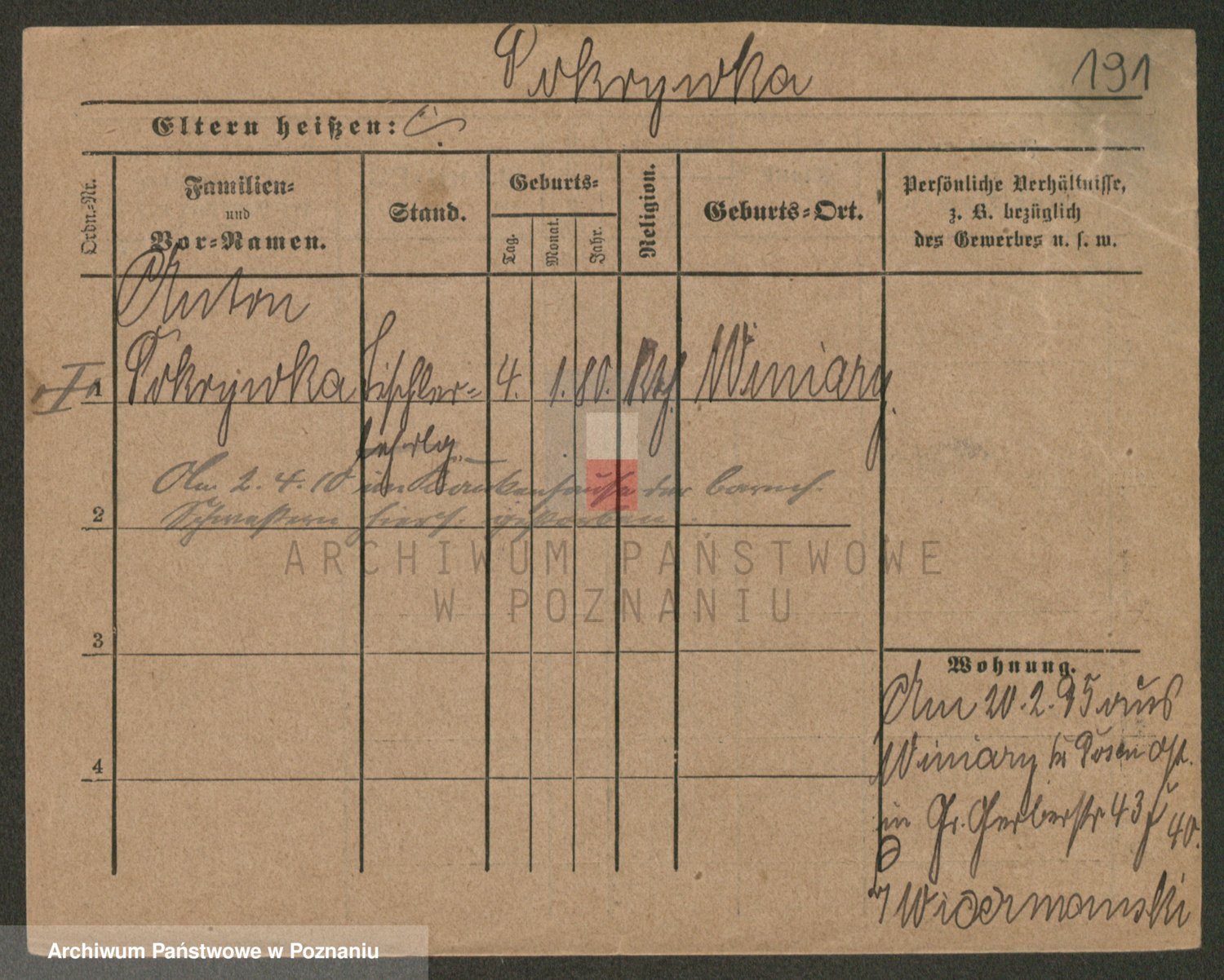 Podgląd karty osobowej dostępny jest po kliknięciu na nazwisko lub ikonkę karty. Można dokonywać powiększenia (ikony na górze) lub przechodzić między kolejnymi skanami (strzałki po bokach).