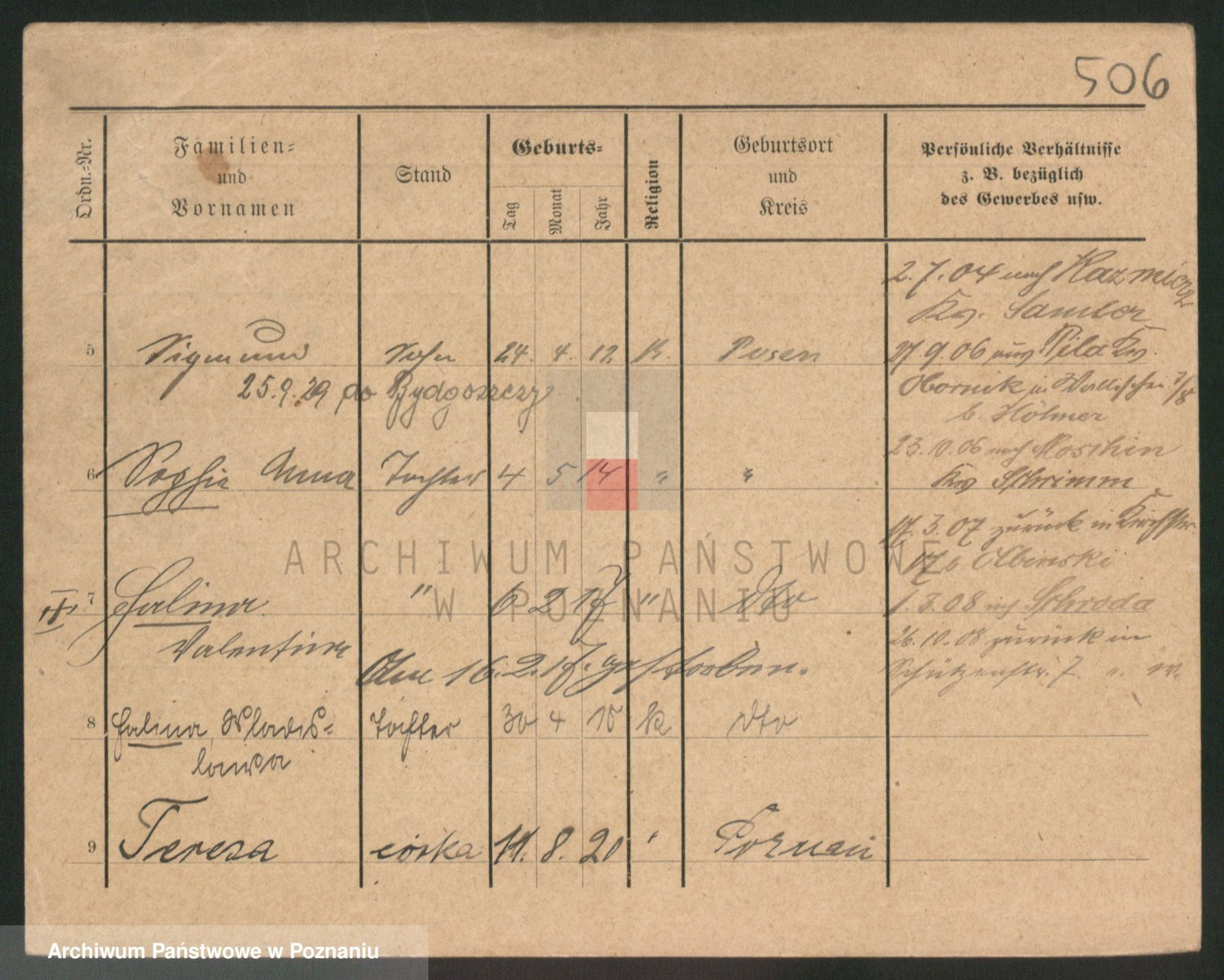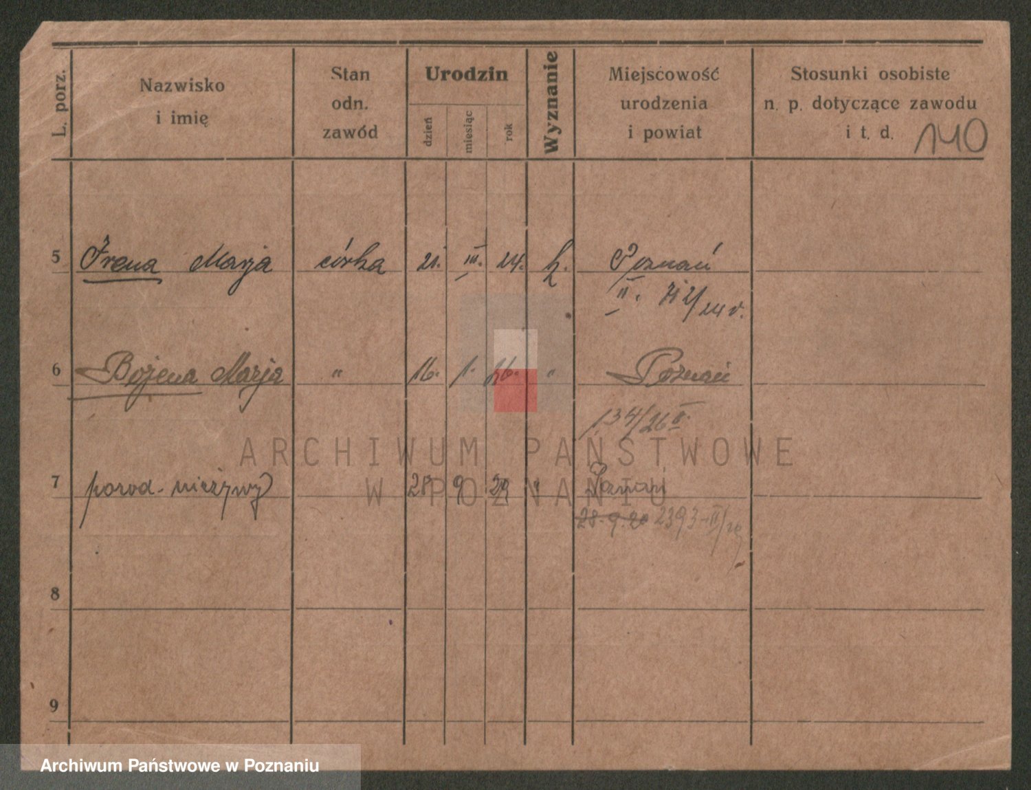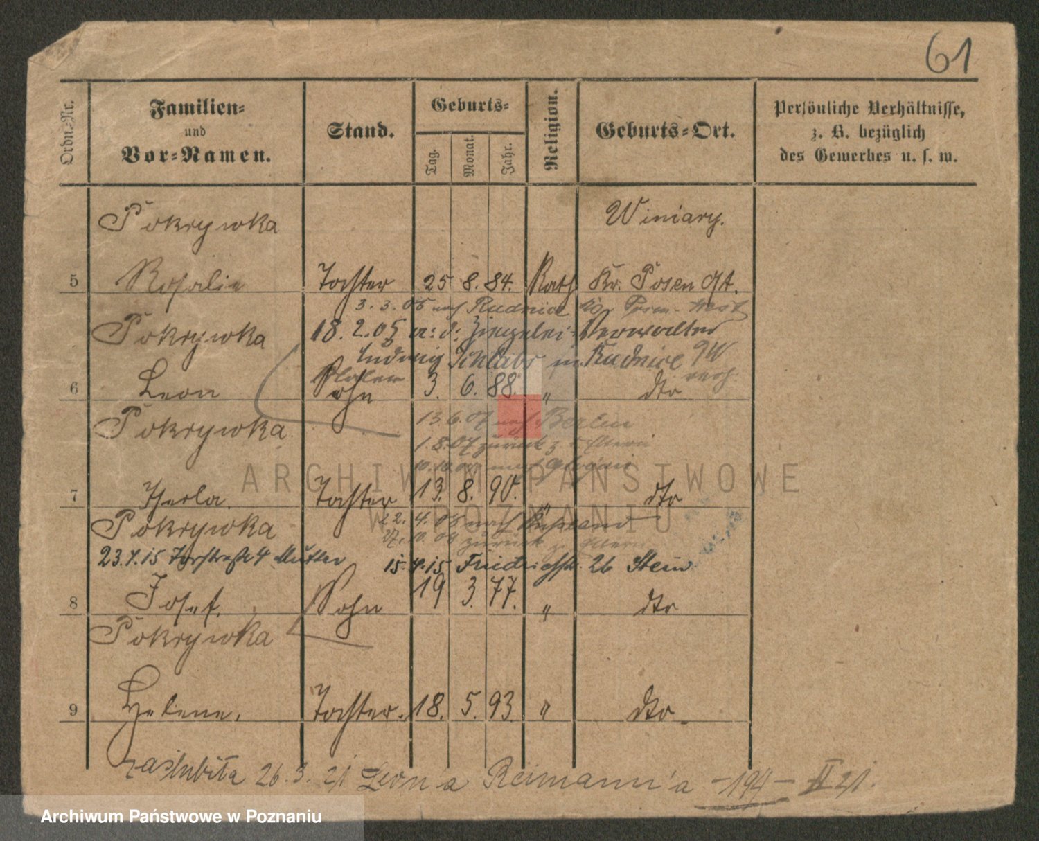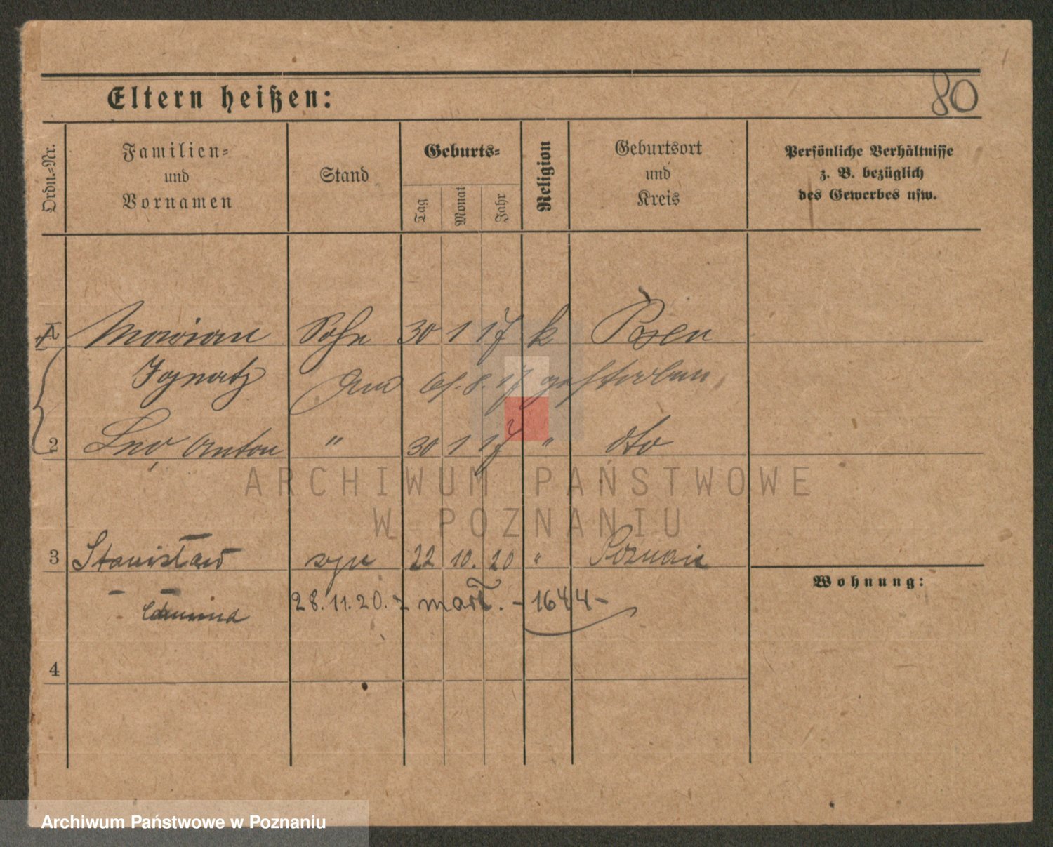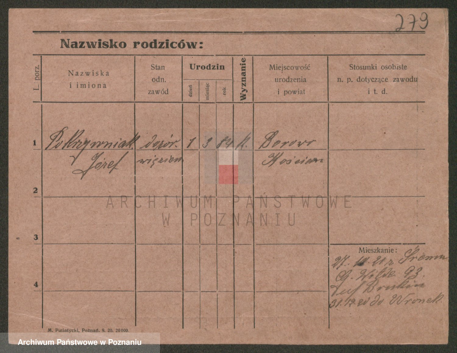 Podgląd karty osobowej dostępny jest po kliknięciu na nazwisko lub ikonkę karty. Można dokonywać powiększenia (ikony na górze) lub przechodzić między kolejnymi skanami (strzałki po bokach).