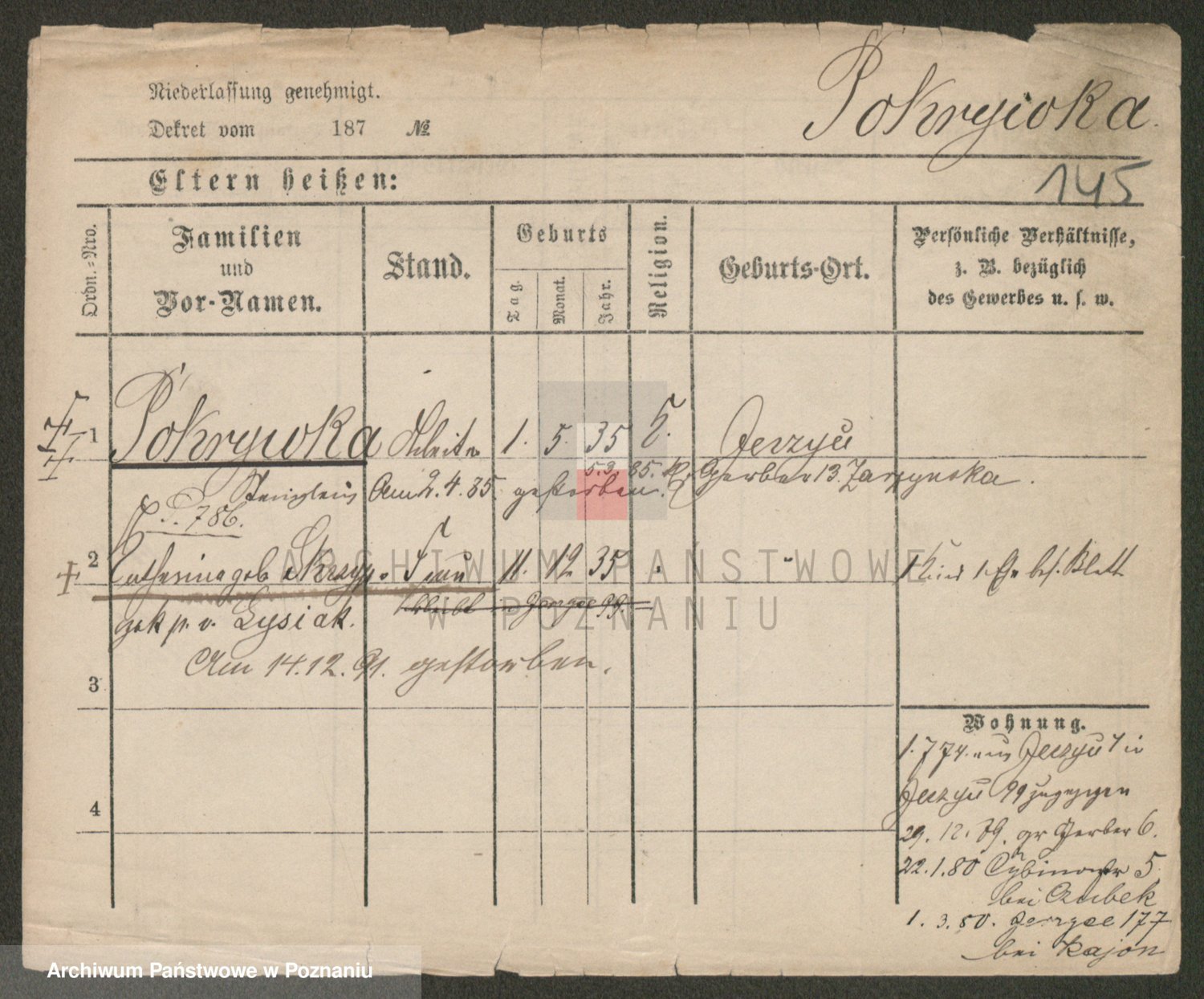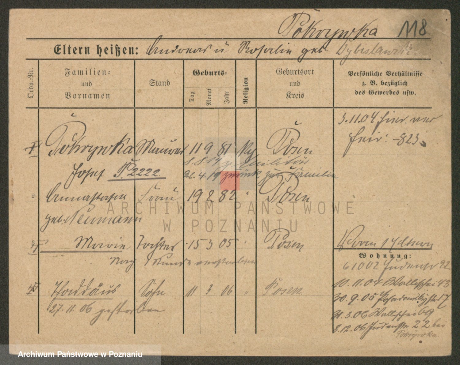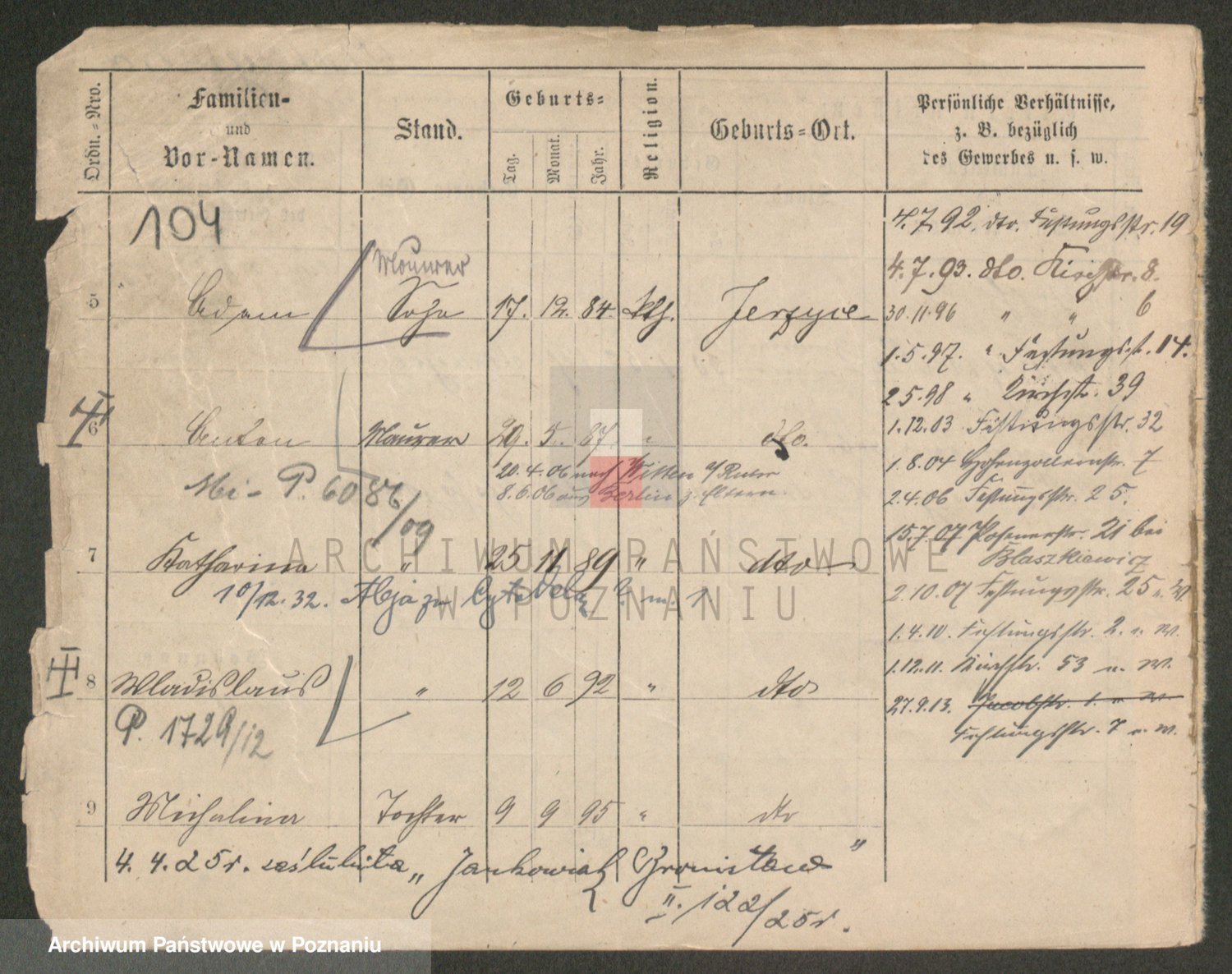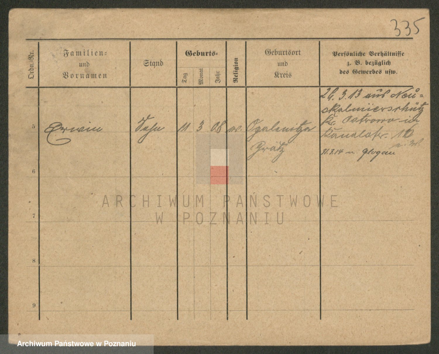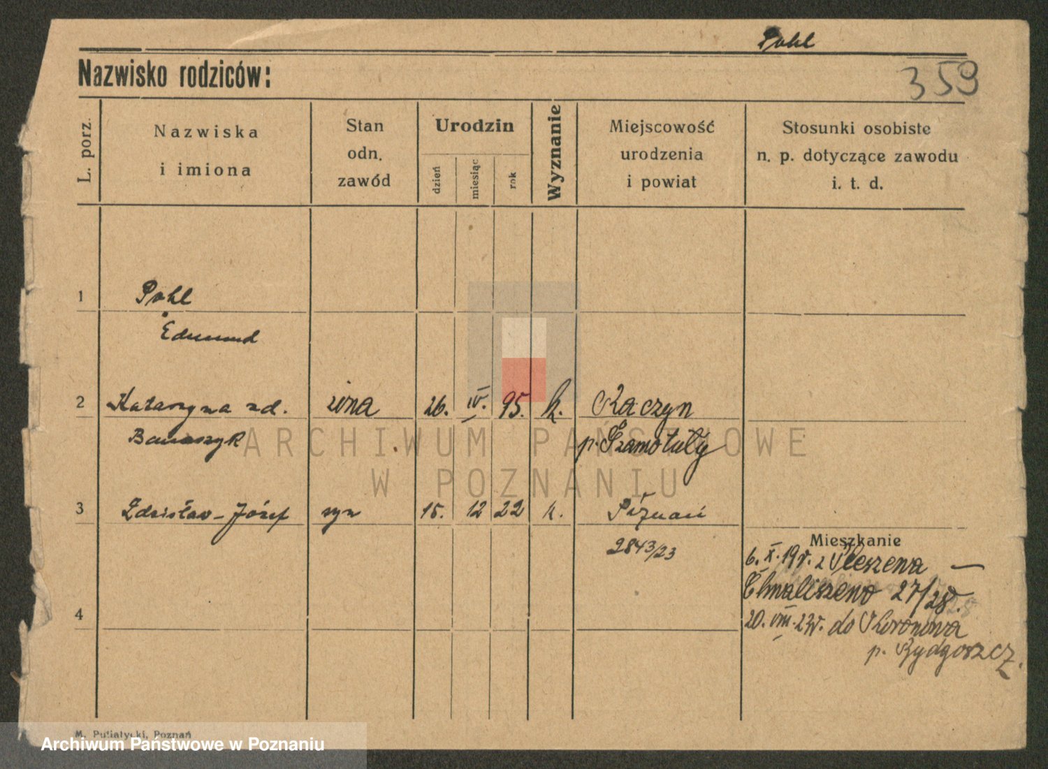 Podgląd karty osobowej dostępny jest po kliknięciu na nazwisko lub ikonkę karty. Można dokonywać powiększenia (ikony na górze) lub przechodzić między kolejnymi skanami (strzałki po bokach).