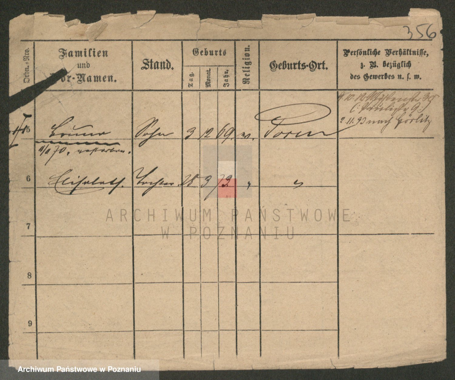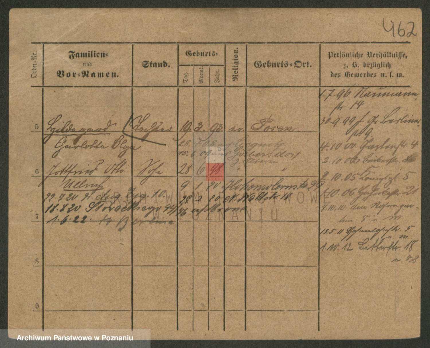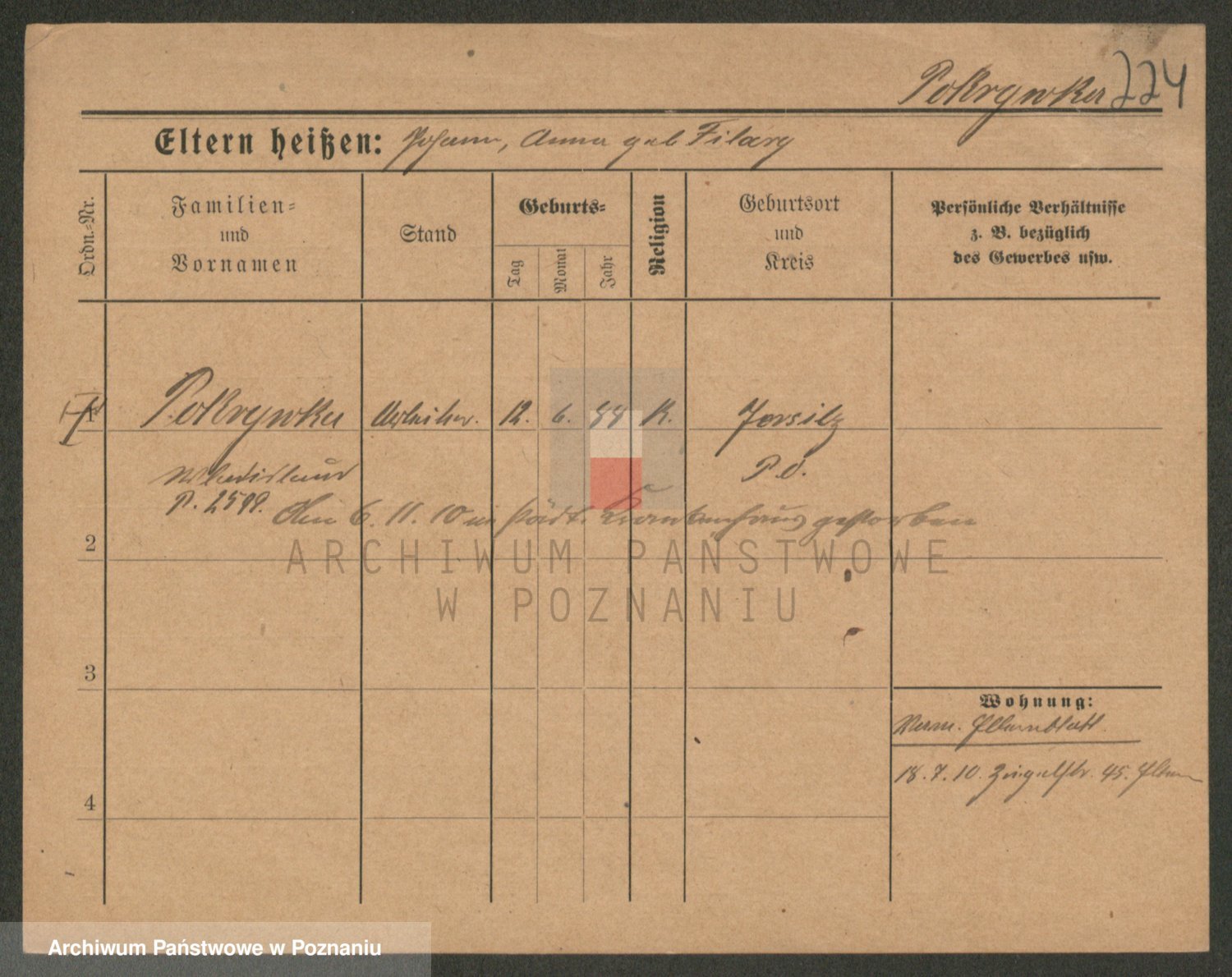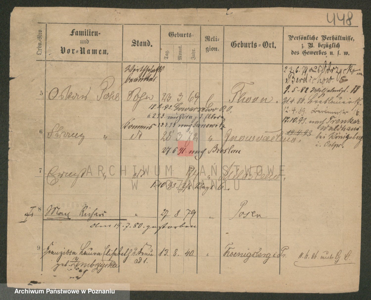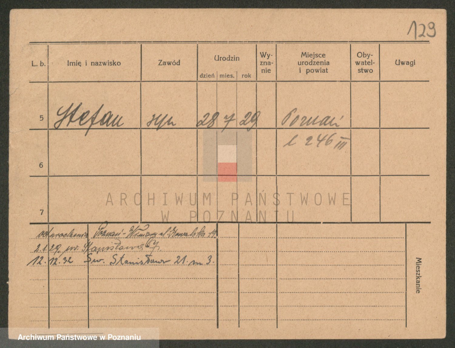 Podgląd karty osobowej dostępny jest po kliknięciu na nazwisko lub ikonkę karty. Można dokonywać powiększenia (ikony na górze) lub przechodzić między kolejnymi skanami (strzałki po bokach).