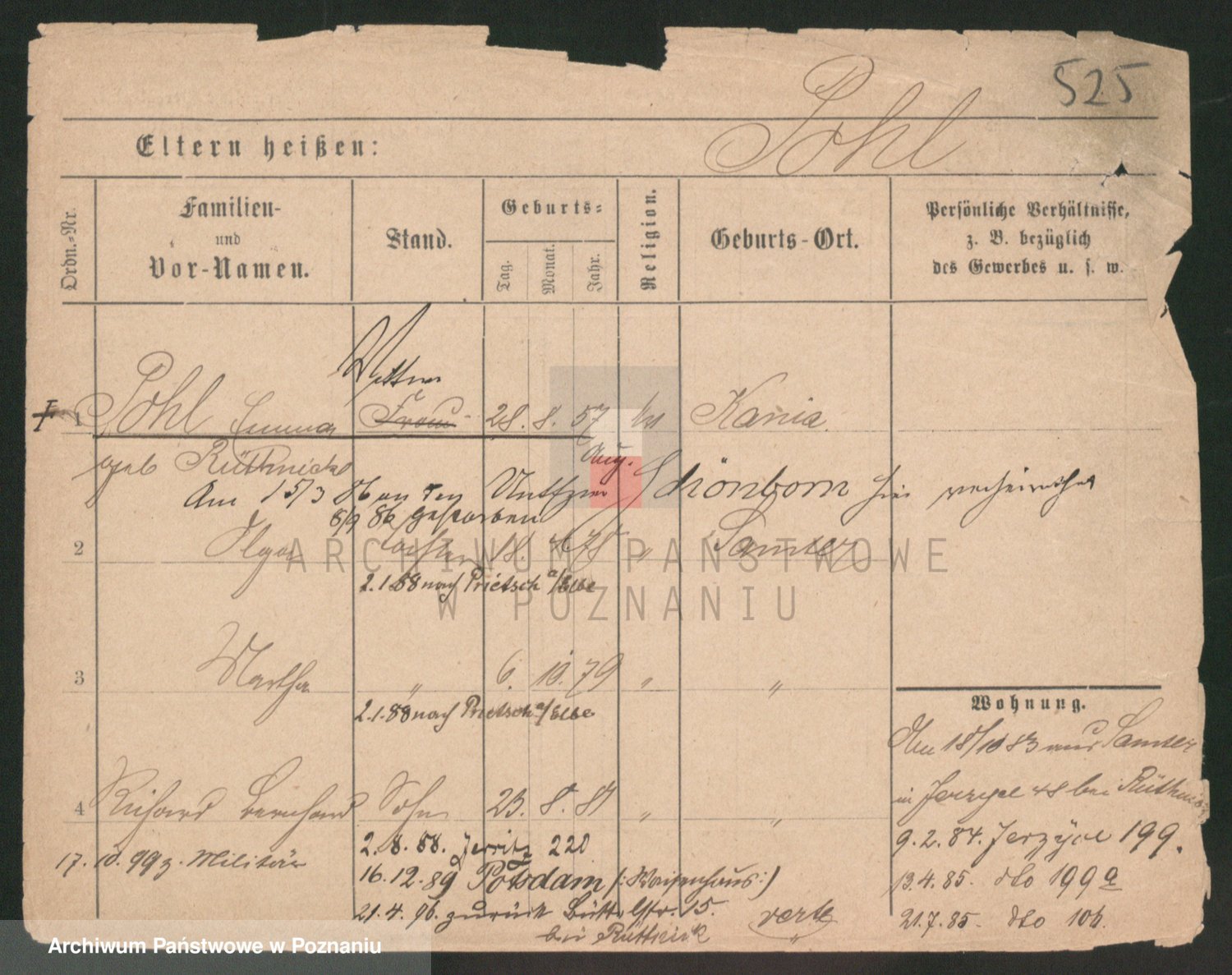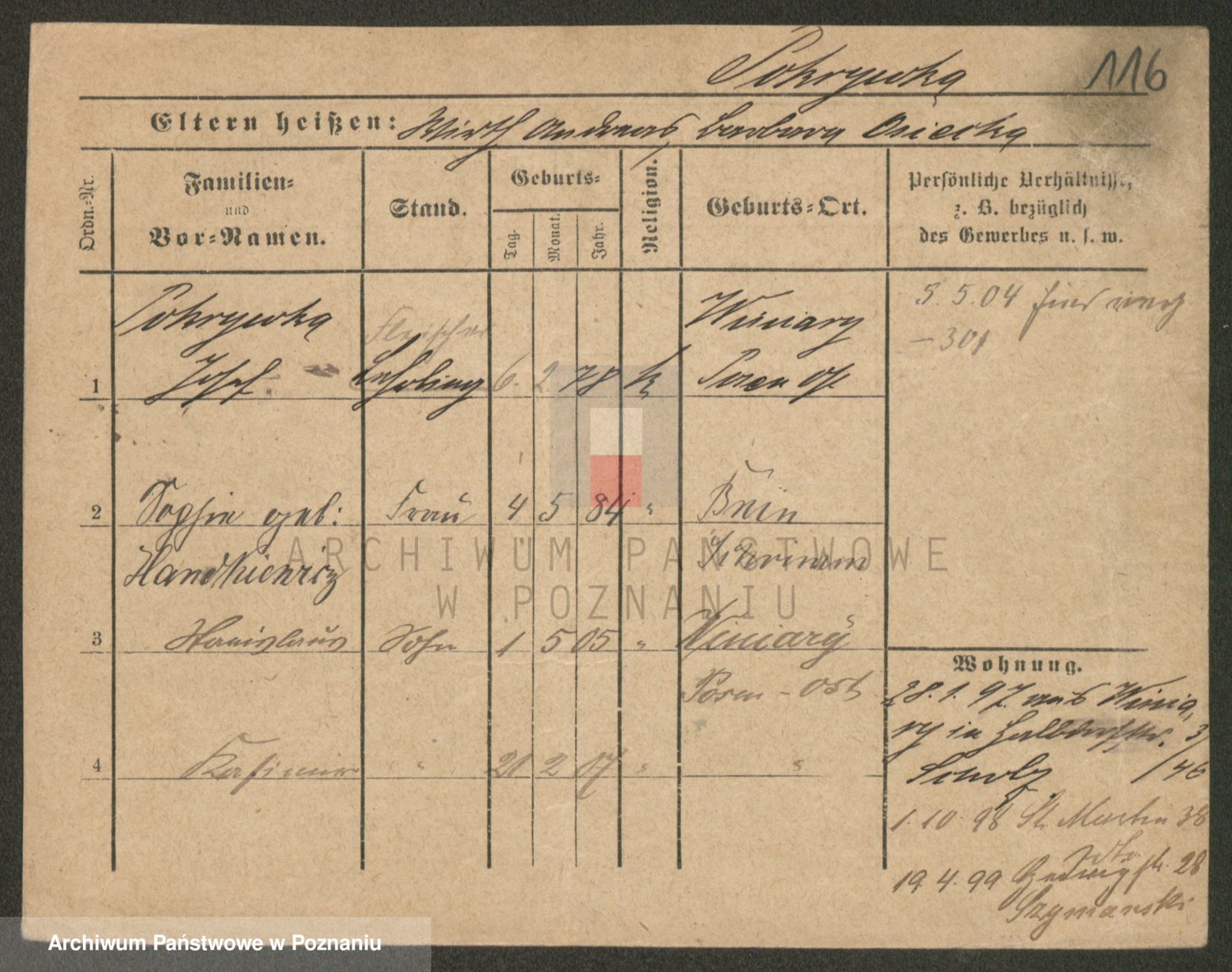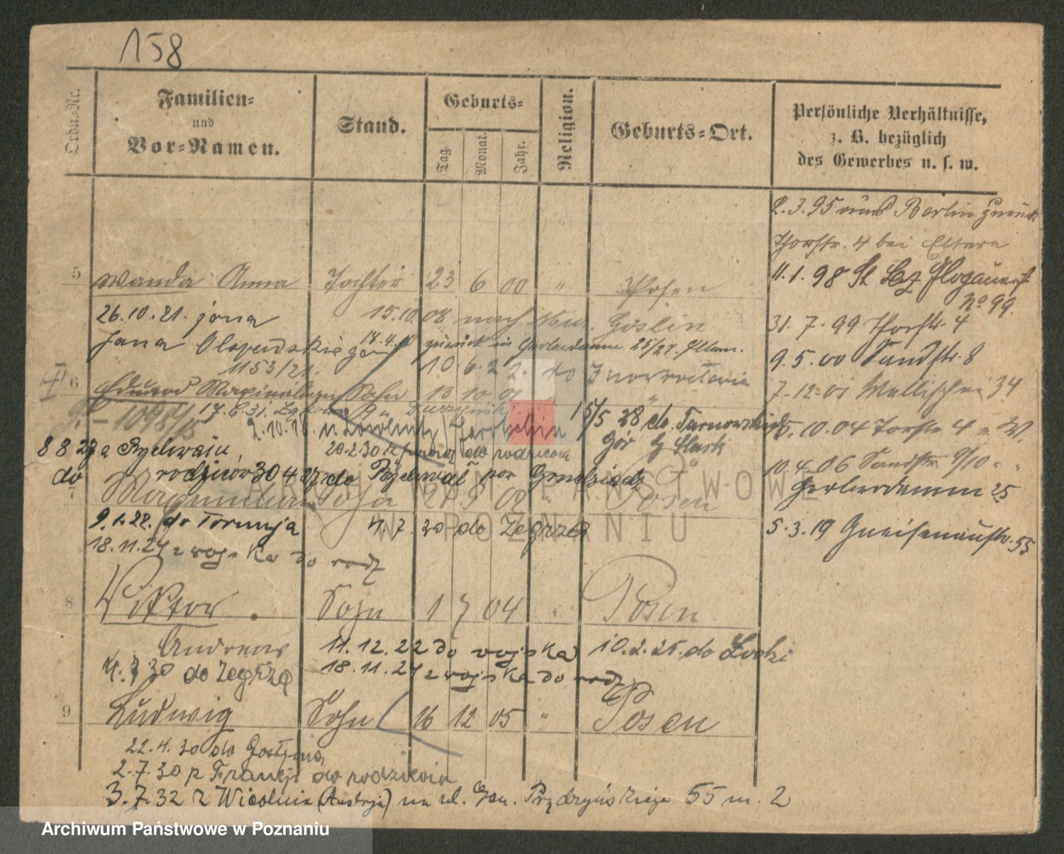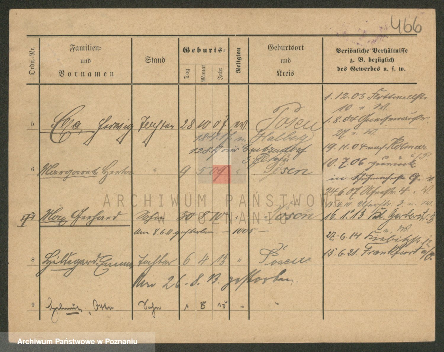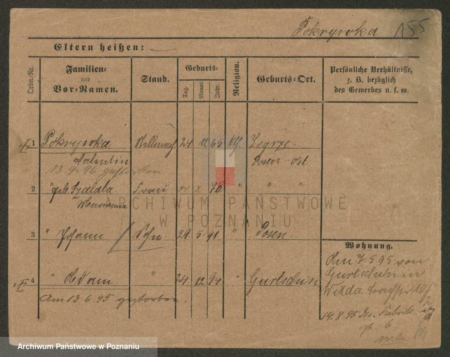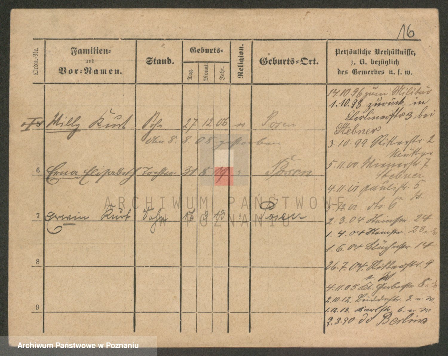 Podgląd karty osobowej dostępny jest po kliknięciu na nazwisko lub ikonkę karty. Można dokonywać powiększenia (ikony na górze) lub przechodzić między kolejnymi skanami (strzałki po bokach).