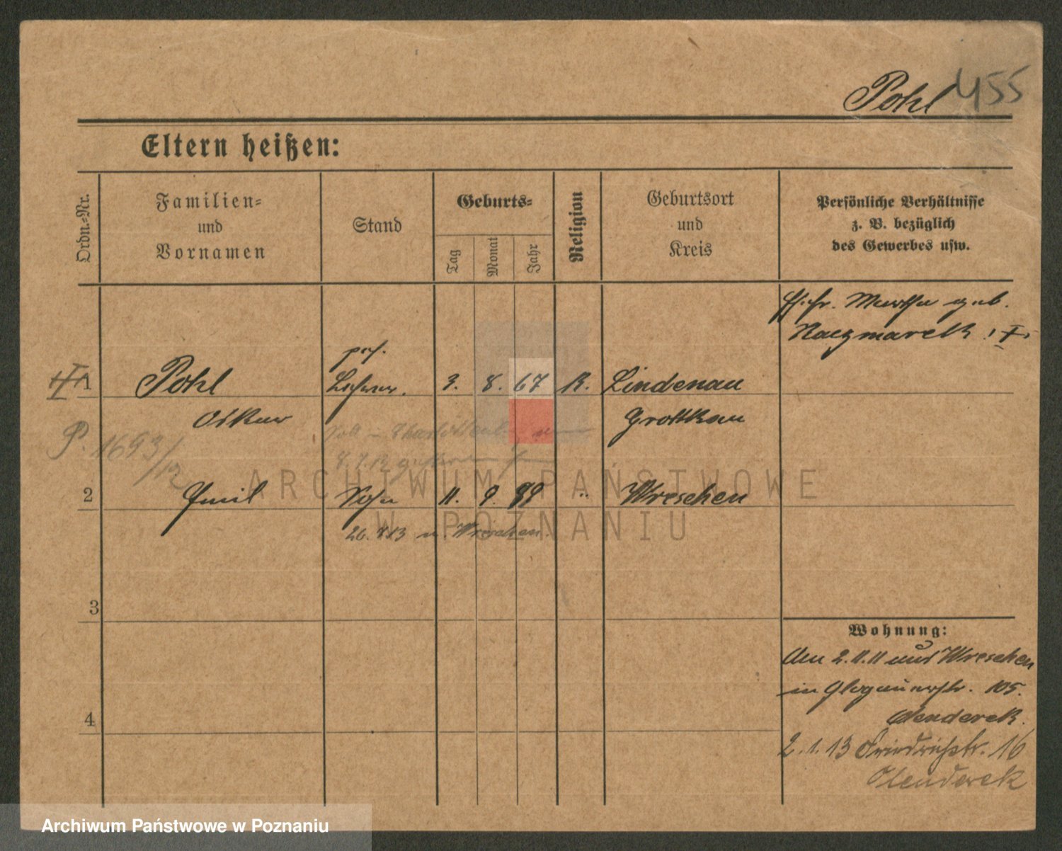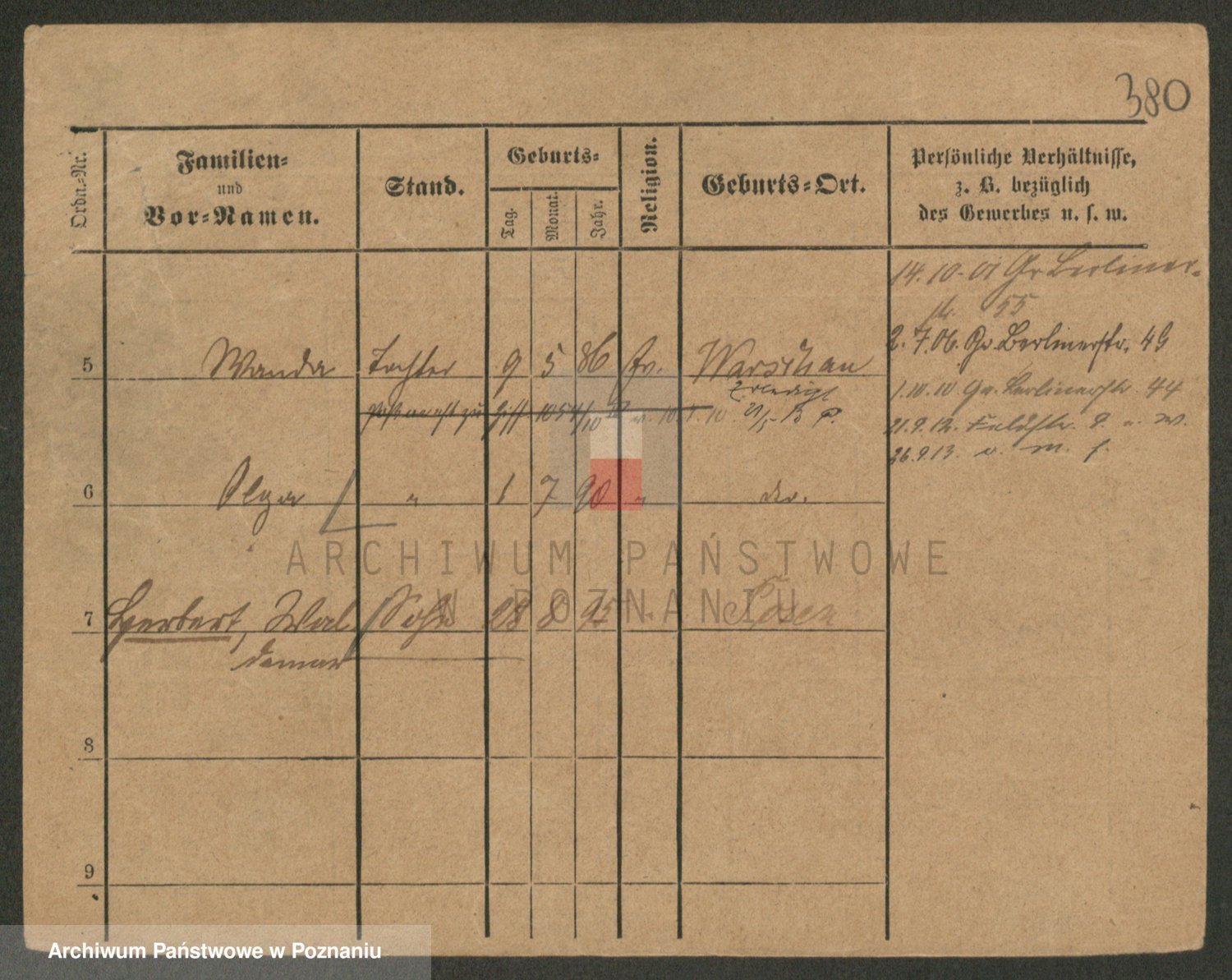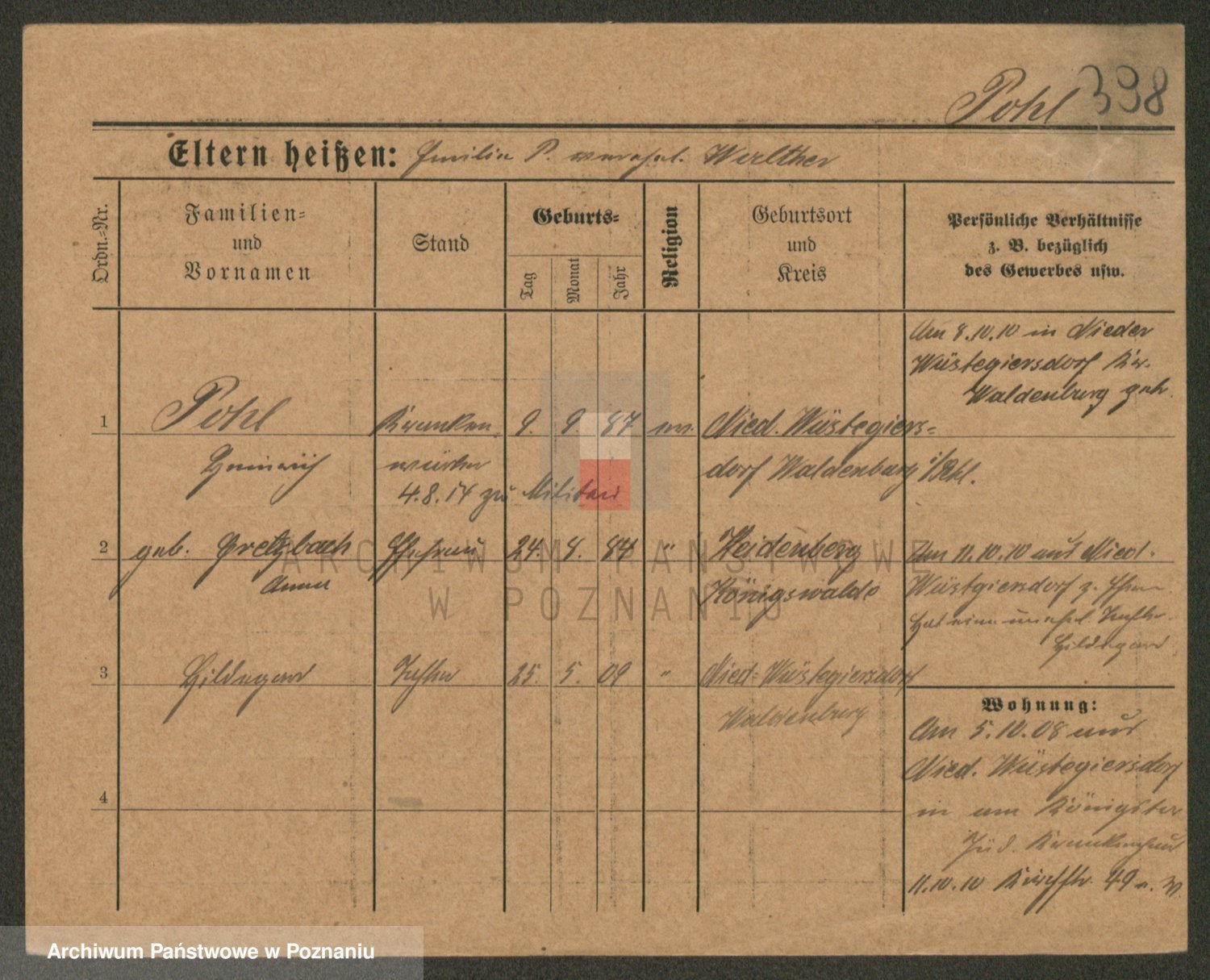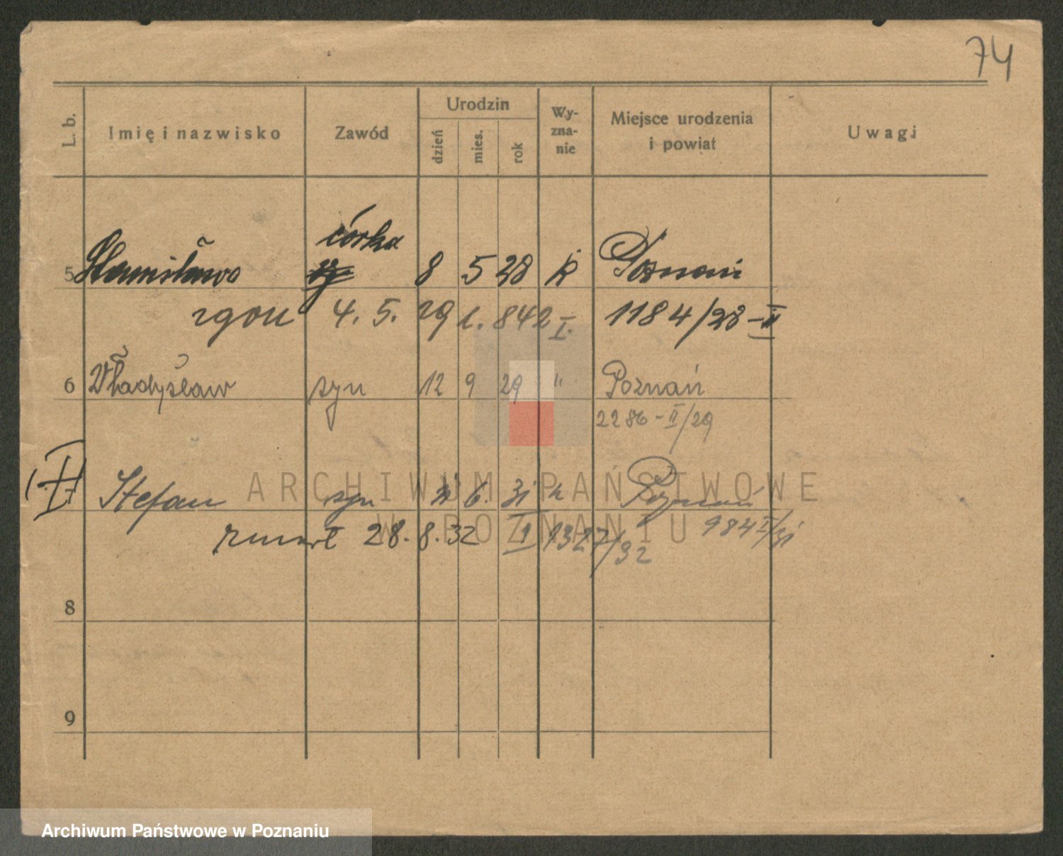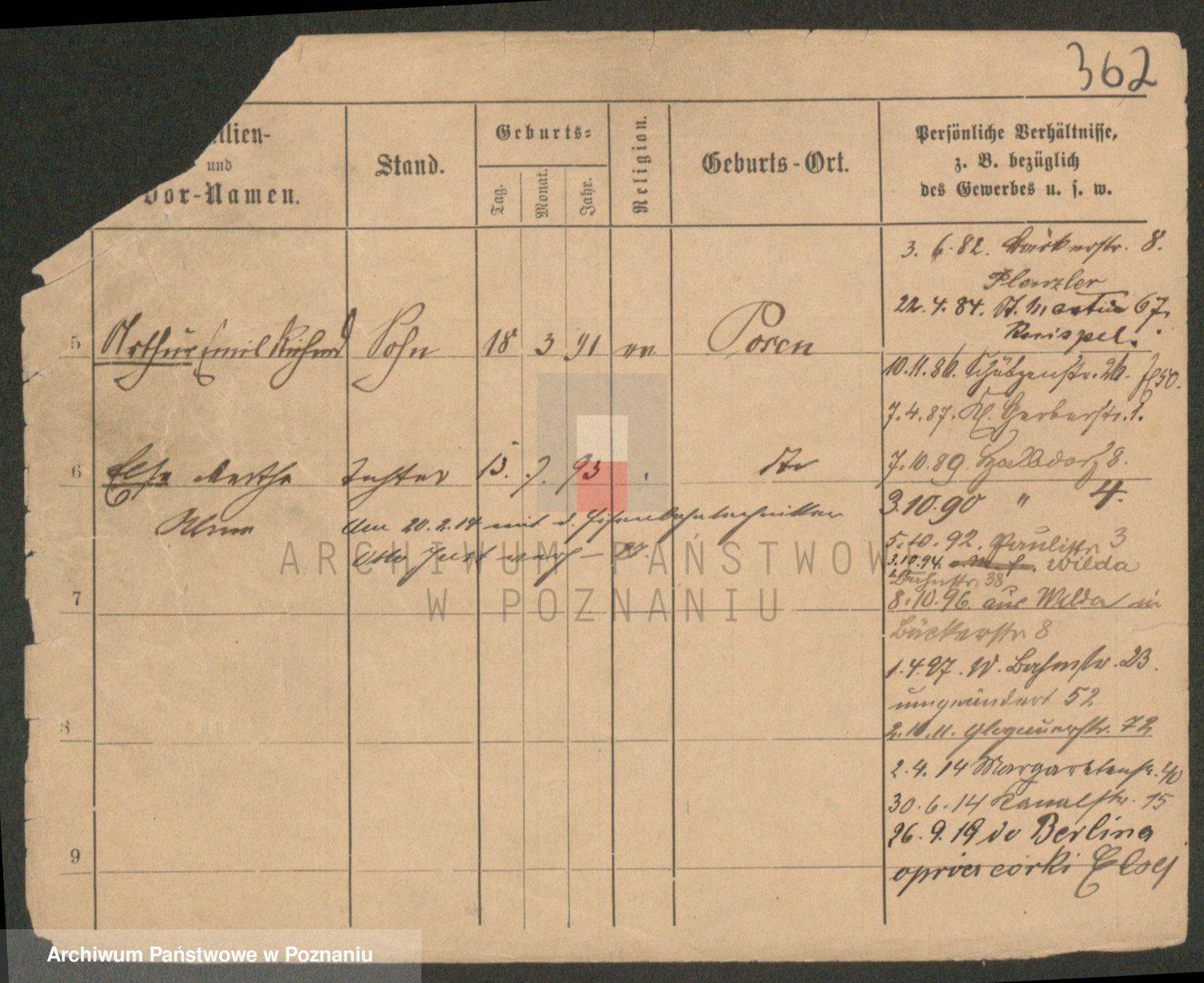 Podgląd karty osobowej dostępny jest po kliknięciu na nazwisko lub ikonkę karty. Można dokonywać powiększenia (ikony na górze) lub przechodzić między kolejnymi skanami (strzałki po bokach).