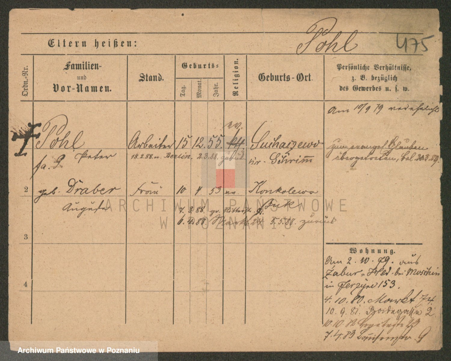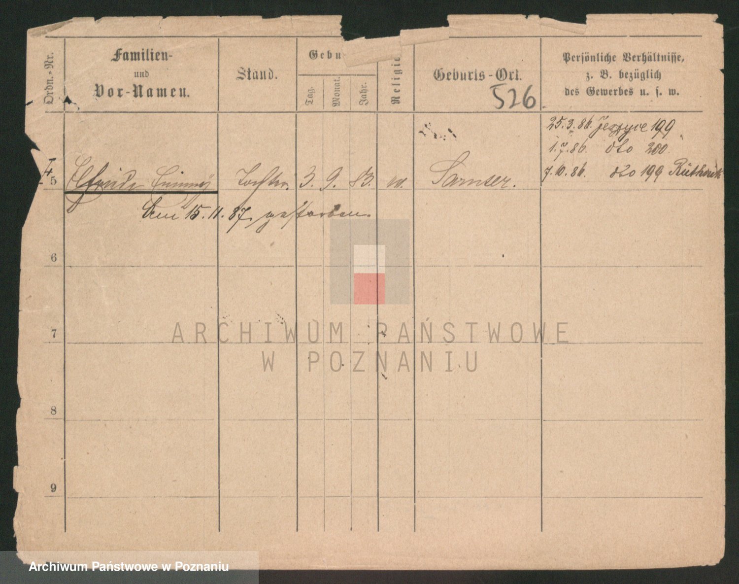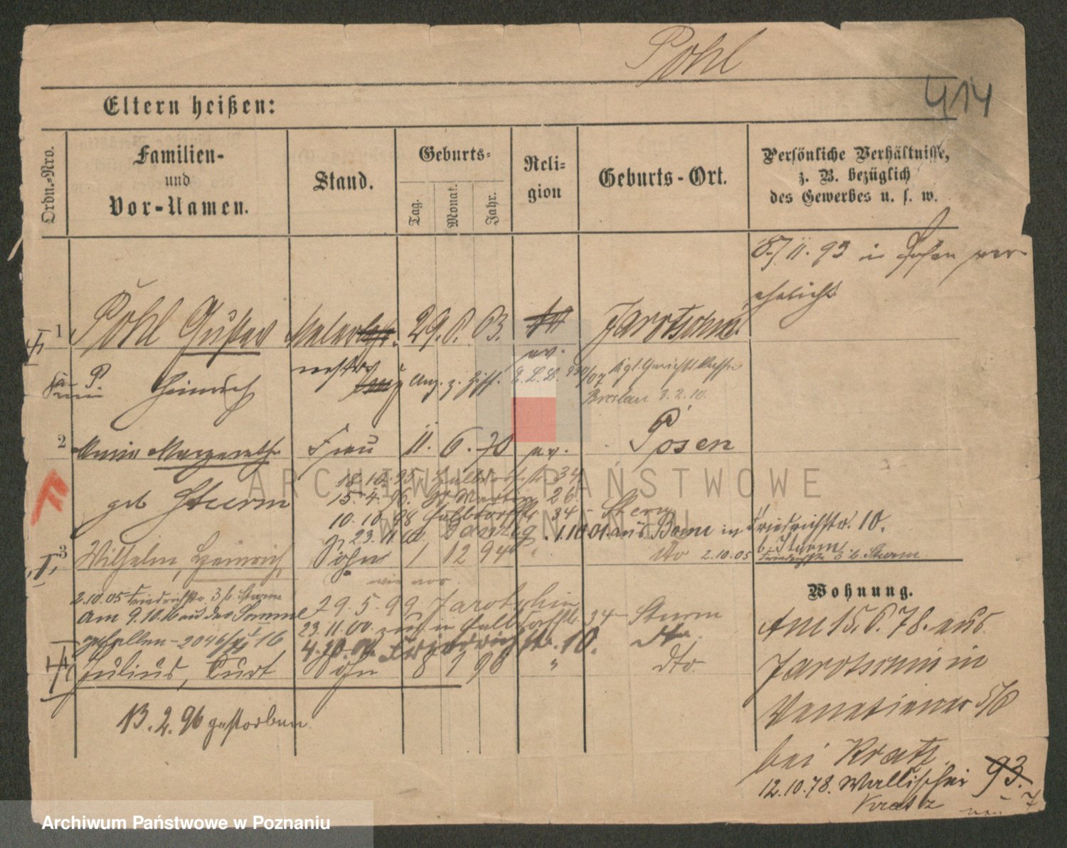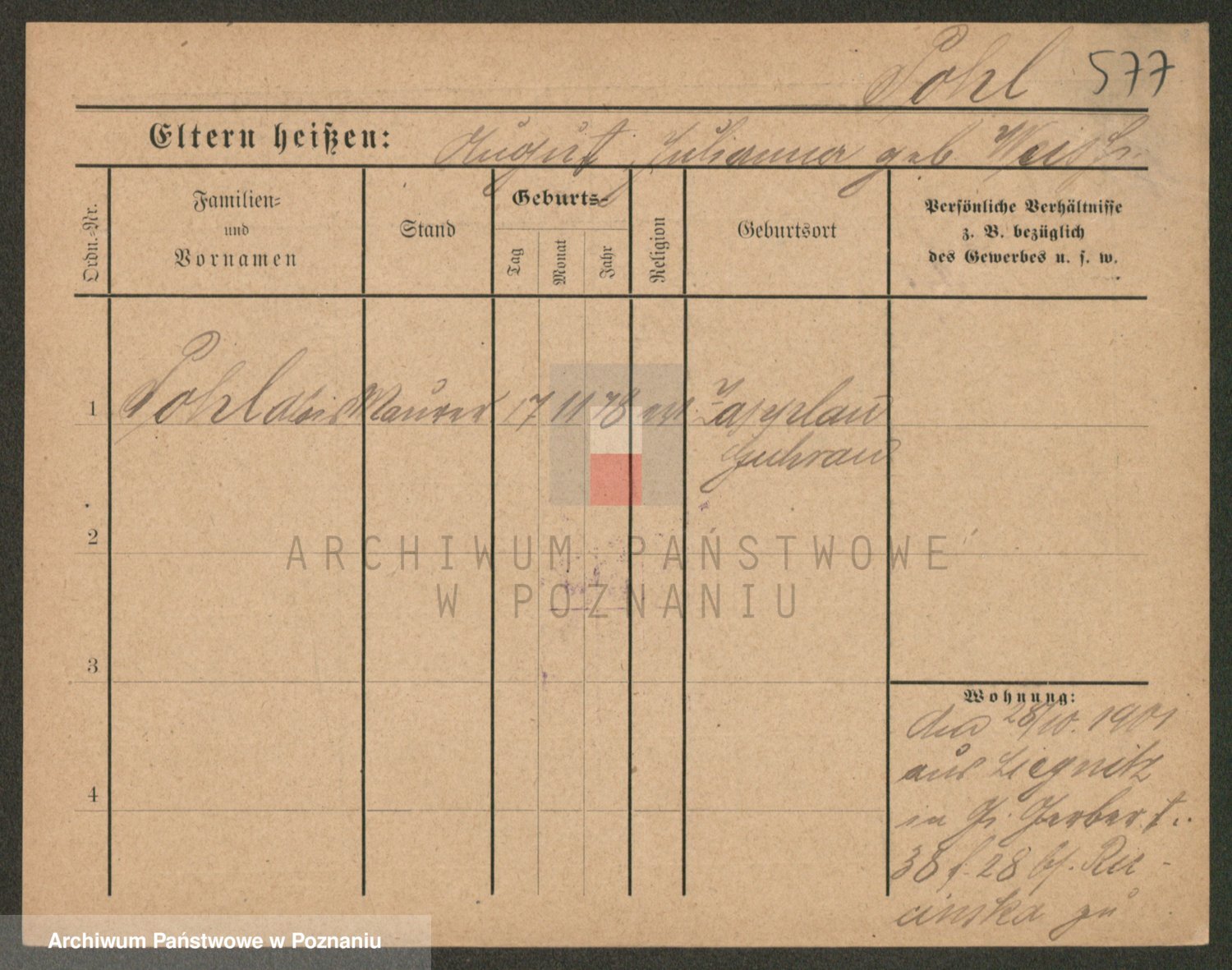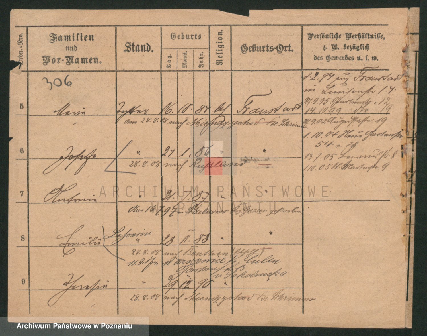 Podgląd karty osobowej dostępny jest po kliknięciu na nazwisko lub ikonkę karty. Można dokonywać powiększenia (ikony na górze) lub przechodzić między kolejnymi skanami (strzałki po bokach).