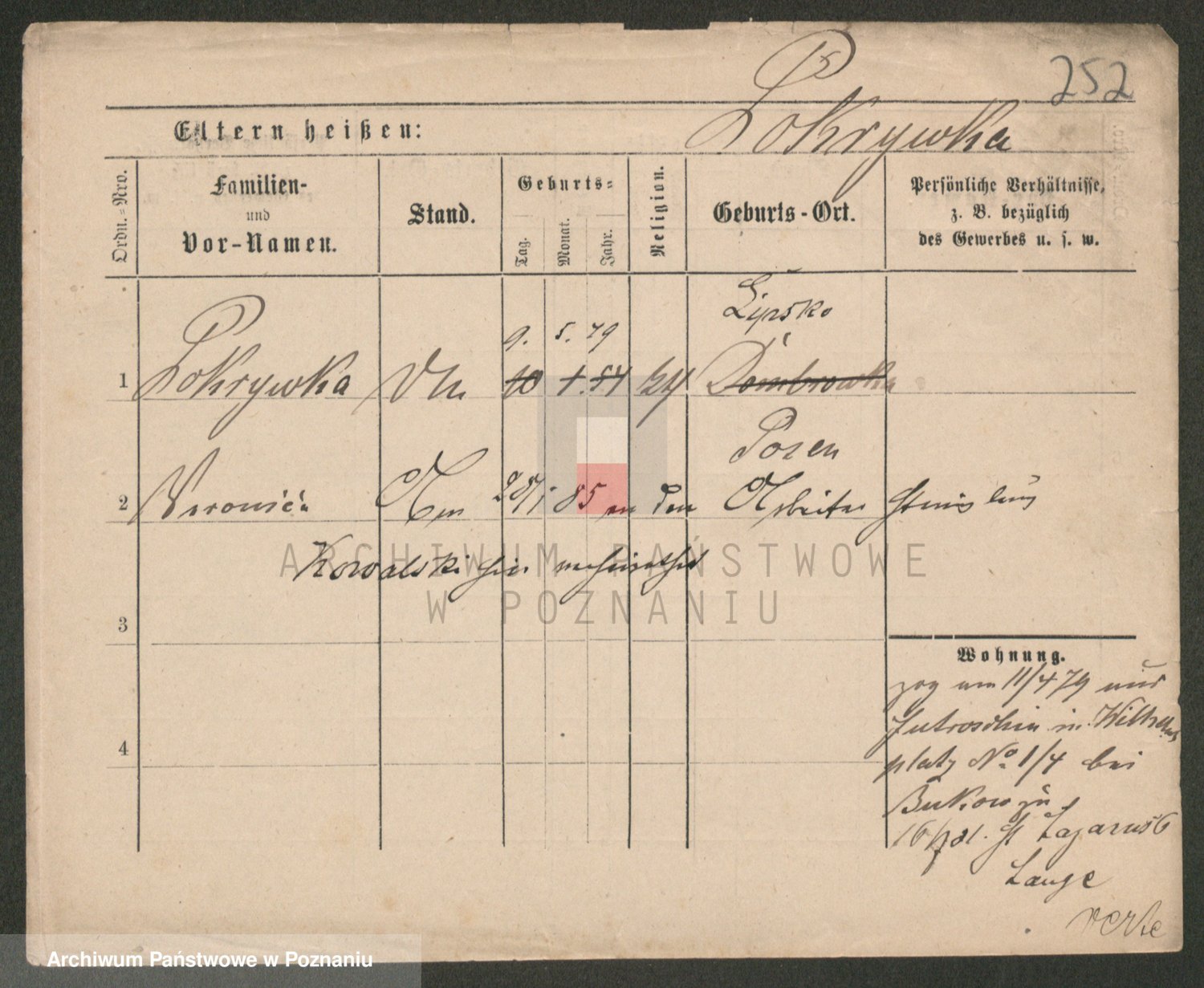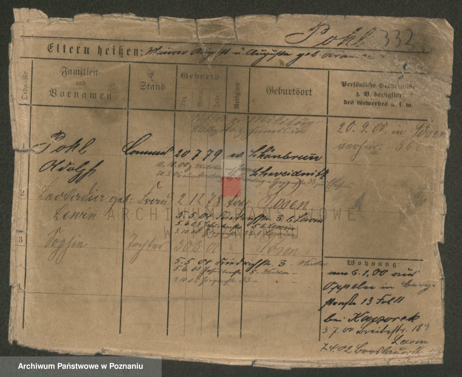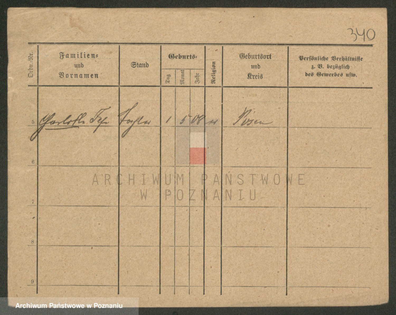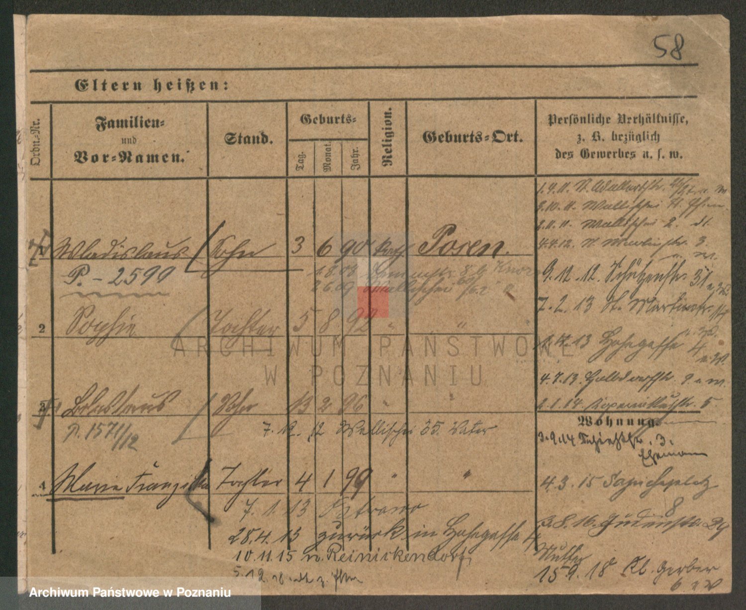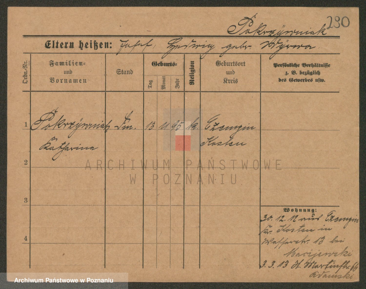 Podgląd karty osobowej dostępny jest po kliknięciu na nazwisko lub ikonkę karty. Można dokonywać powiększenia (ikony na górze) lub przechodzić między kolejnymi skanami (strzałki po bokach).