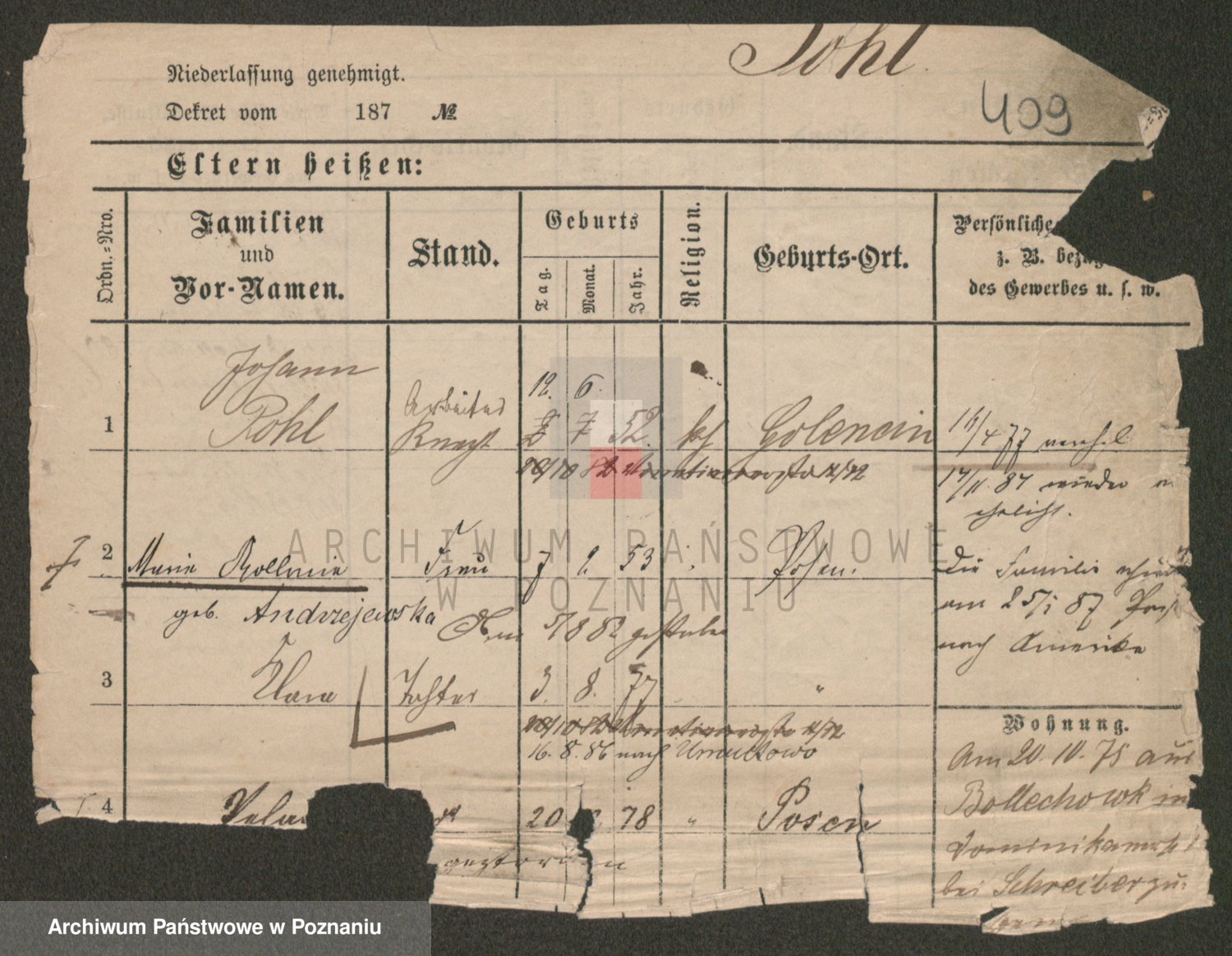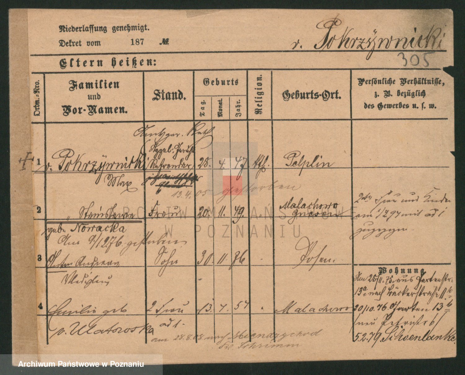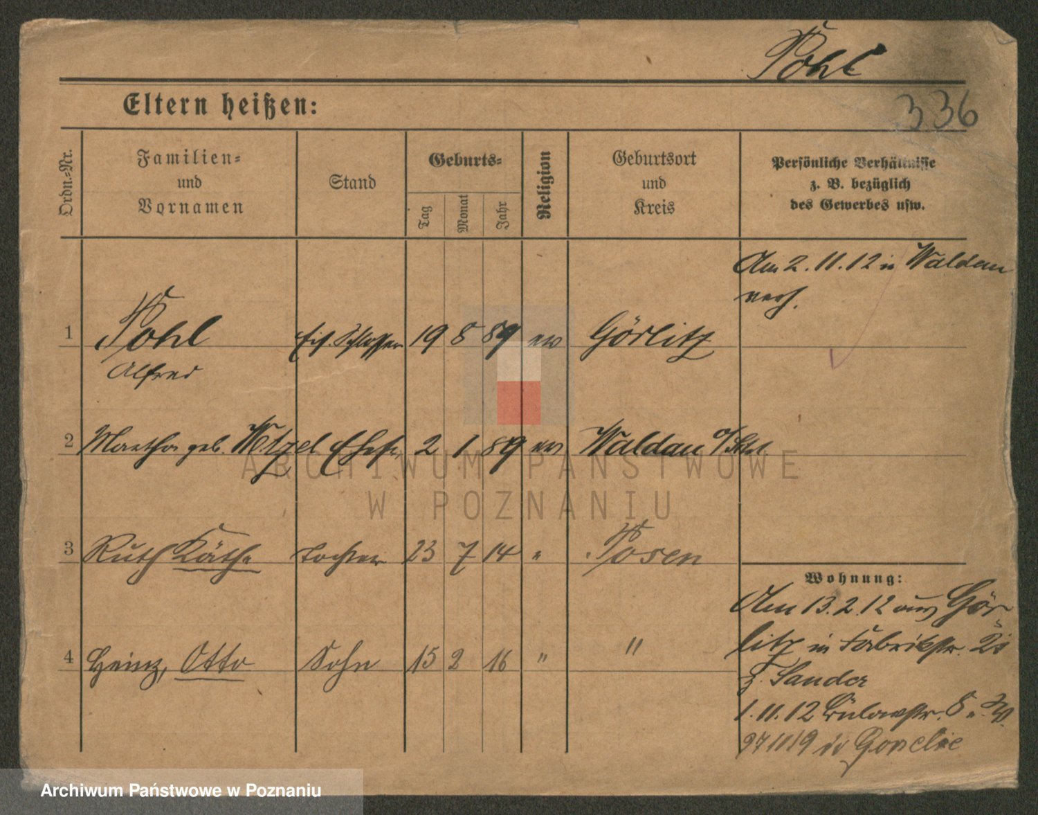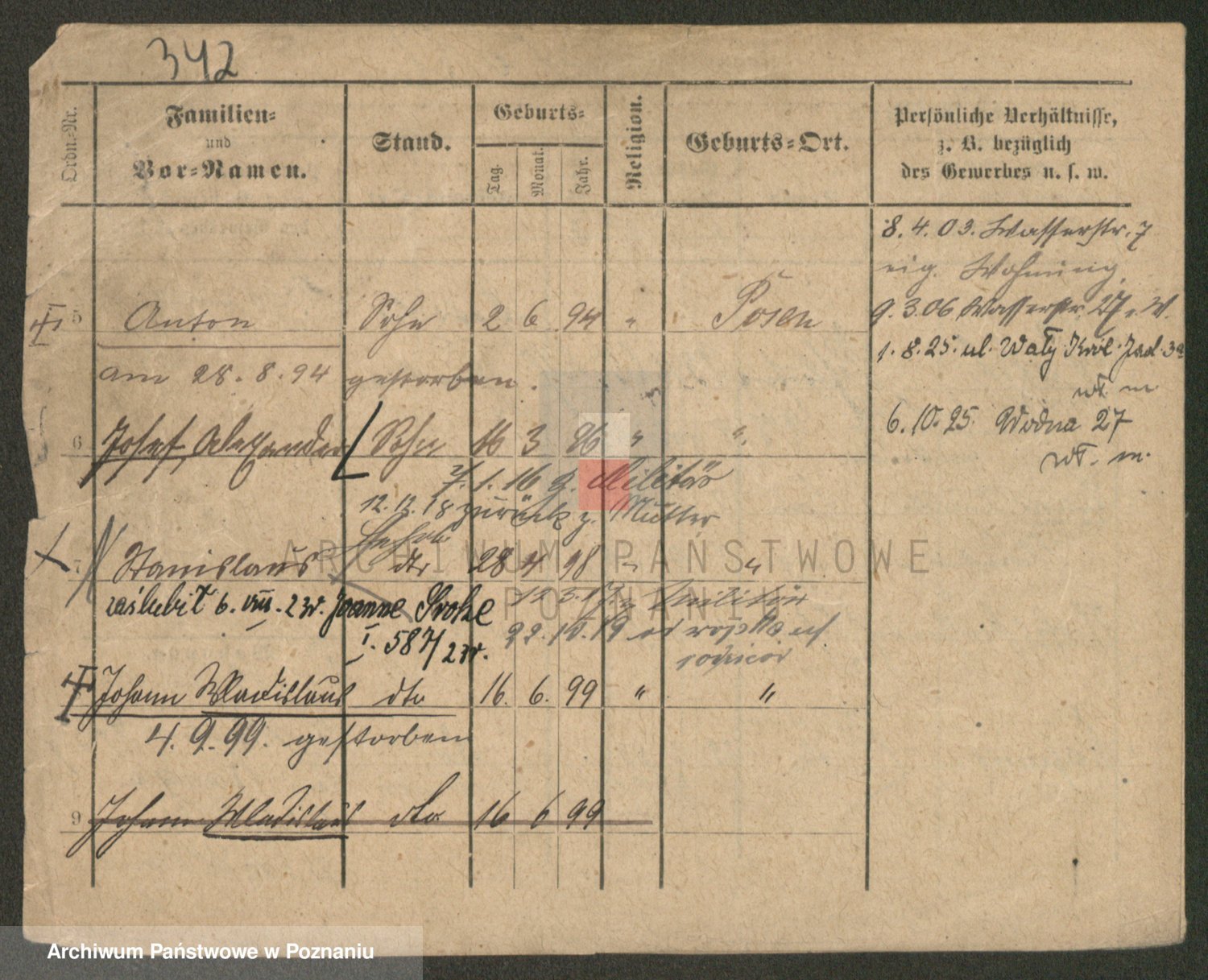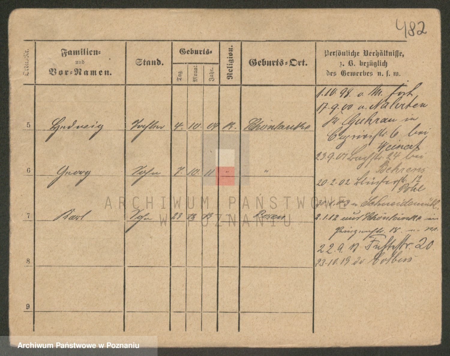 Podgląd karty osobowej dostępny jest po kliknięciu na nazwisko lub ikonkę karty. Można dokonywać powiększenia (ikony na górze) lub przechodzić między kolejnymi skanami (strzałki po bokach).