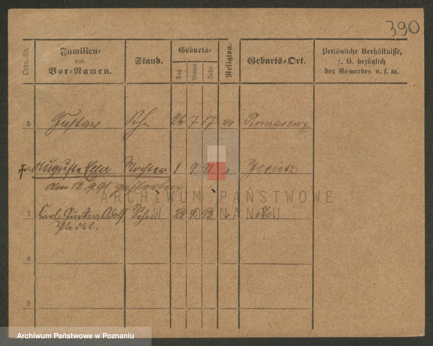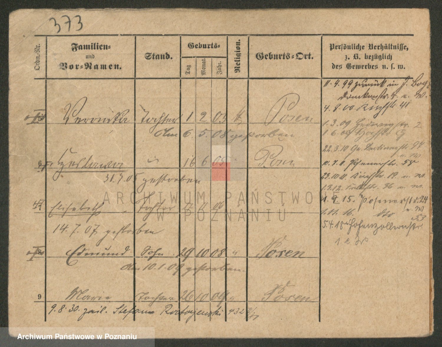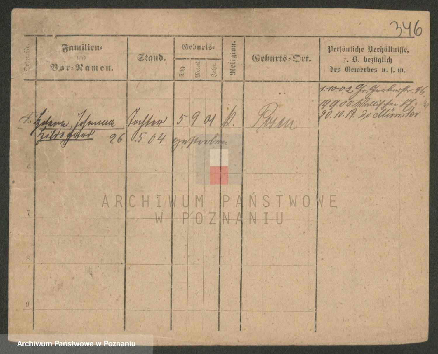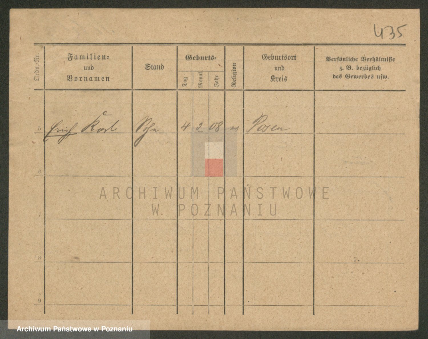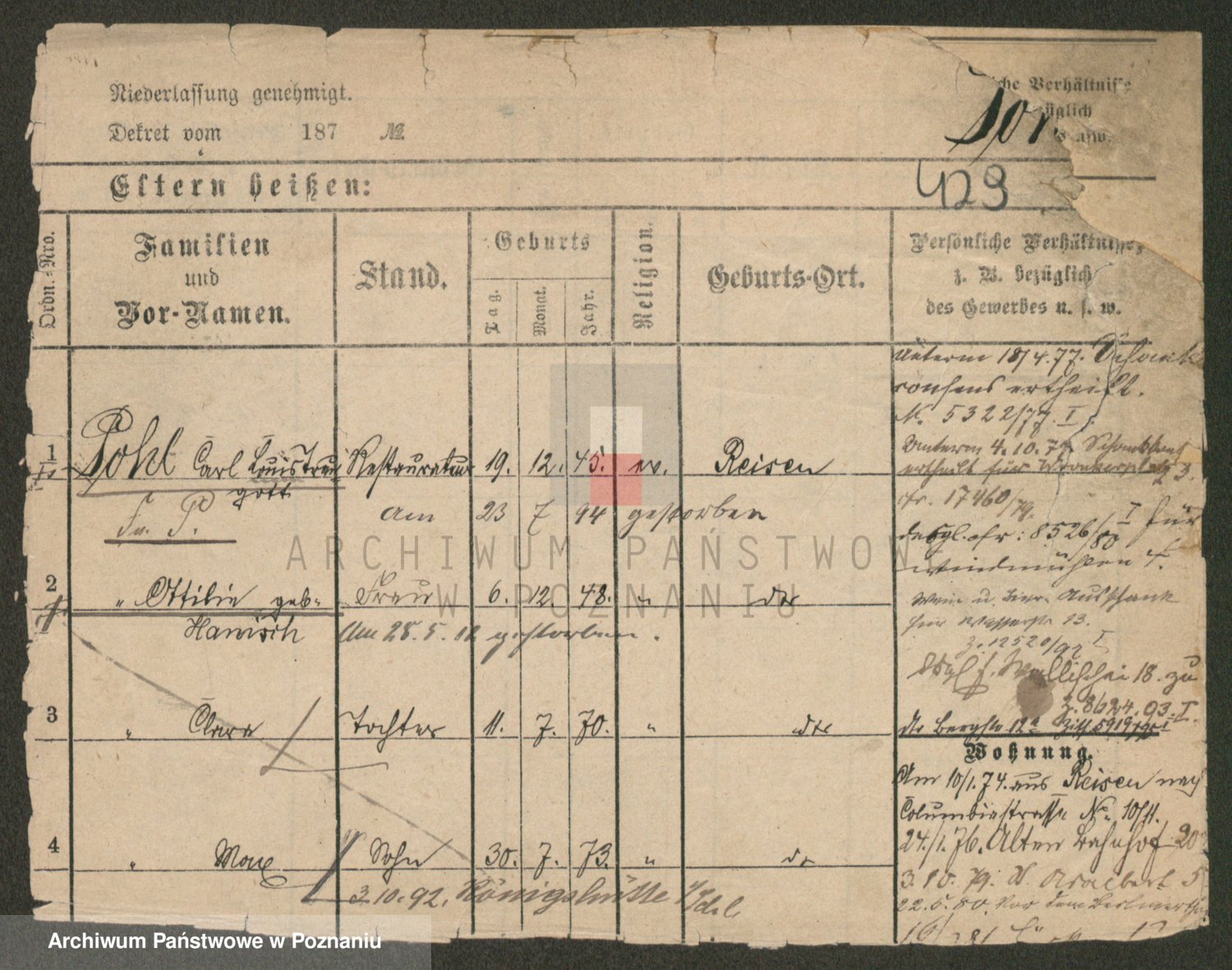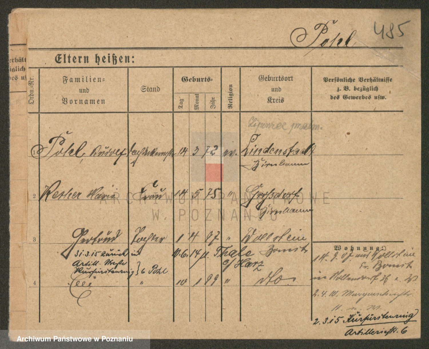 Podgląd karty osobowej dostępny jest po kliknięciu na nazwisko lub ikonkę karty. Można dokonywać powiększenia (ikony na górze) lub przechodzić między kolejnymi skanami (strzałki po bokach).