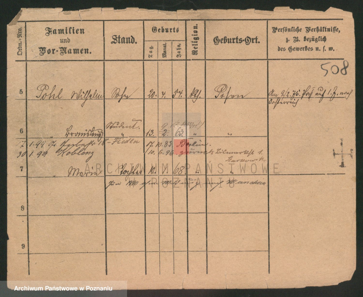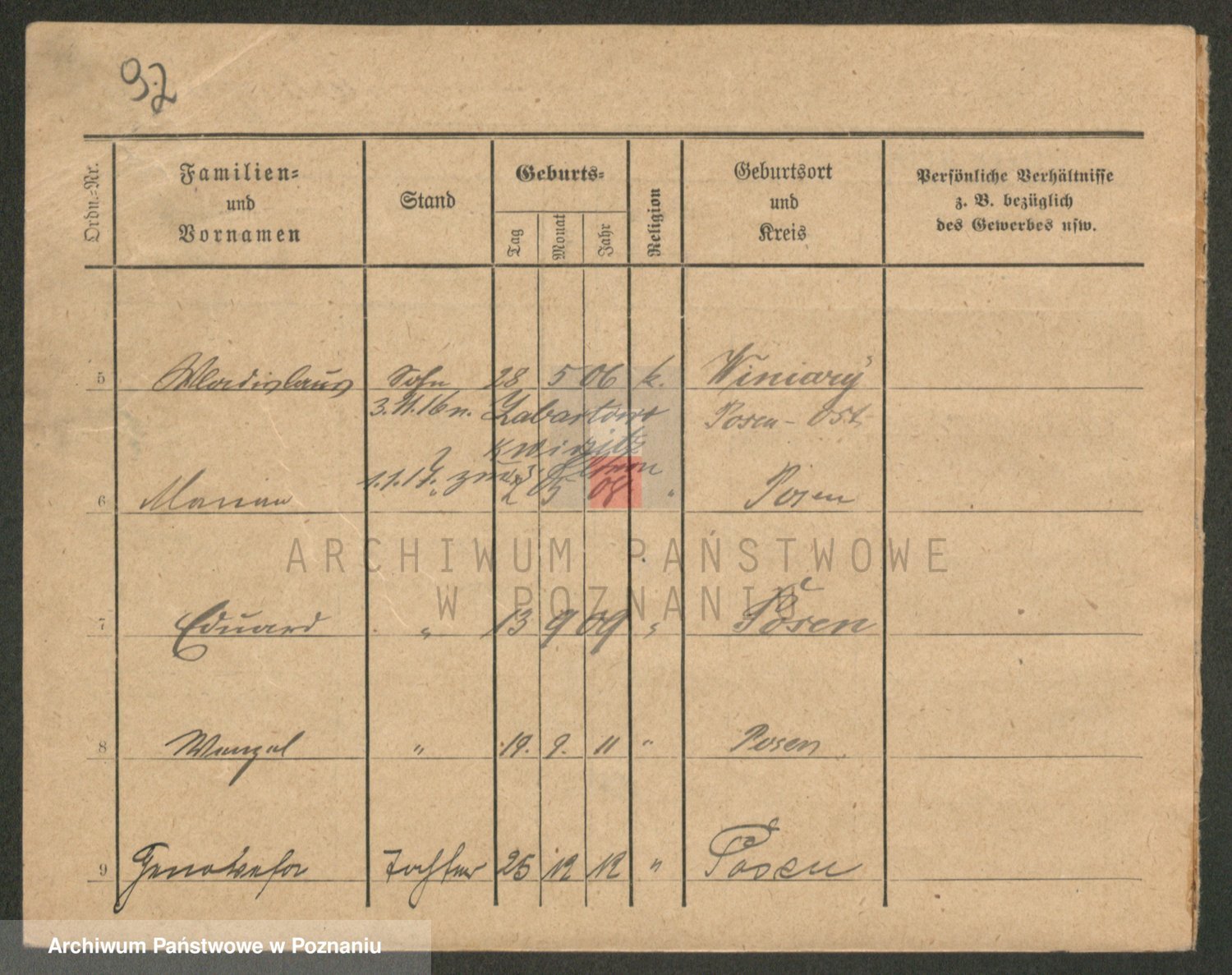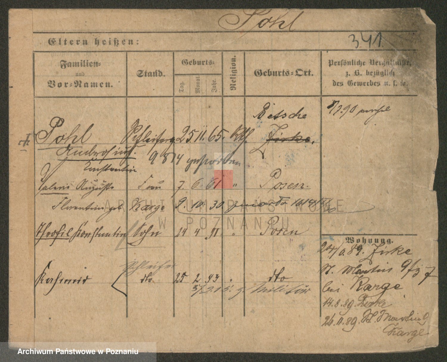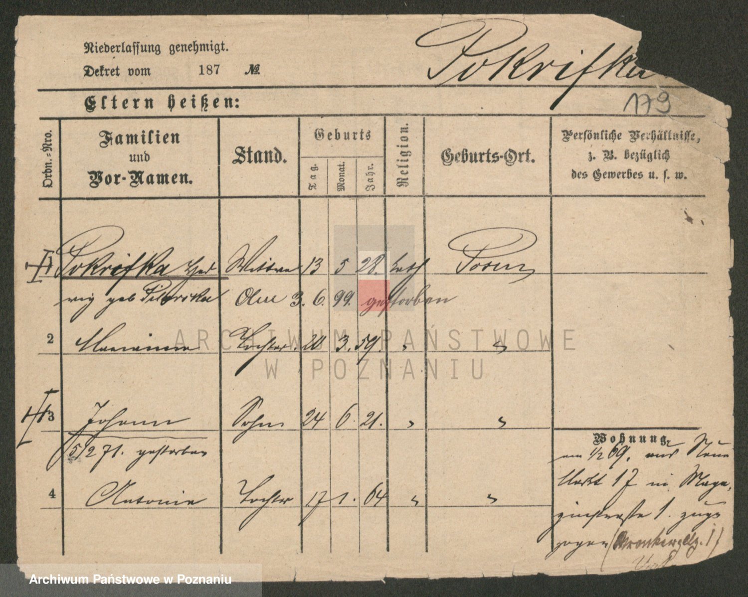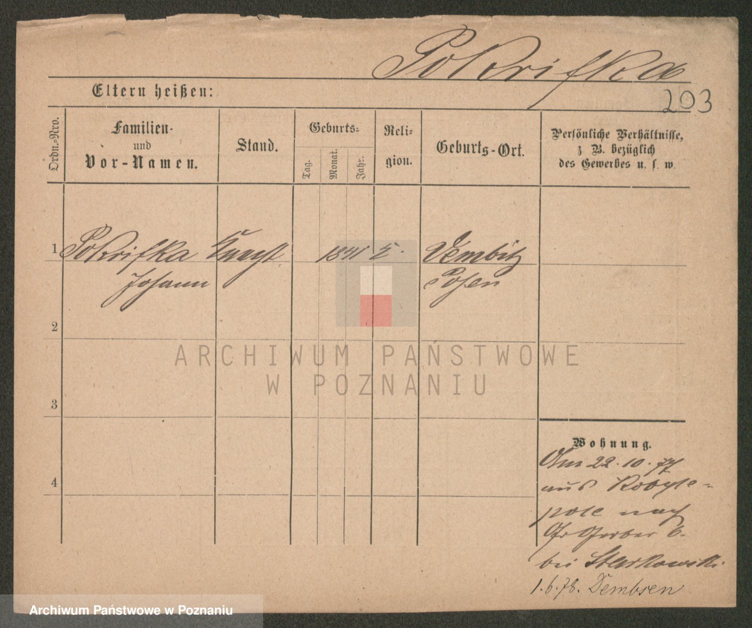 Podgląd karty osobowej dostępny jest po kliknięciu na nazwisko lub ikonkę karty. Można dokonywać powiększenia (ikony na górze) lub przechodzić między kolejnymi skanami (strzałki po bokach).