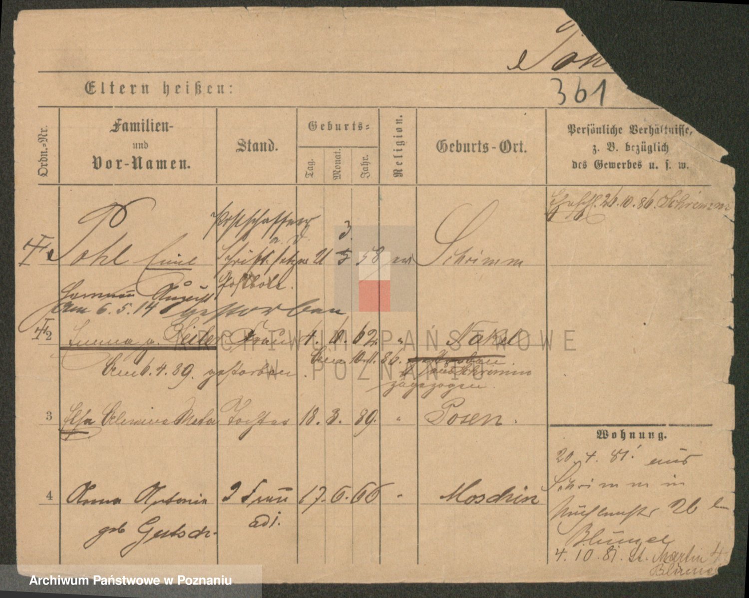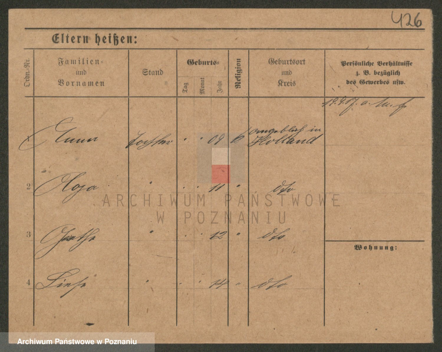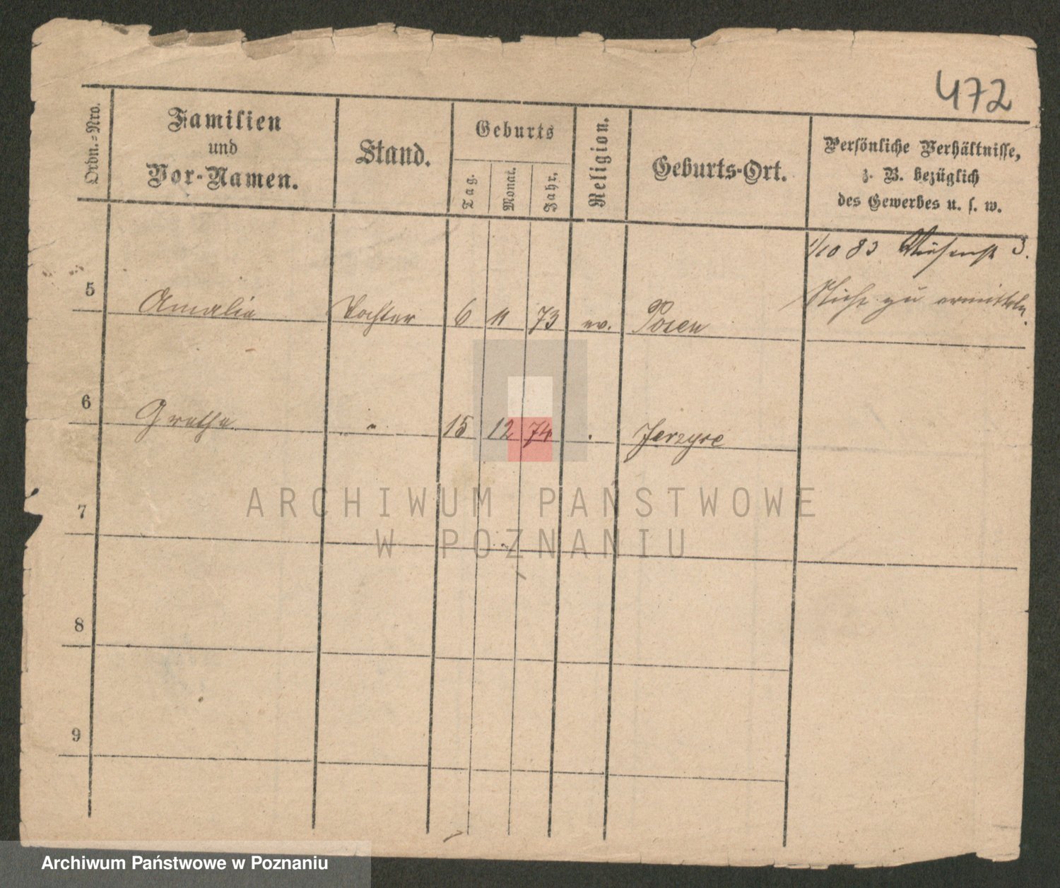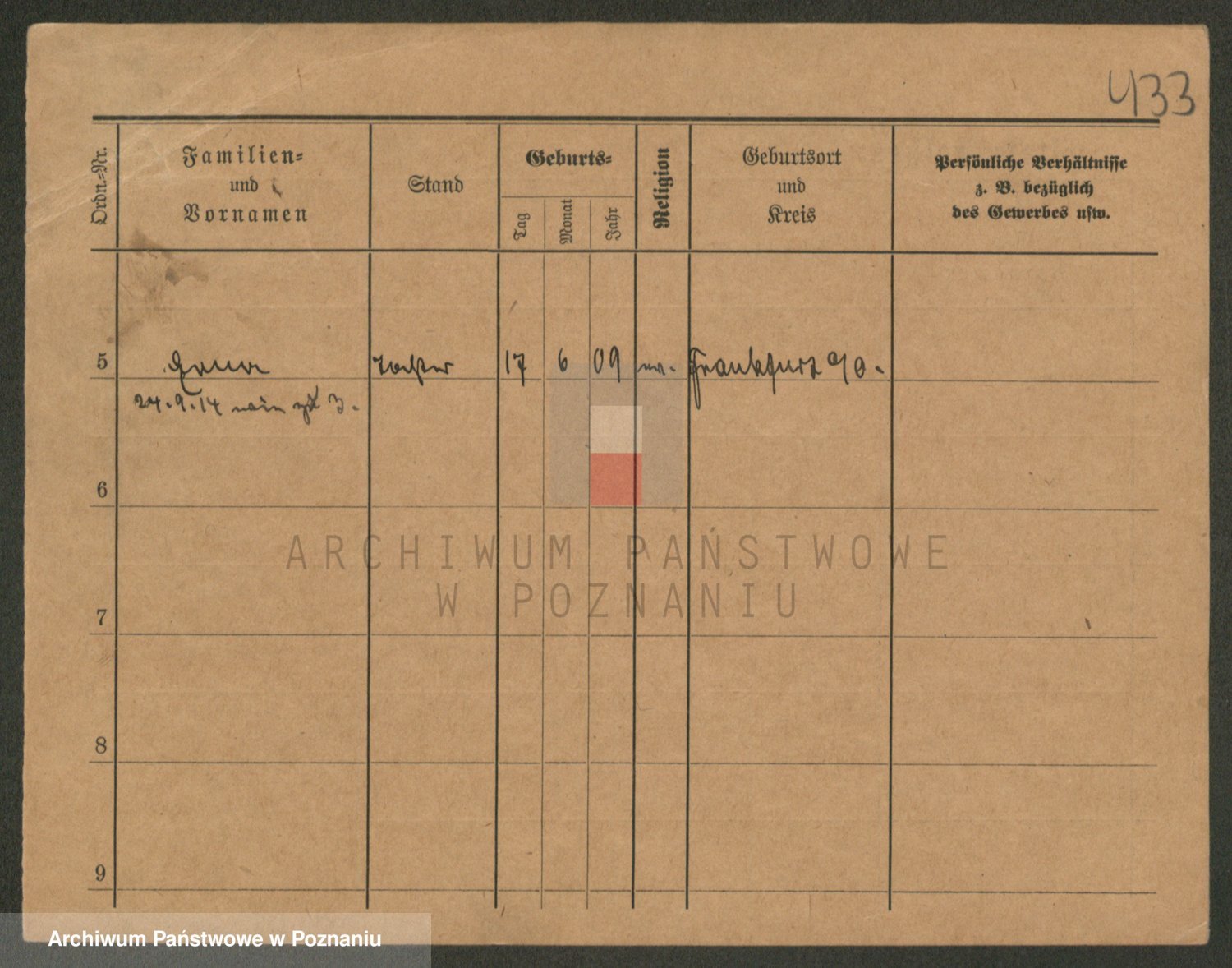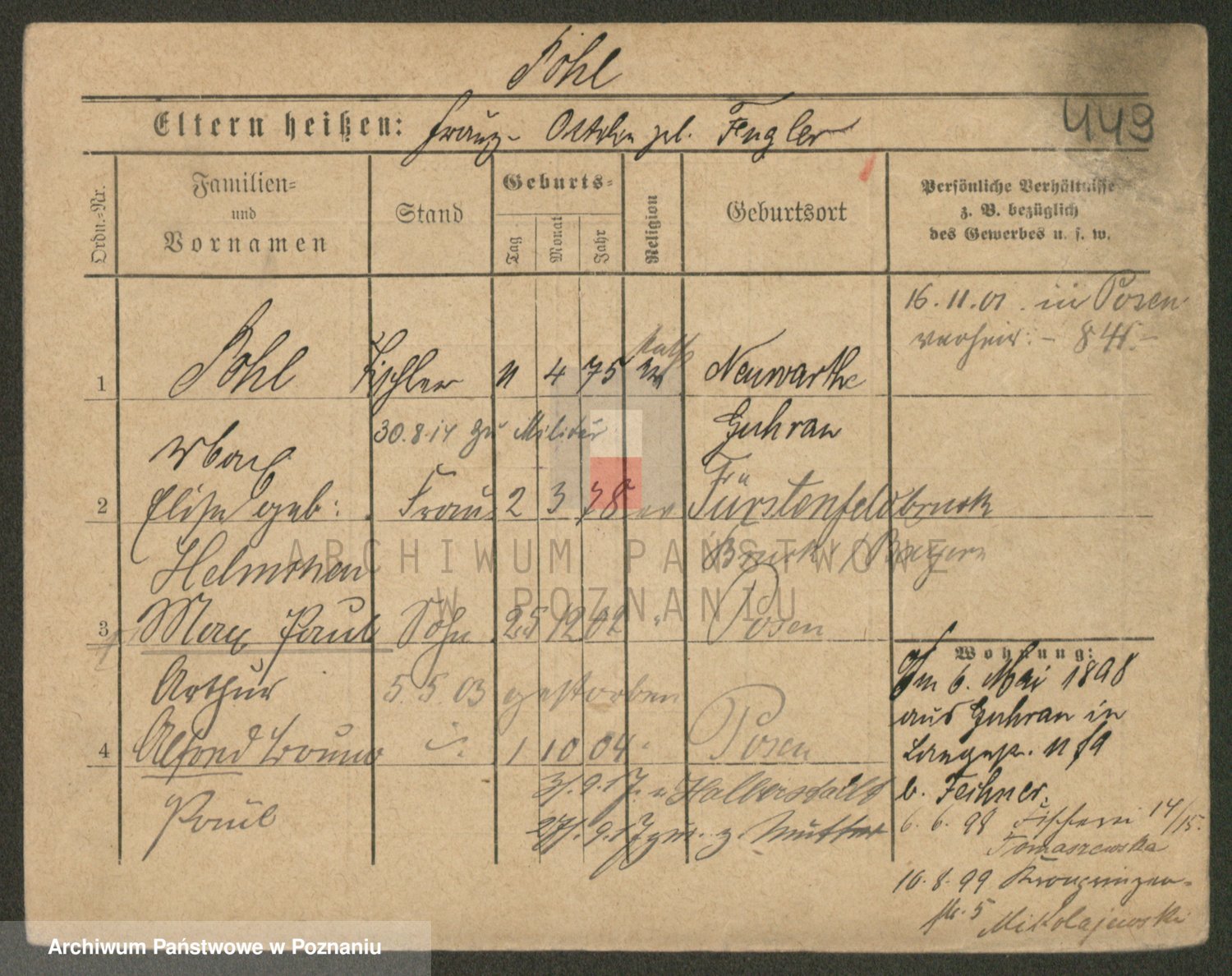 Podgląd karty osobowej dostępny jest po kliknięciu na nazwisko lub ikonkę karty. Można dokonywać powiększenia (ikony na górze) lub przechodzić między kolejnymi skanami (strzałki po bokach).