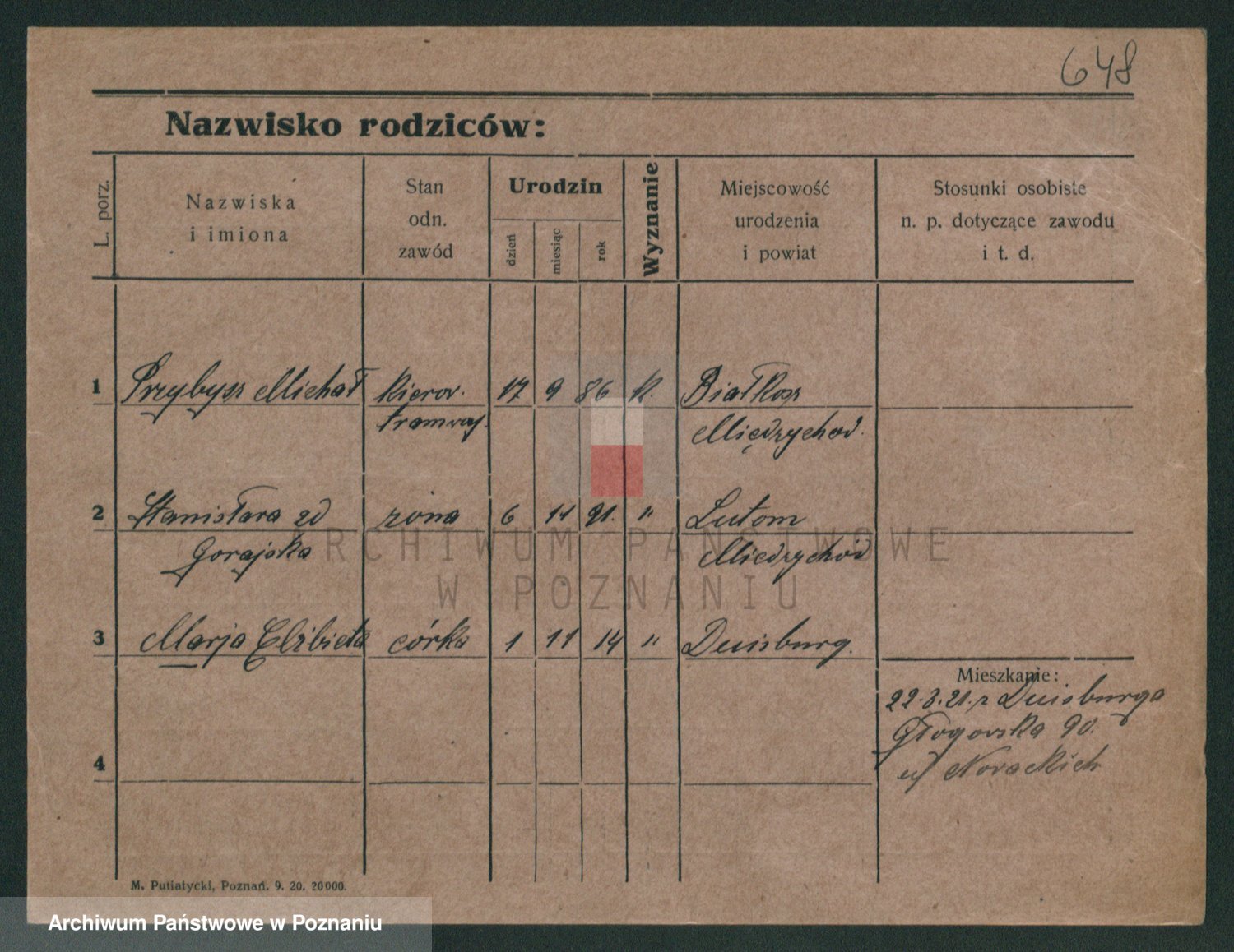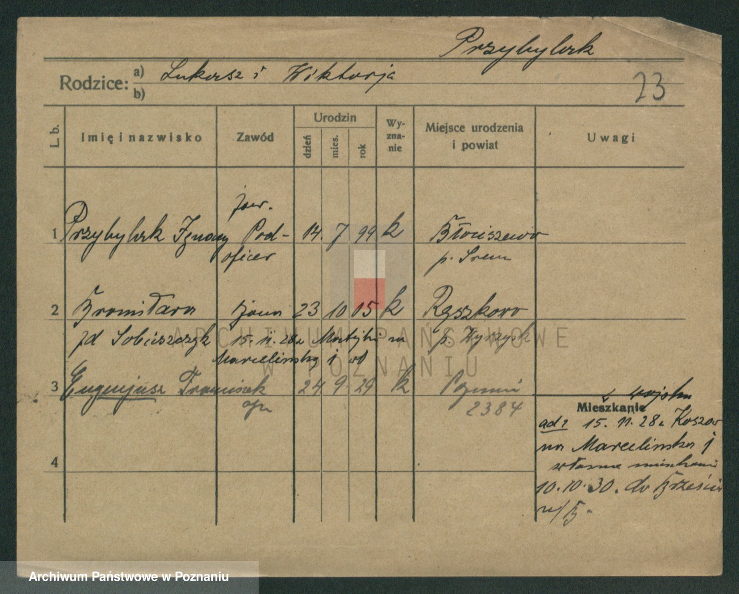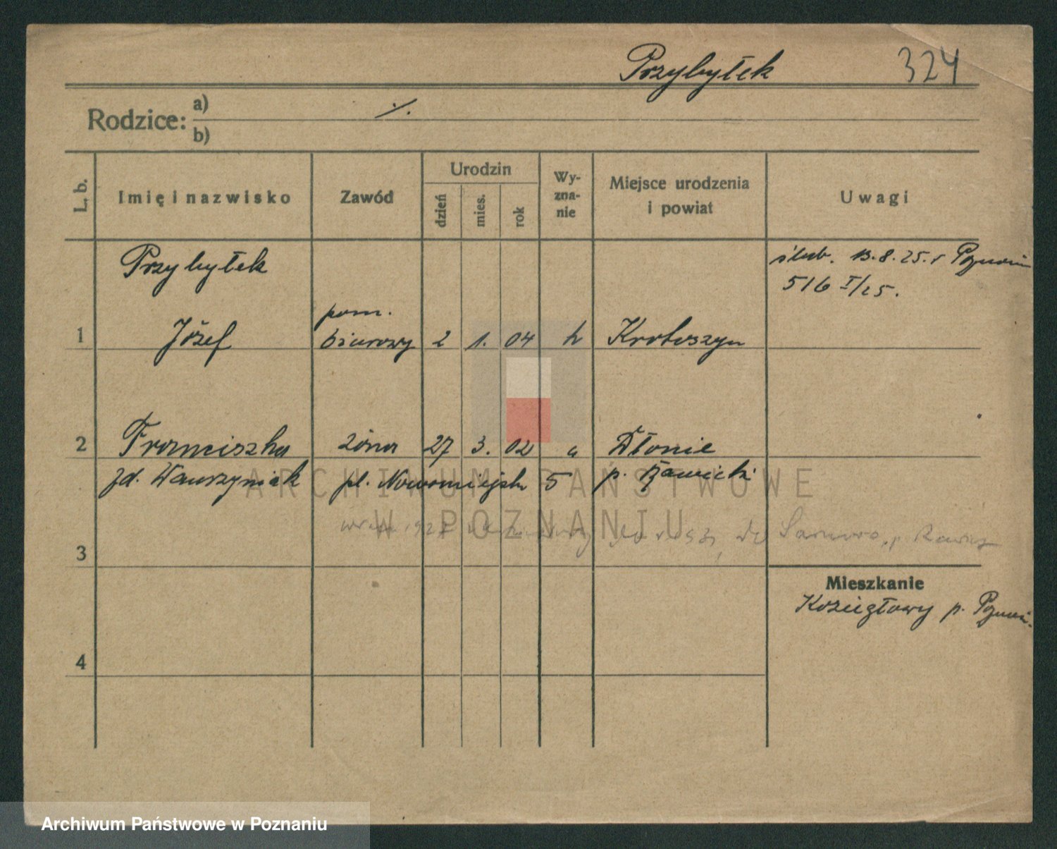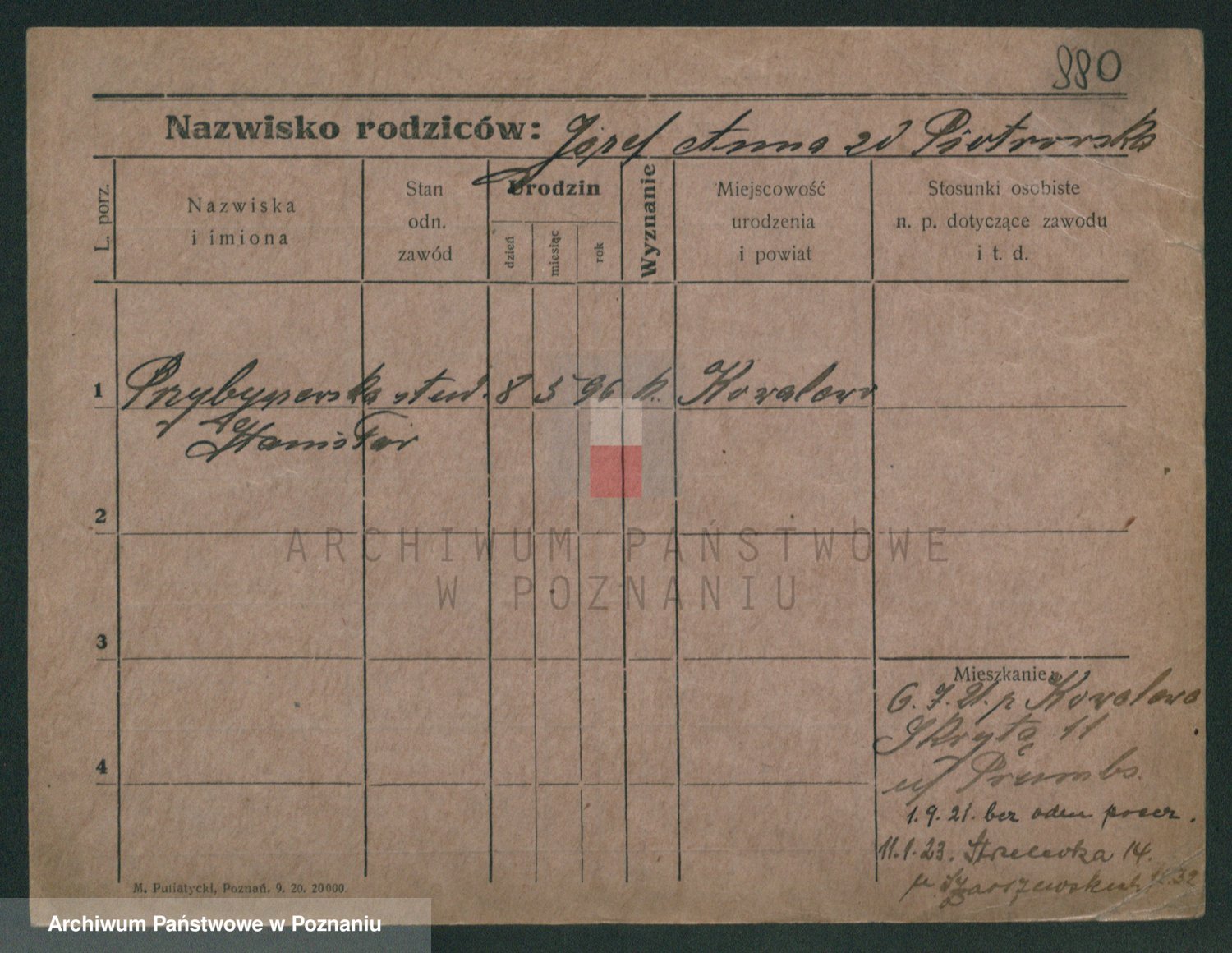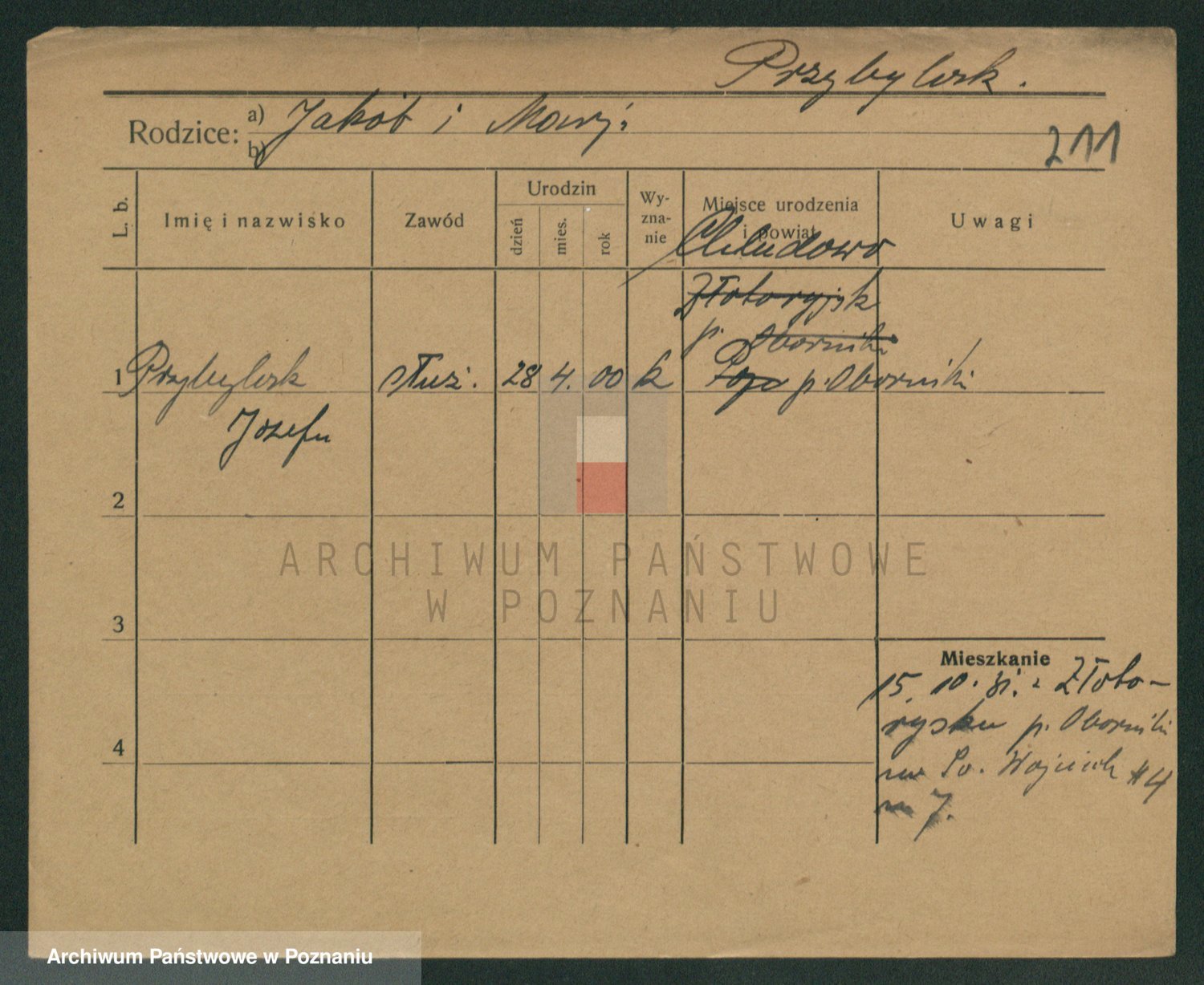 Podgląd karty osobowej dostępny jest po kliknięciu na nazwisko lub ikonkę karty. Można dokonywać powiększenia (ikony na górze) lub przechodzić między kolejnymi skanami (strzałki po bokach).