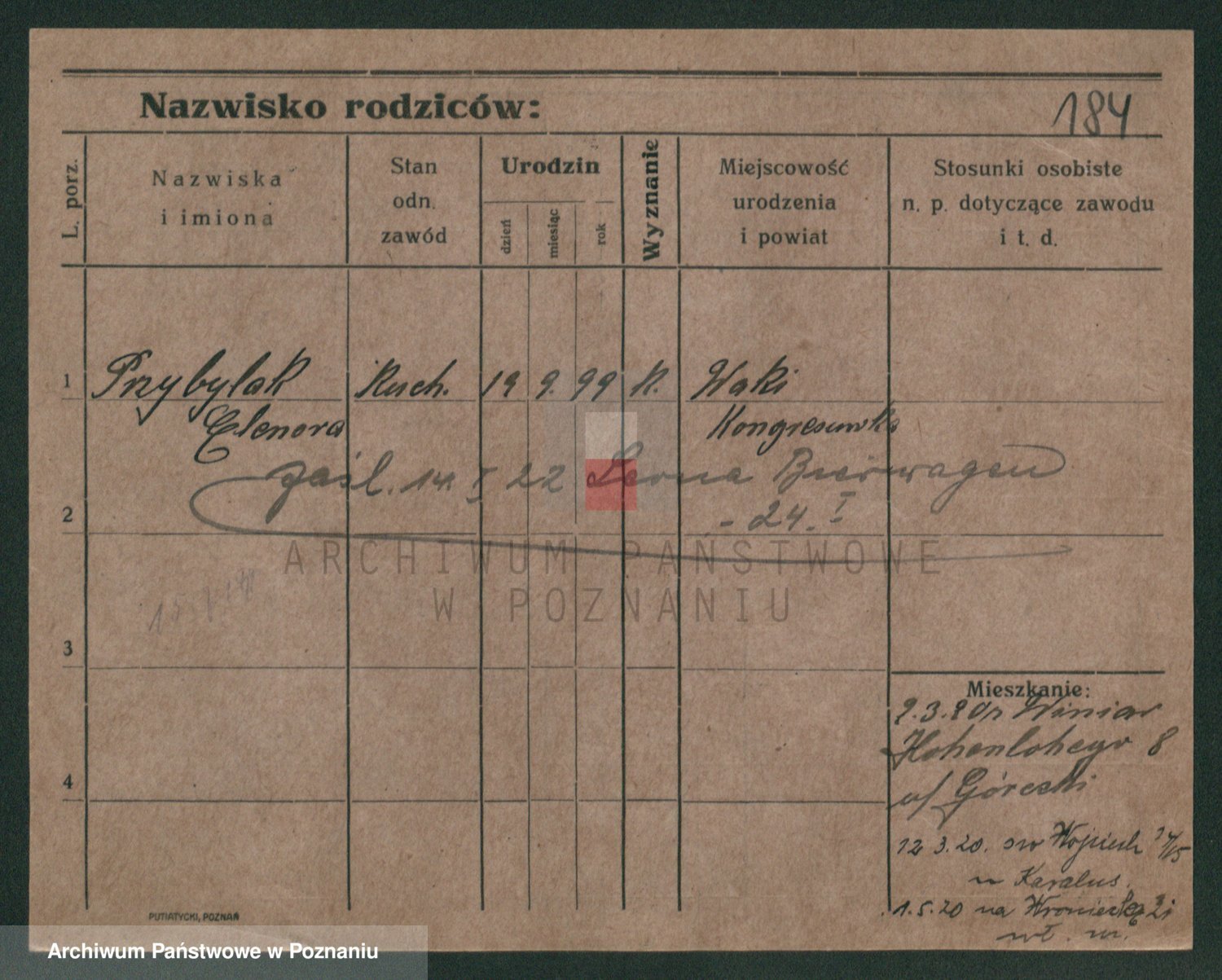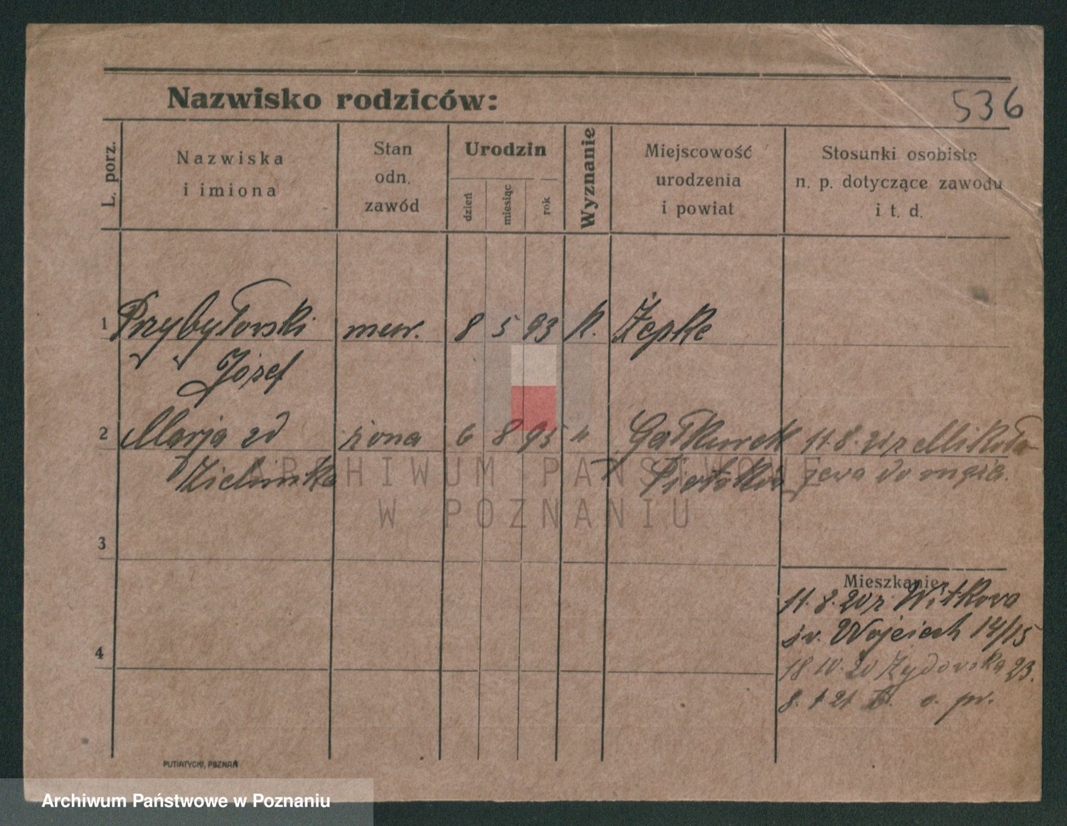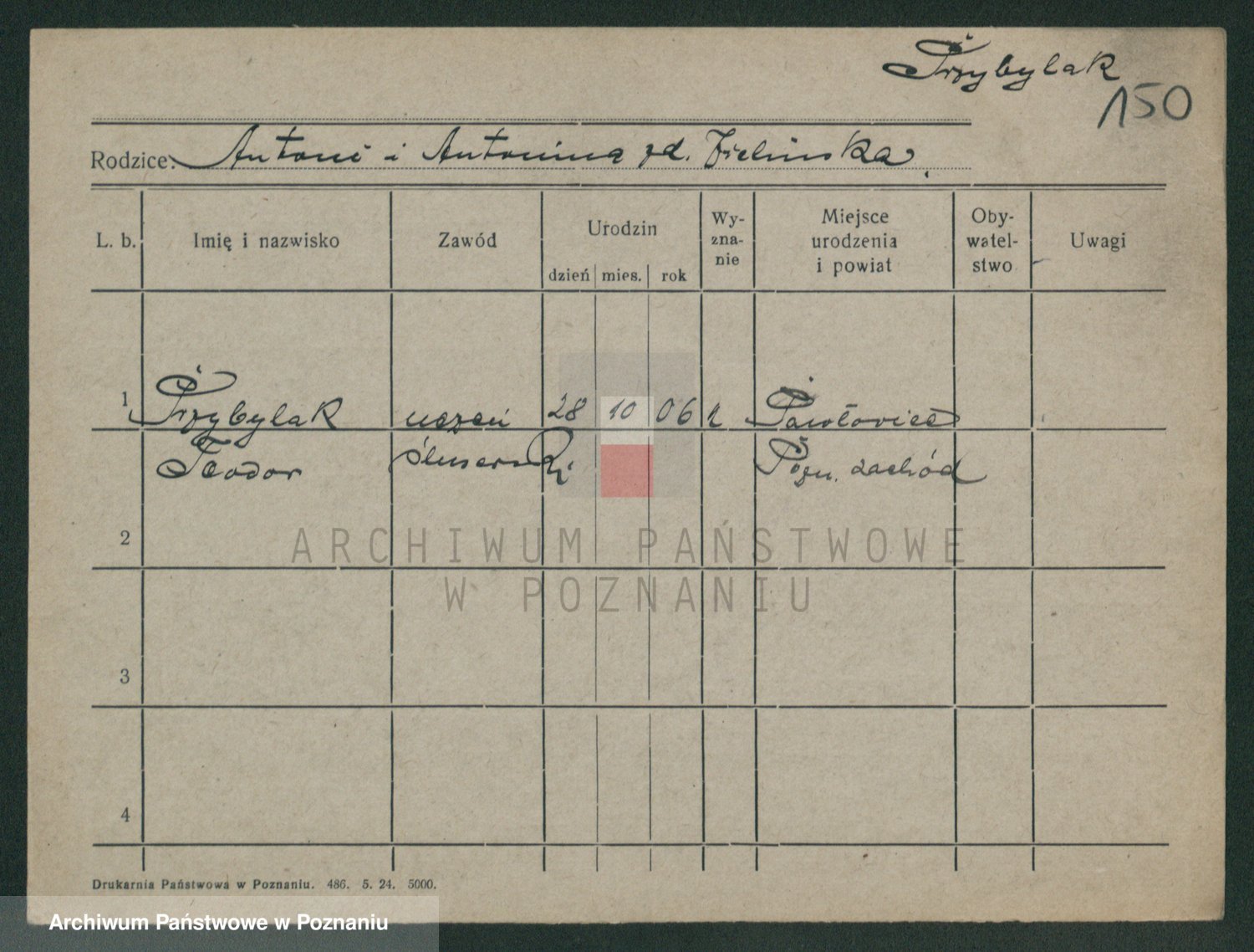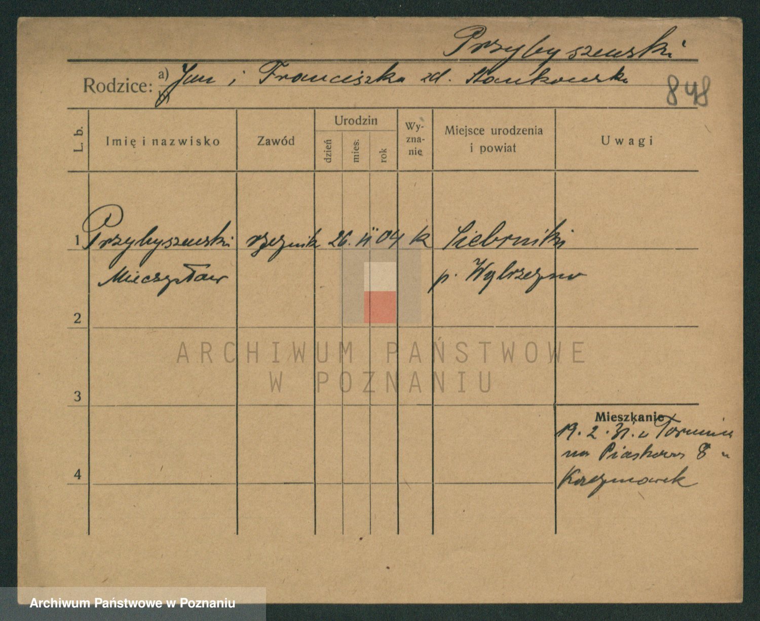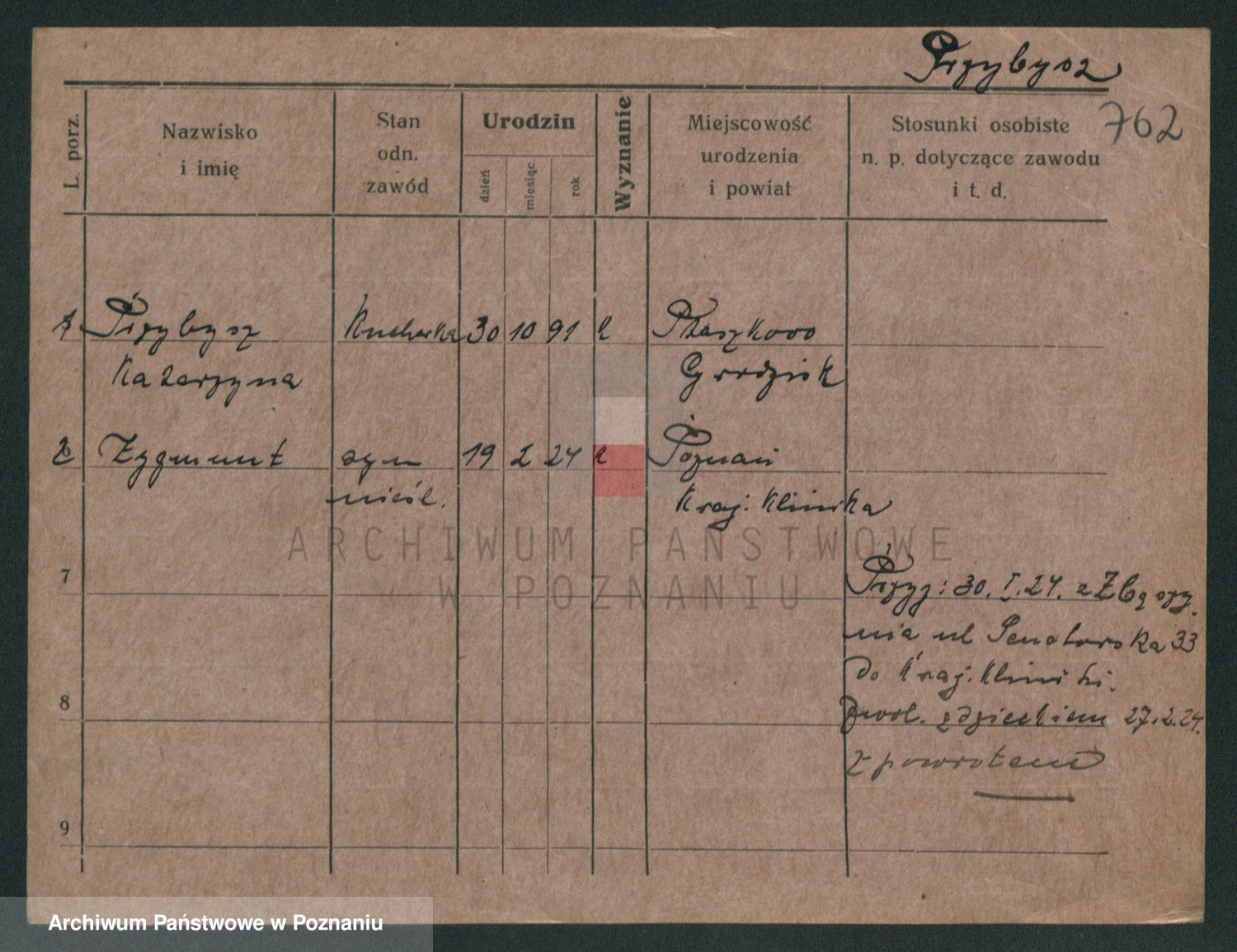 Podgląd karty osobowej dostępny jest po kliknięciu na nazwisko lub ikonkę karty. Można dokonywać powiększenia (ikony na górze) lub przechodzić między kolejnymi skanami (strzałki po bokach).