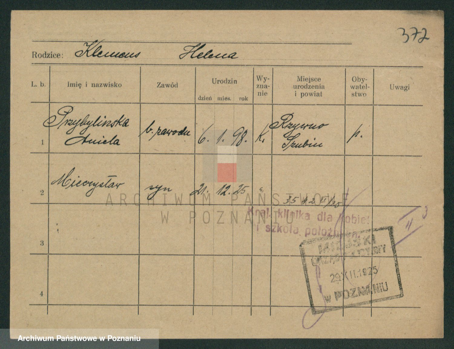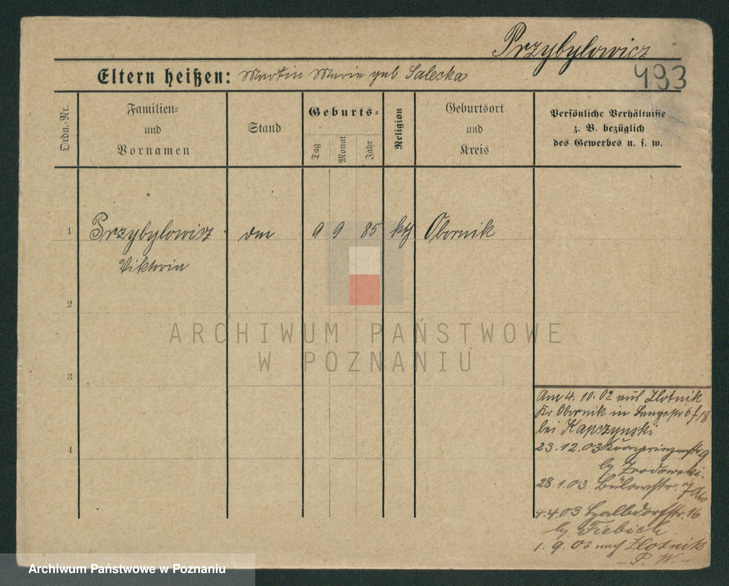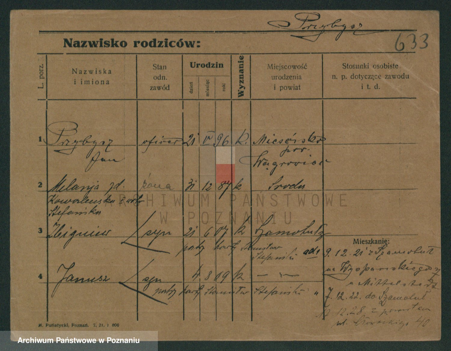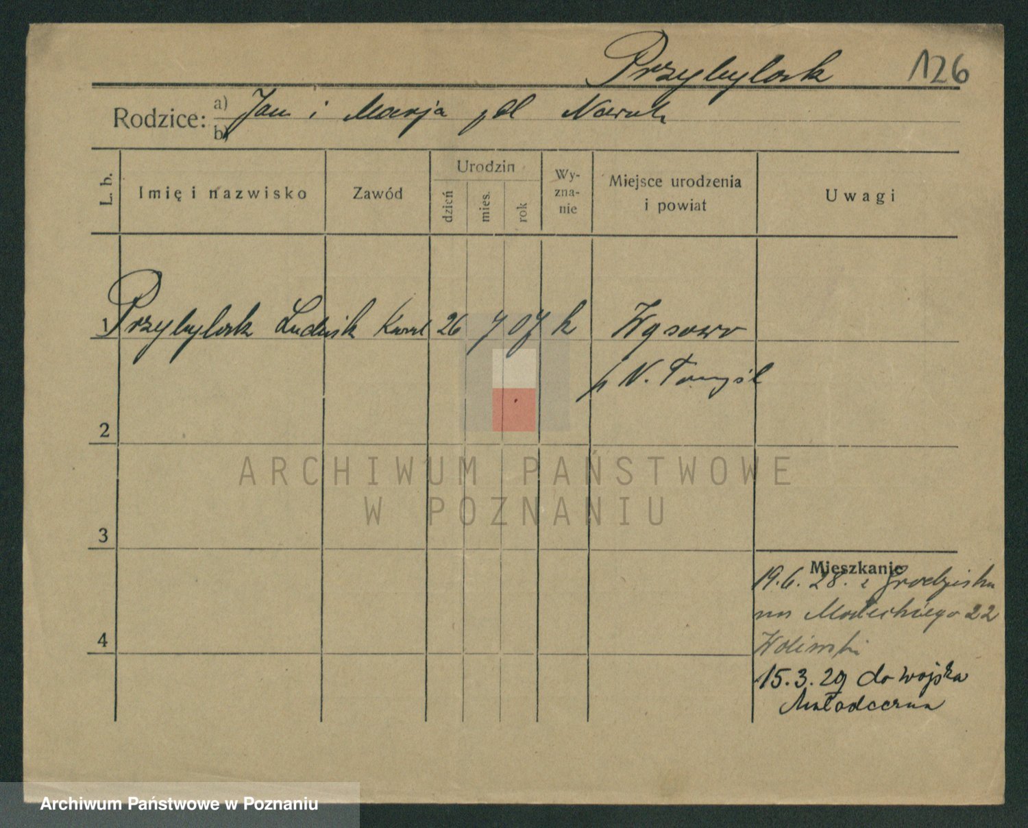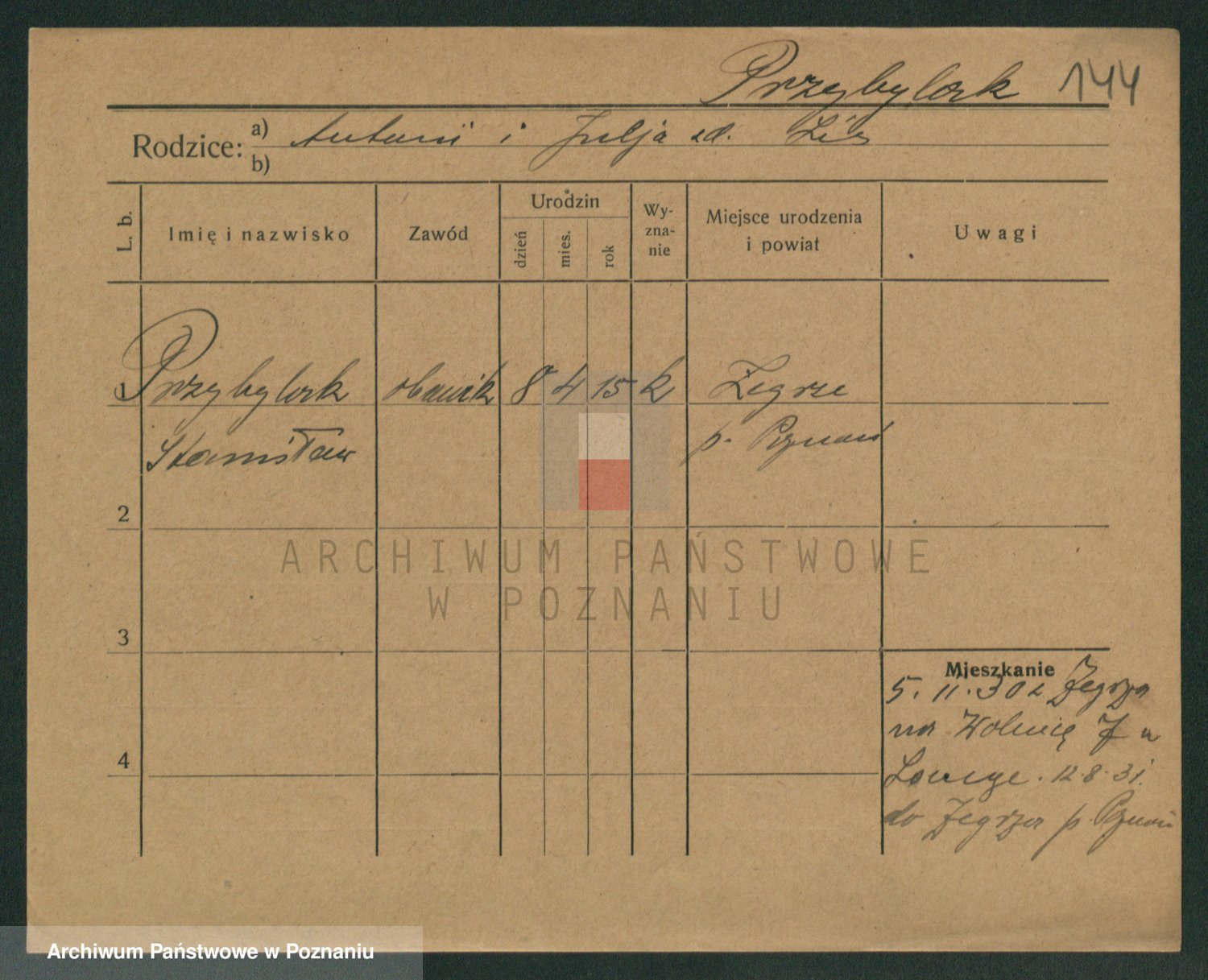Podgląd karty osobowej dostępny jest po kliknięciu na nazwisko lub ikonkę karty. Można dokonywać powiększenia (ikony na górze) lub przechodzić między kolejnymi skanami (strzałki po bokach).