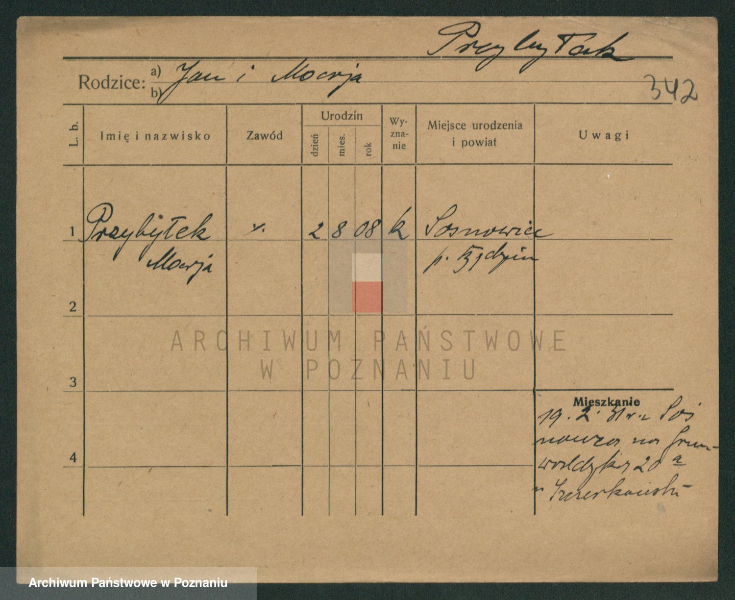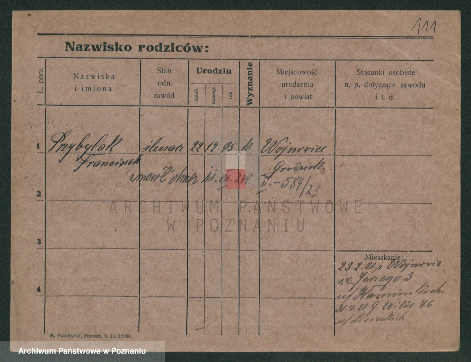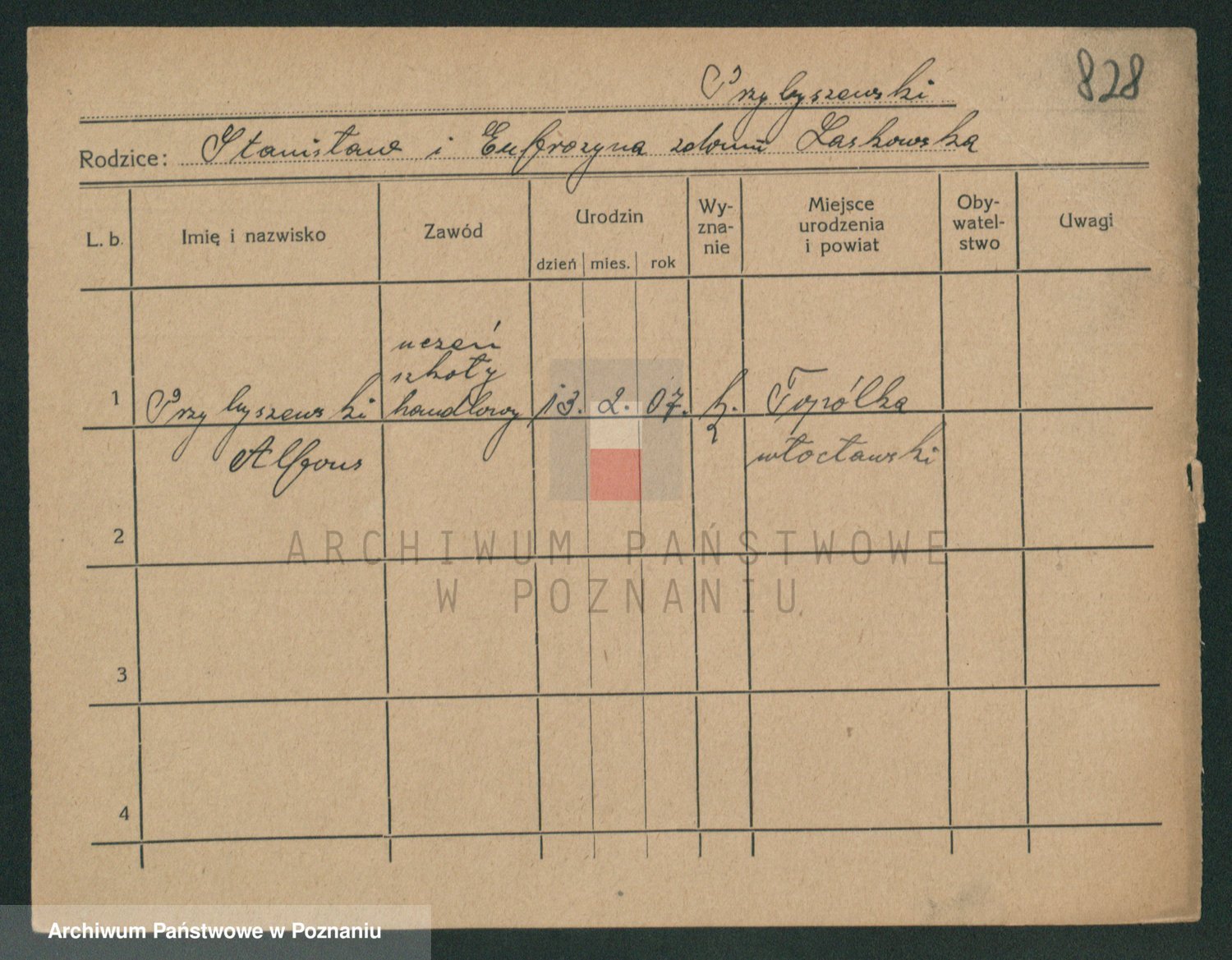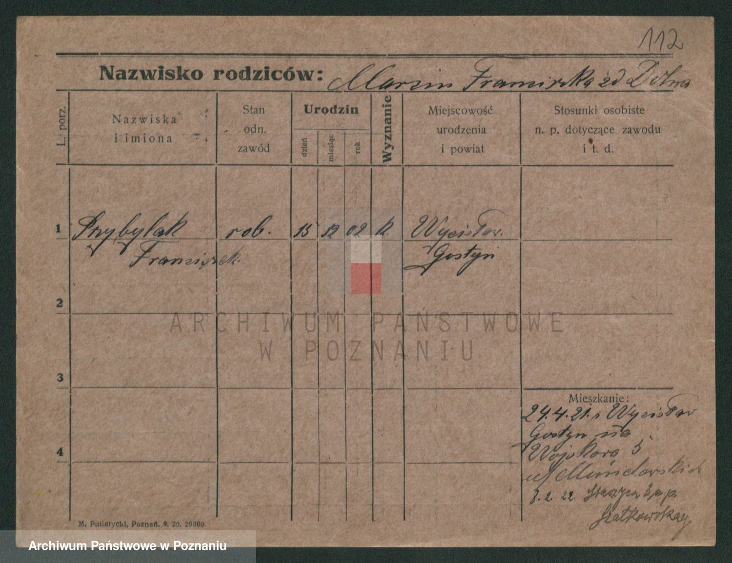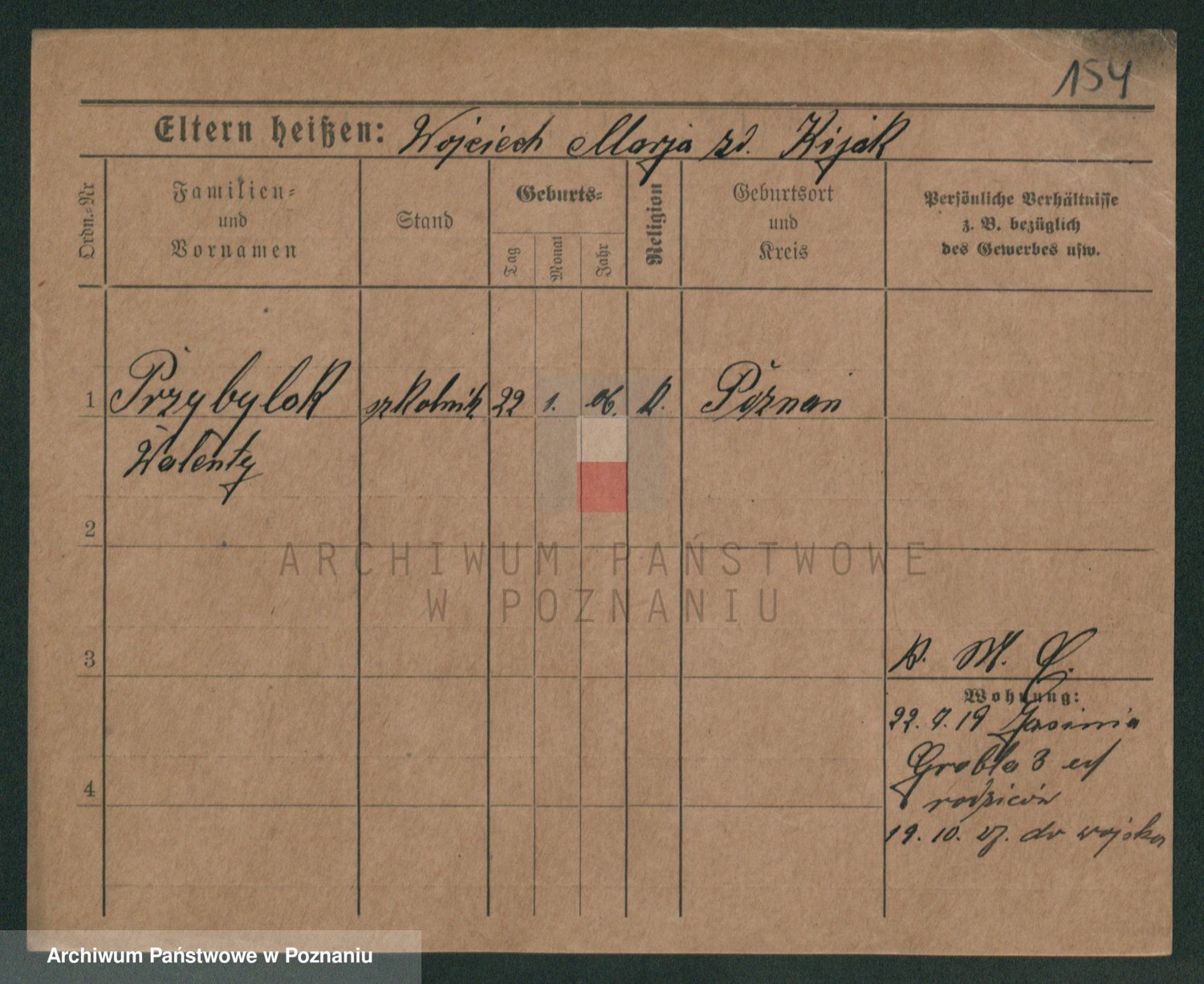 Podgląd karty osobowej dostępny jest po kliknięciu na nazwisko lub ikonkę karty. Można dokonywać powiększenia (ikony na górze) lub przechodzić między kolejnymi skanami (strzałki po bokach).