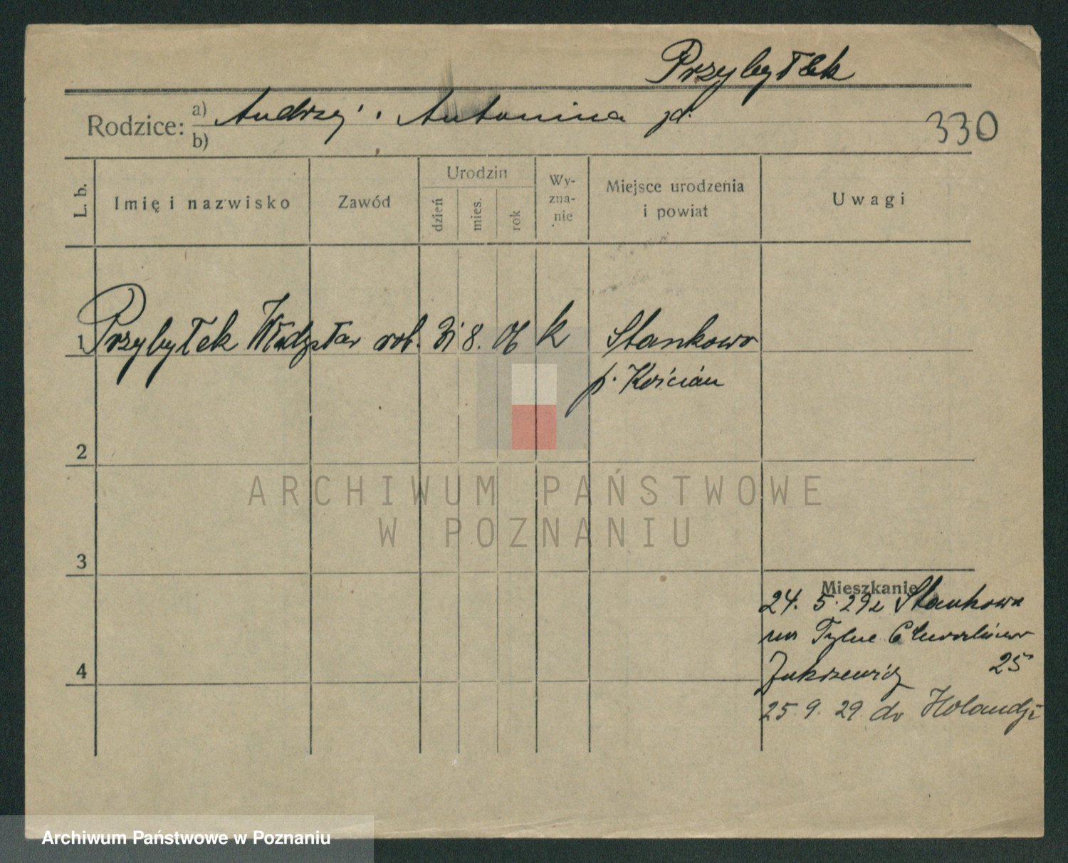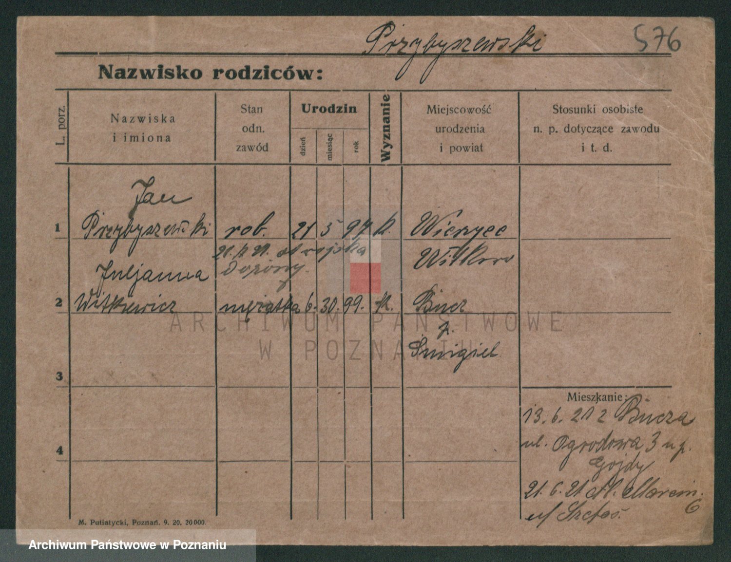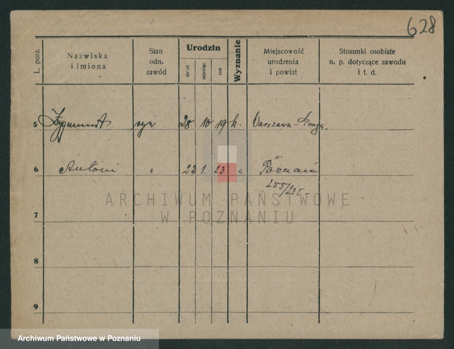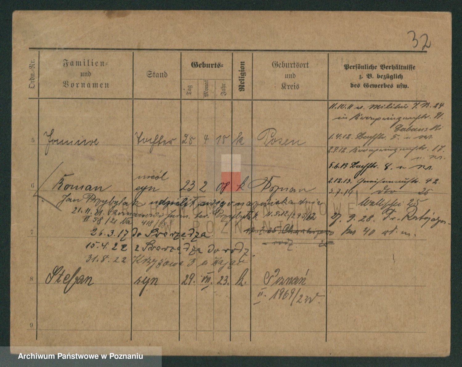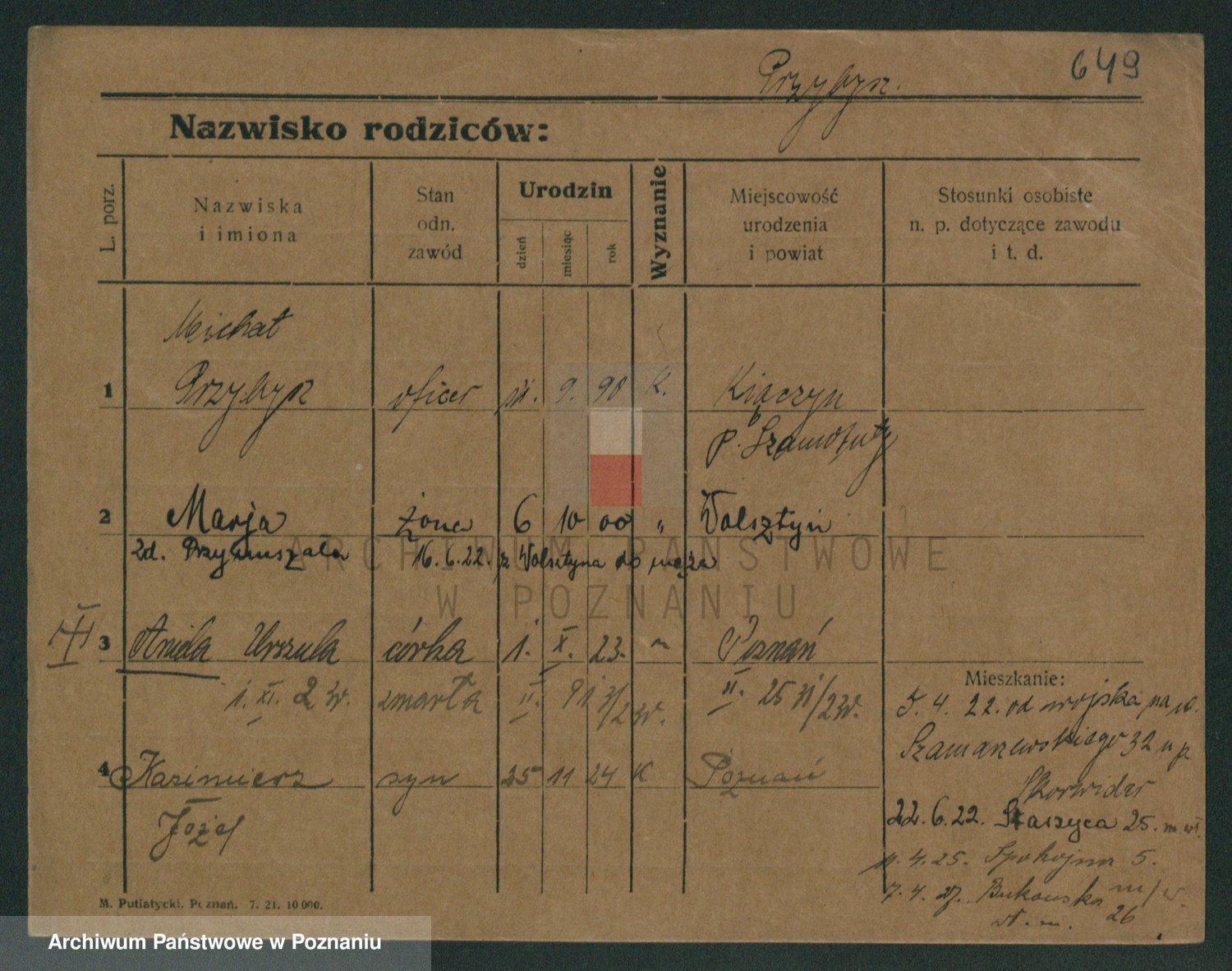 Podgląd karty osobowej dostępny jest po kliknięciu na nazwisko lub ikonkę karty. Można dokonywać powiększenia (ikony na górze) lub przechodzić między kolejnymi skanami (strzałki po bokach).
