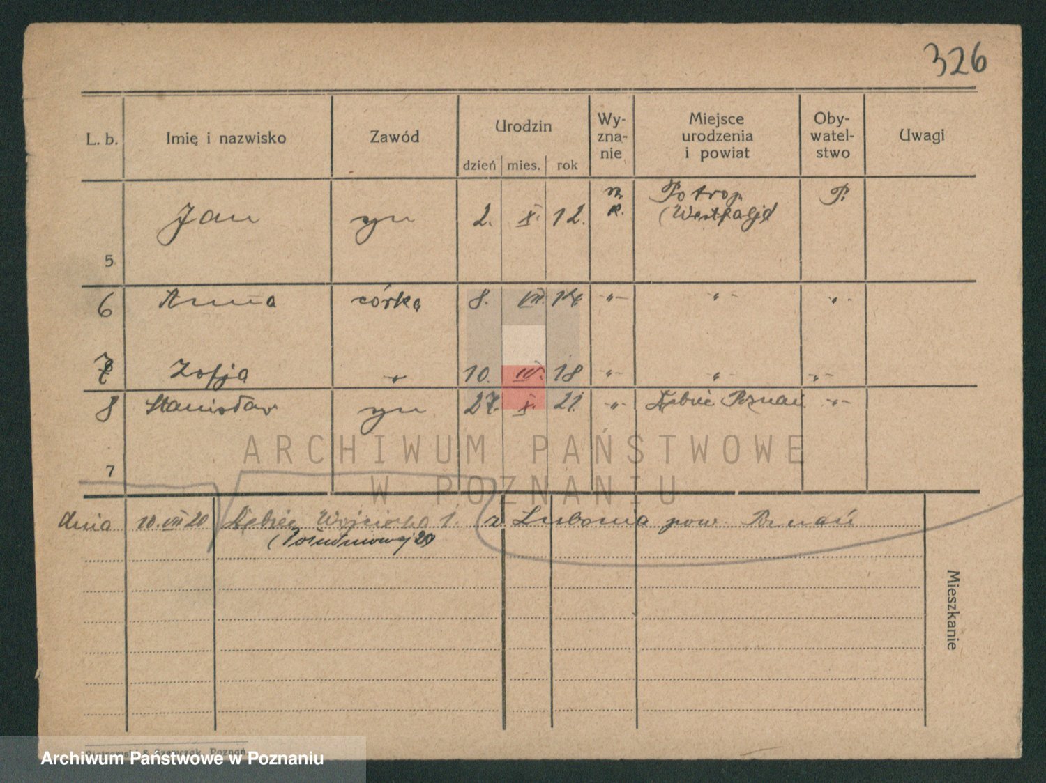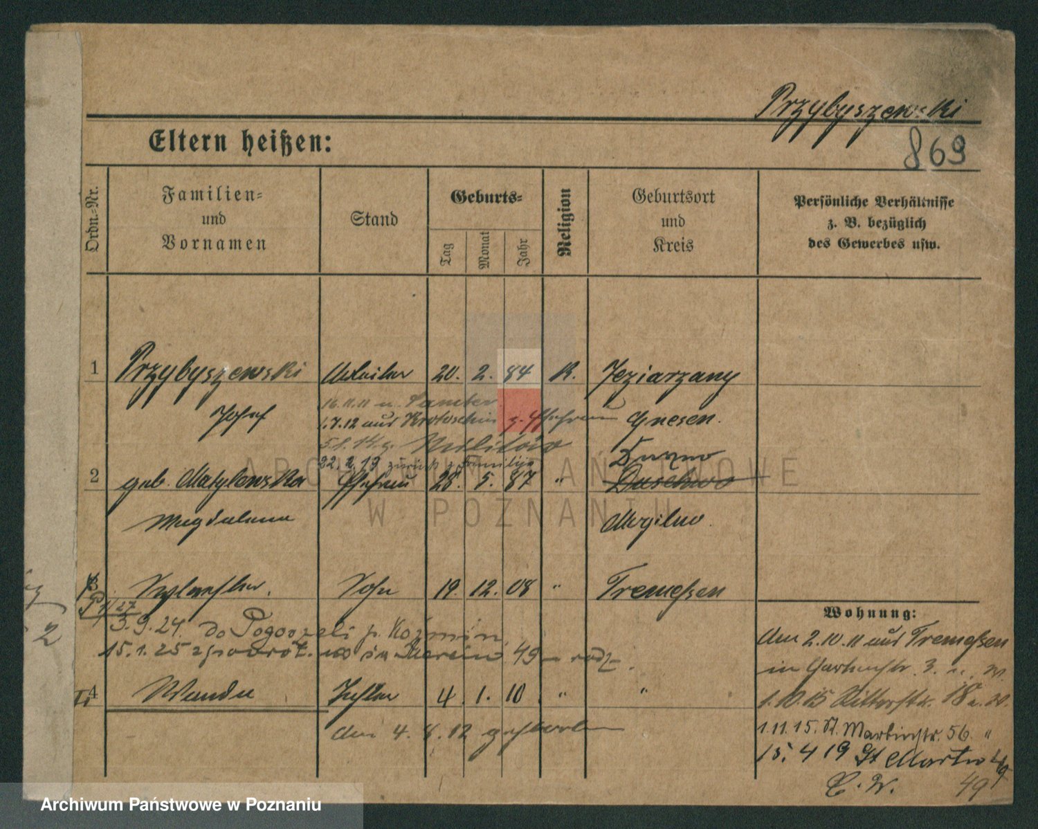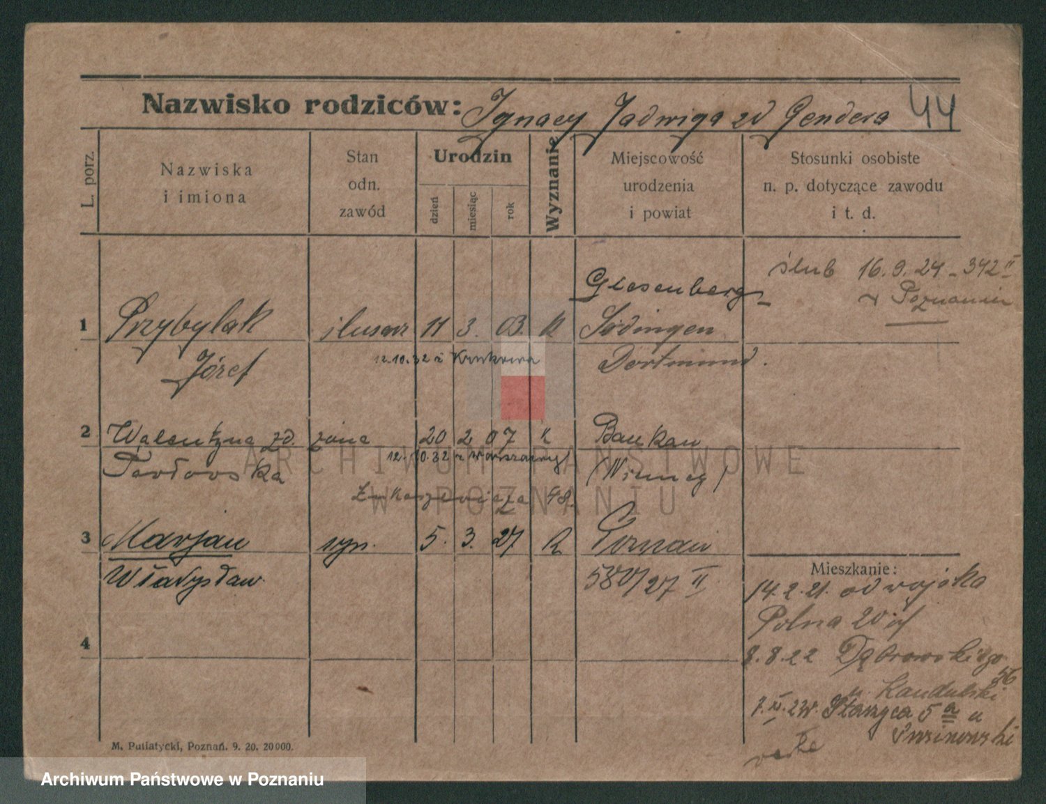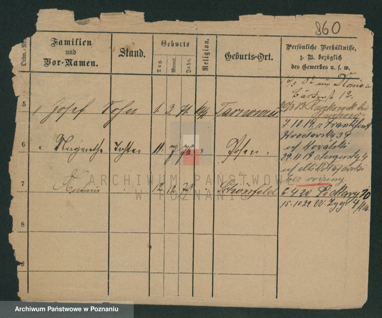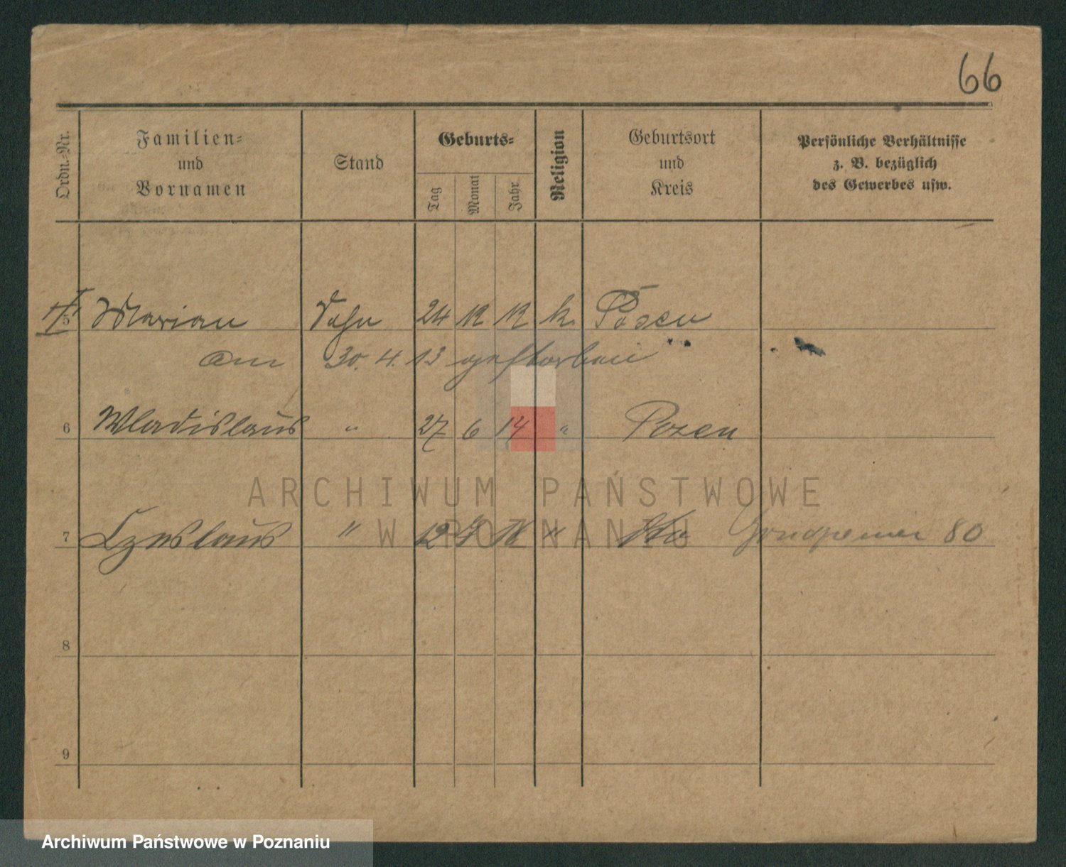 Podgląd karty osobowej dostępny jest po kliknięciu na nazwisko lub ikonkę karty. Można dokonywać powiększenia (ikony na górze) lub przechodzić między kolejnymi skanami (strzałki po bokach).