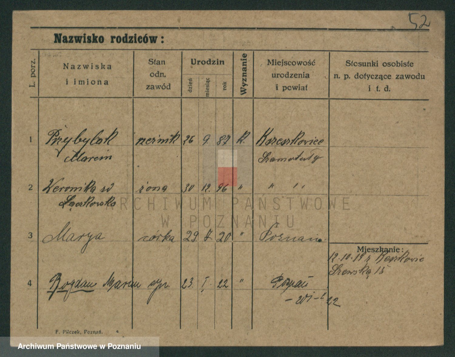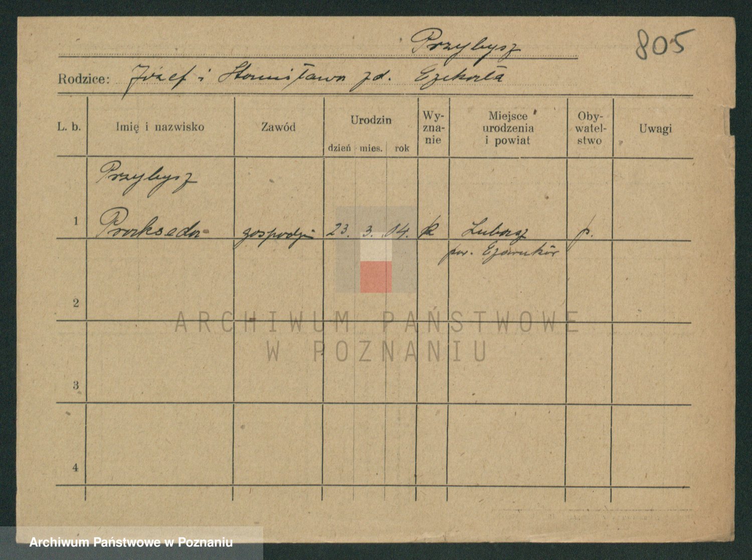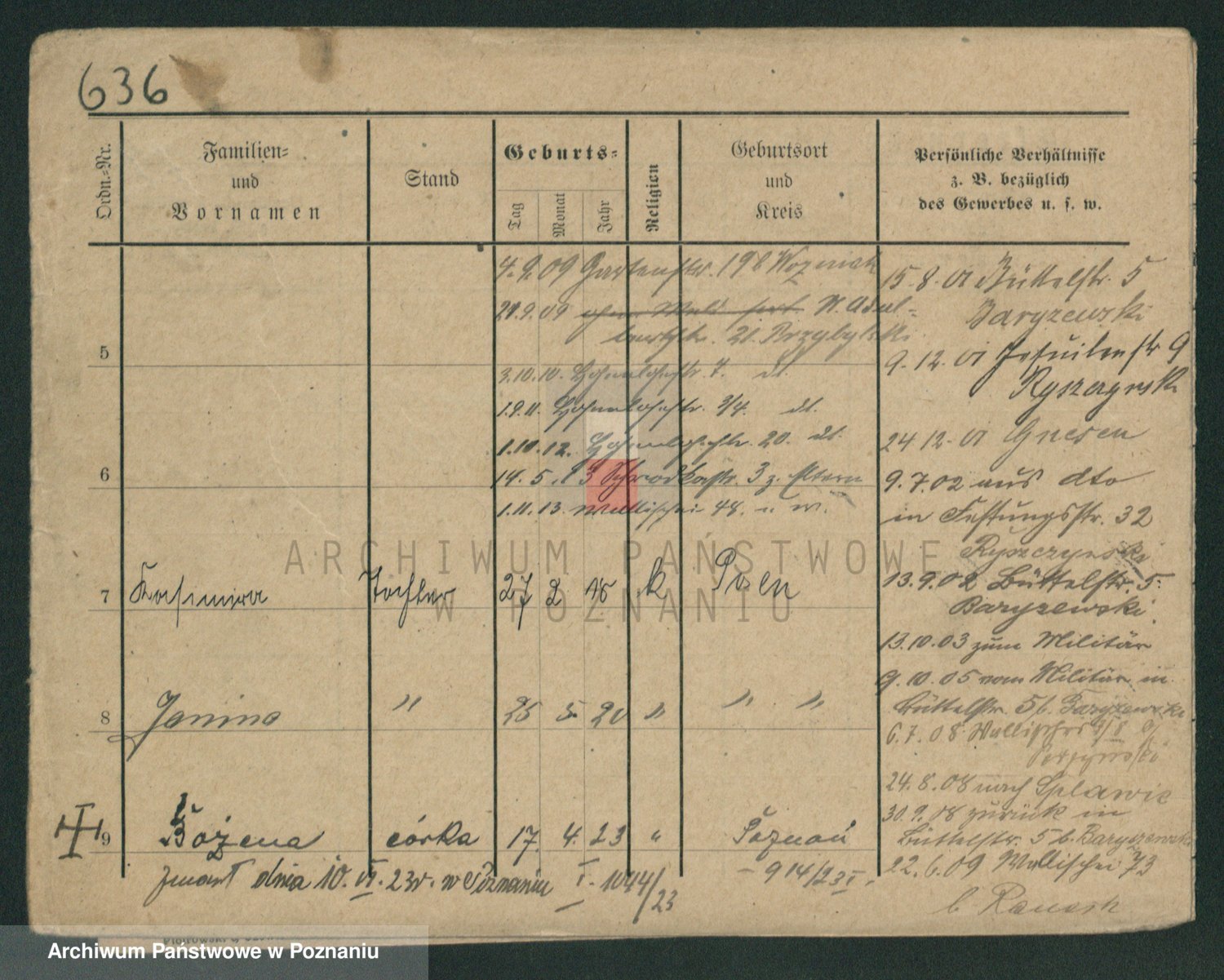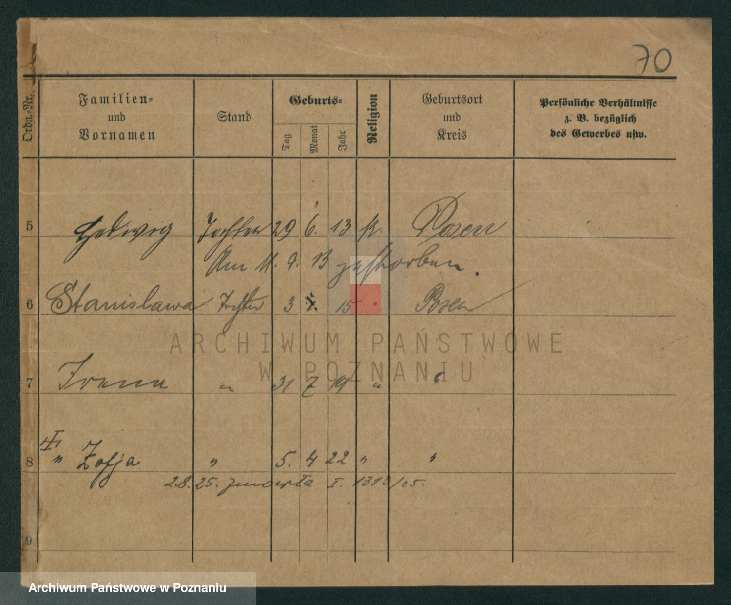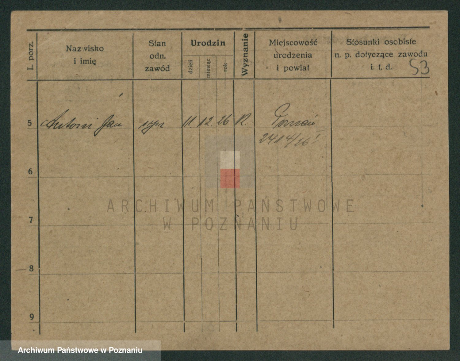 Podgląd karty osobowej dostępny jest po kliknięciu na nazwisko lub ikonkę karty. Można dokonywać powiększenia (ikony na górze) lub przechodzić między kolejnymi skanami (strzałki po bokach).