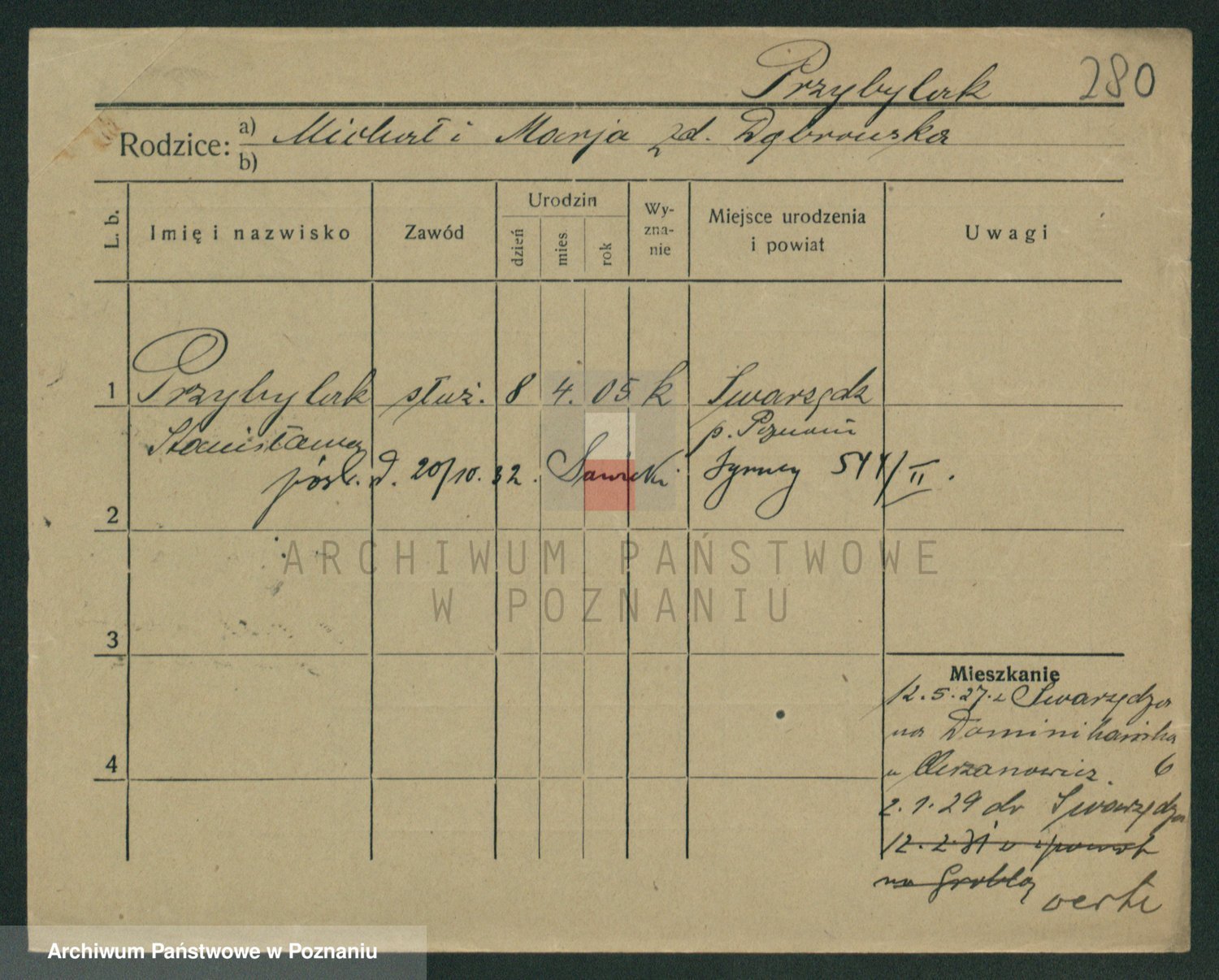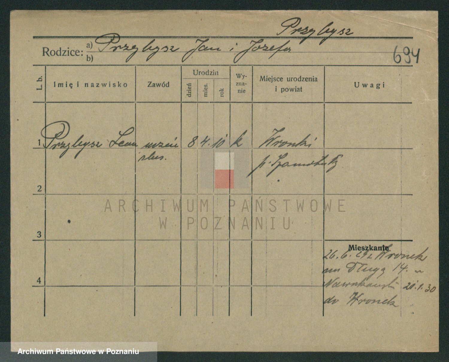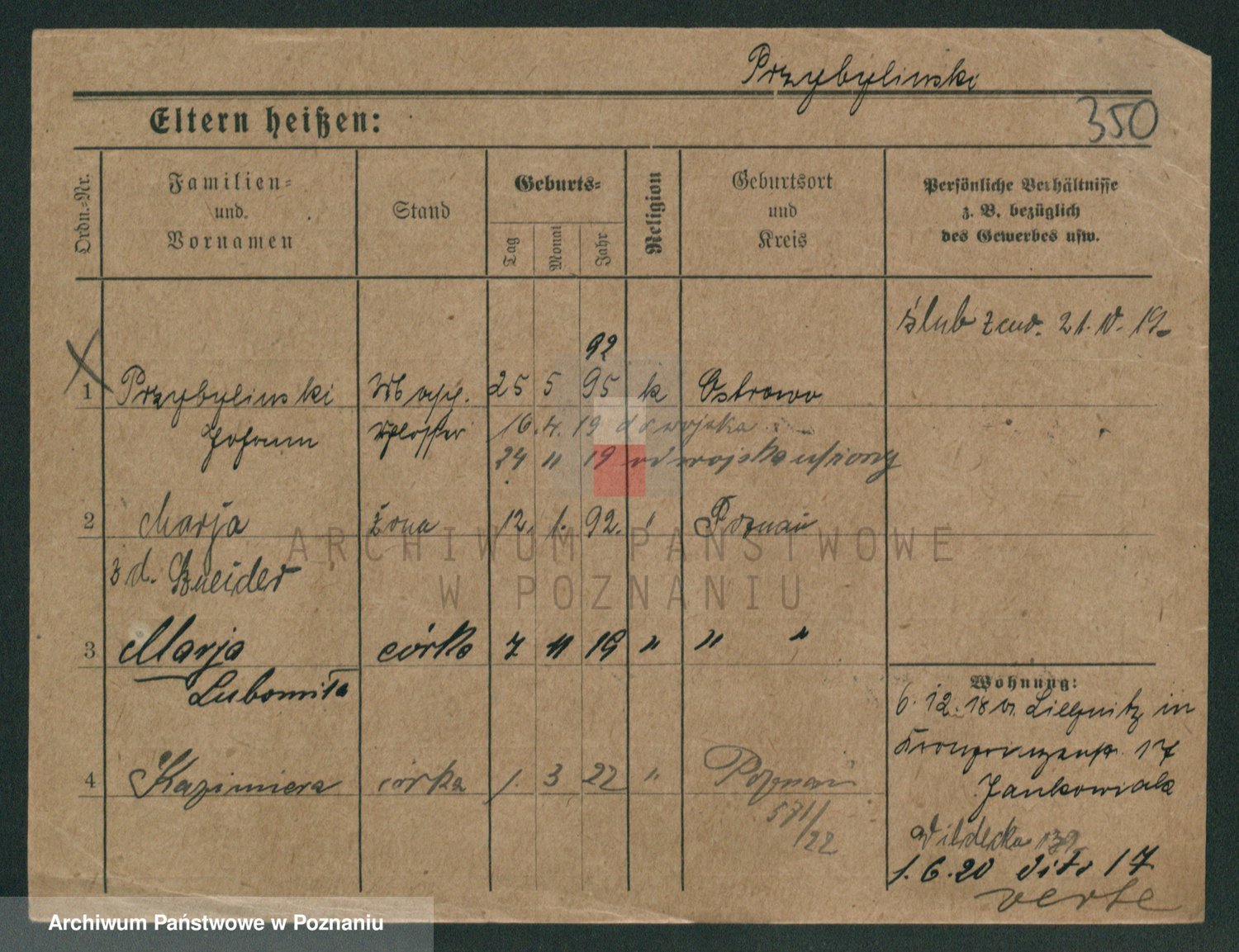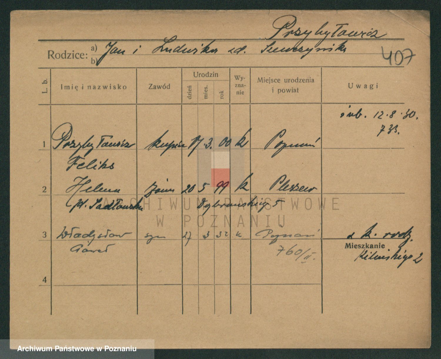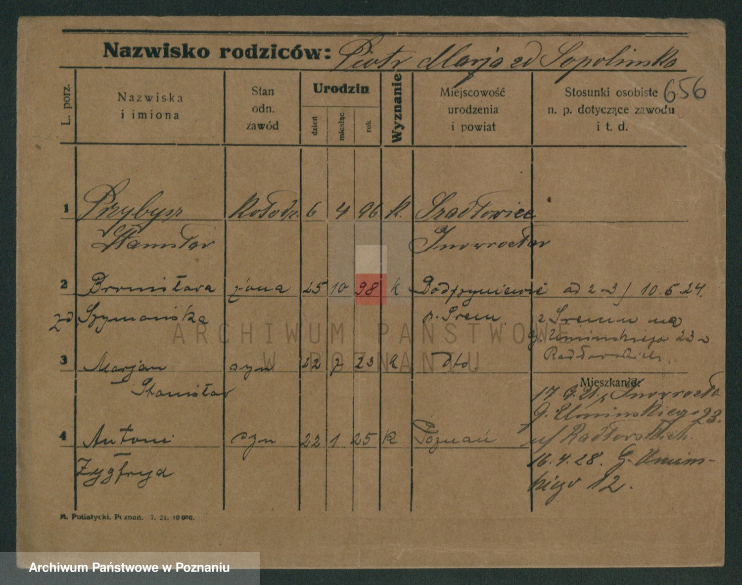 Podgląd karty osobowej dostępny jest po kliknięciu na nazwisko lub ikonkę karty. Można dokonywać powiększenia (ikony na górze) lub przechodzić między kolejnymi skanami (strzałki po bokach).