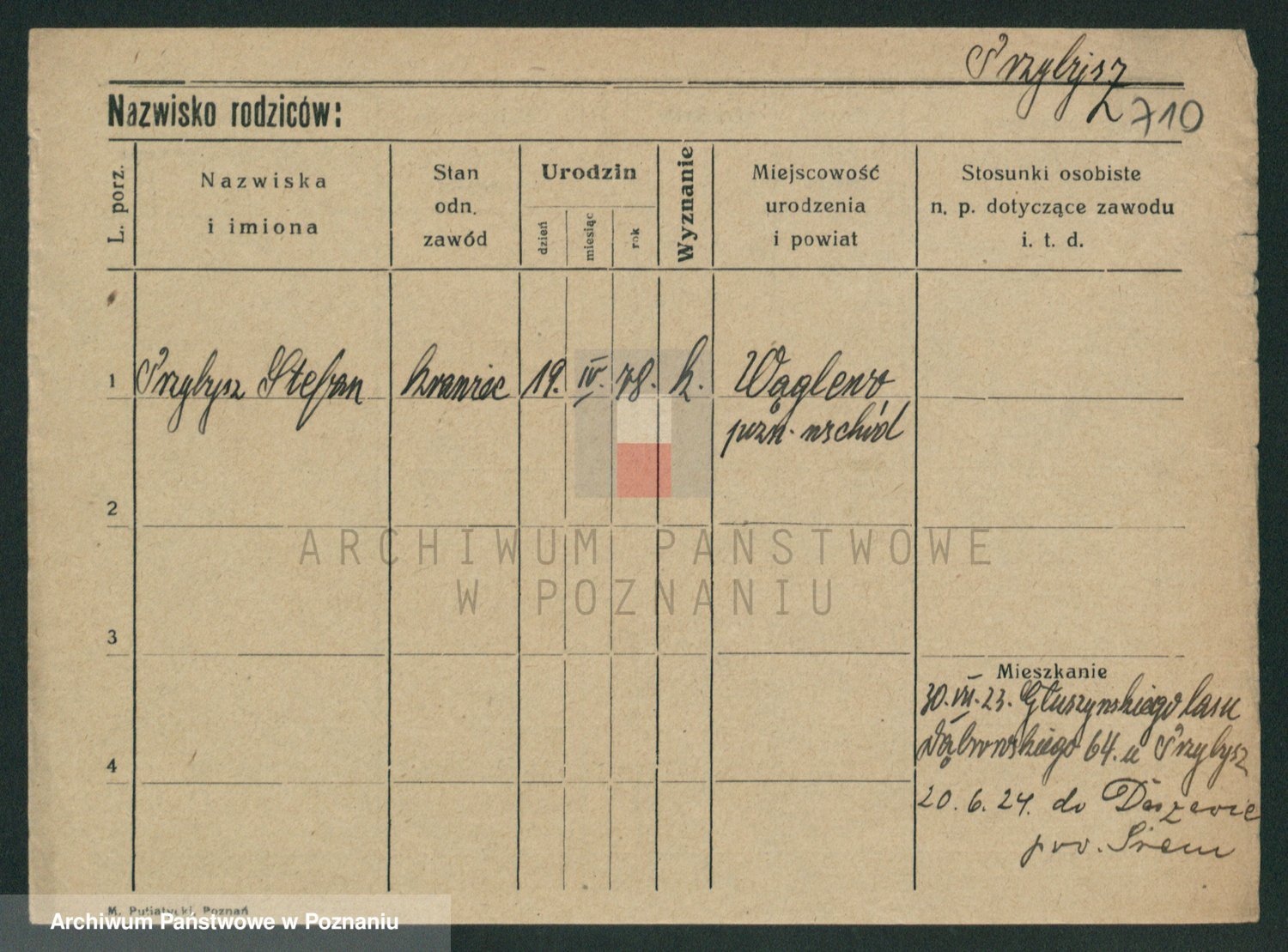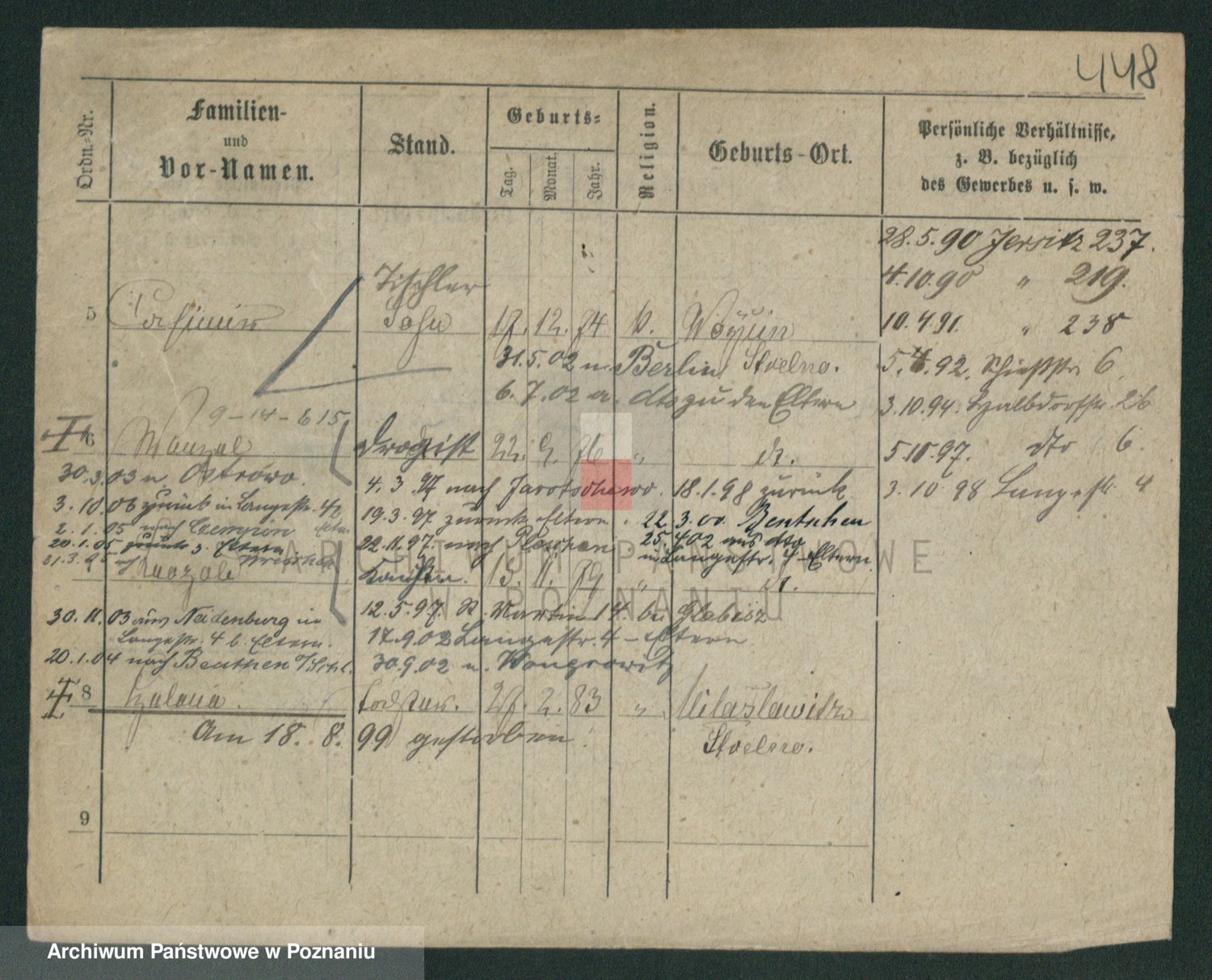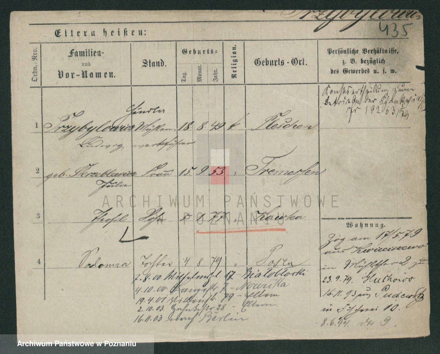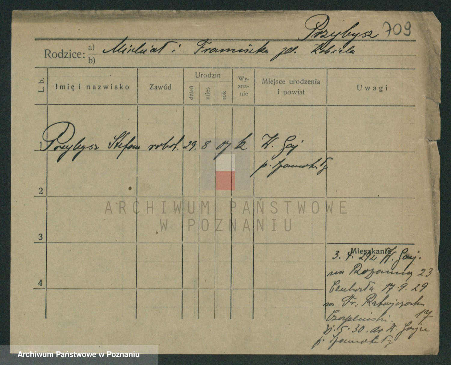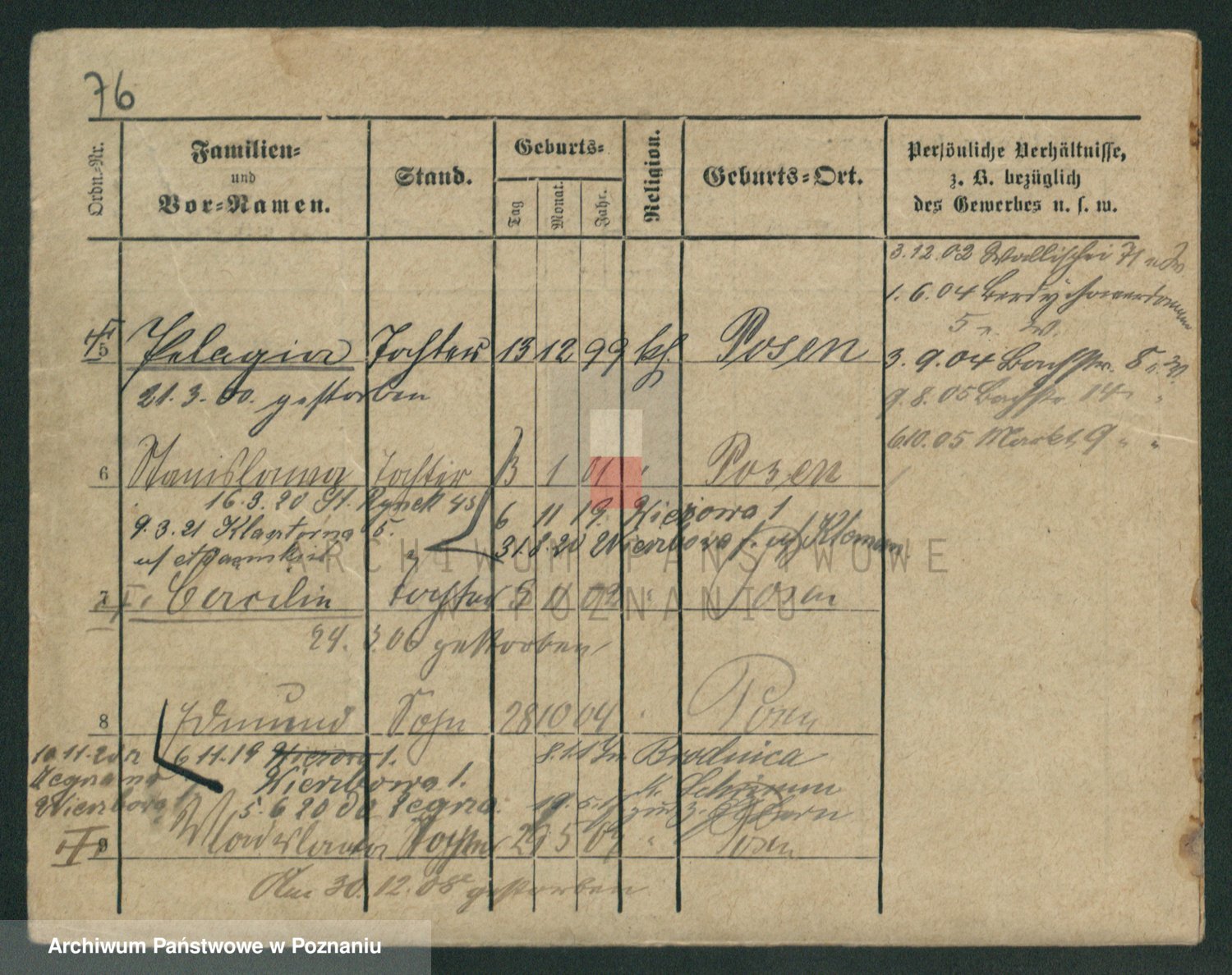 Podgląd karty osobowej dostępny jest po kliknięciu na nazwisko lub ikonkę karty. Można dokonywać powiększenia (ikony na górze) lub przechodzić między kolejnymi skanami (strzałki po bokach).