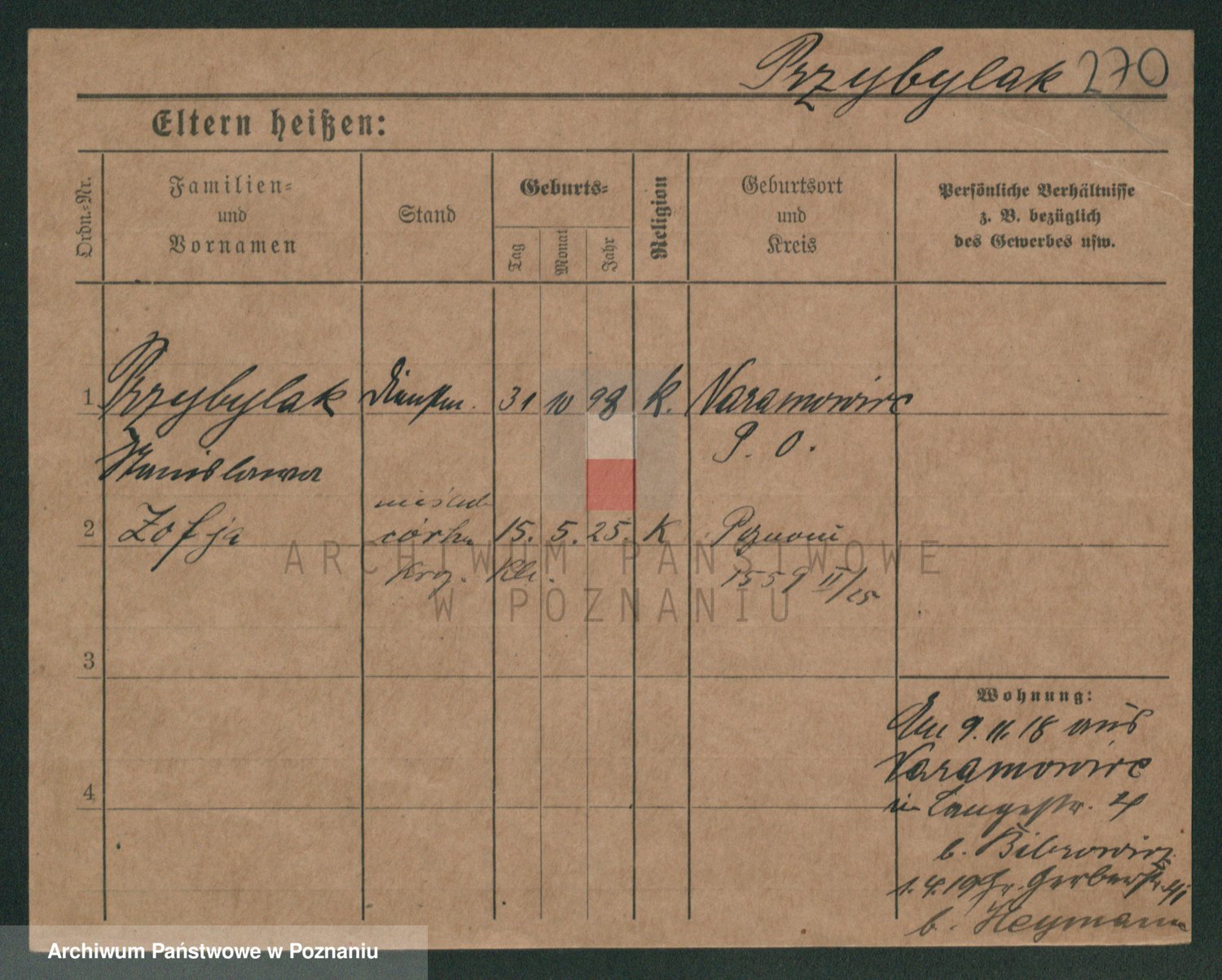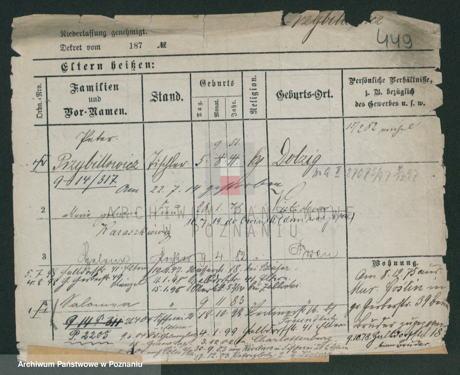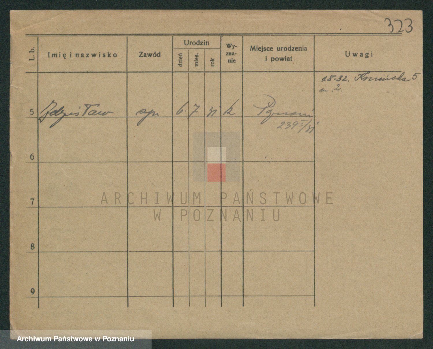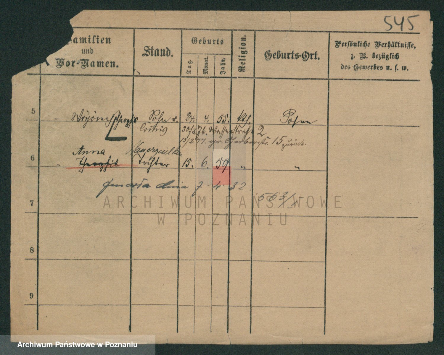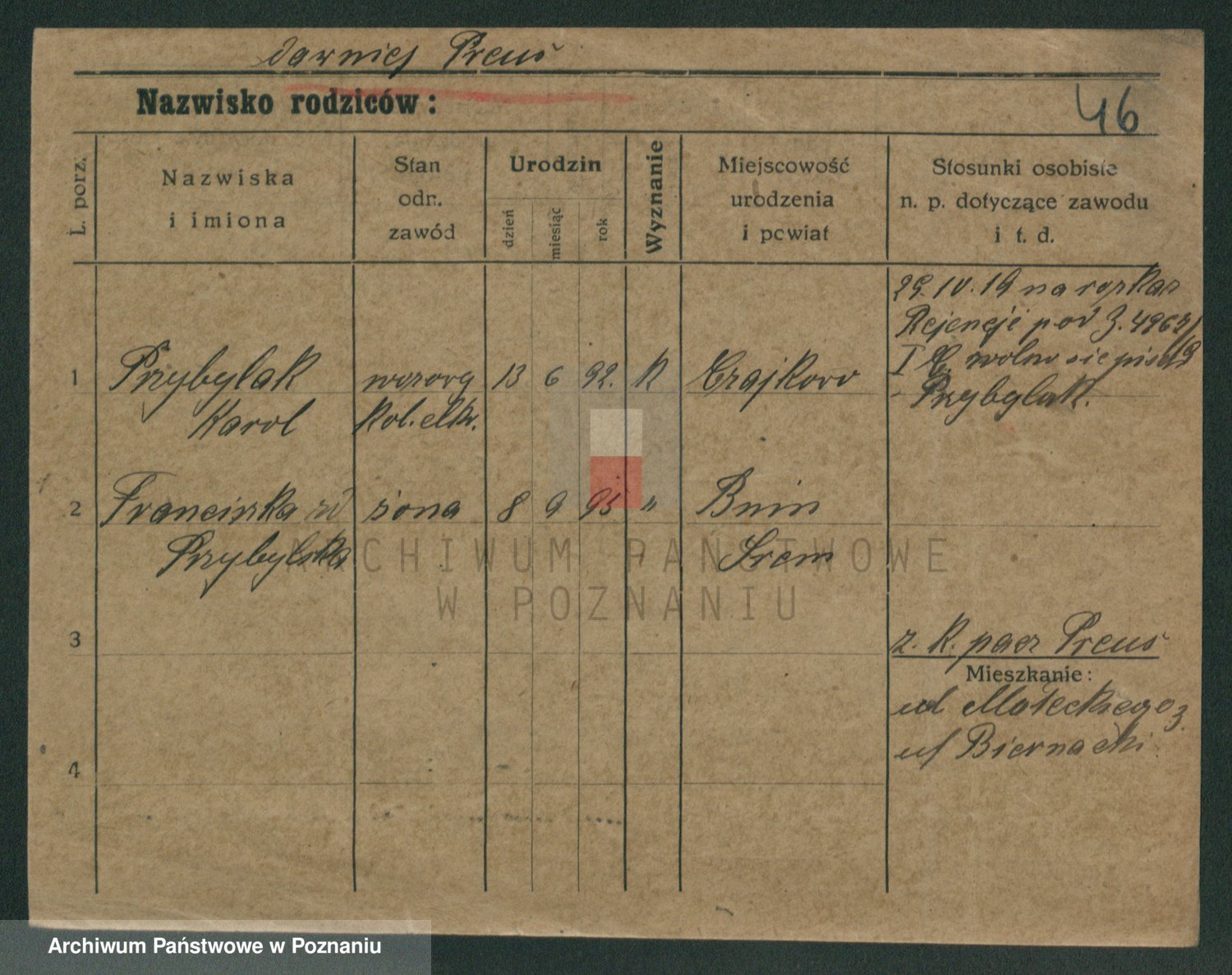 Podgląd karty osobowej dostępny jest po kliknięciu na nazwisko lub ikonkę karty. Można dokonywać powiększenia (ikony na górze) lub przechodzić między kolejnymi skanami (strzałki po bokach).