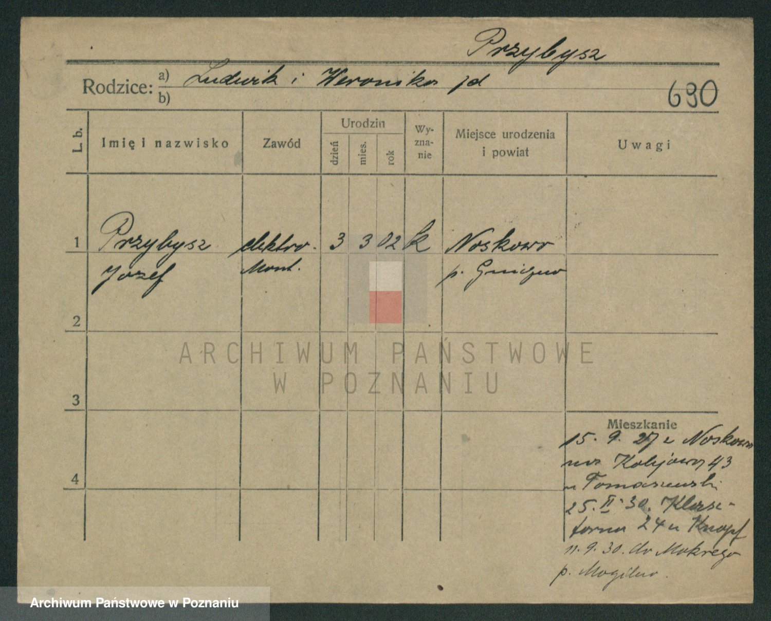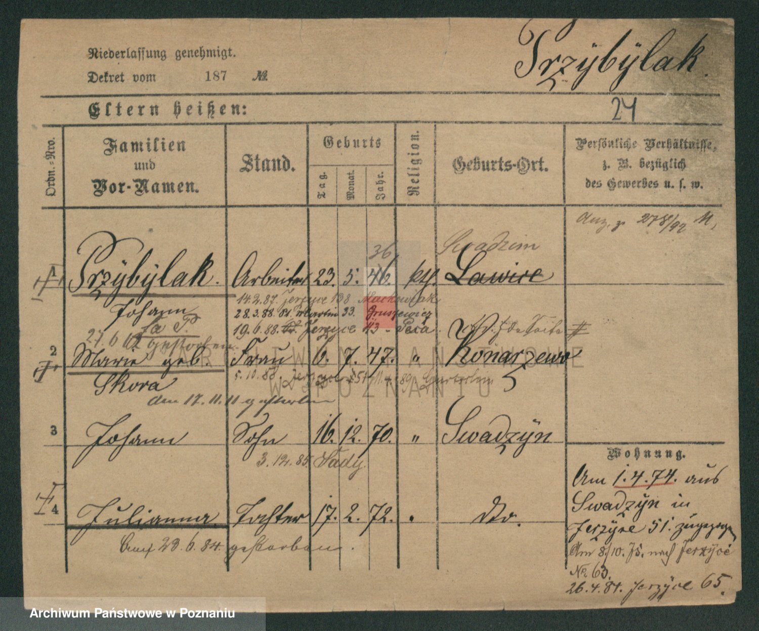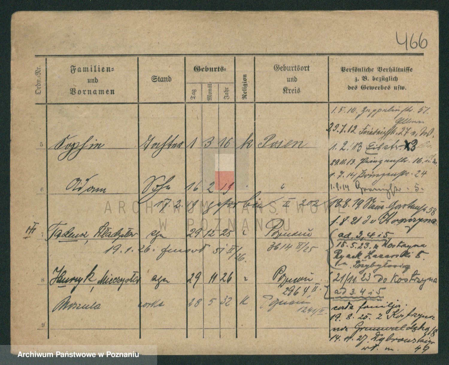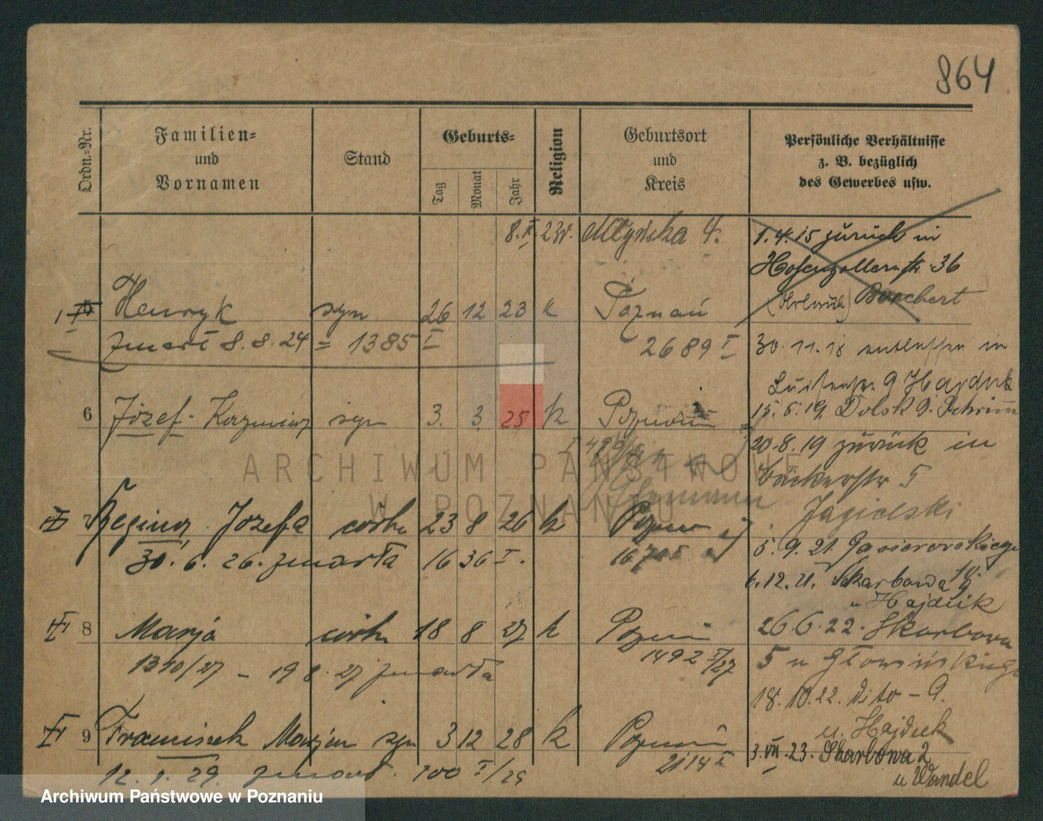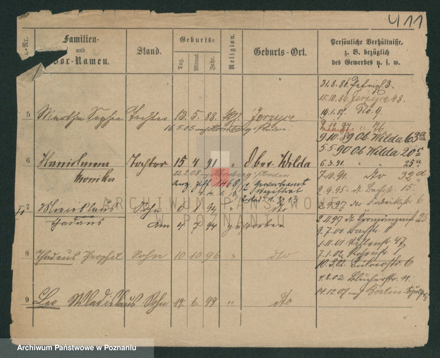 Podgląd karty osobowej dostępny jest po kliknięciu na nazwisko lub ikonkę karty. Można dokonywać powiększenia (ikony na górze) lub przechodzić między kolejnymi skanami (strzałki po bokach).