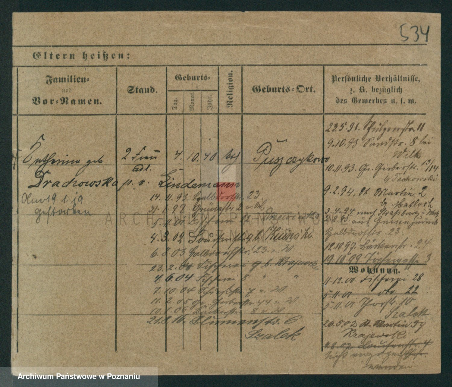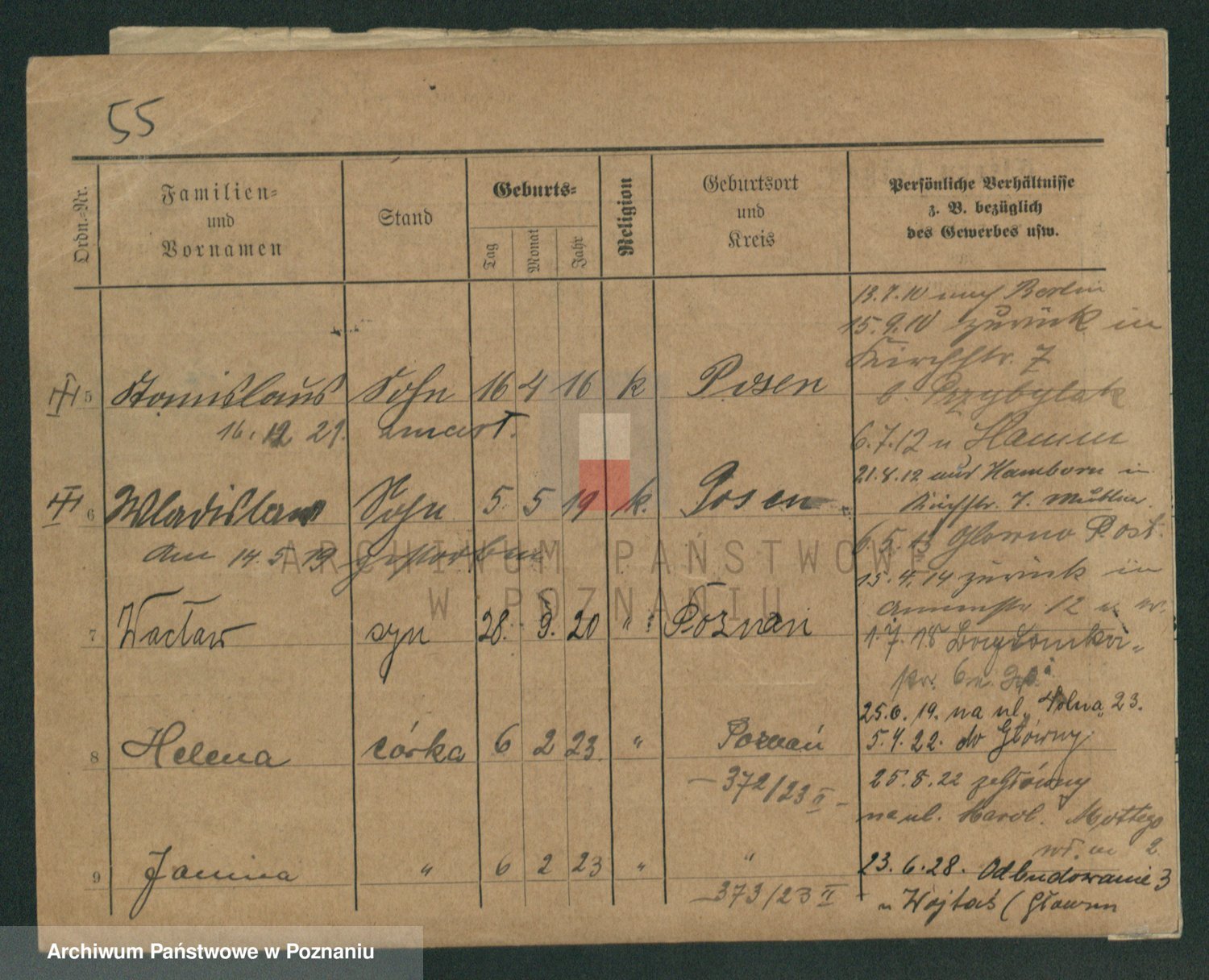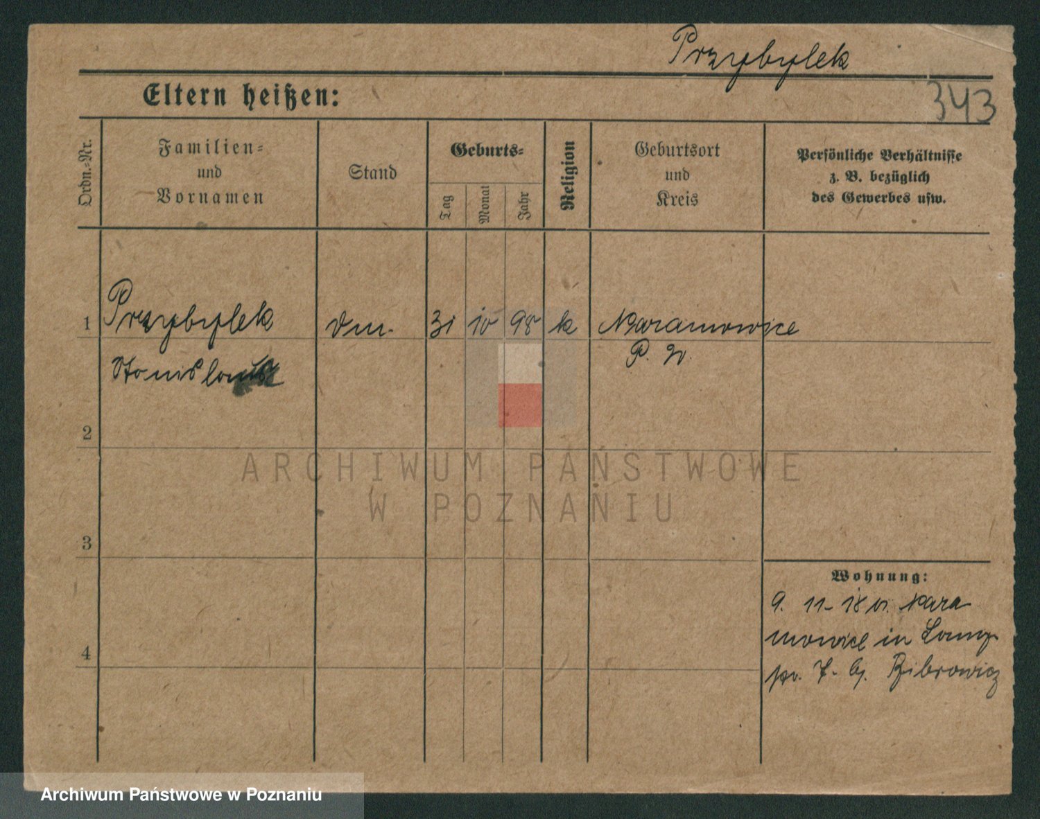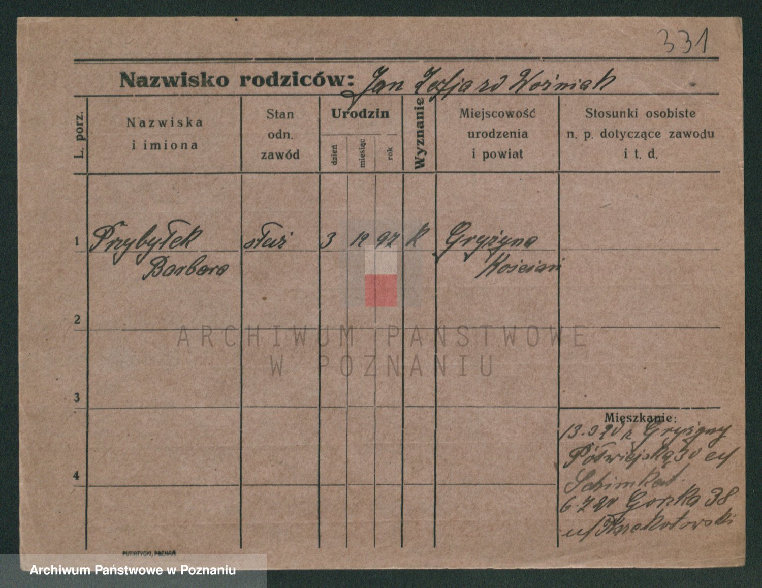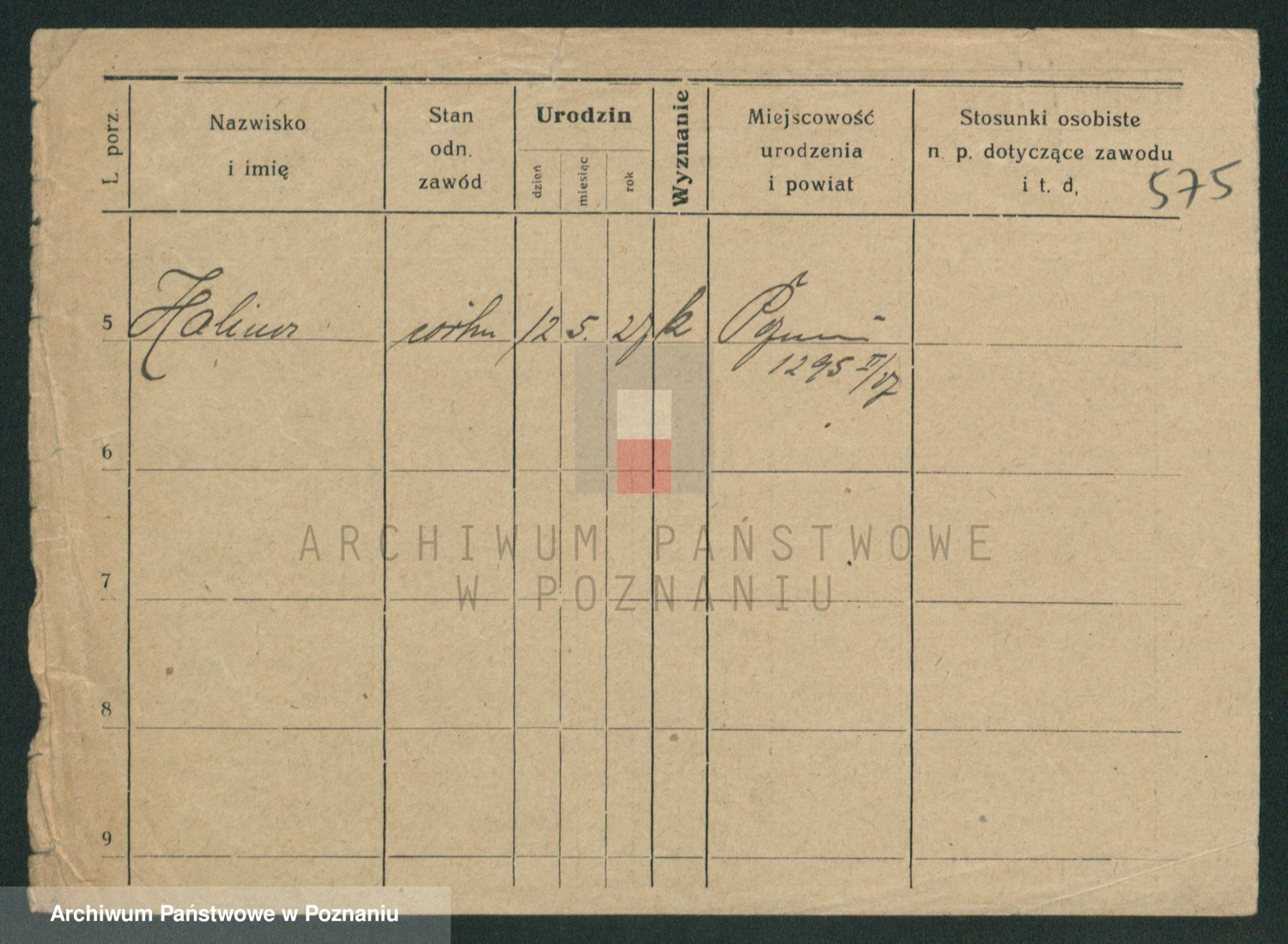 Podgląd karty osobowej dostępny jest po kliknięciu na nazwisko lub ikonkę karty. Można dokonywać powiększenia (ikony na górze) lub przechodzić między kolejnymi skanami (strzałki po bokach).