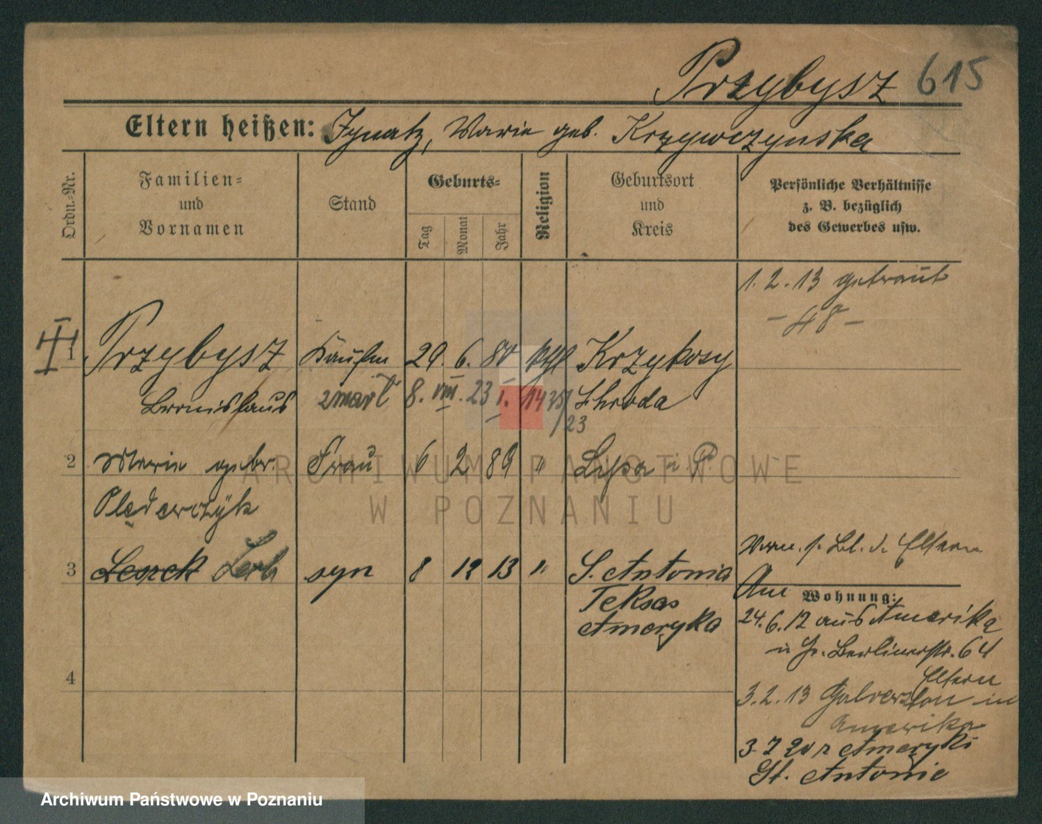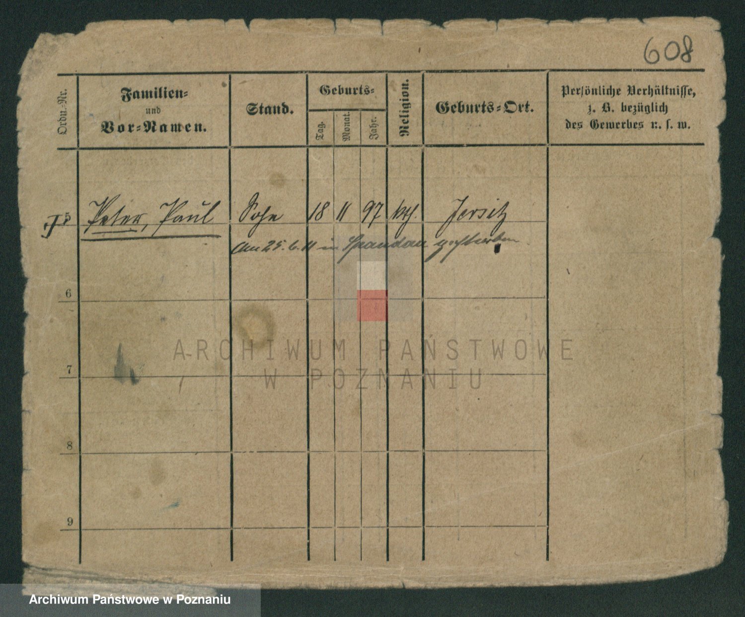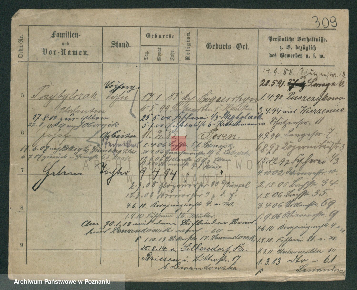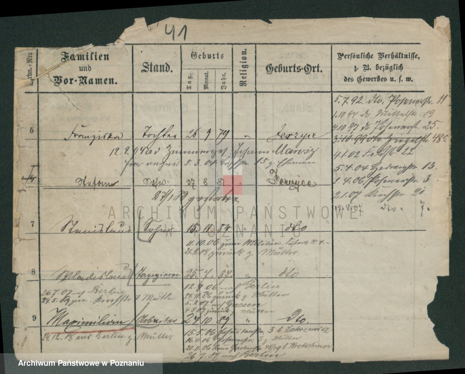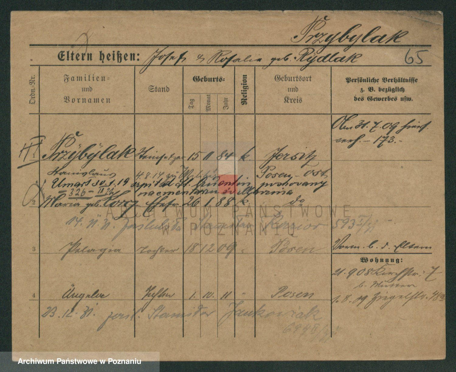 Podgląd karty osobowej dostępny jest po kliknięciu na nazwisko lub ikonkę karty. Można dokonywać powiększenia (ikony na górze) lub przechodzić między kolejnymi skanami (strzałki po bokach).