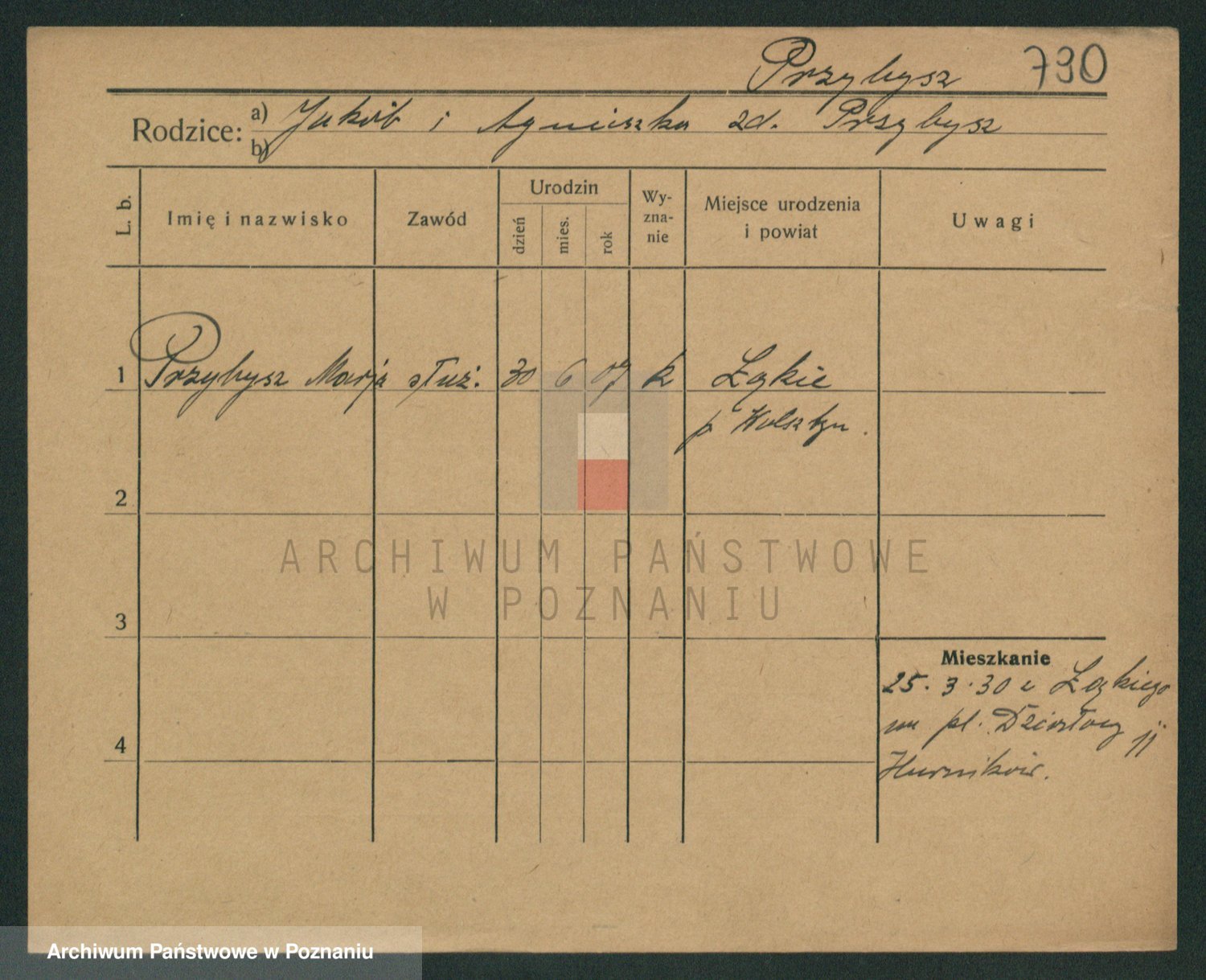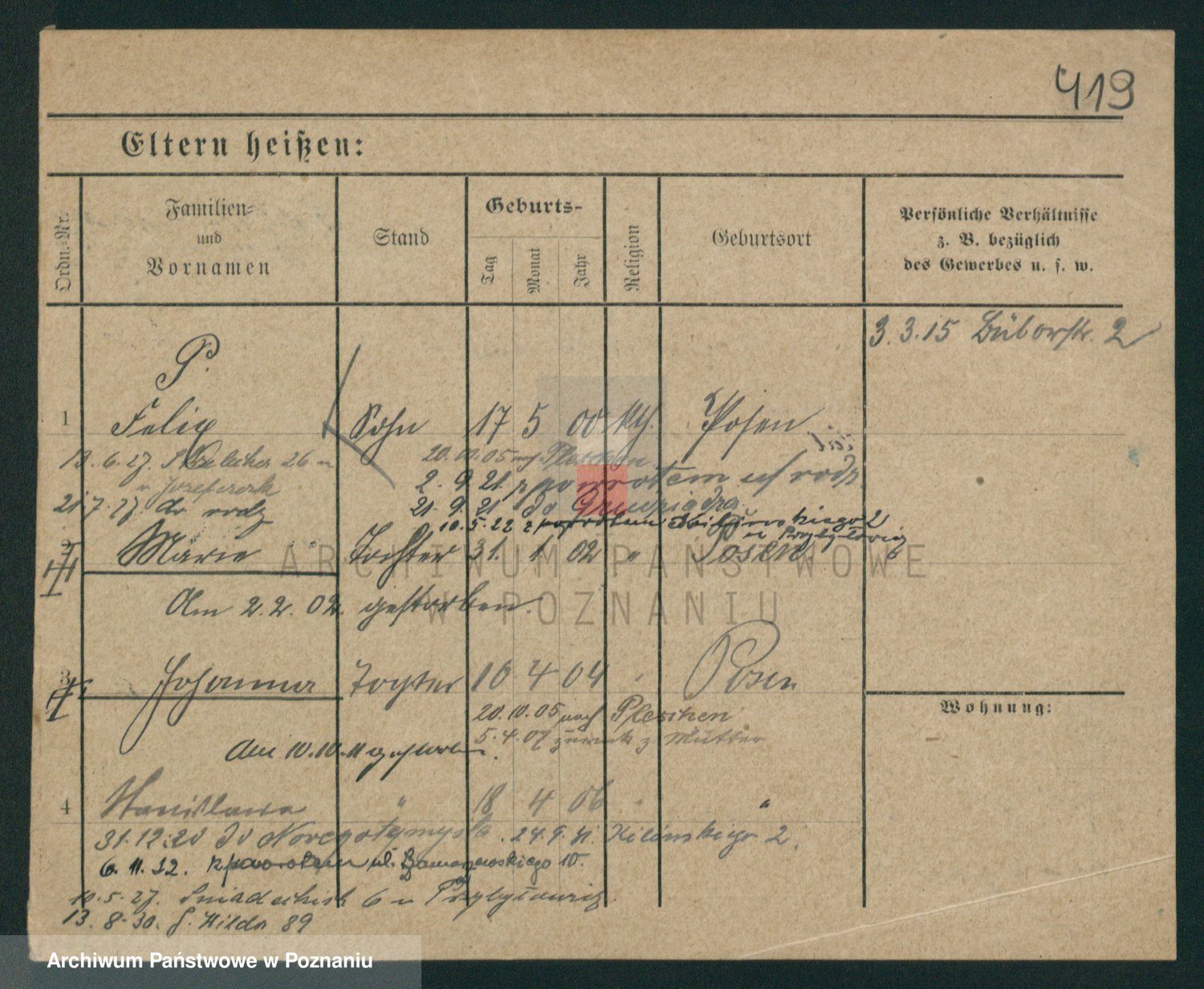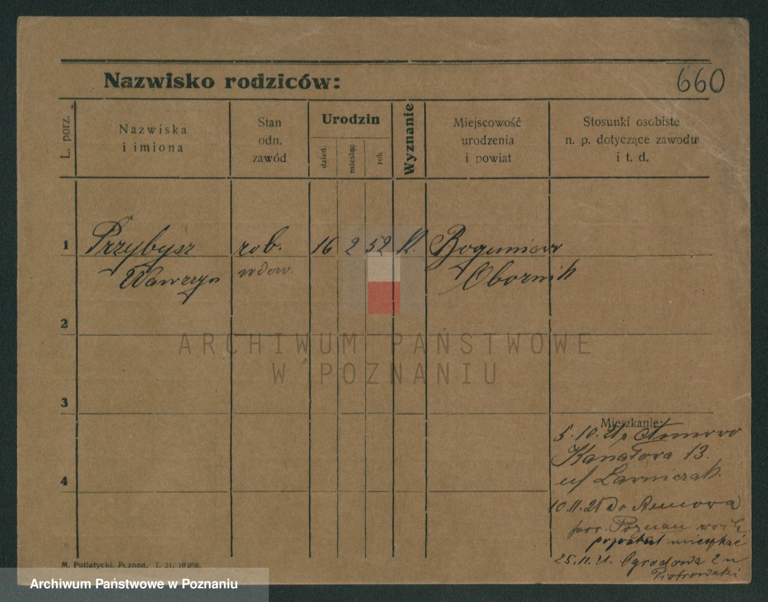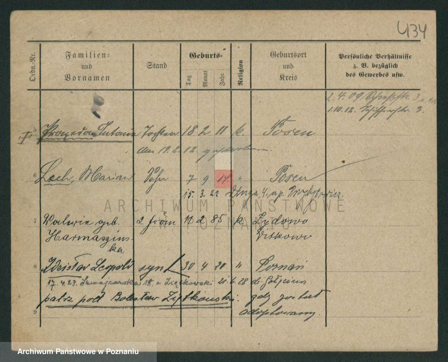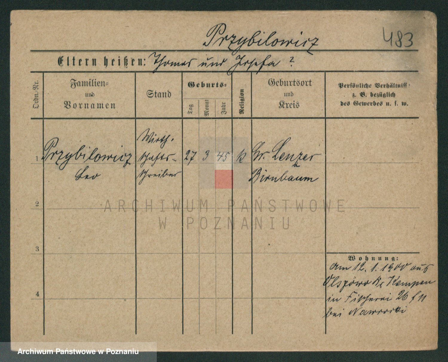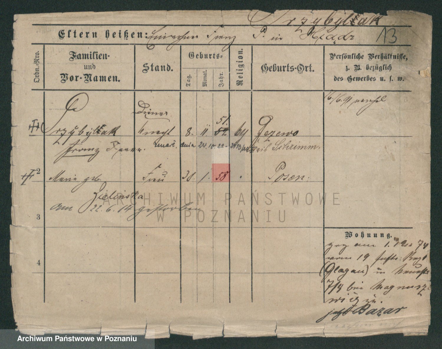 Podgląd karty osobowej dostępny jest po kliknięciu na nazwisko lub ikonkę karty. Można dokonywać powiększenia (ikony na górze) lub przechodzić między kolejnymi skanami (strzałki po bokach).