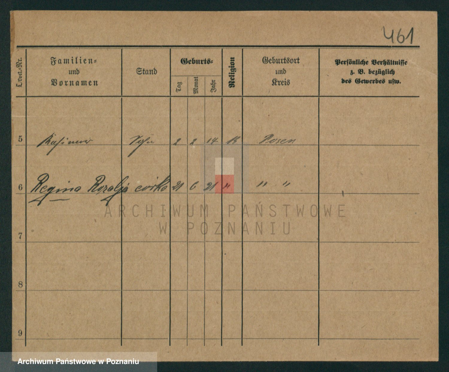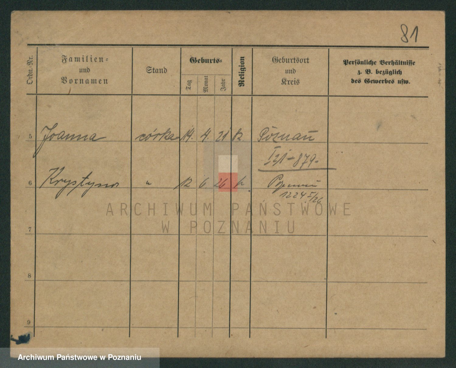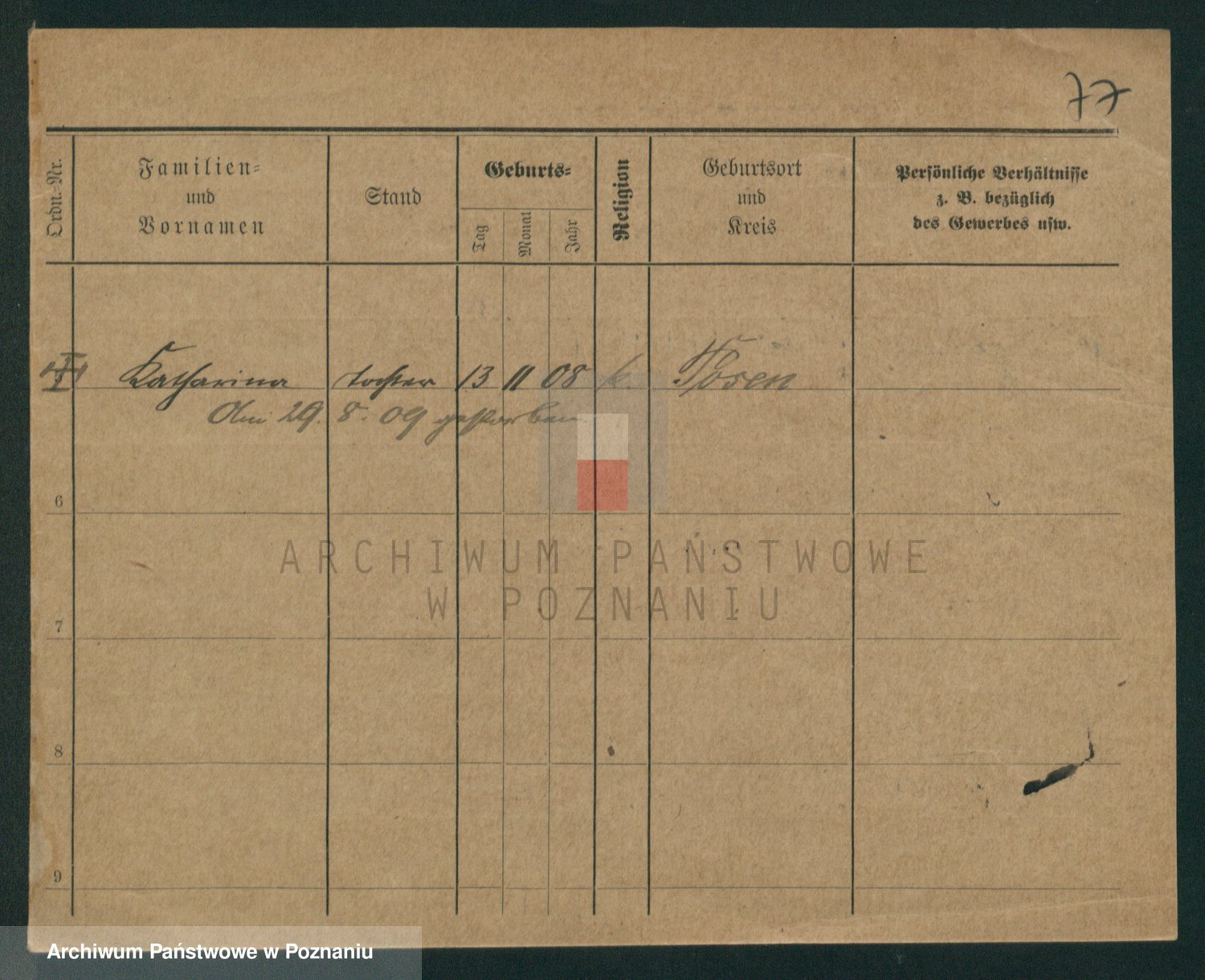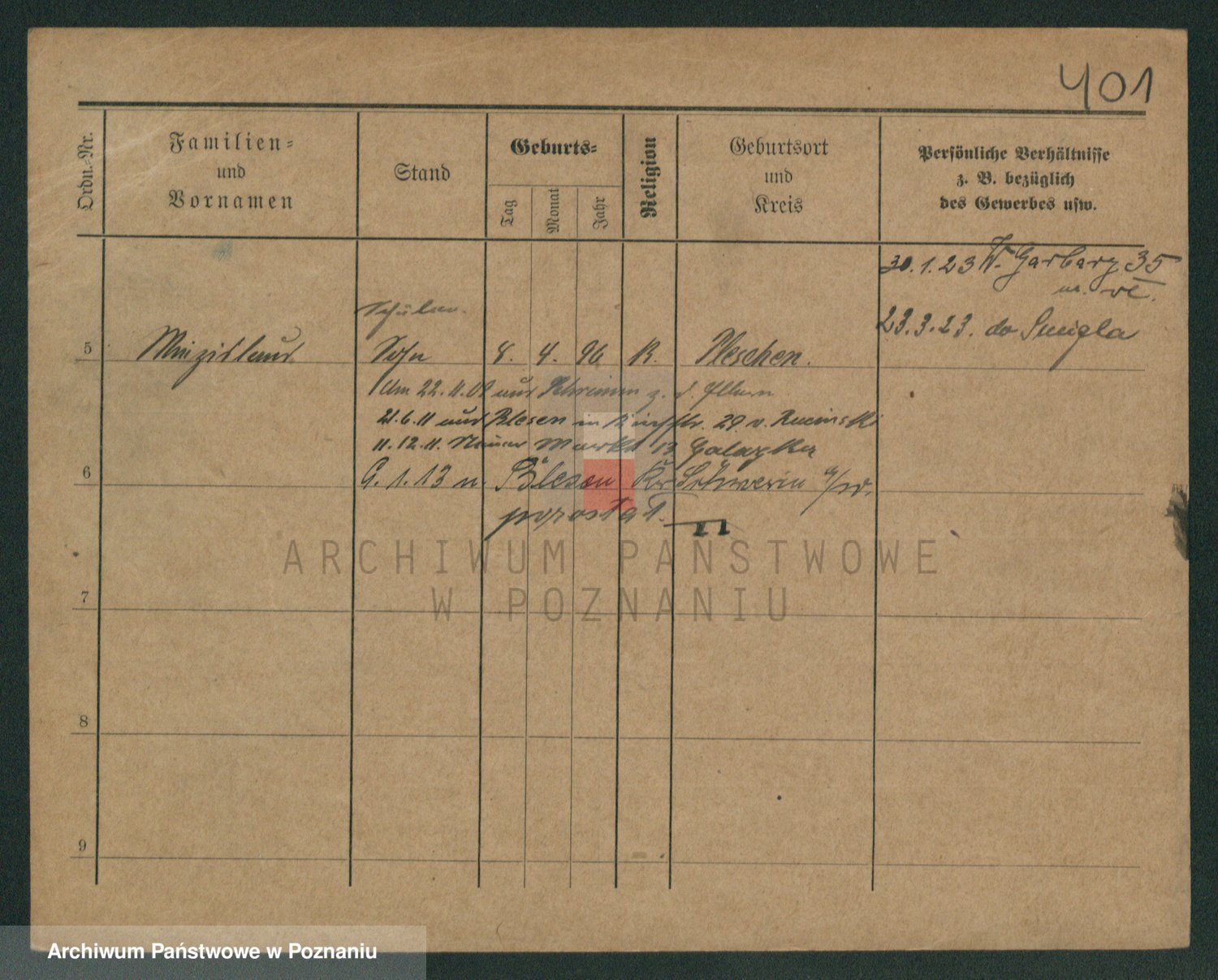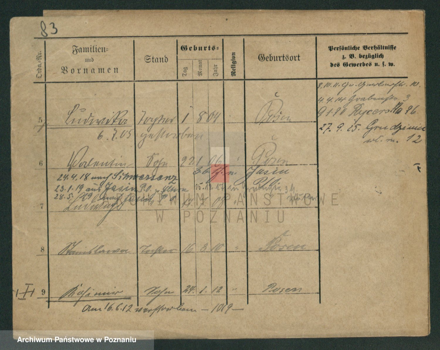 Podgląd karty osobowej dostępny jest po kliknięciu na nazwisko lub ikonkę karty. Można dokonywać powiększenia (ikony na górze) lub przechodzić między kolejnymi skanami (strzałki po bokach).