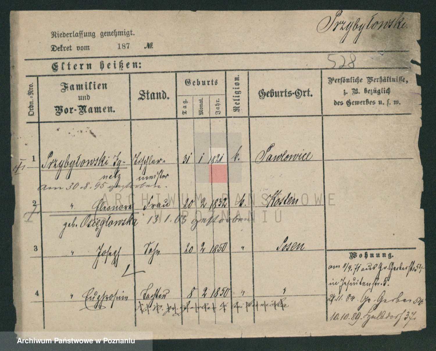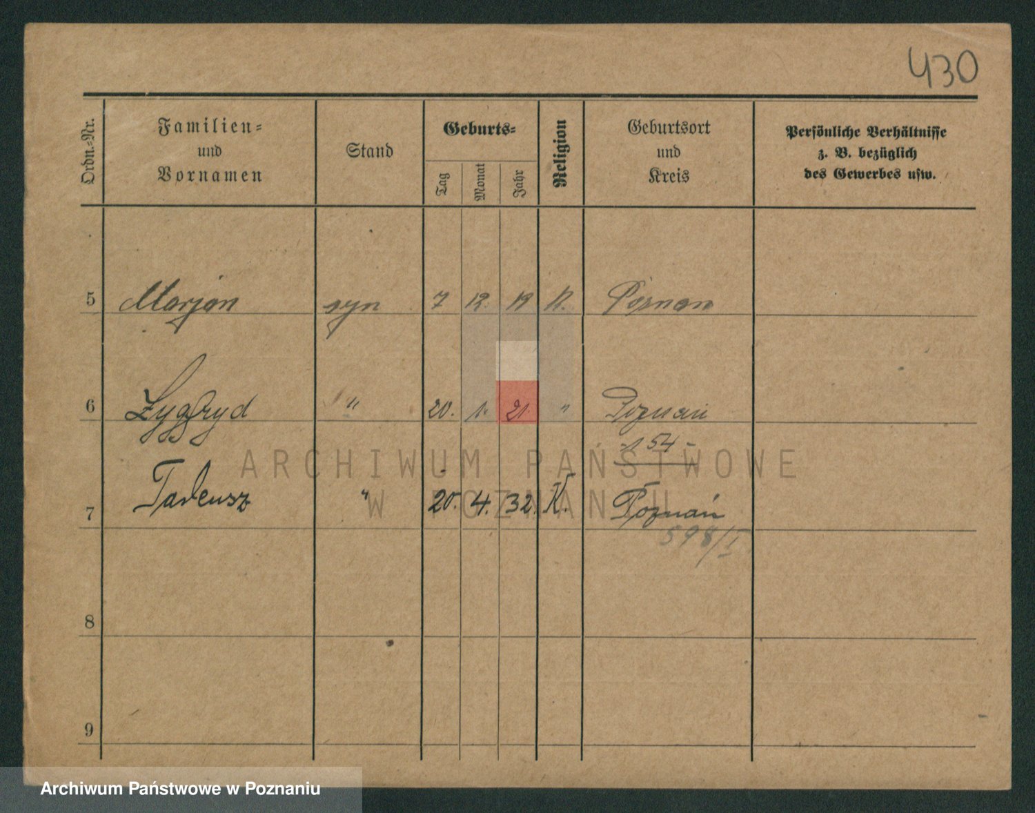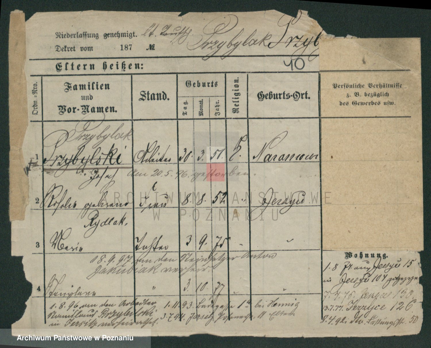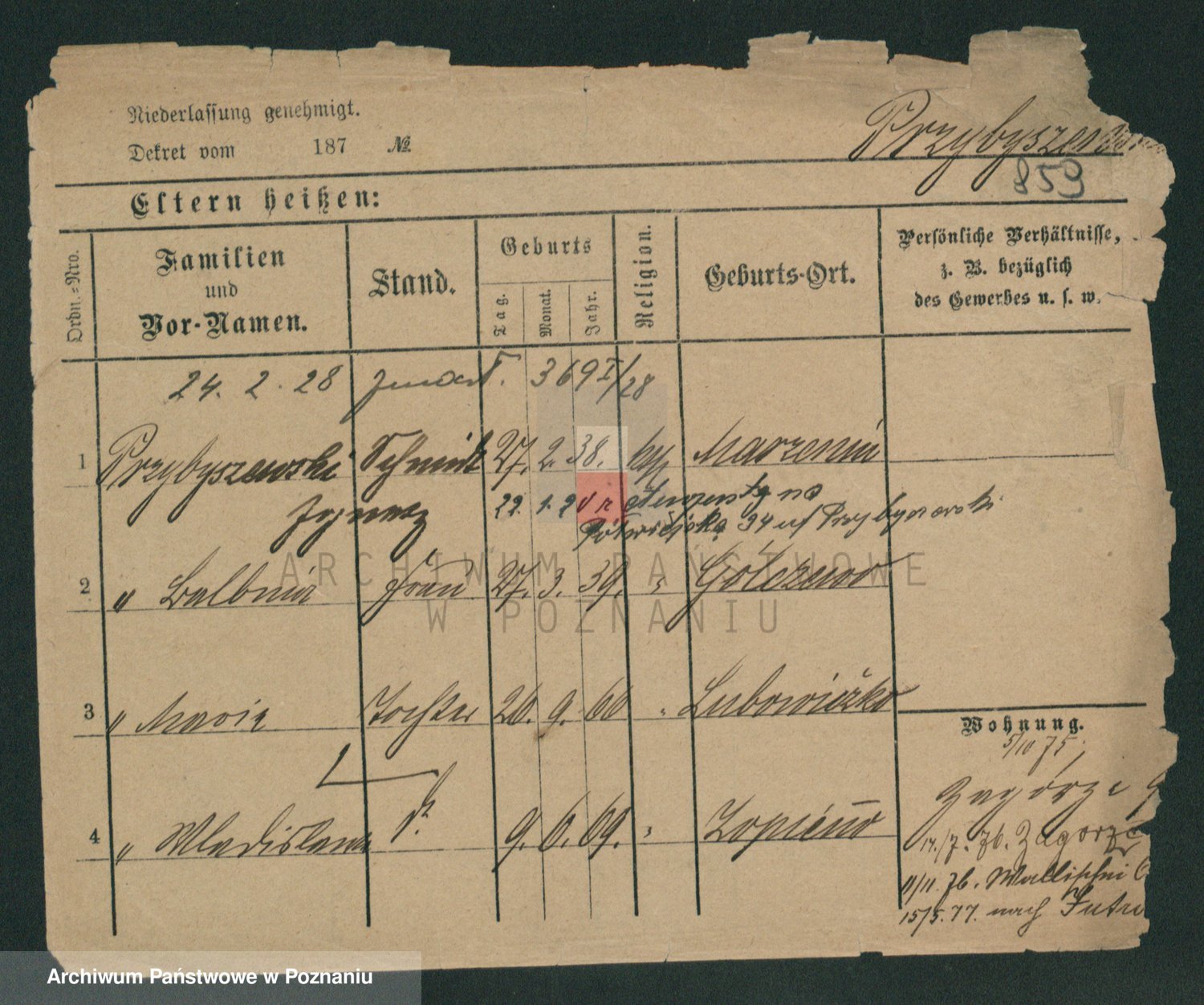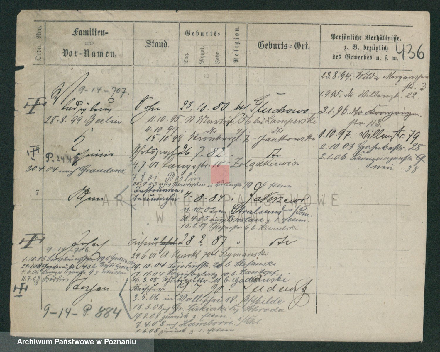 Podgląd karty osobowej dostępny jest po kliknięciu na nazwisko lub ikonkę karty. Można dokonywać powiększenia (ikony na górze) lub przechodzić między kolejnymi skanami (strzałki po bokach).
