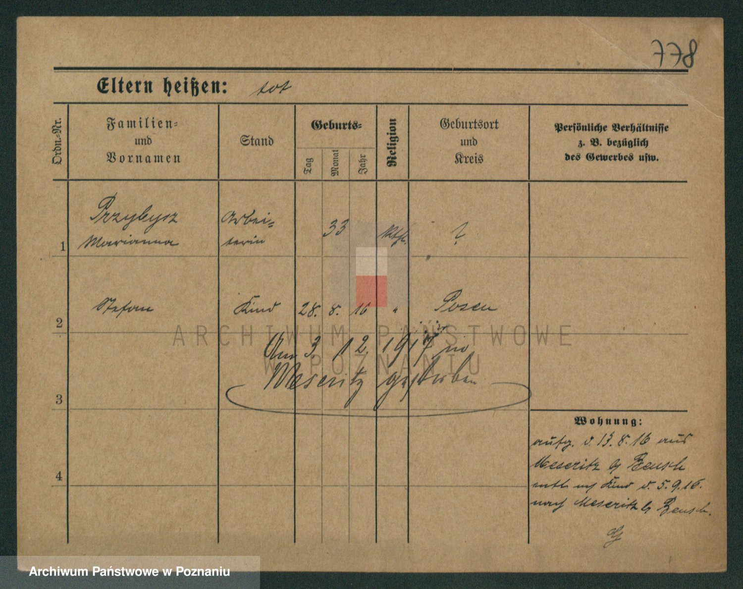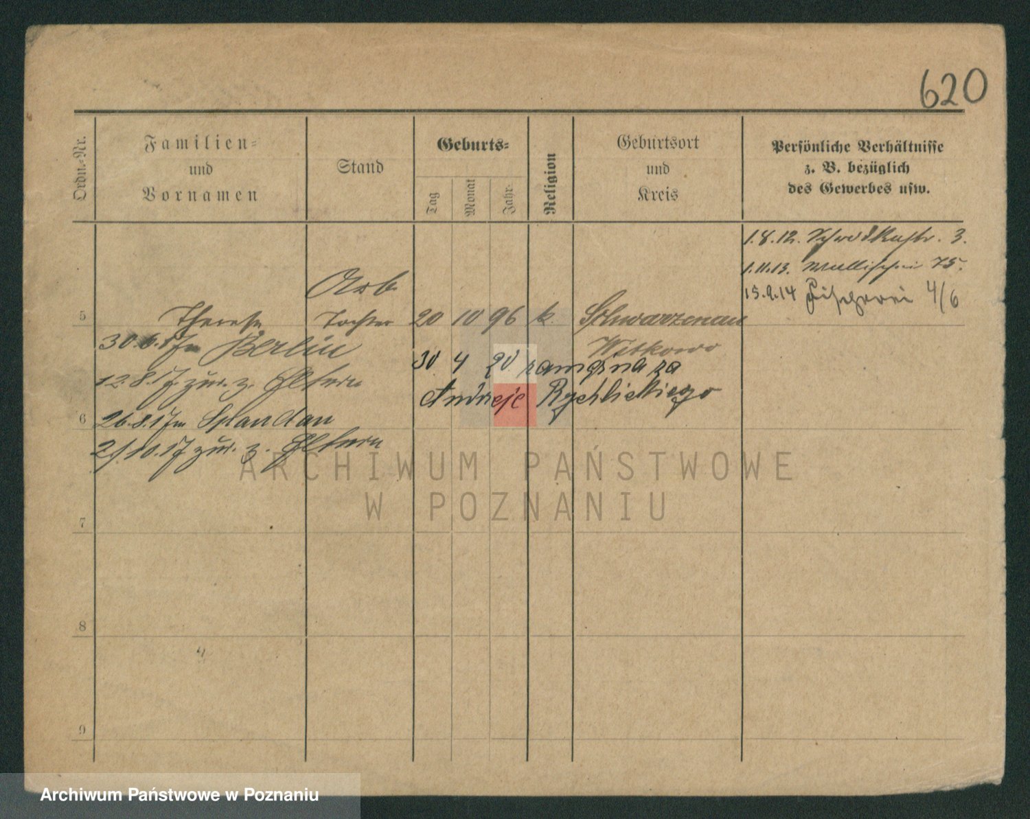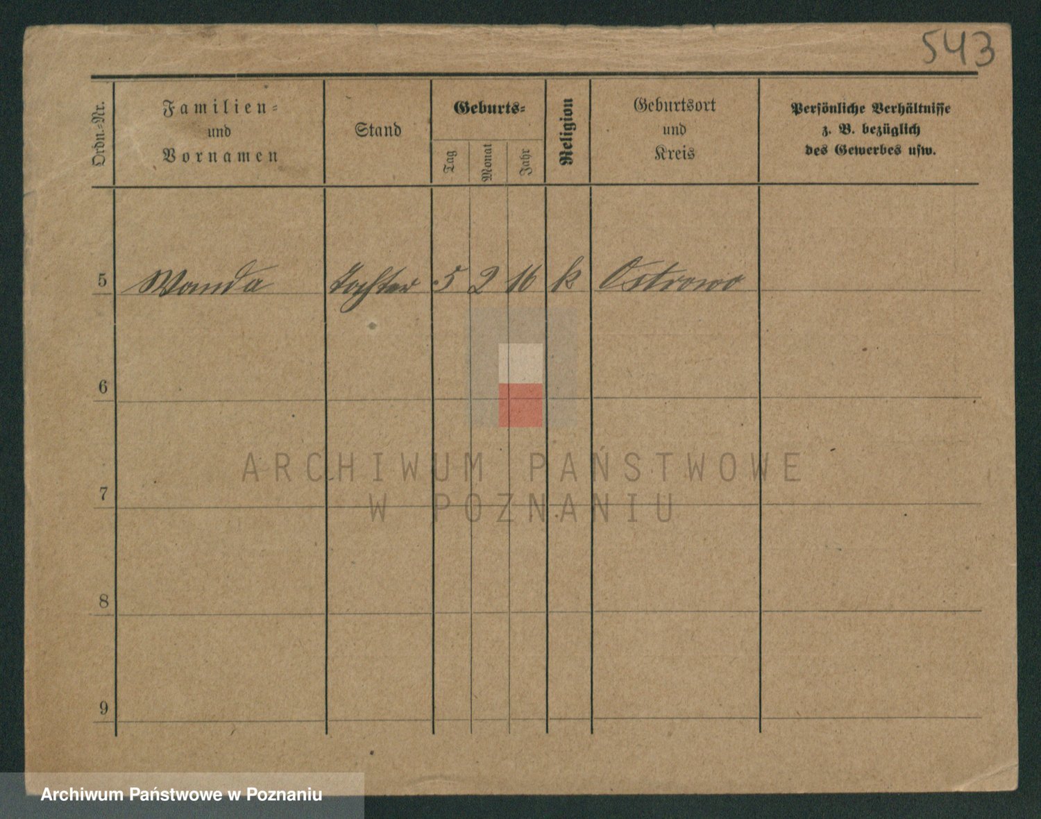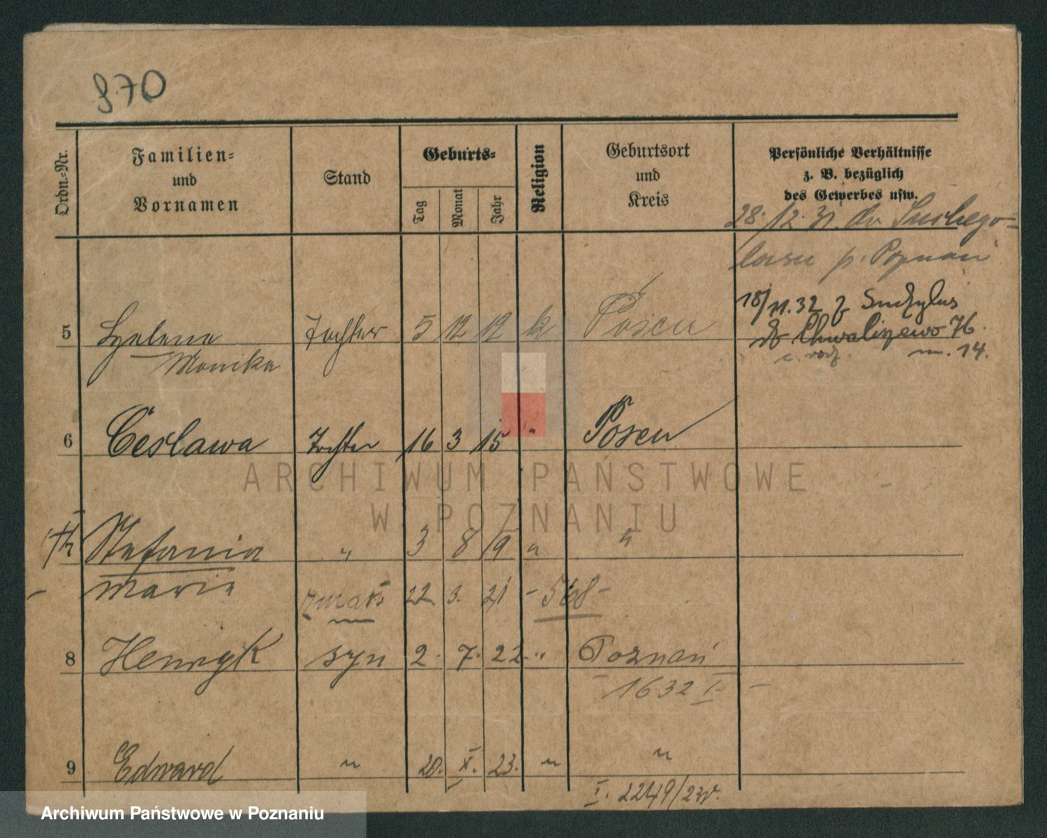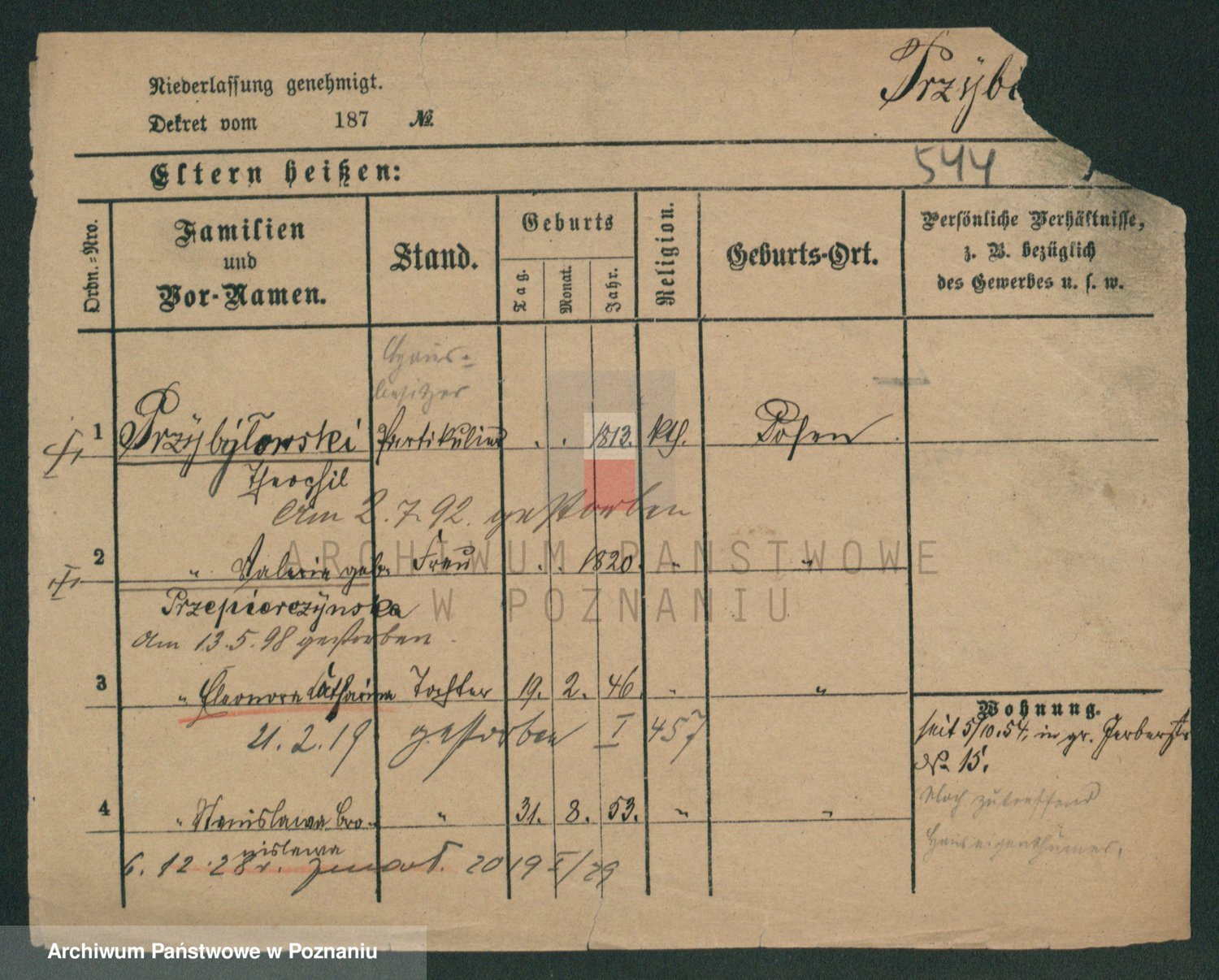 Podgląd karty osobowej dostępny jest po kliknięciu na nazwisko lub ikonkę karty. Można dokonywać powiększenia (ikony na górze) lub przechodzić między kolejnymi skanami (strzałki po bokach).
