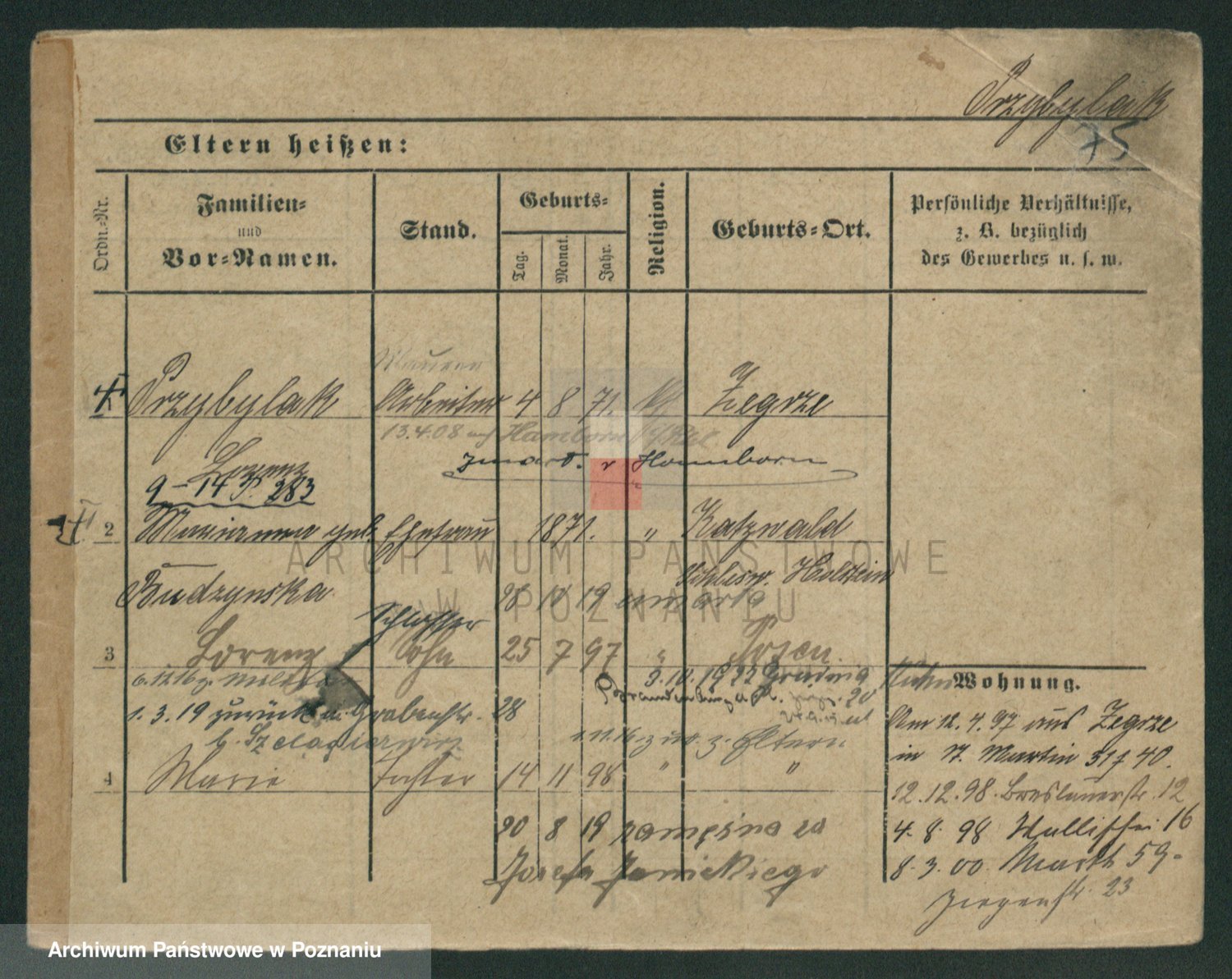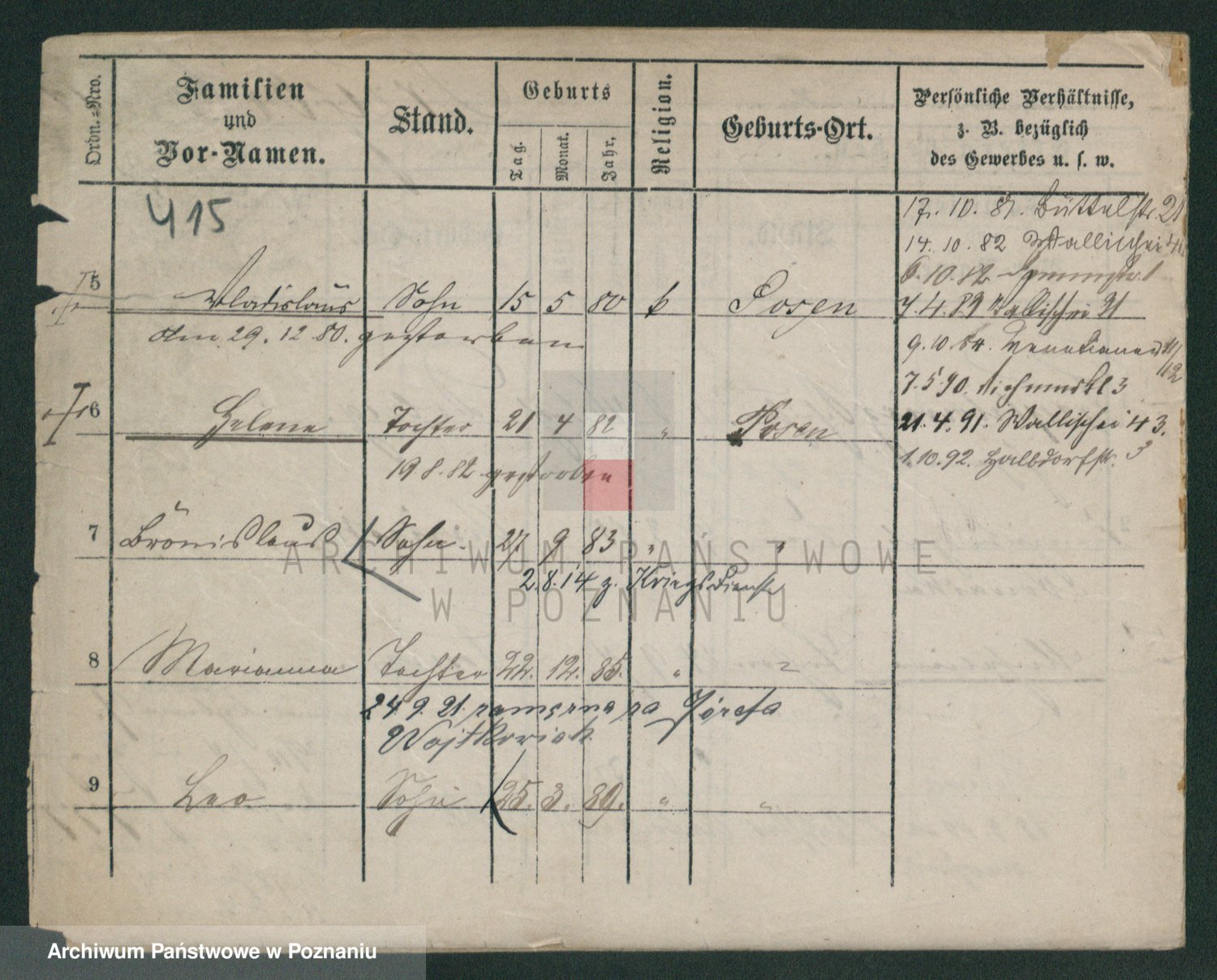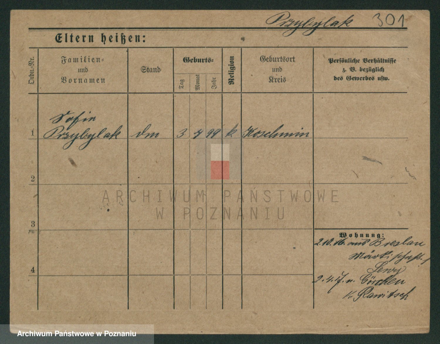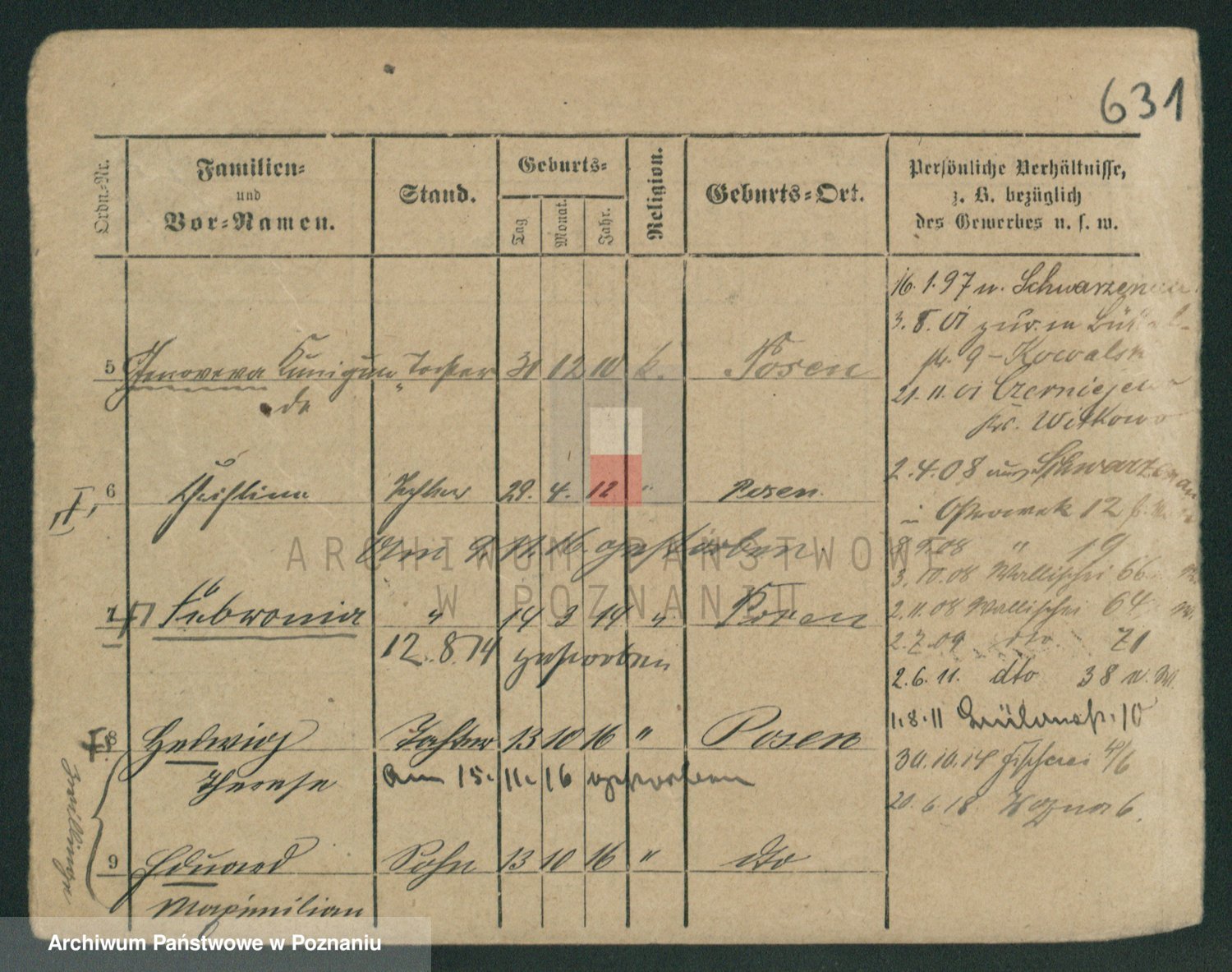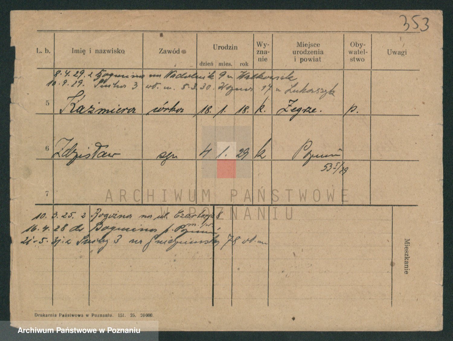Podgląd karty osobowej dostępny jest po kliknięciu na nazwisko lub ikonkę karty. Można dokonywać powiększenia (ikony na górze) lub przechodzić między kolejnymi skanami (strzałki po bokach).