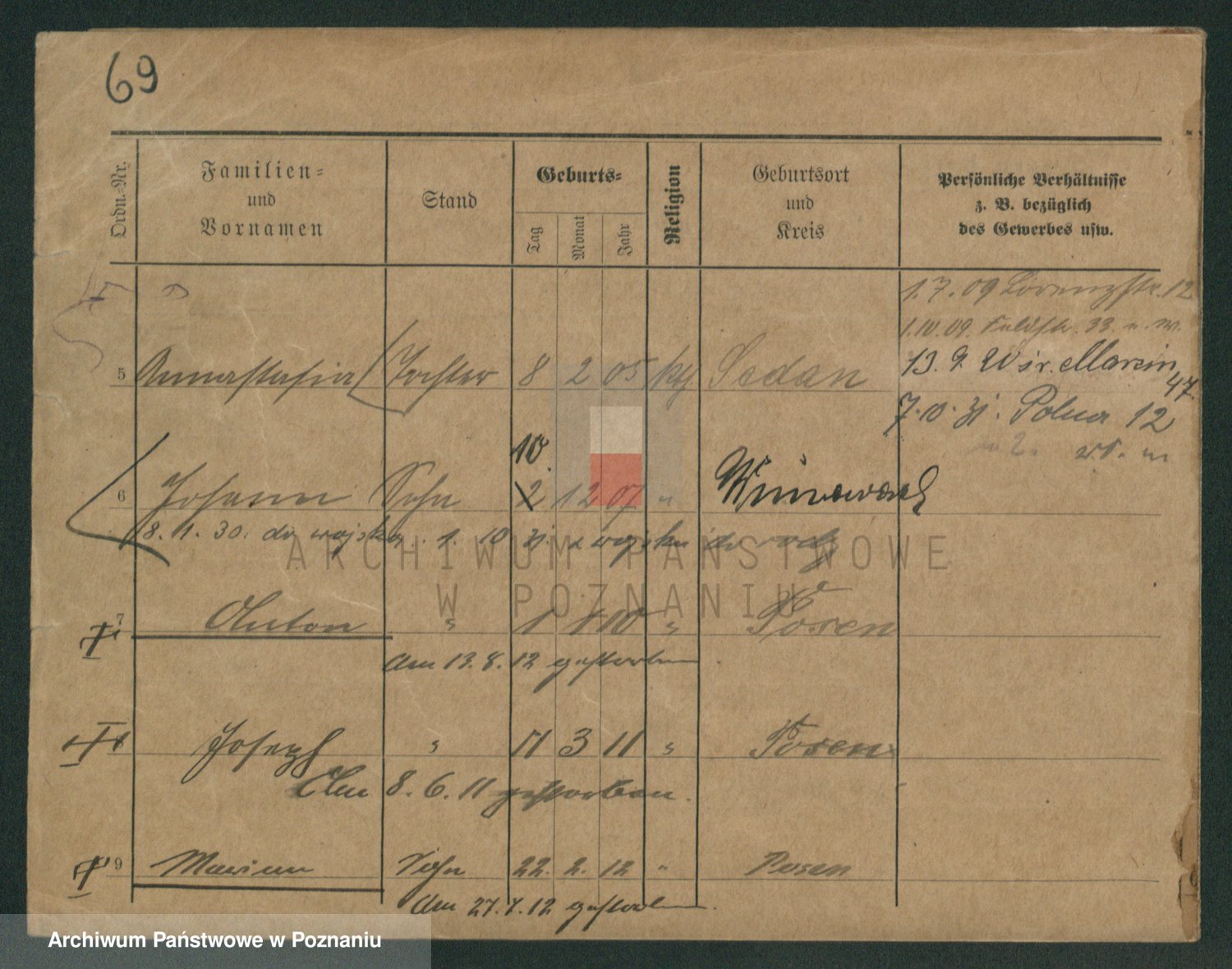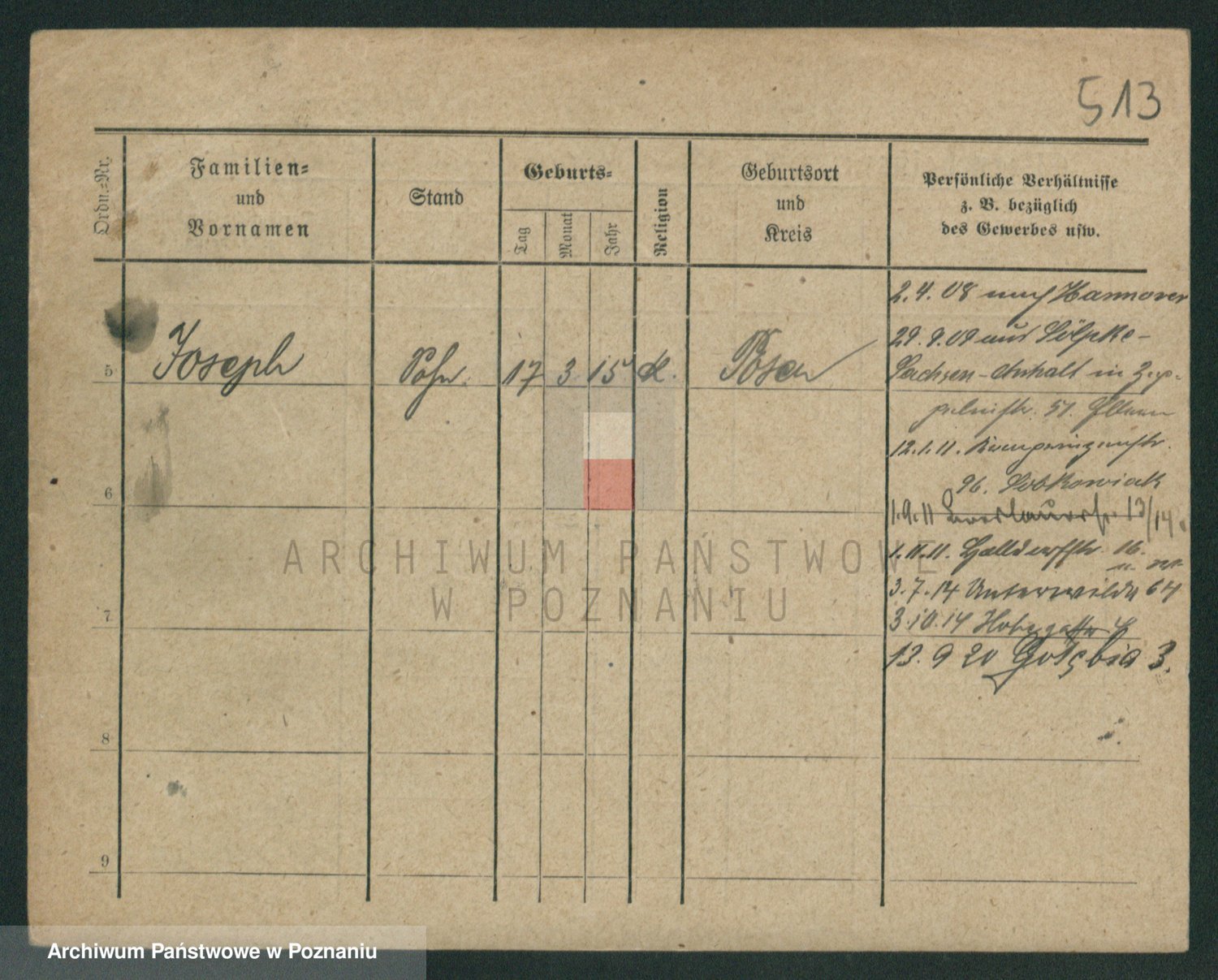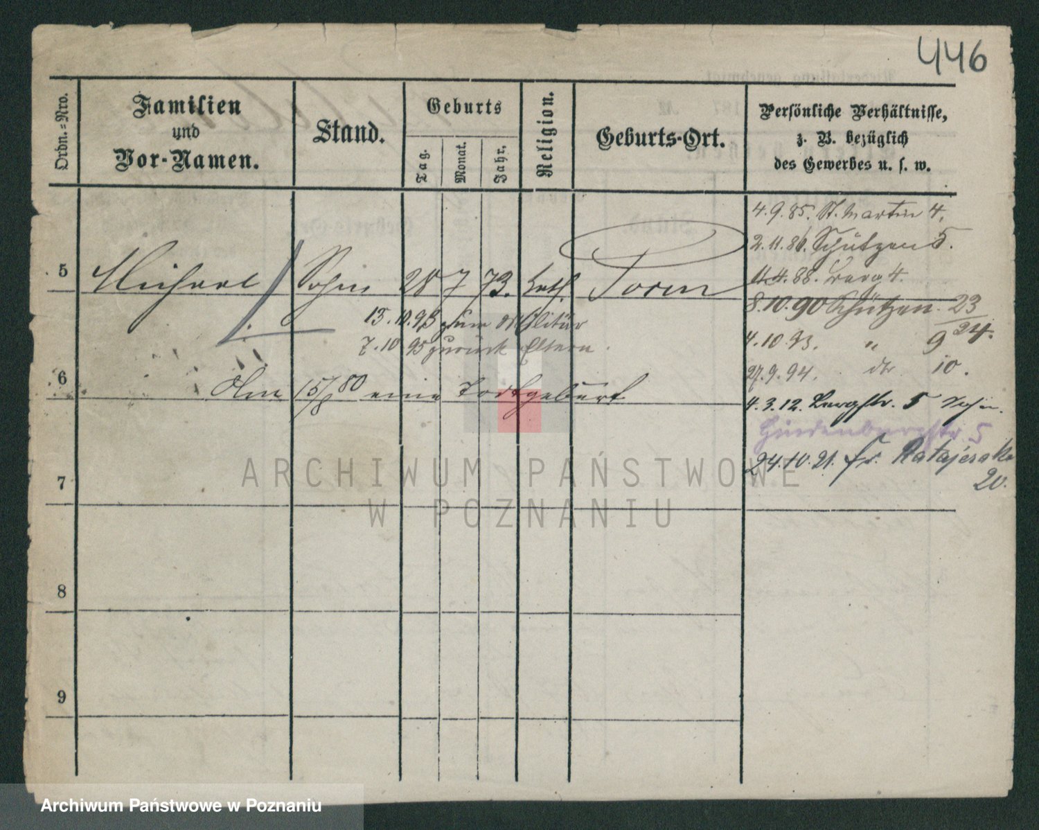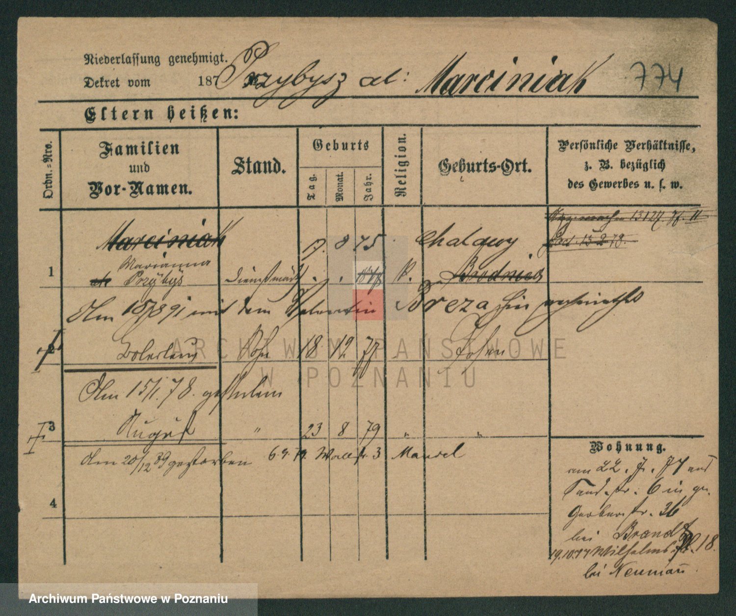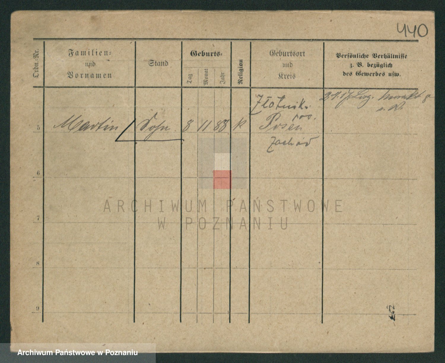 Podgląd karty osobowej dostępny jest po kliknięciu na nazwisko lub ikonkę karty. Można dokonywać powiększenia (ikony na górze) lub przechodzić między kolejnymi skanami (strzałki po bokach).