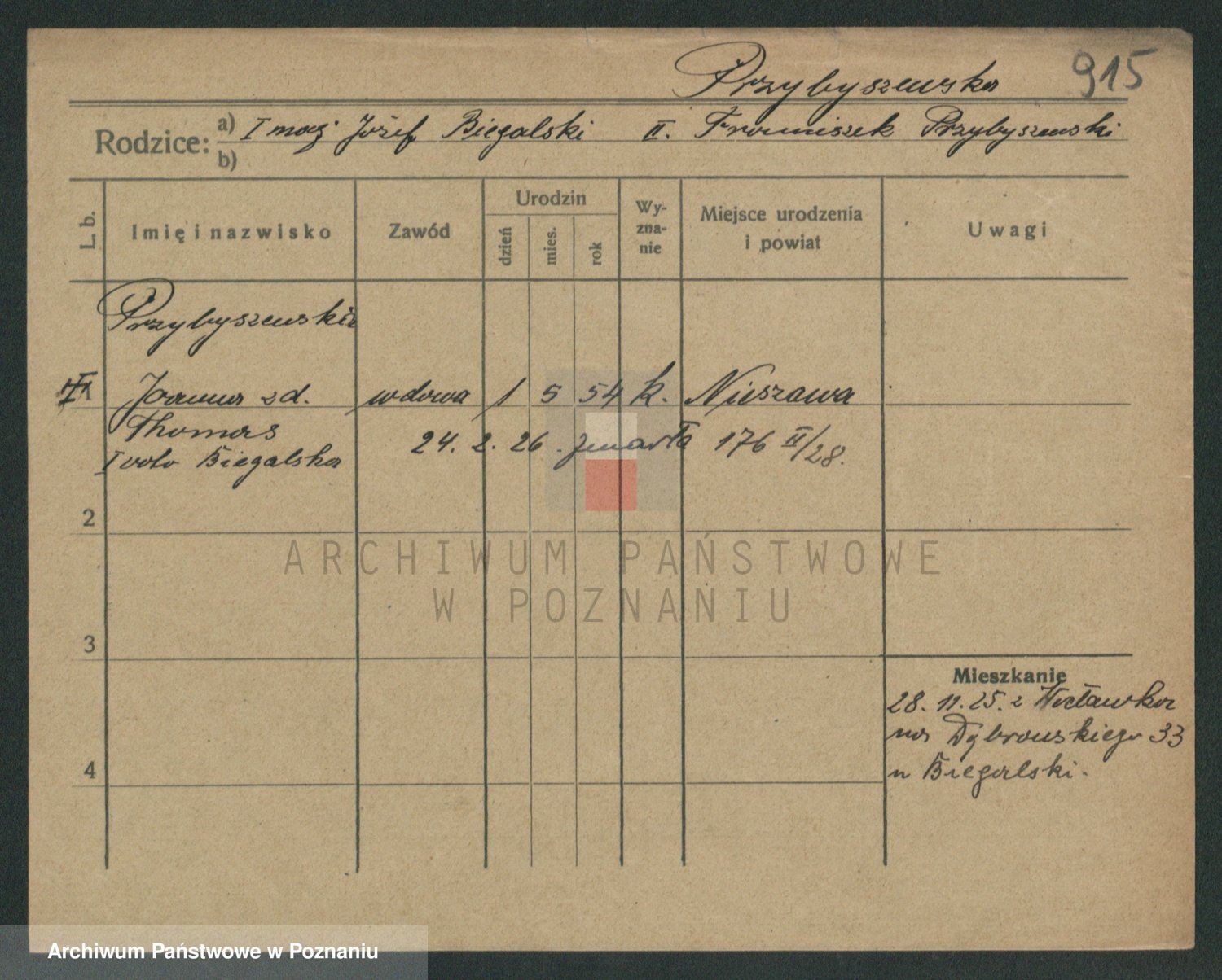 Przybyszewska z d. Thomas I voto Biegalska, Joanna