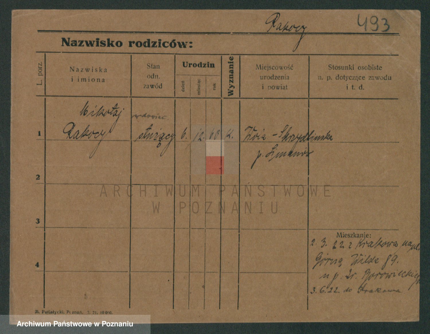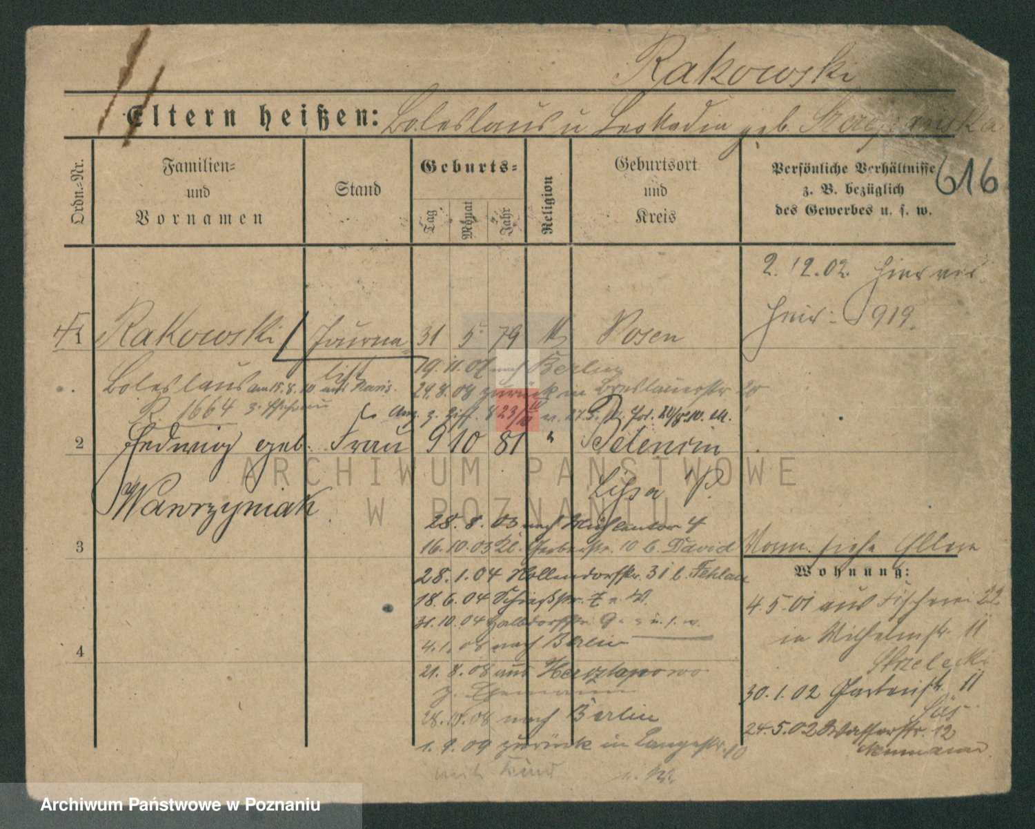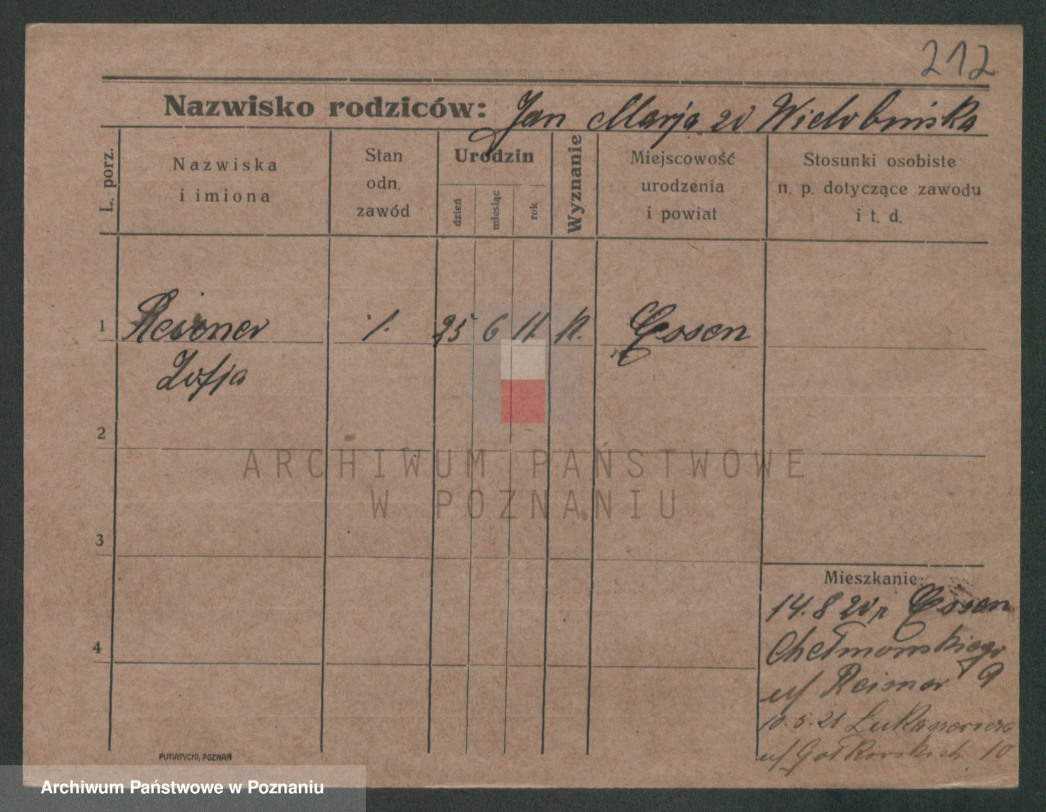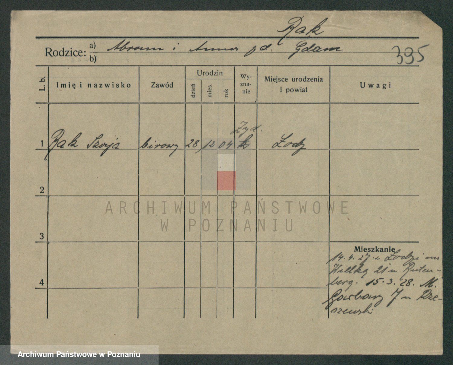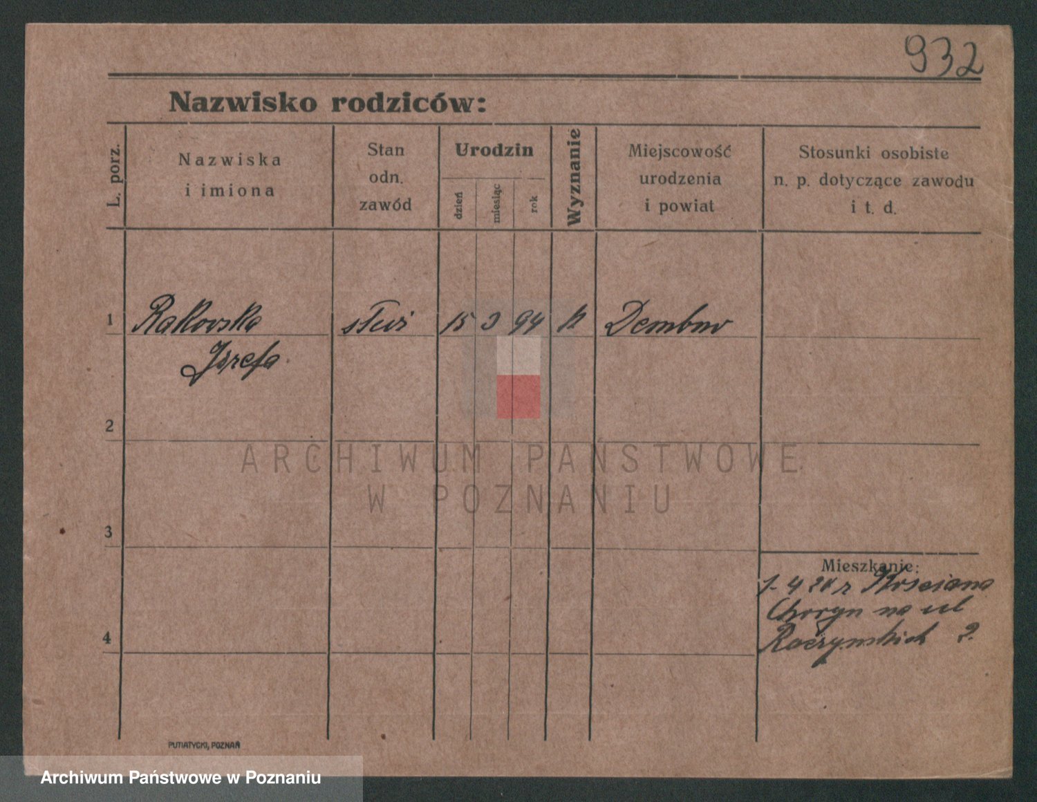 Podgląd karty osobowej dostępny jest po kliknięciu na nazwisko lub ikonkę karty. Można dokonywać powiększenia (ikony na górze) lub przechodzić między kolejnymi skanami (strzałki po bokach).