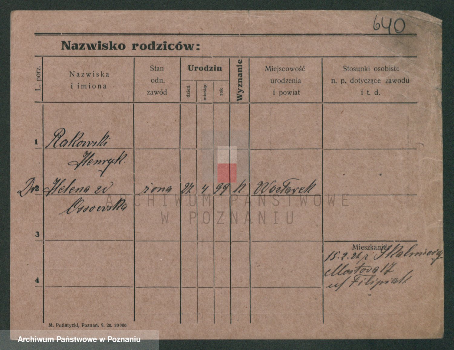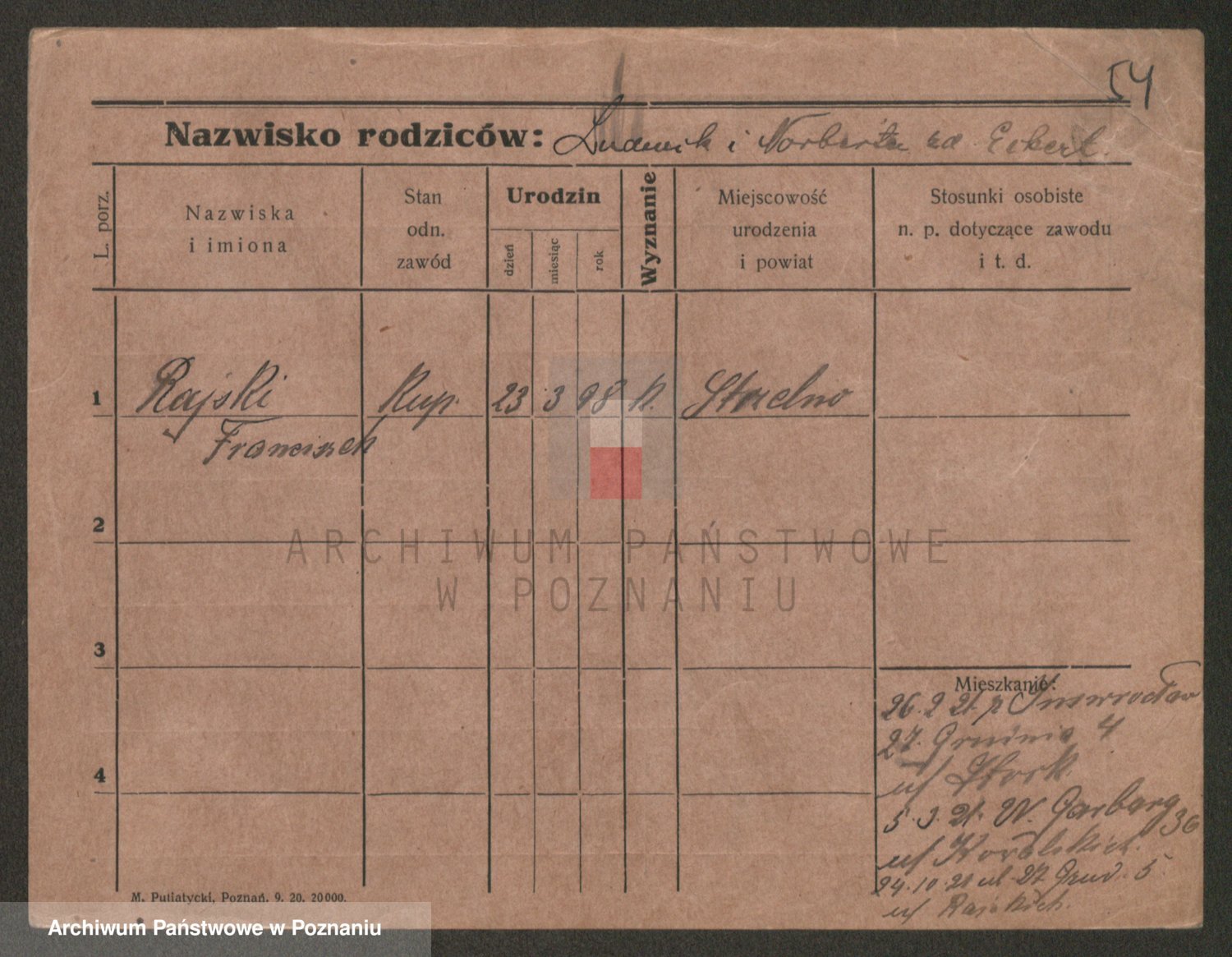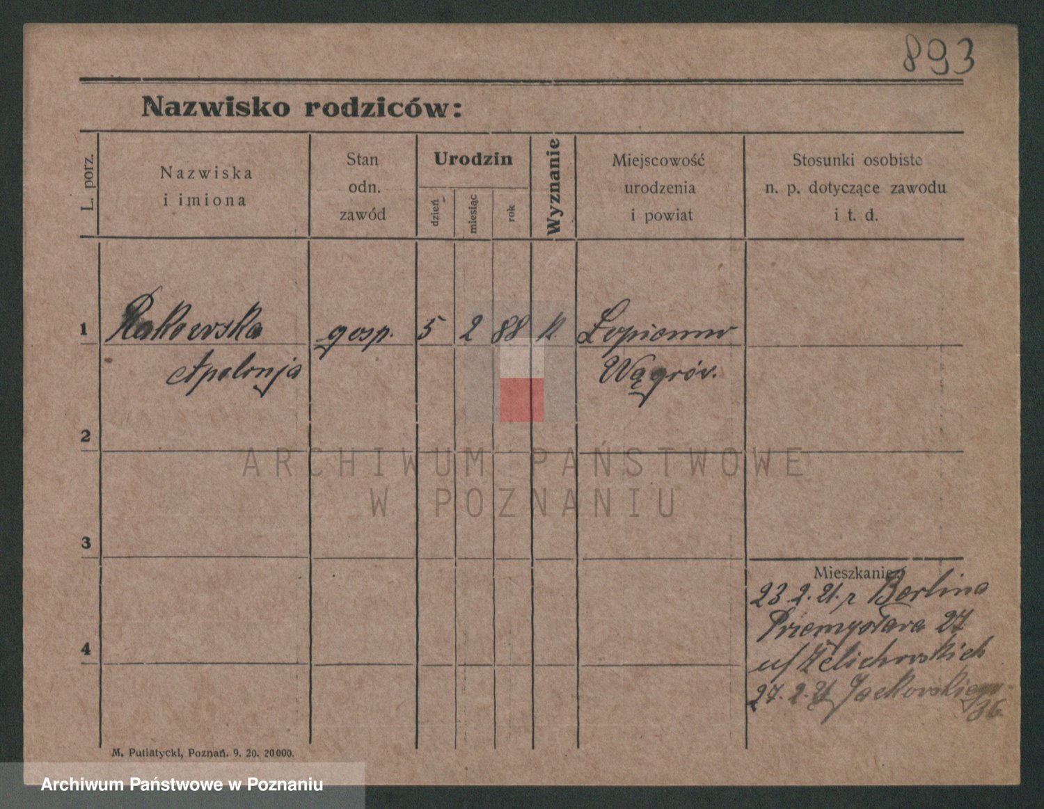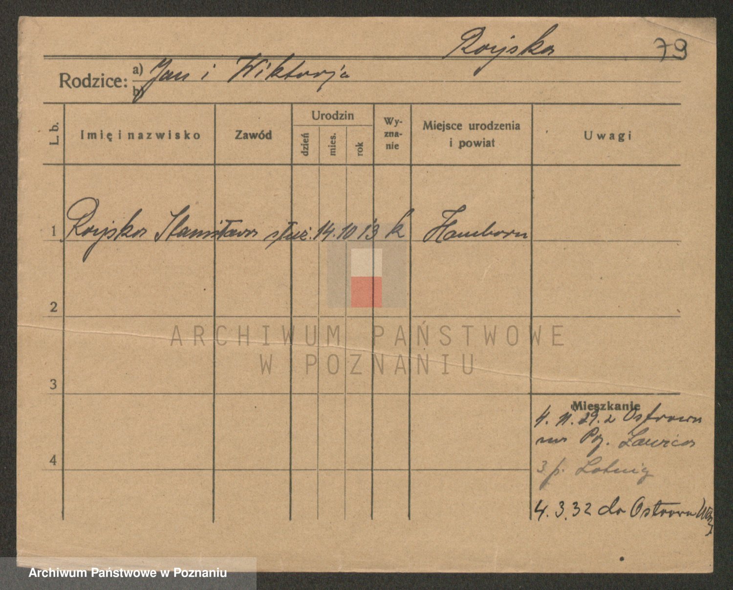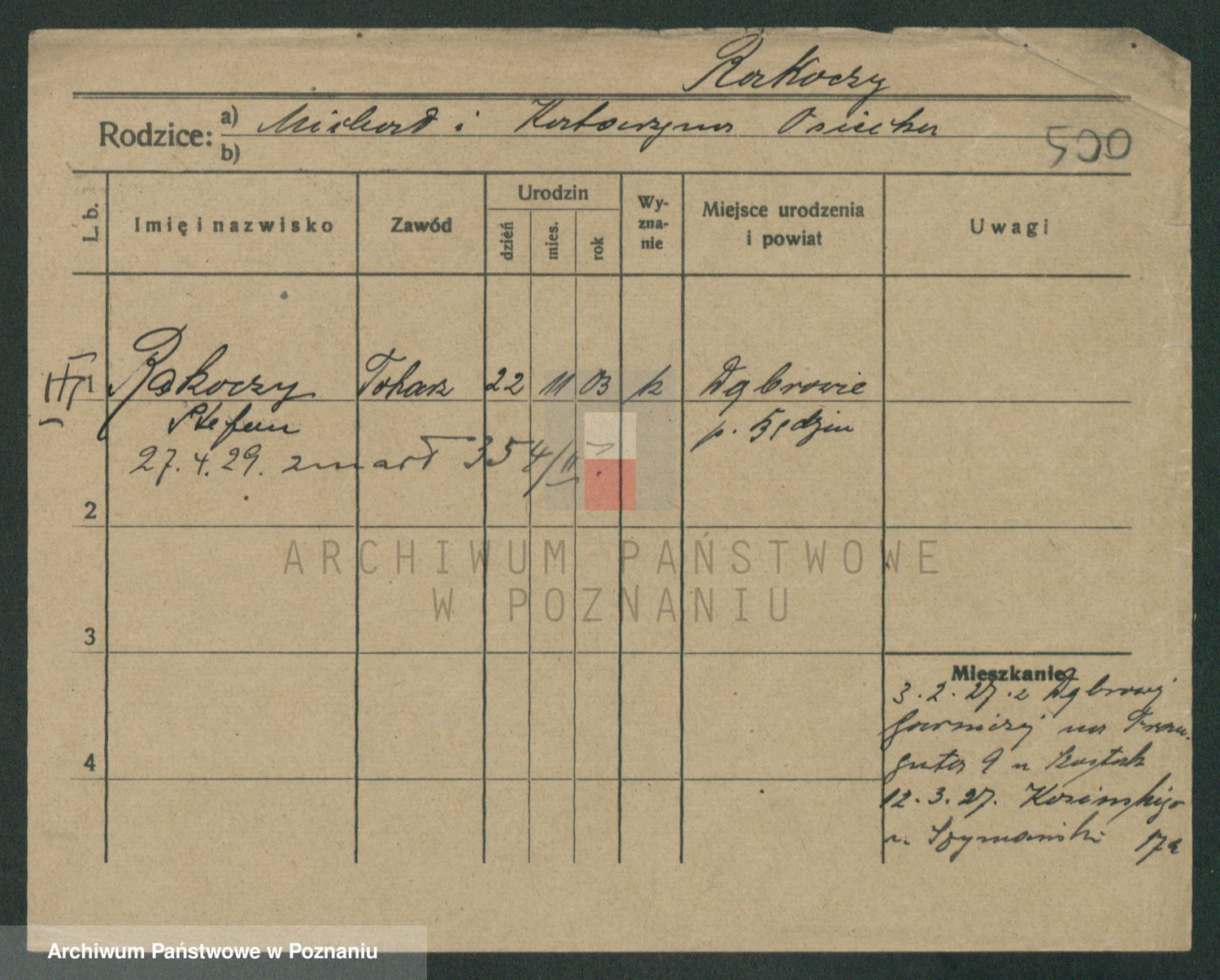 Podgląd karty osobowej dostępny jest po kliknięciu na nazwisko lub ikonkę karty. Można dokonywać powiększenia (ikony na górze) lub przechodzić między kolejnymi skanami (strzałki po bokach).