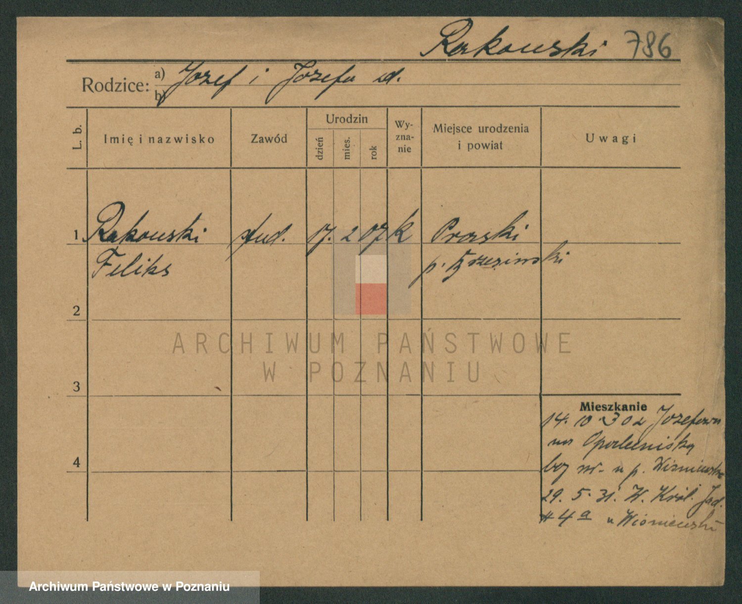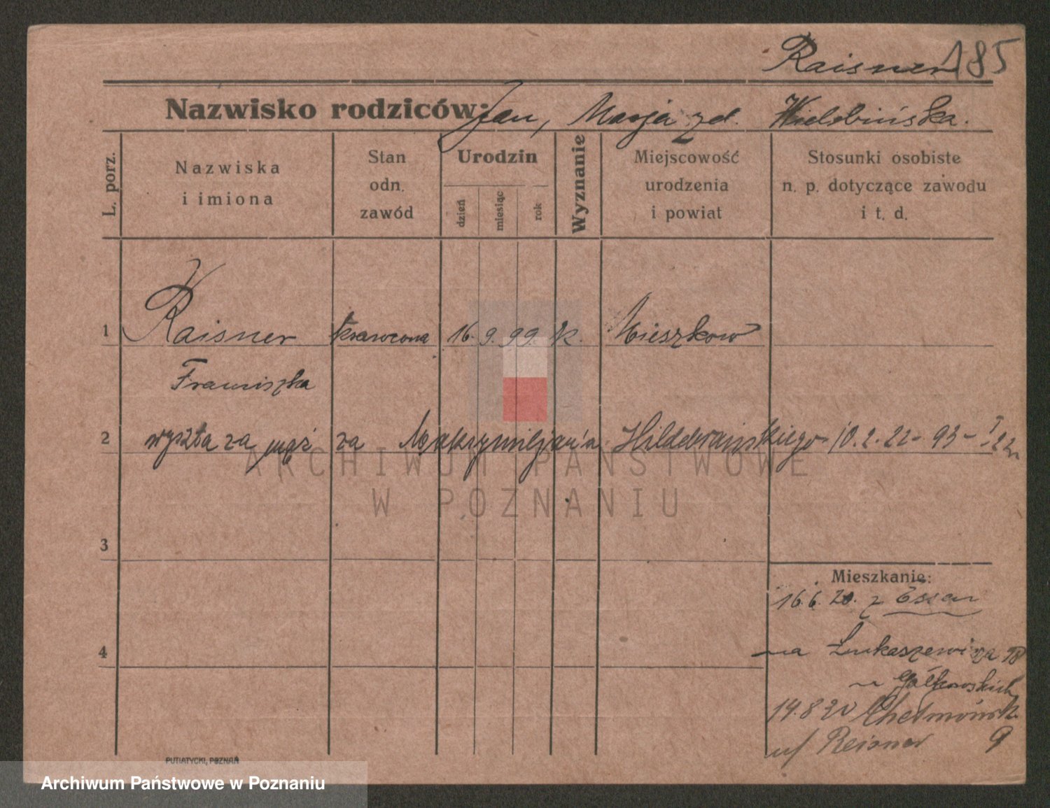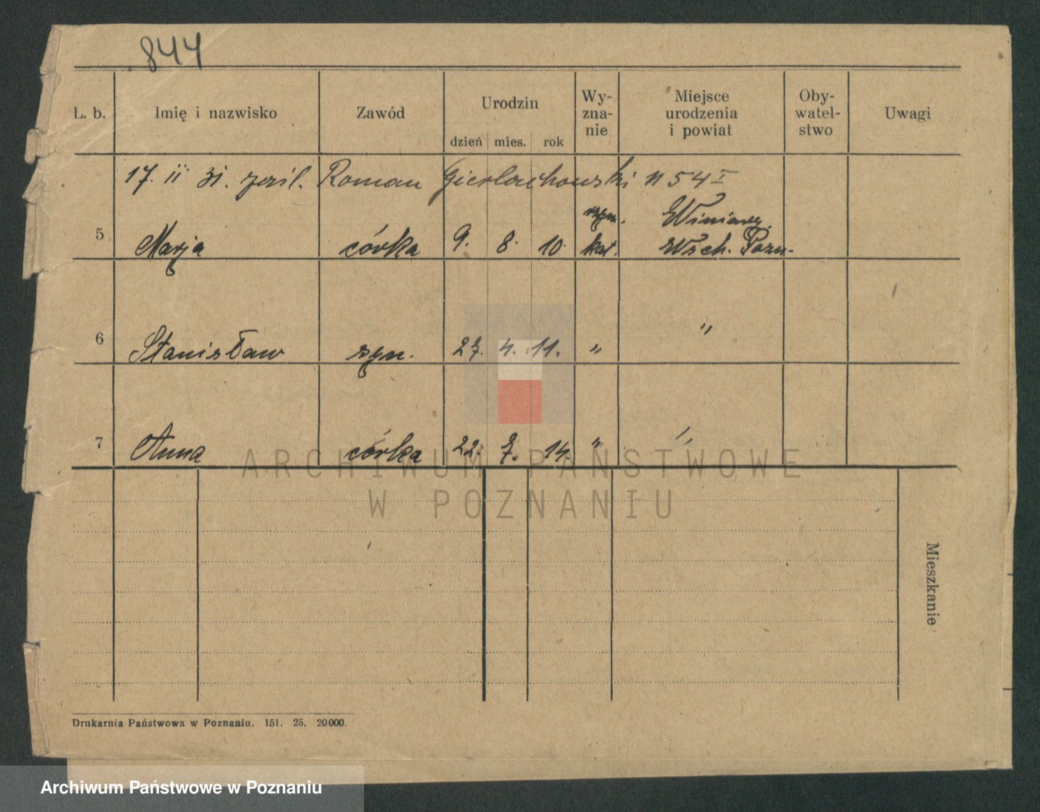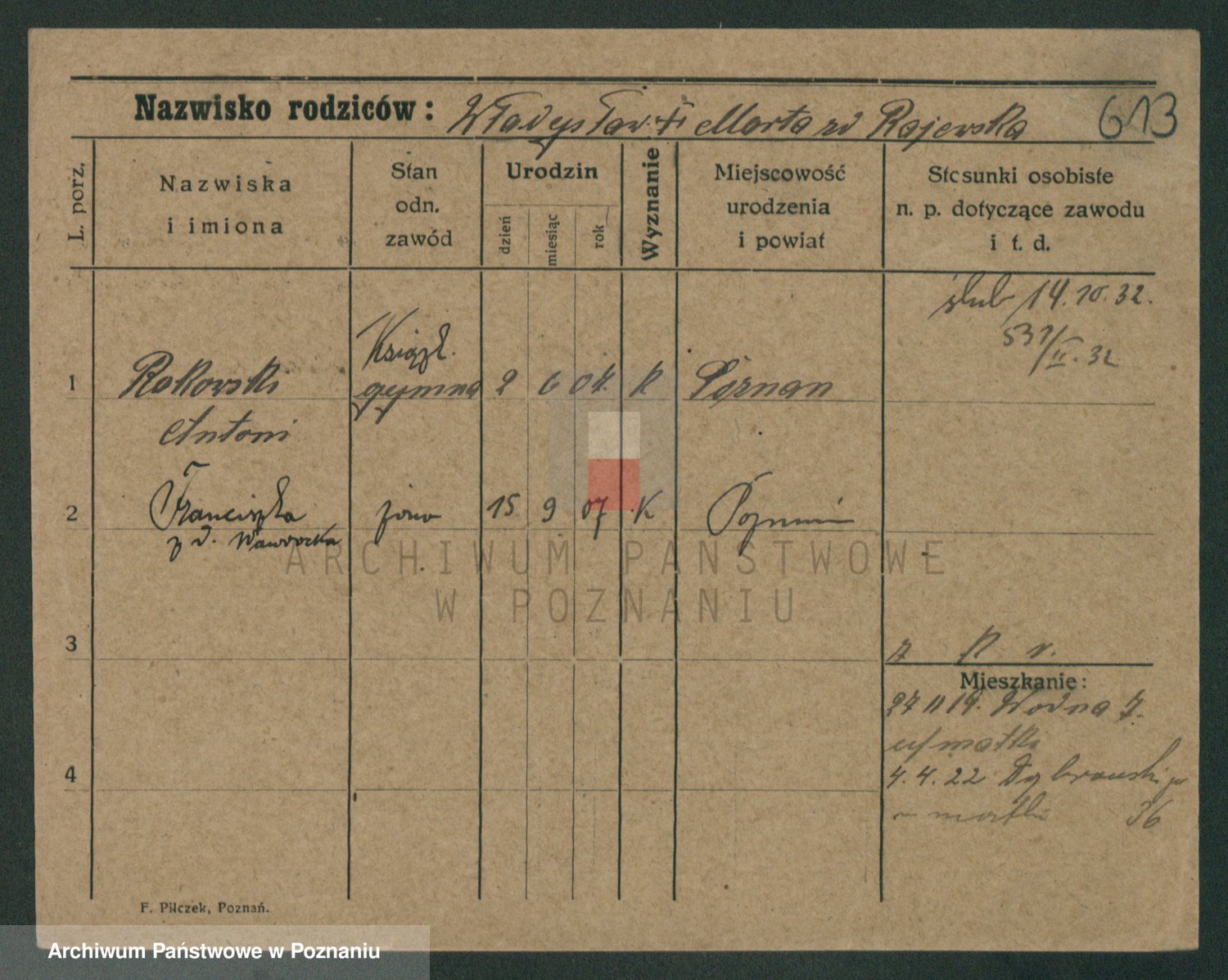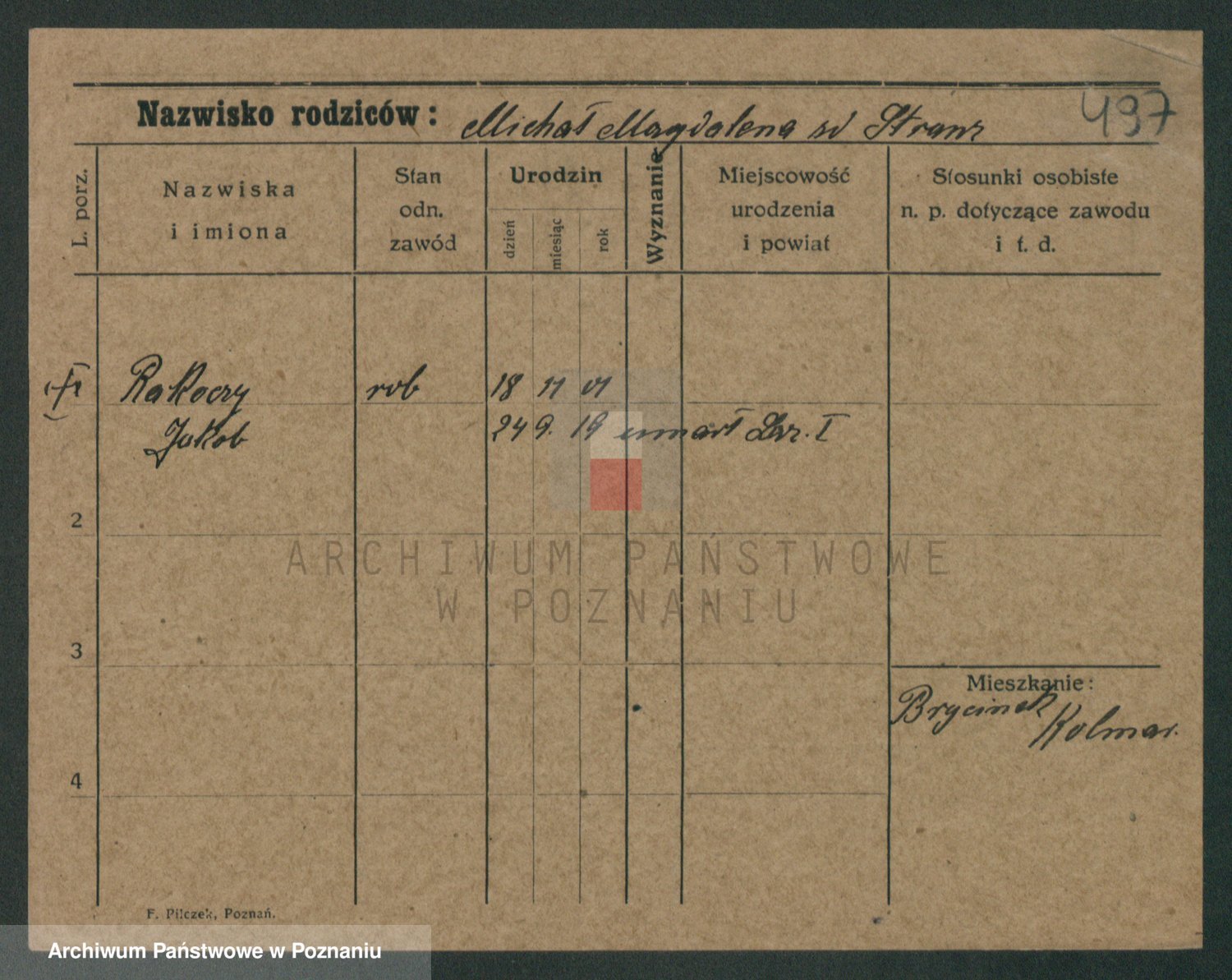 Podgląd karty osobowej dostępny jest po kliknięciu na nazwisko lub ikonkę karty. Można dokonywać powiększenia (ikony na górze) lub przechodzić między kolejnymi skanami (strzałki po bokach).