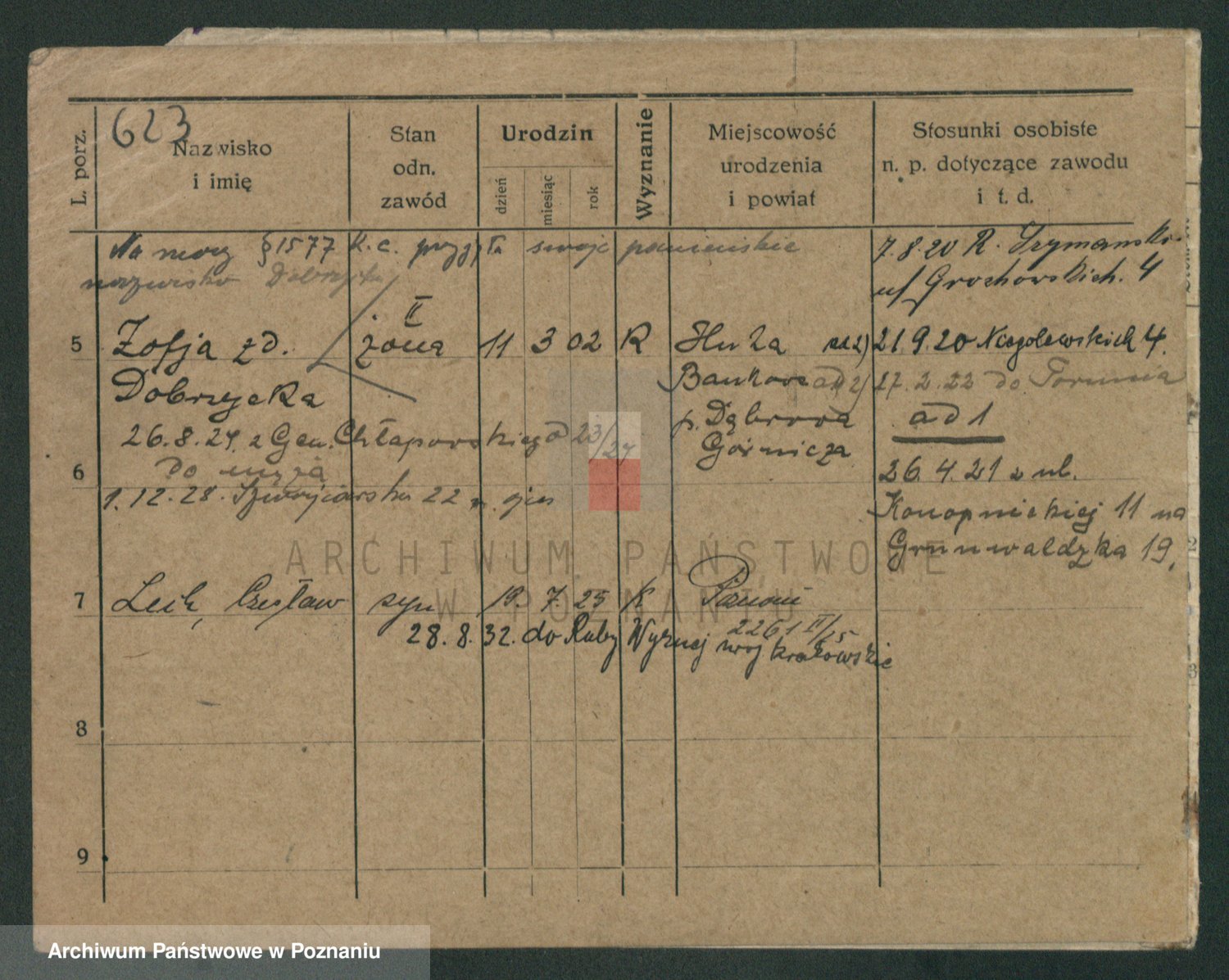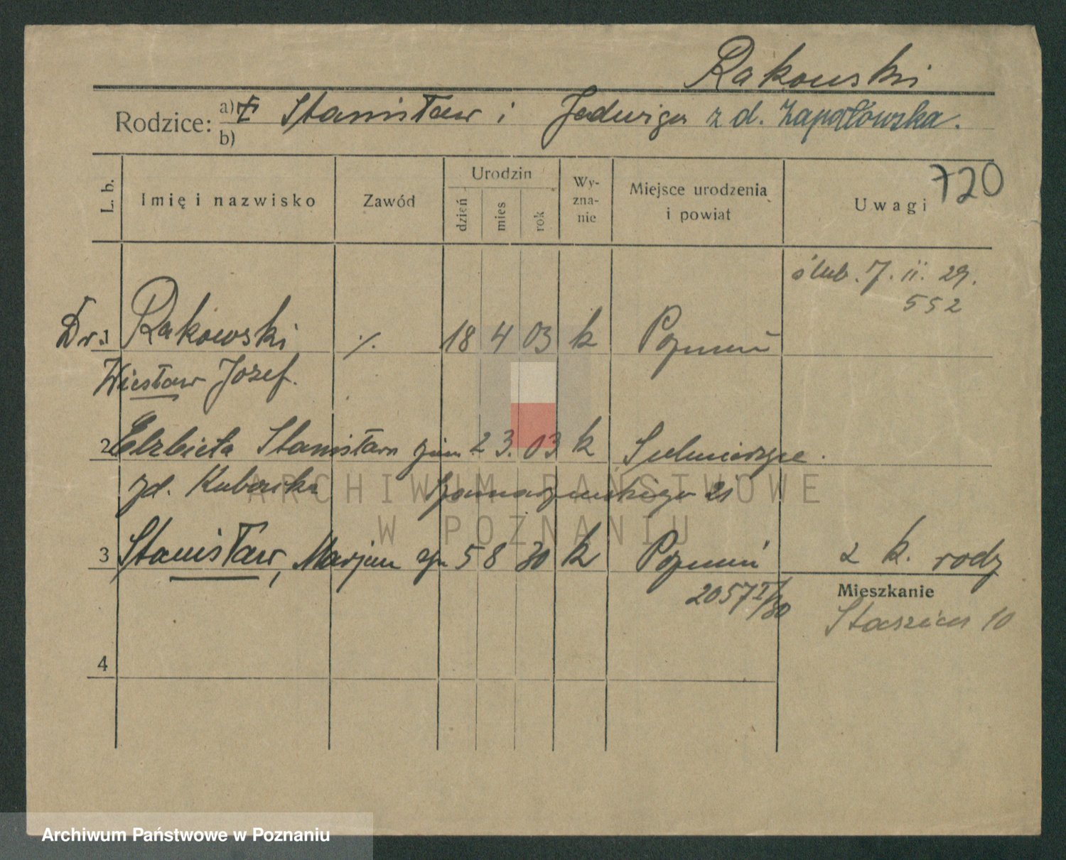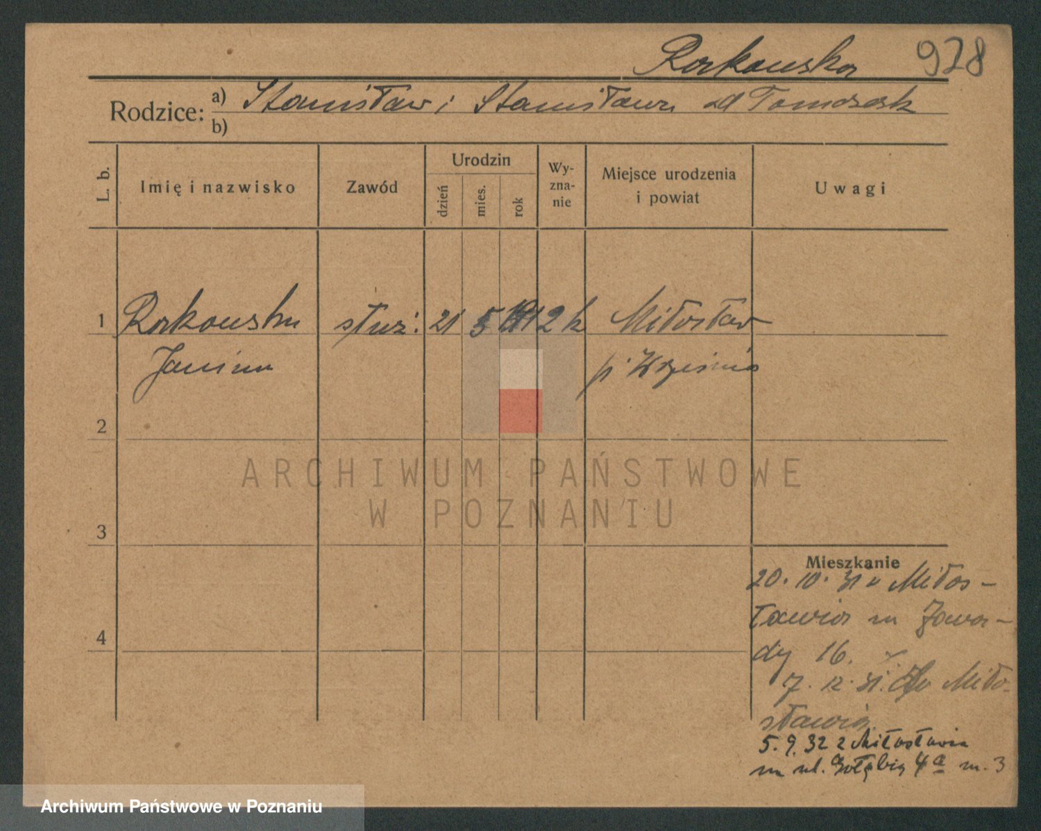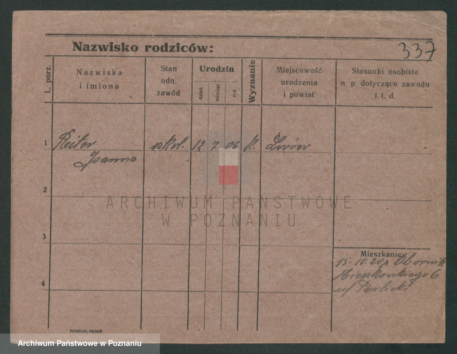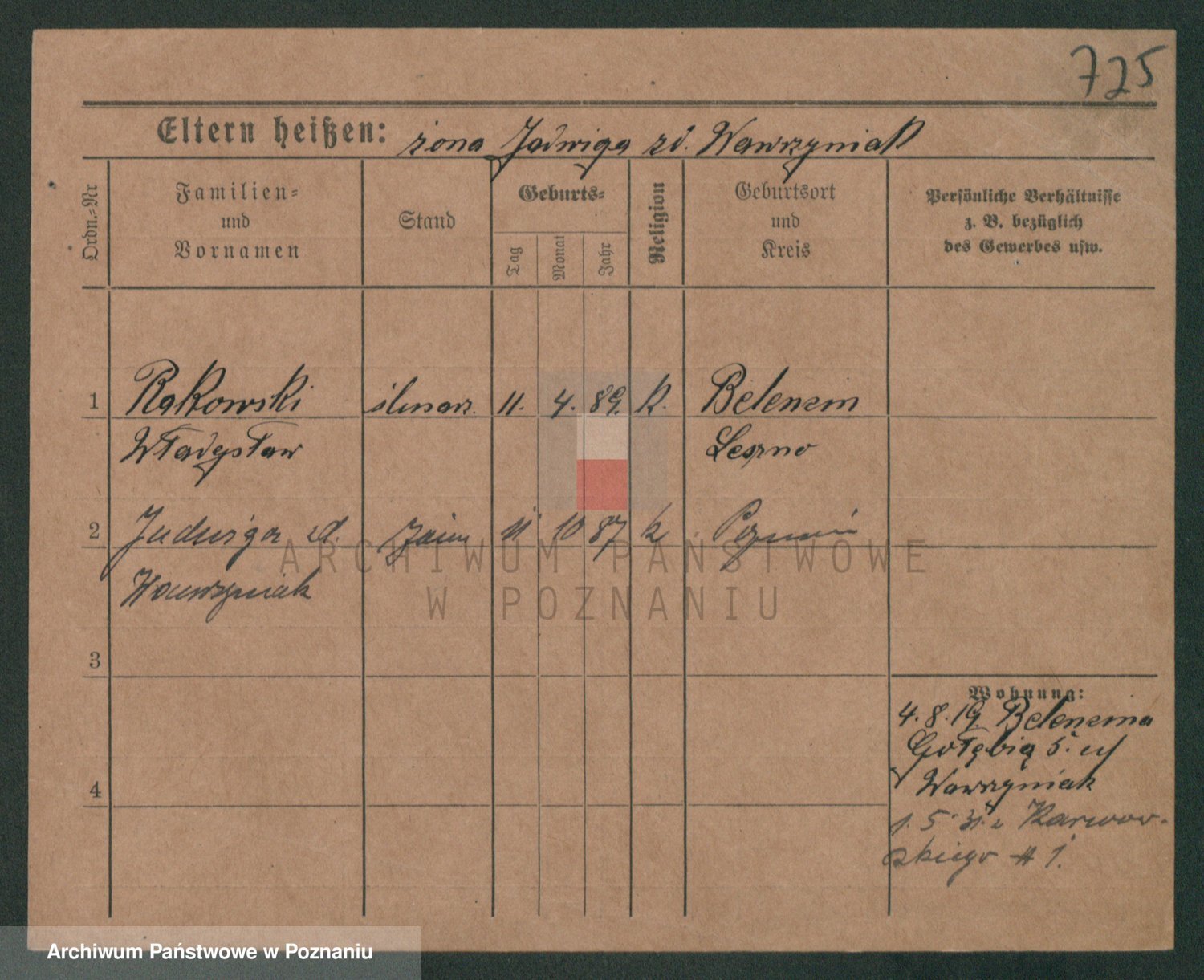 Podgląd karty osobowej dostępny jest po kliknięciu na nazwisko lub ikonkę karty. Można dokonywać powiększenia (ikony na górze) lub przechodzić między kolejnymi skanami (strzałki po bokach).