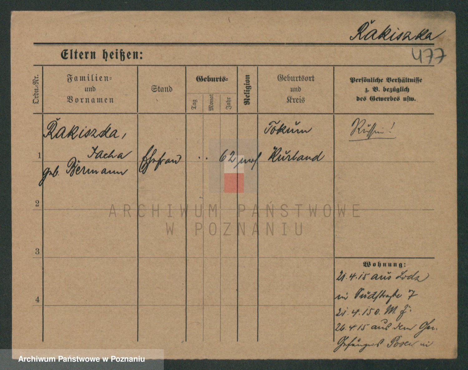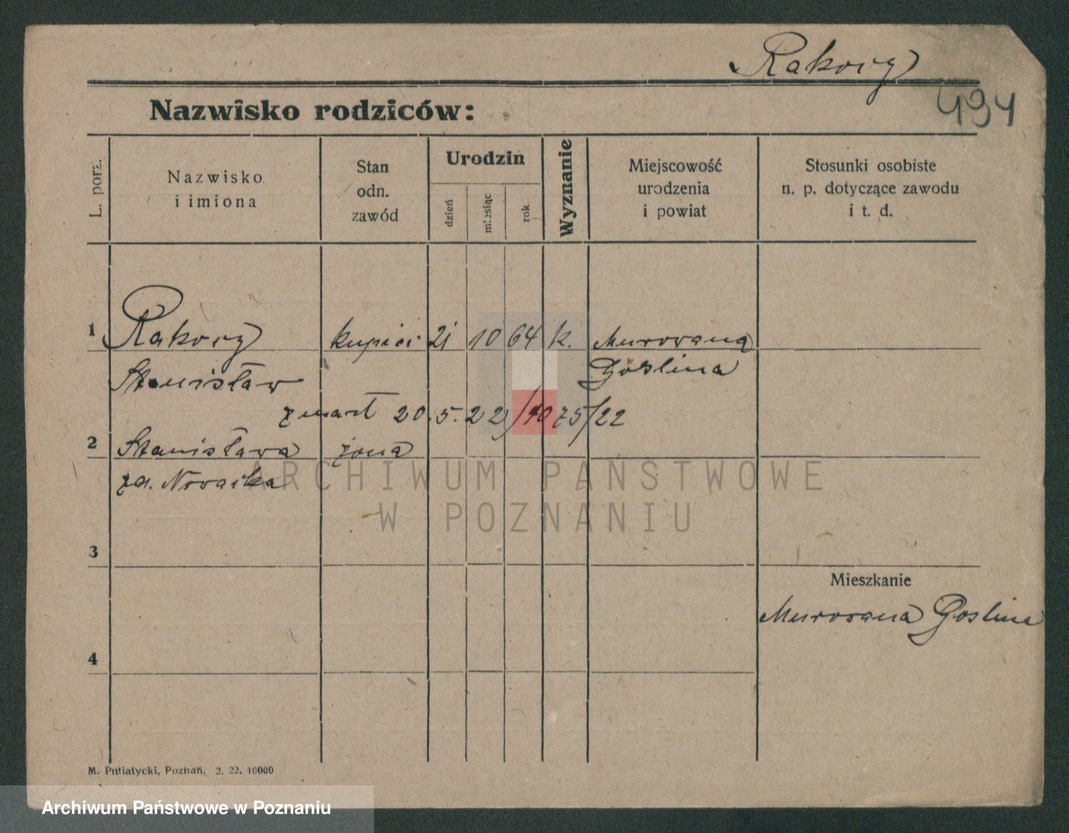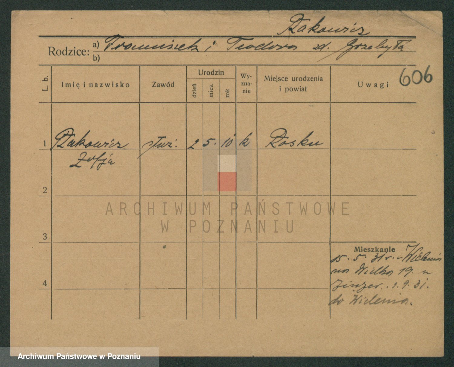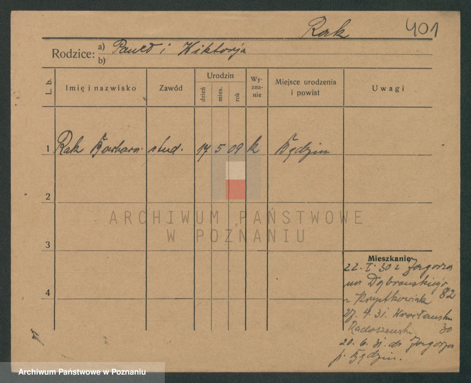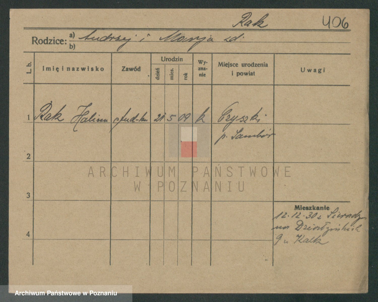 Podgląd karty osobowej dostępny jest po kliknięciu na nazwisko lub ikonkę karty. Można dokonywać powiększenia (ikony na górze) lub przechodzić między kolejnymi skanami (strzałki po bokach).