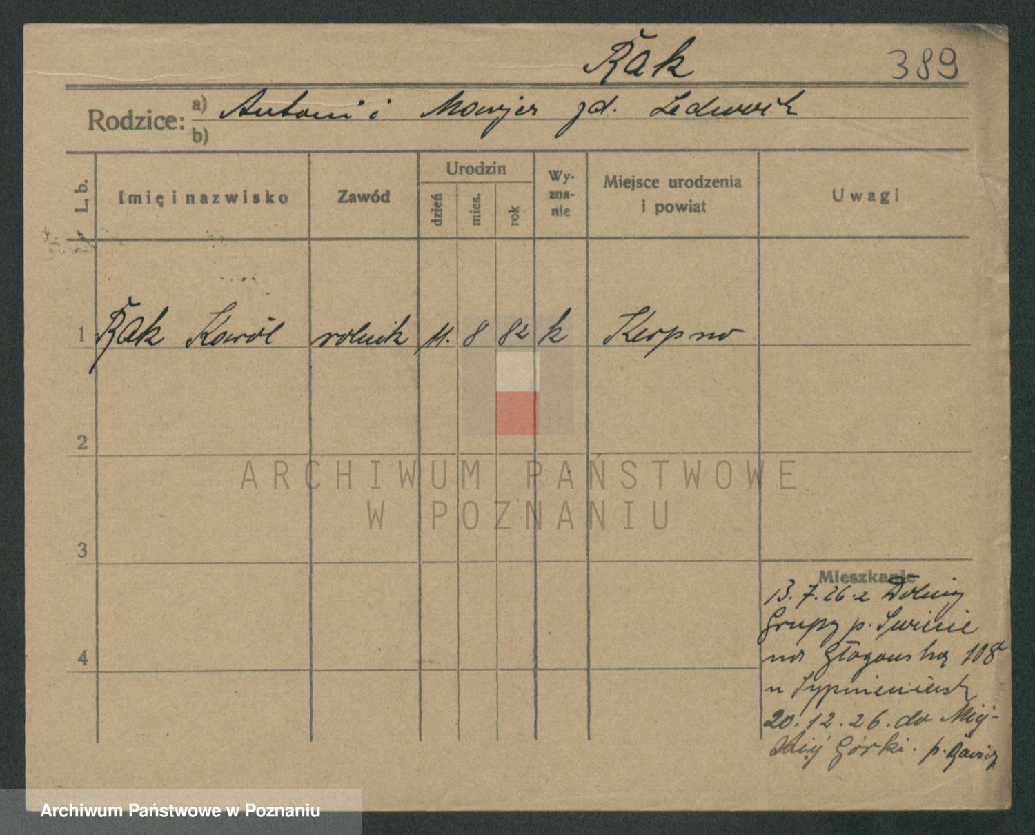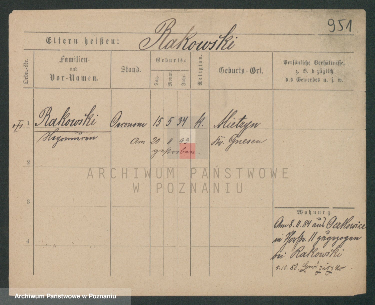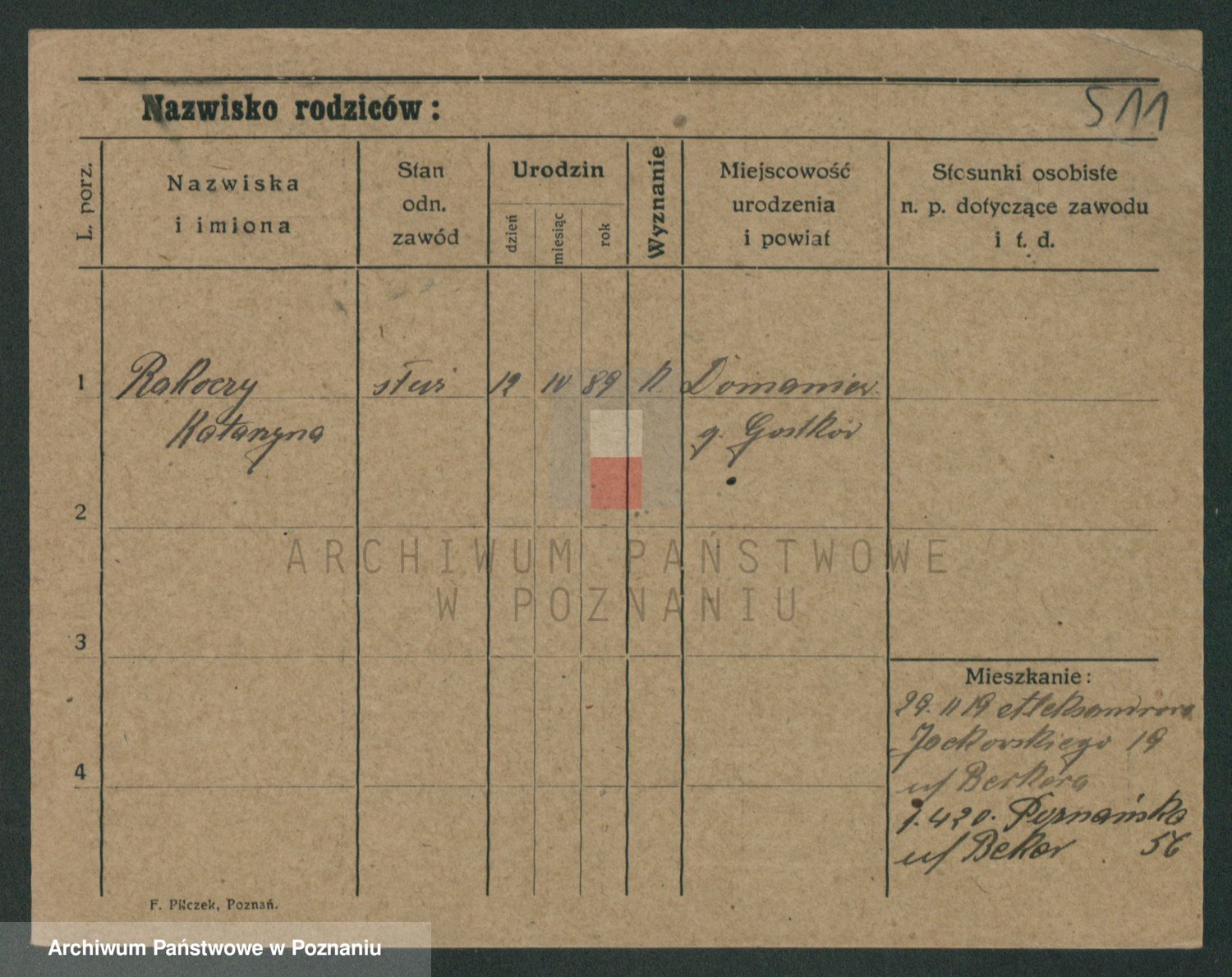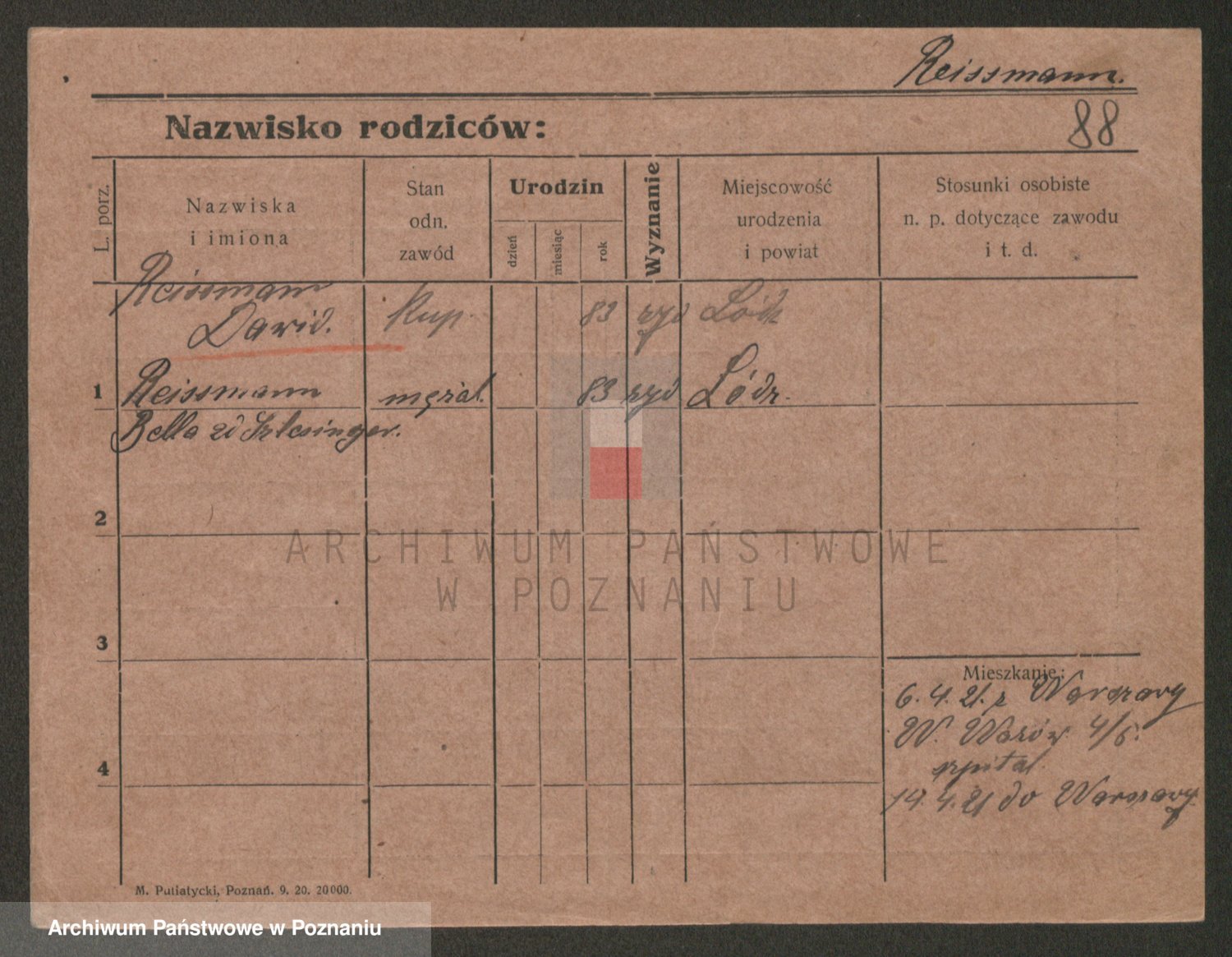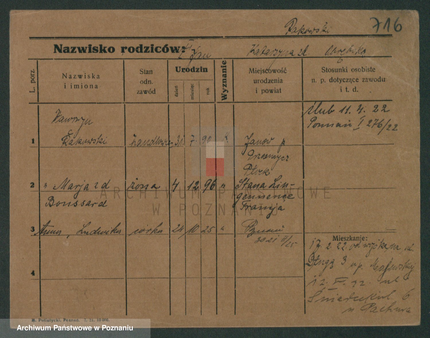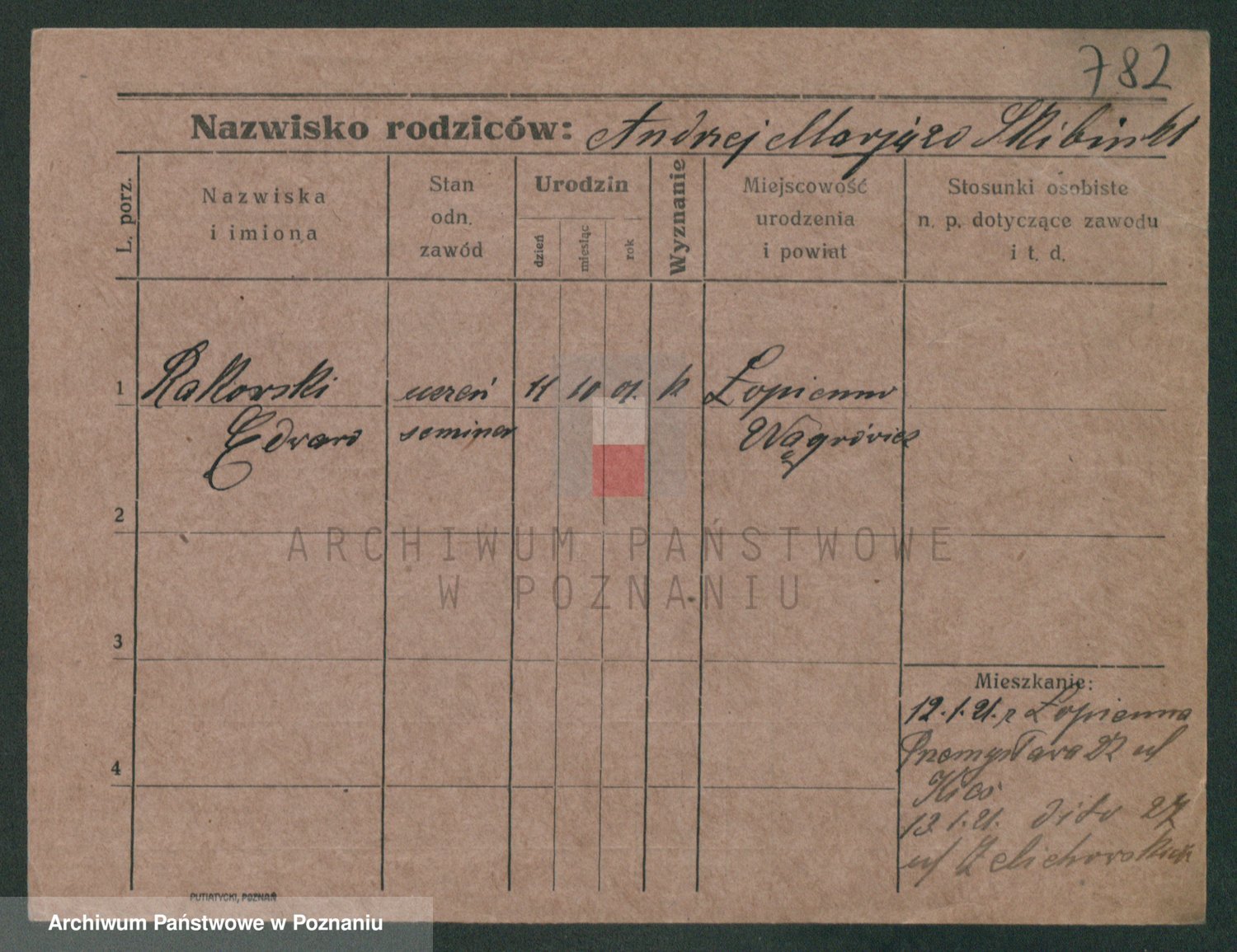 Podgląd karty osobowej dostępny jest po kliknięciu na nazwisko lub ikonkę karty. Można dokonywać powiększenia (ikony na górze) lub przechodzić między kolejnymi skanami (strzałki po bokach).