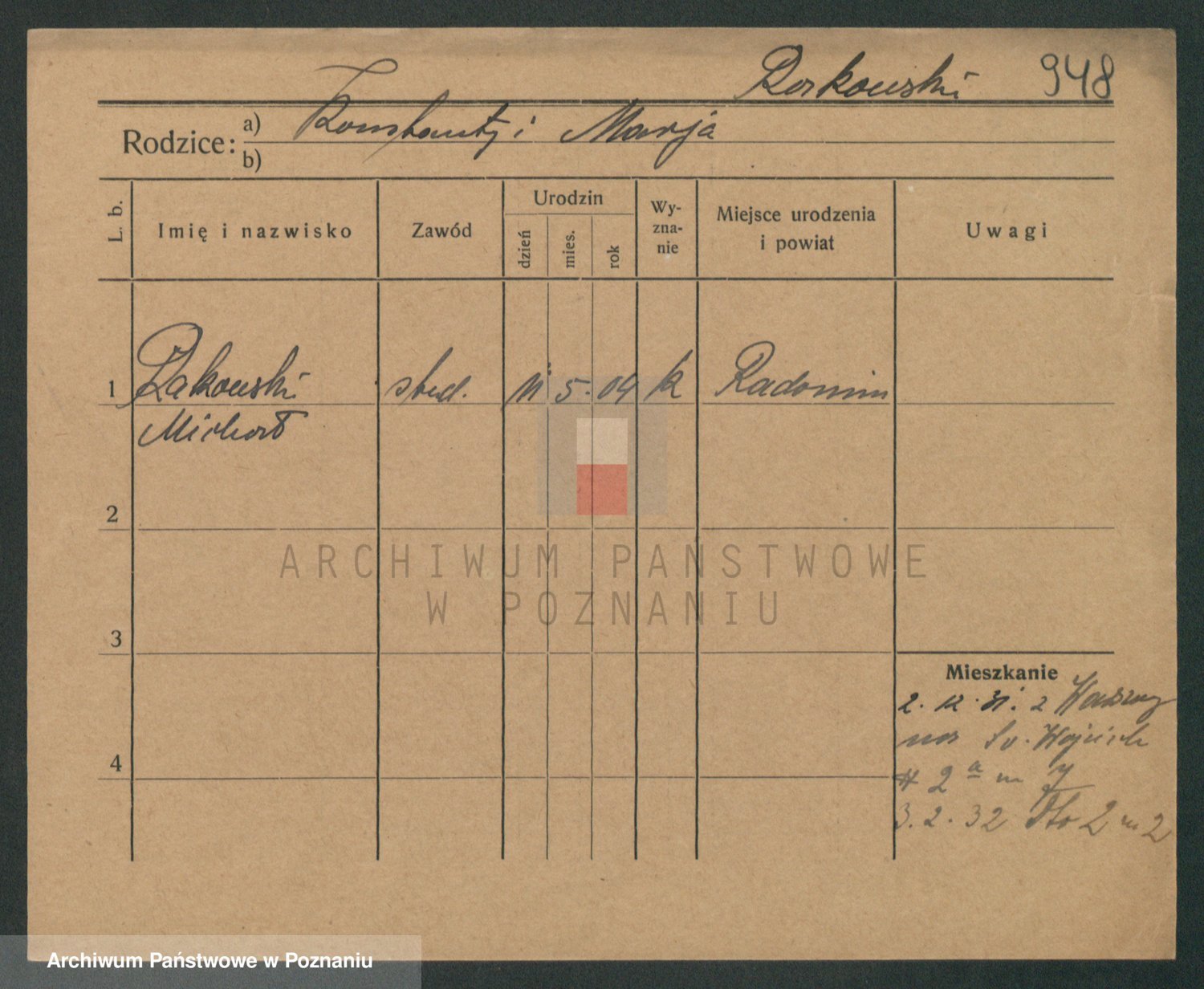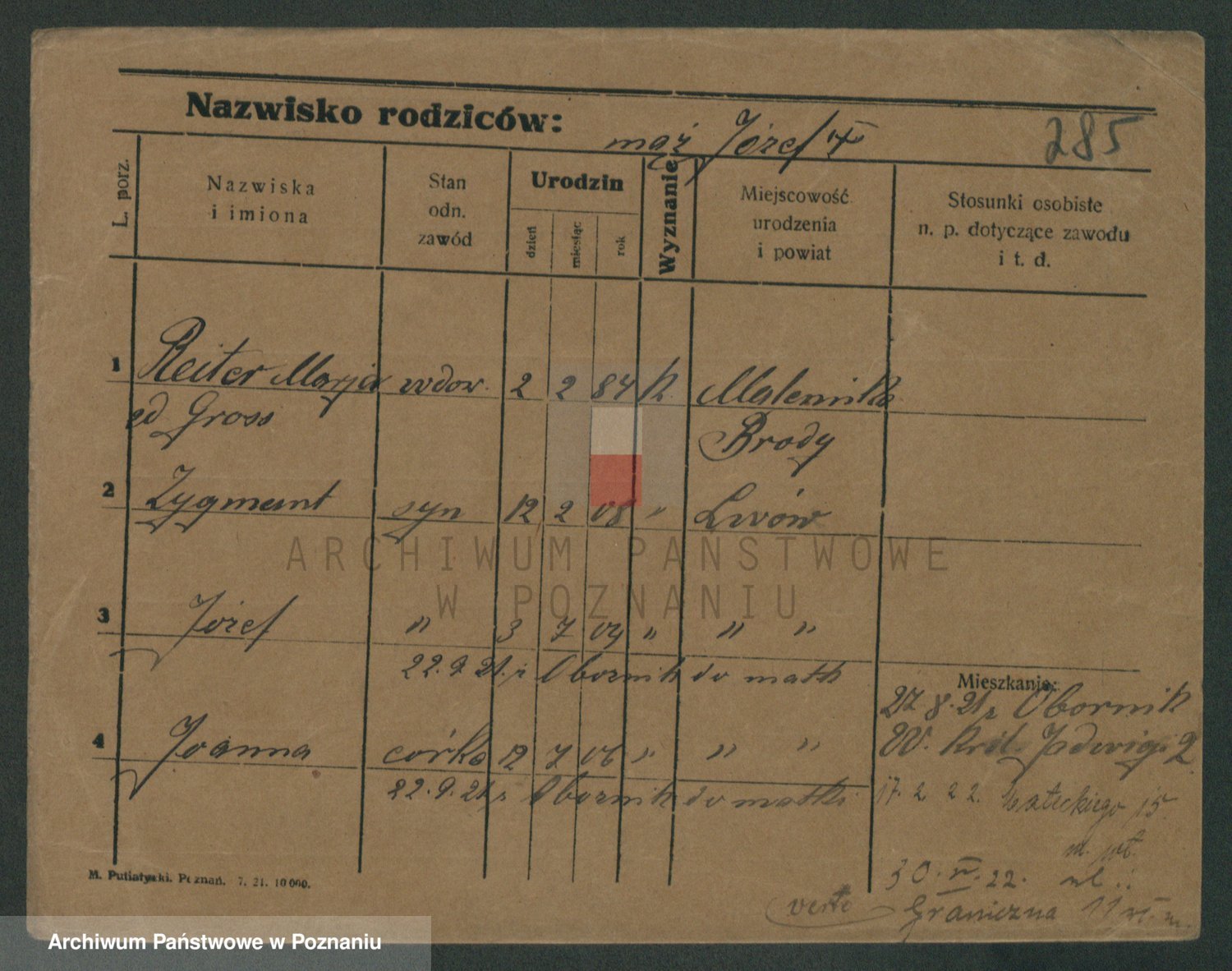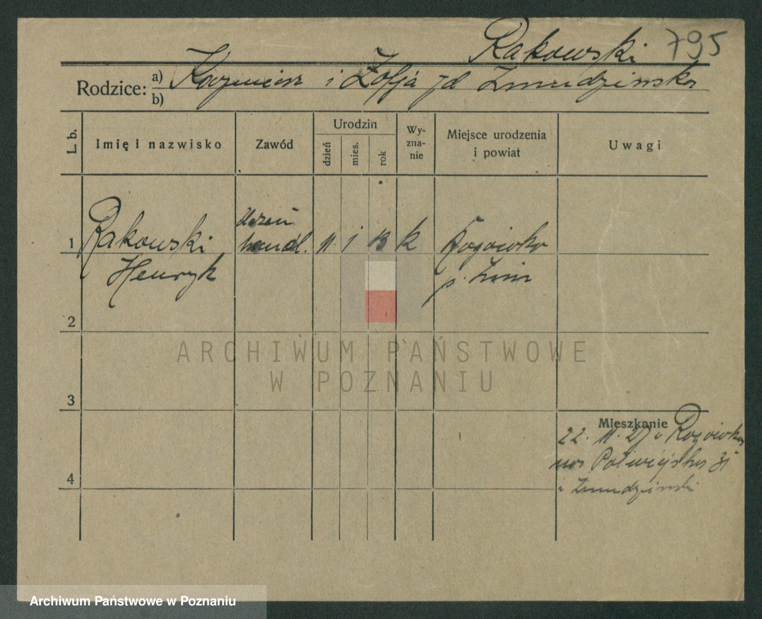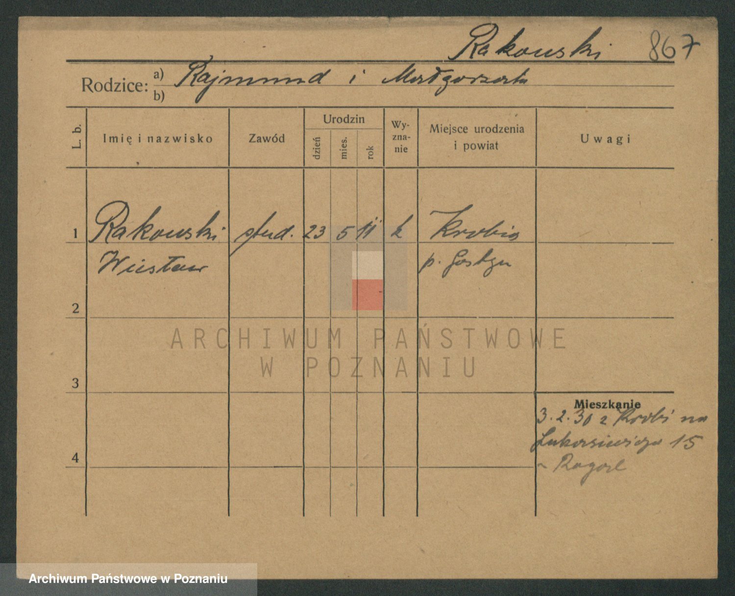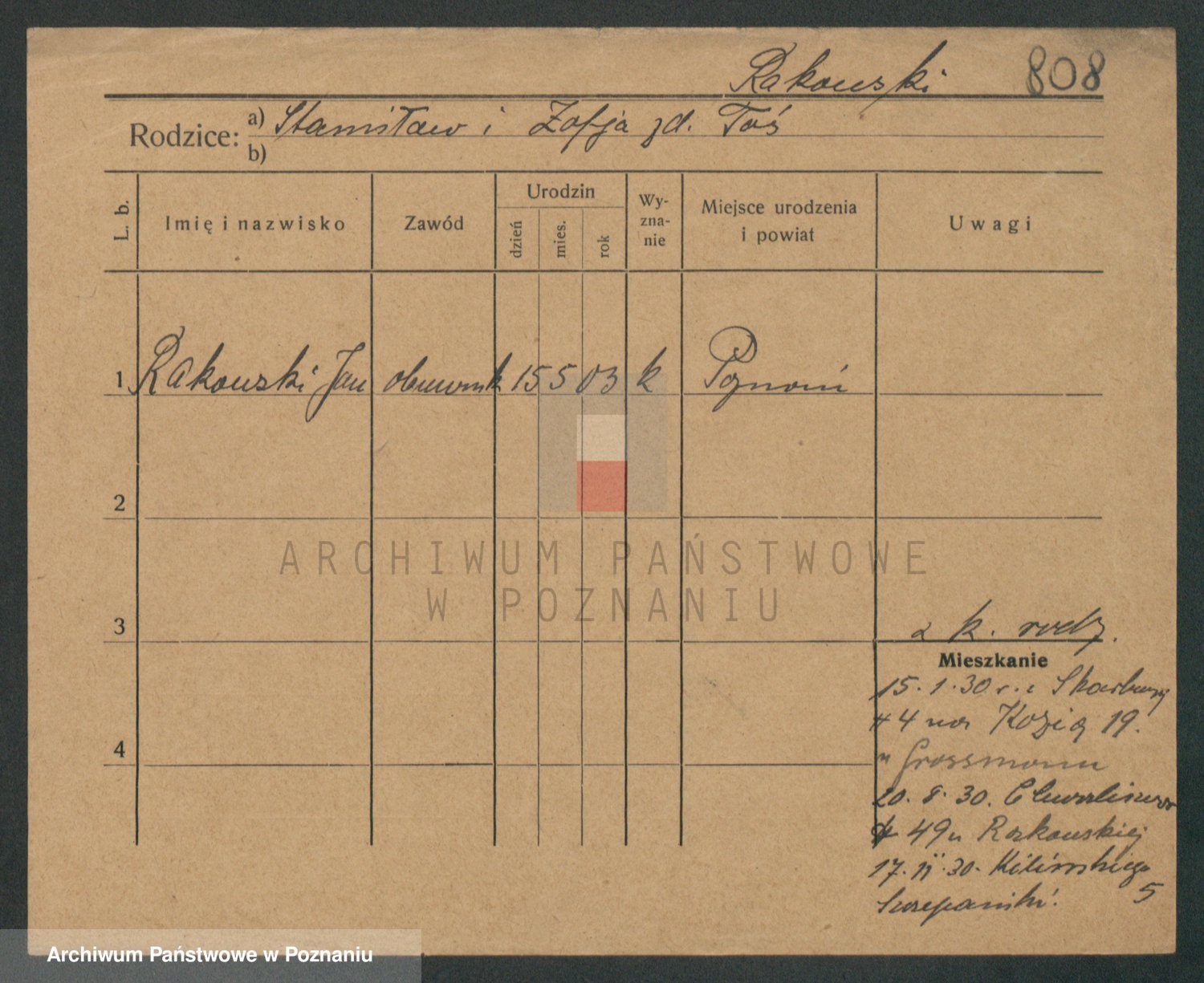 Podgląd karty osobowej dostępny jest po kliknięciu na nazwisko lub ikonkę karty. Można dokonywać powiększenia (ikony na górze) lub przechodzić między kolejnymi skanami (strzałki po bokach).