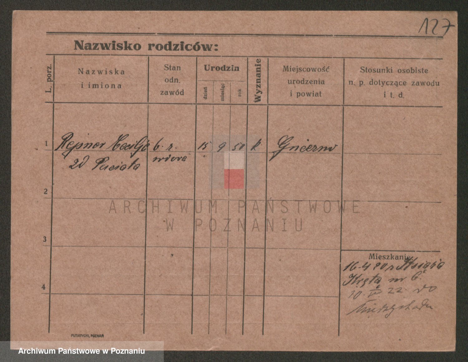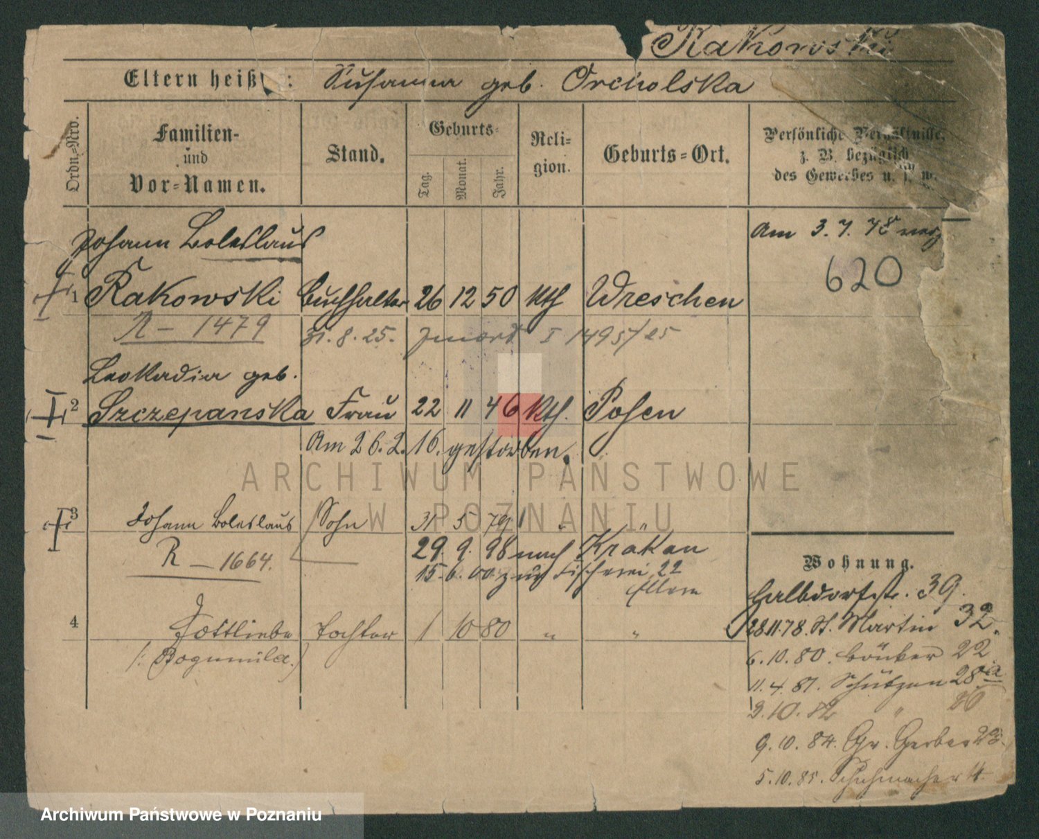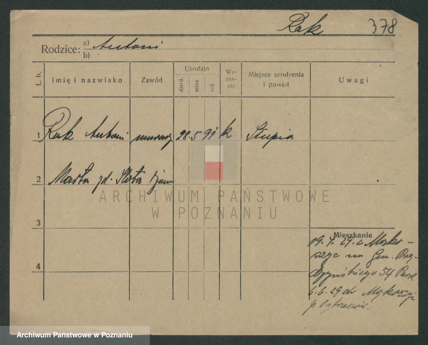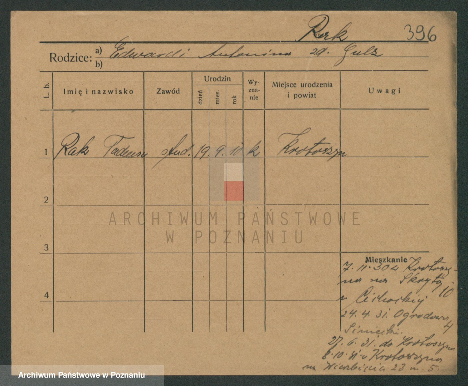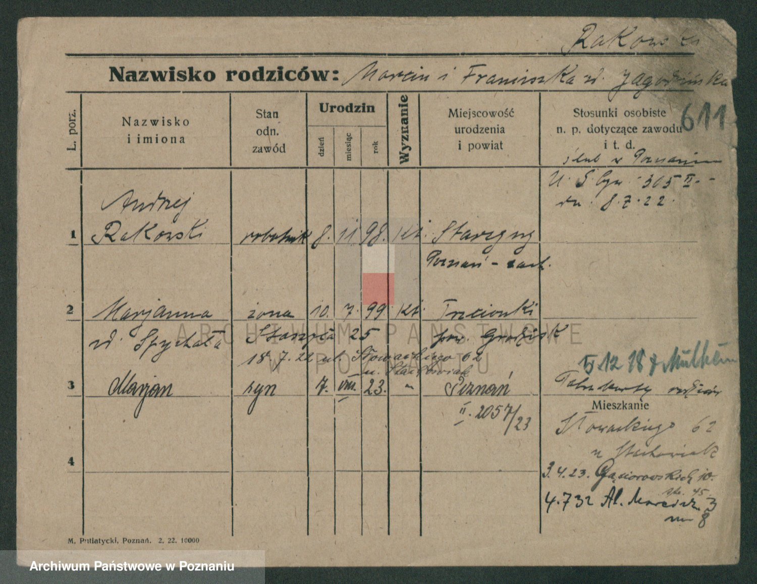 Podgląd karty osobowej dostępny jest po kliknięciu na nazwisko lub ikonkę karty. Można dokonywać powiększenia (ikony na górze) lub przechodzić między kolejnymi skanami (strzałki po bokach).