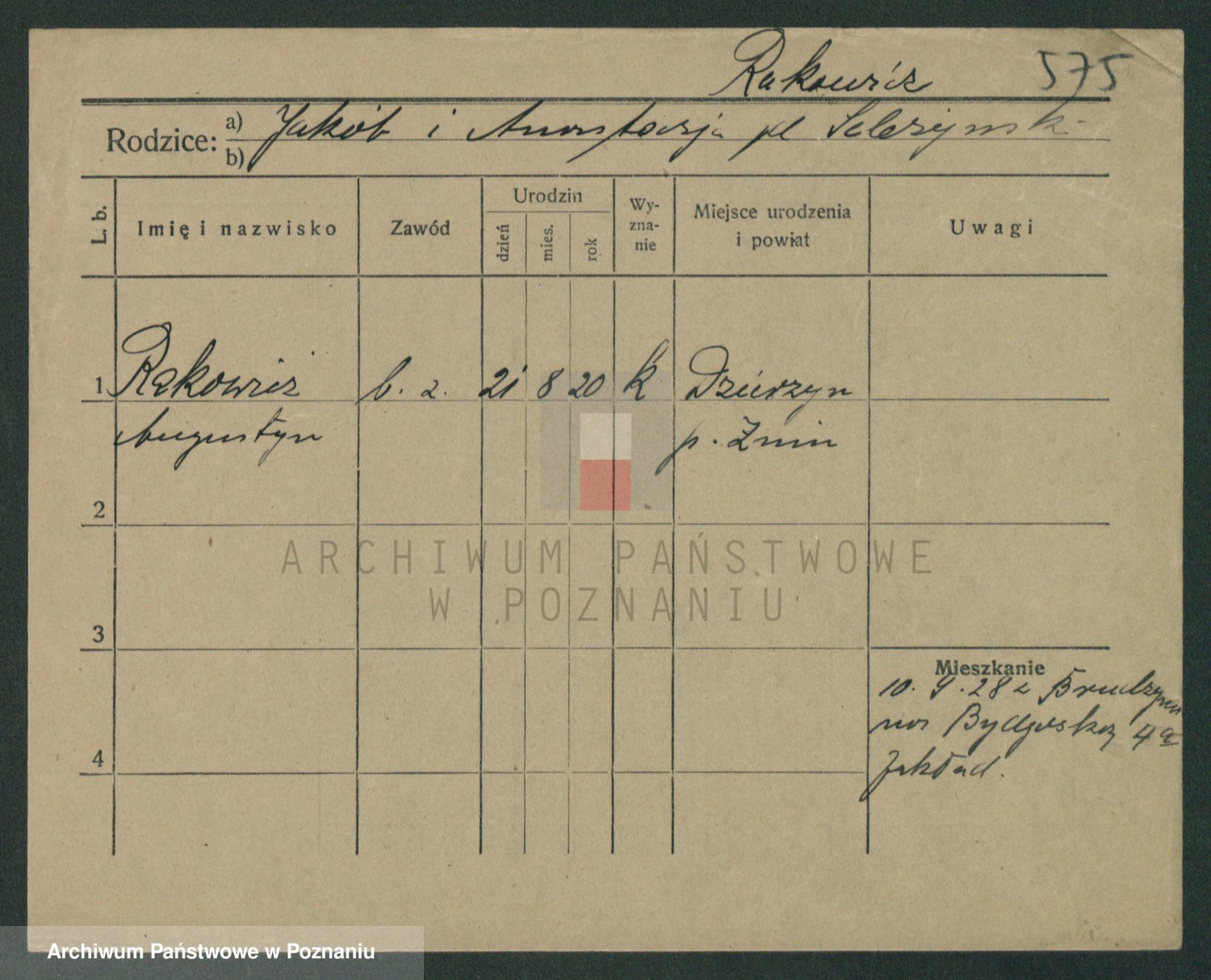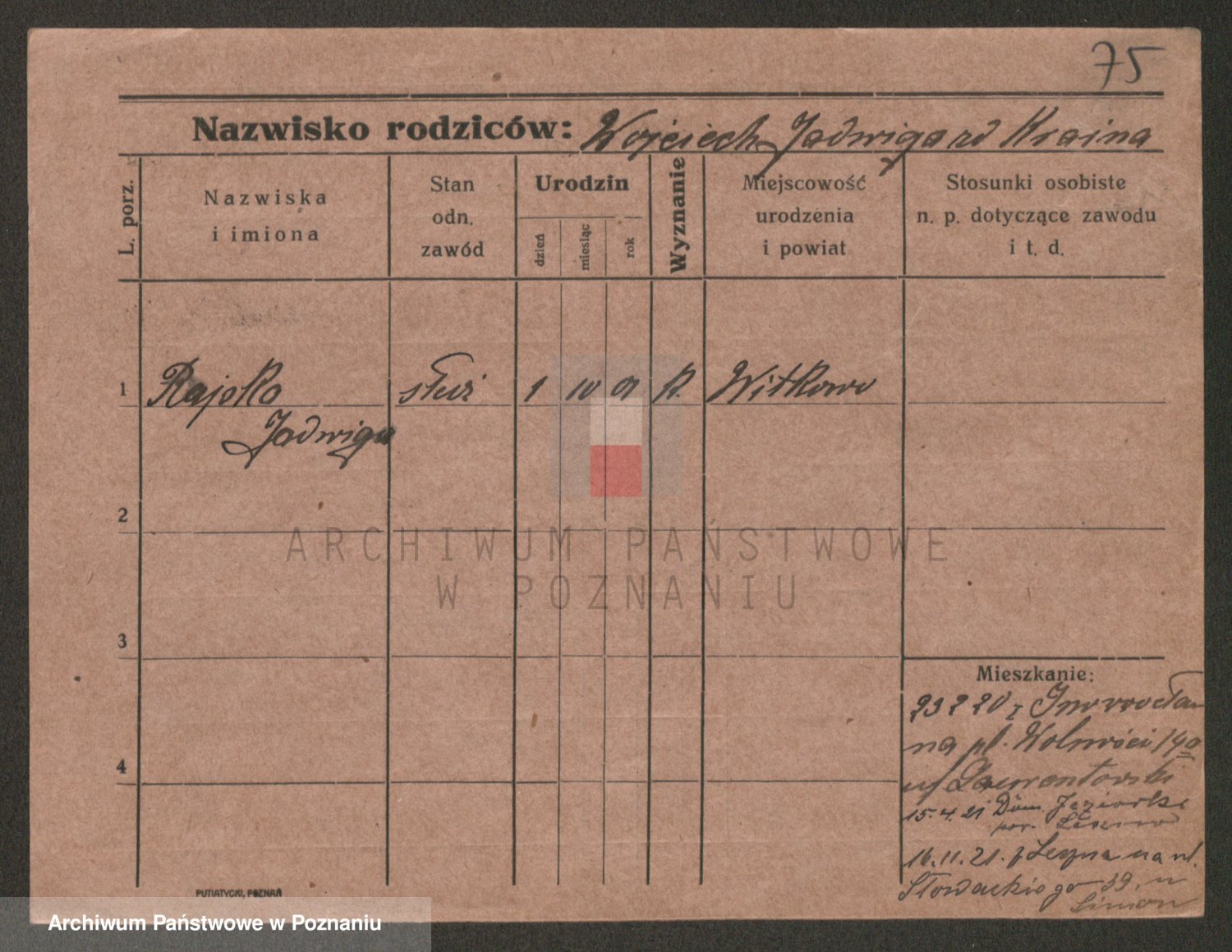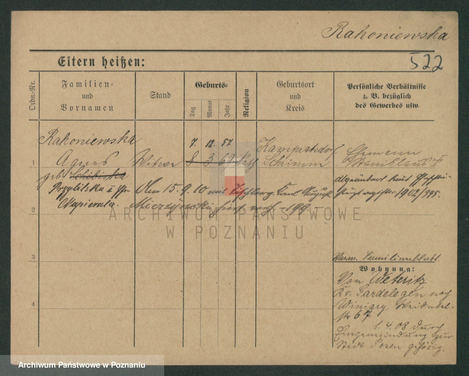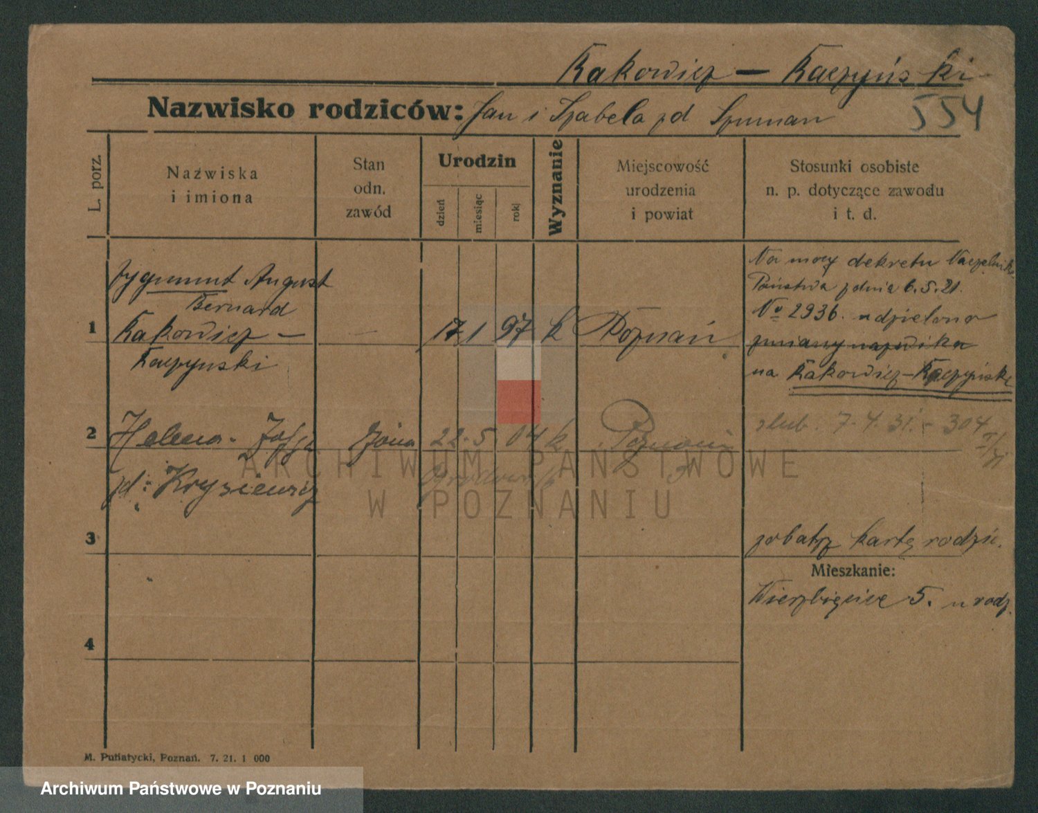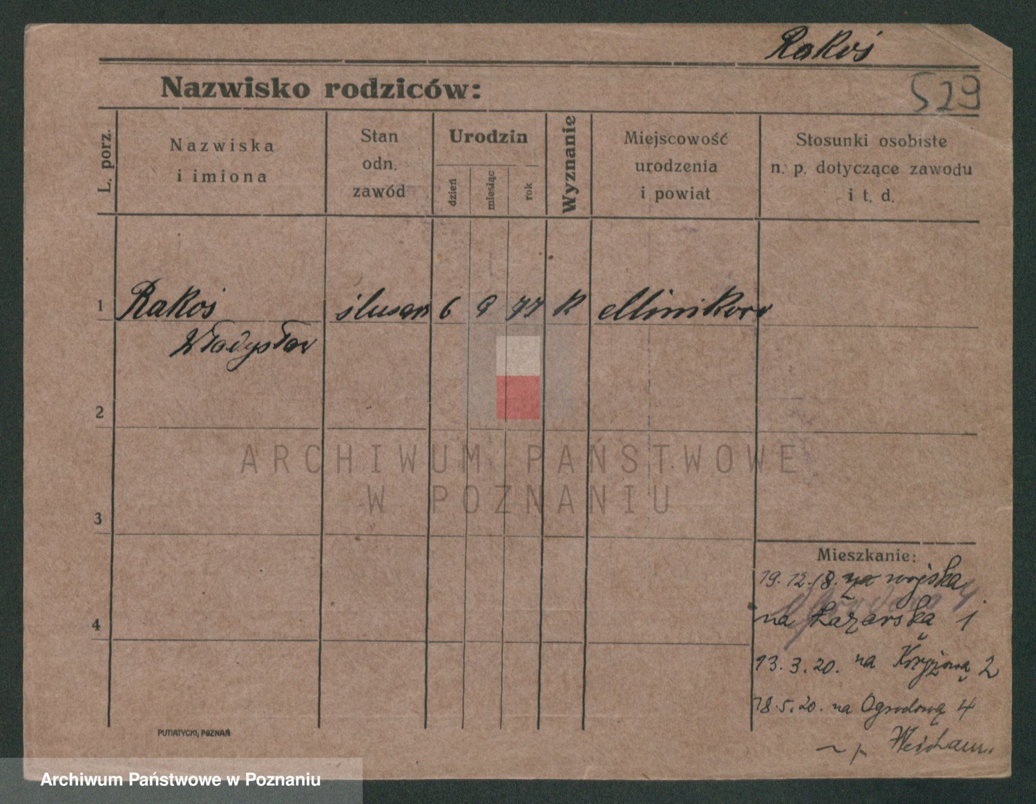 Podgląd karty osobowej dostępny jest po kliknięciu na nazwisko lub ikonkę karty. Można dokonywać powiększenia (ikony na górze) lub przechodzić między kolejnymi skanami (strzałki po bokach).