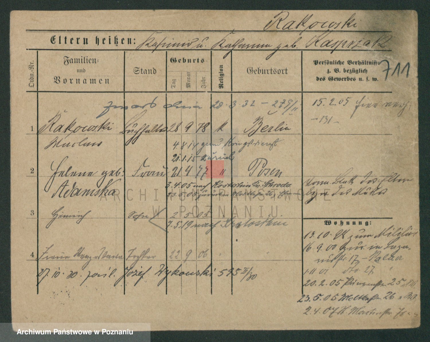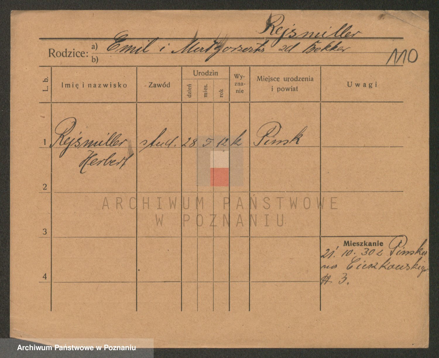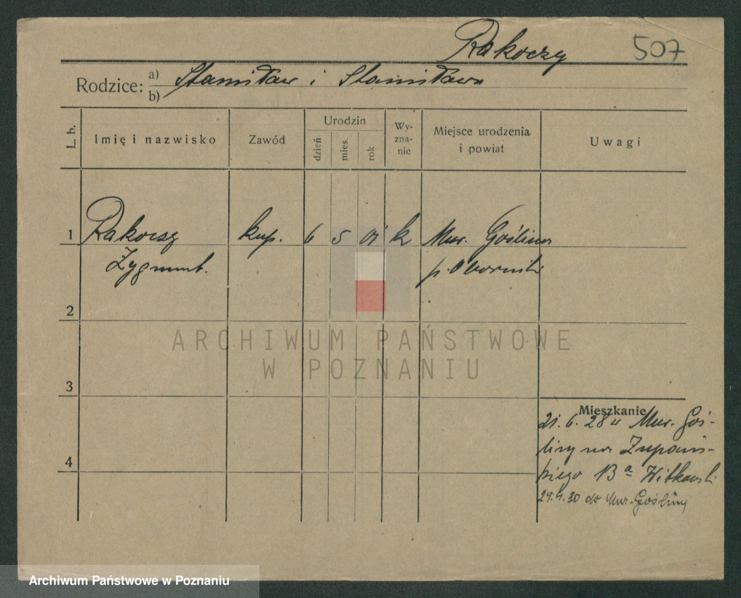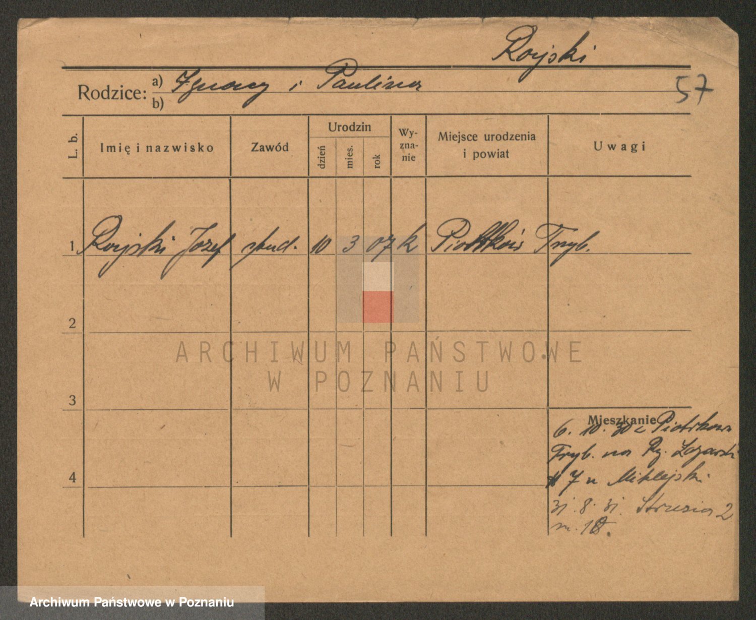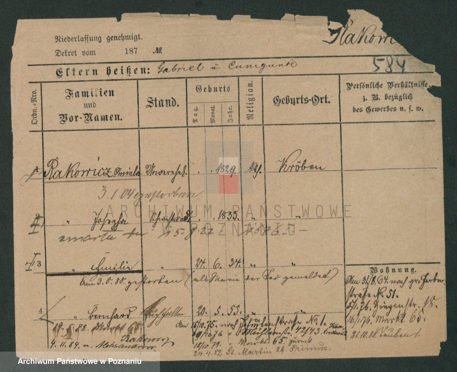 Podgląd karty osobowej dostępny jest po kliknięciu na nazwisko lub ikonkę karty. Można dokonywać powiększenia (ikony na górze) lub przechodzić między kolejnymi skanami (strzałki po bokach).