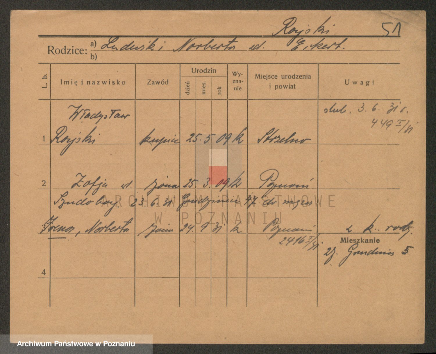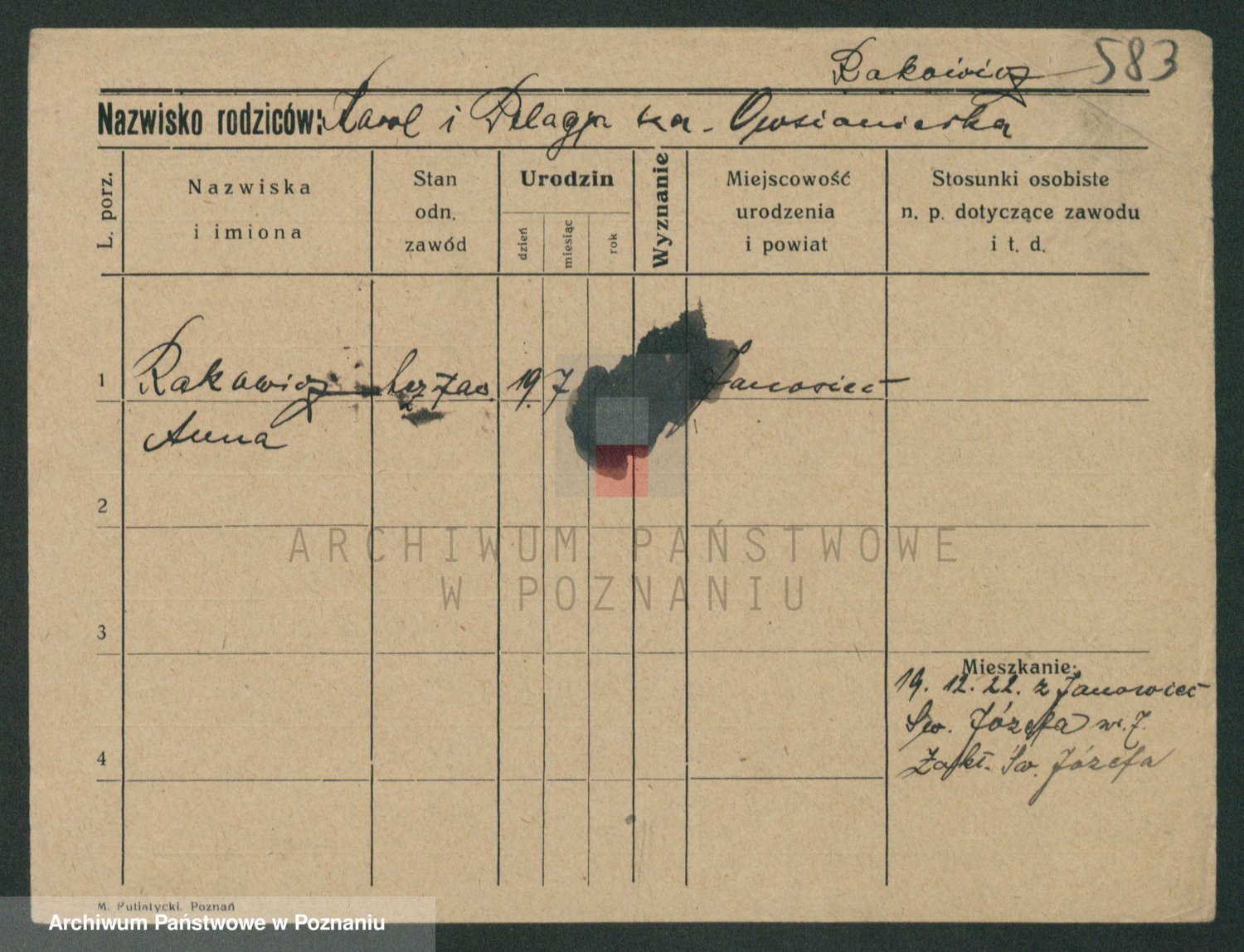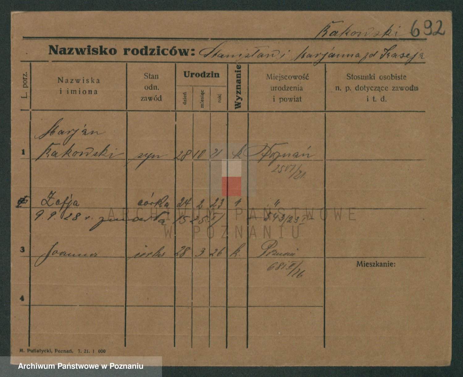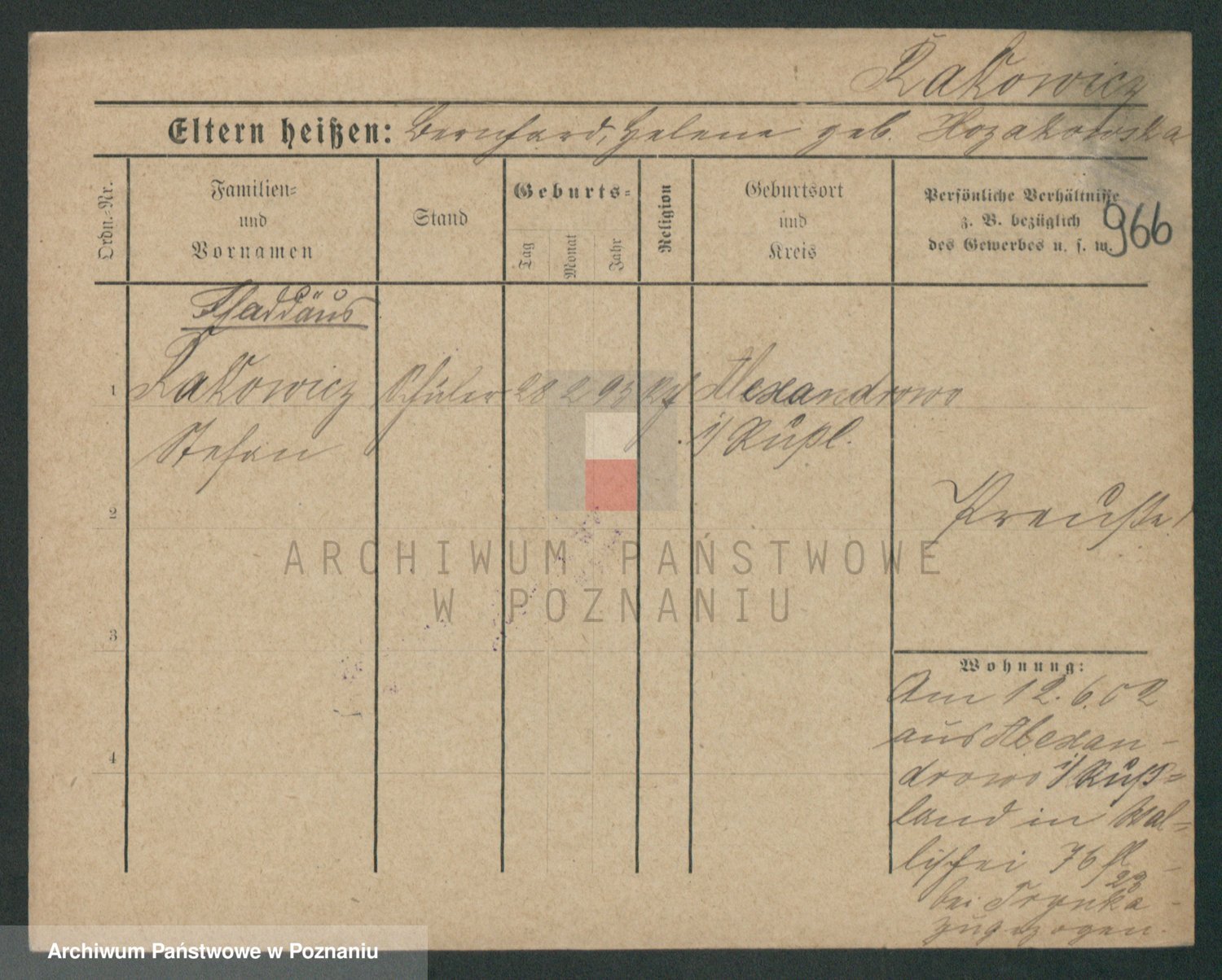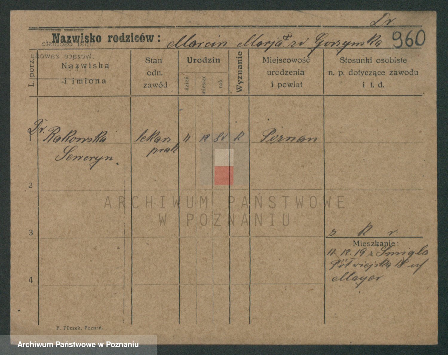 Podgląd karty osobowej dostępny jest po kliknięciu na nazwisko lub ikonkę karty. Można dokonywać powiększenia (ikony na górze) lub przechodzić między kolejnymi skanami (strzałki po bokach).